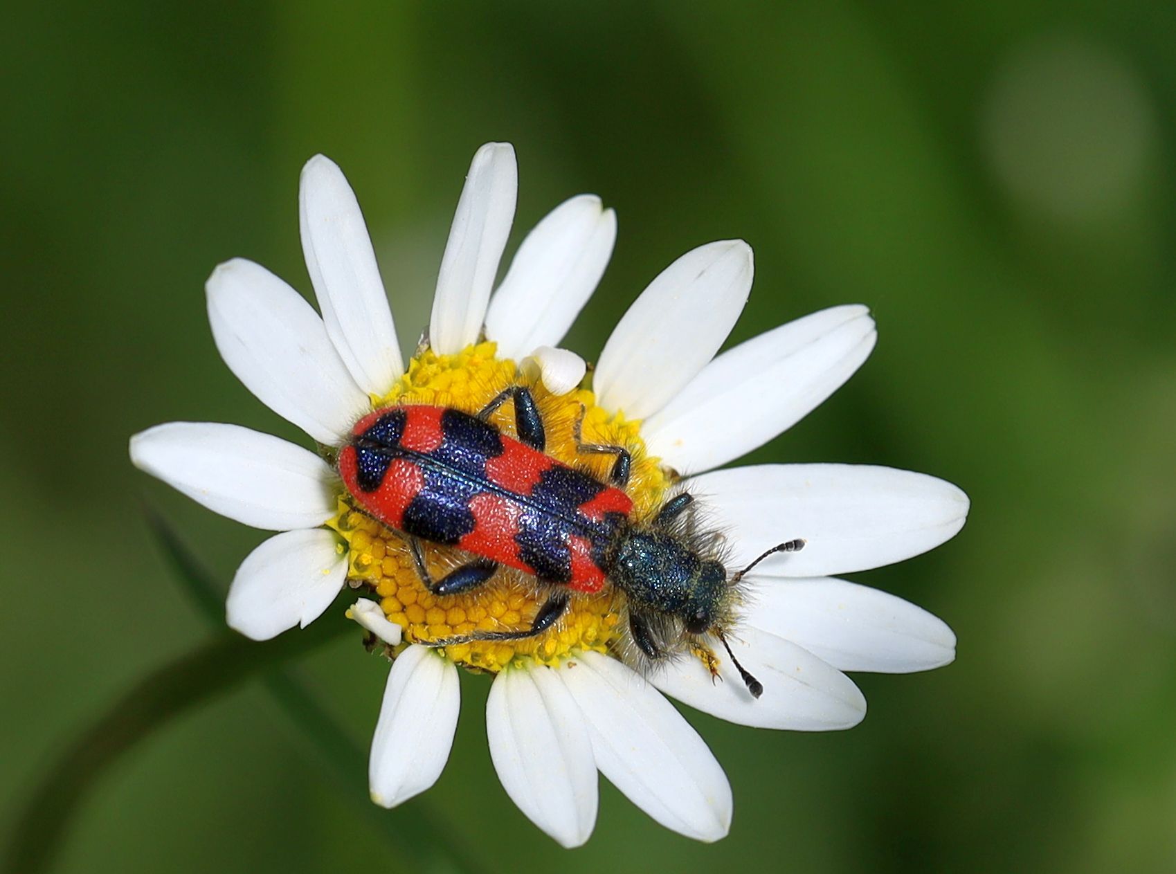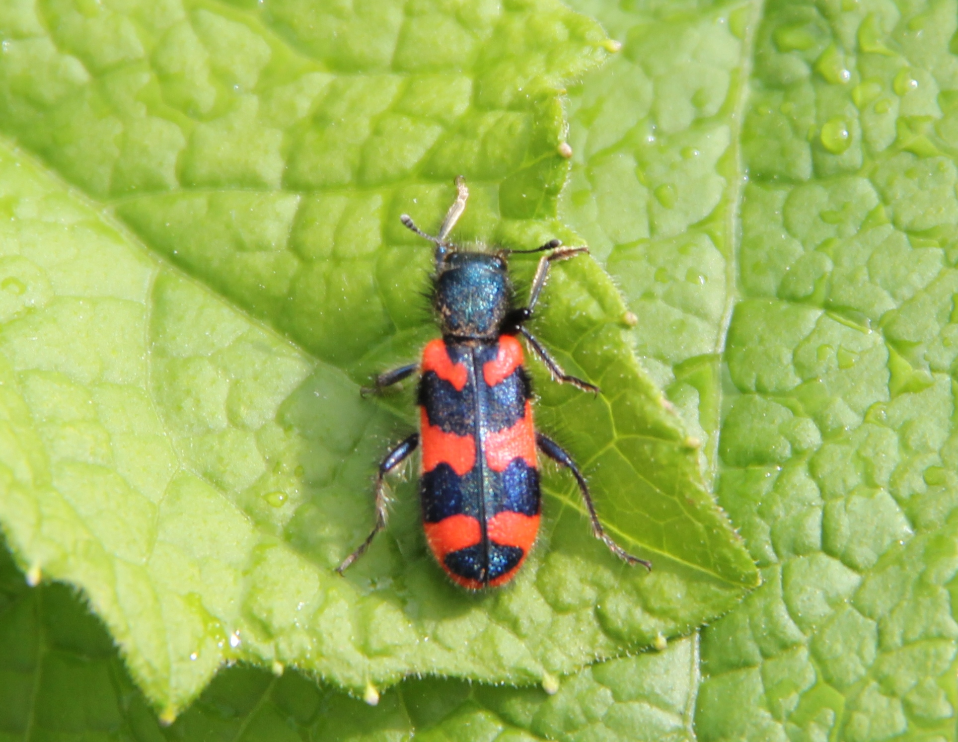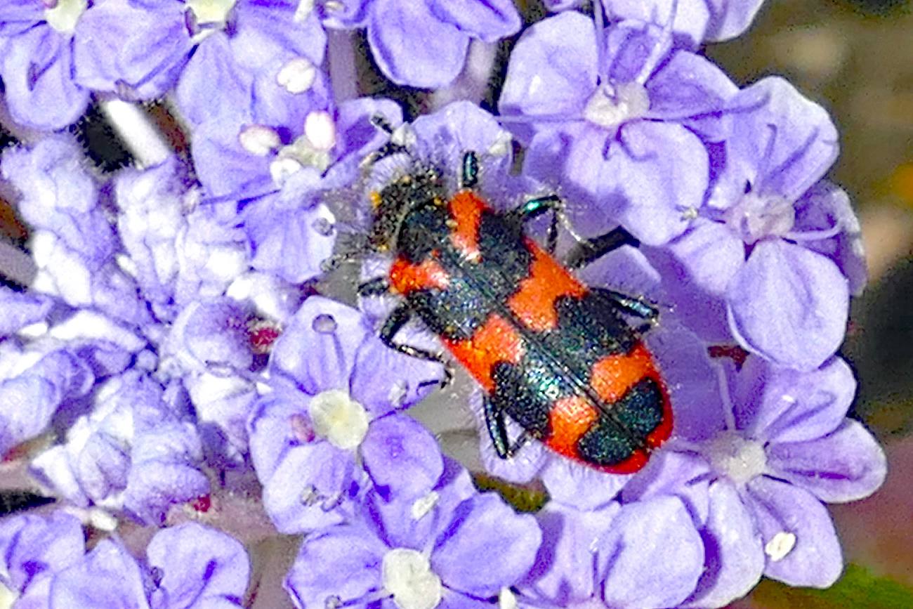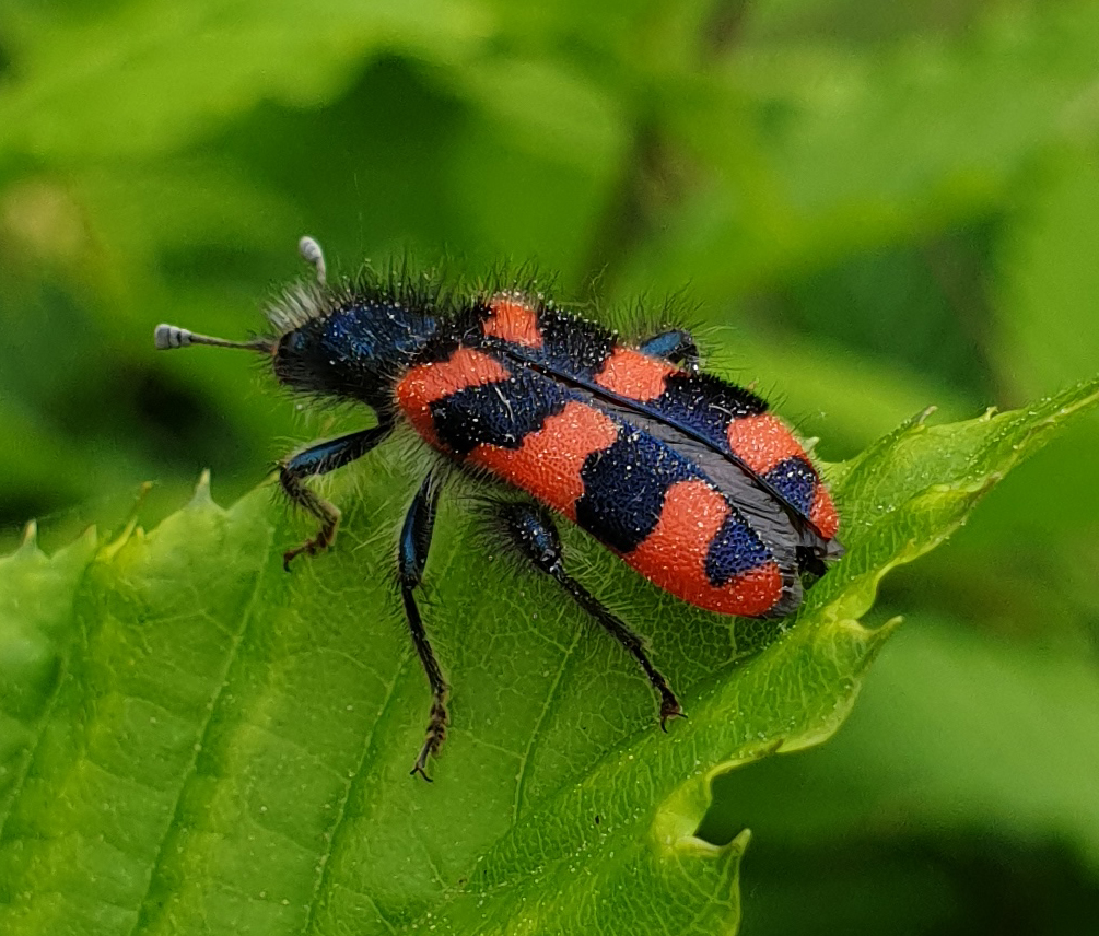 Zottiger Bienenkäfer (Trichodes alvearius (Fabricius, 1792)),Freital/Wurgwitz,Hammerbachaue,auf Weißdorn,Mai 2019 (© Manfred Wonka)( Bild vergrößern)