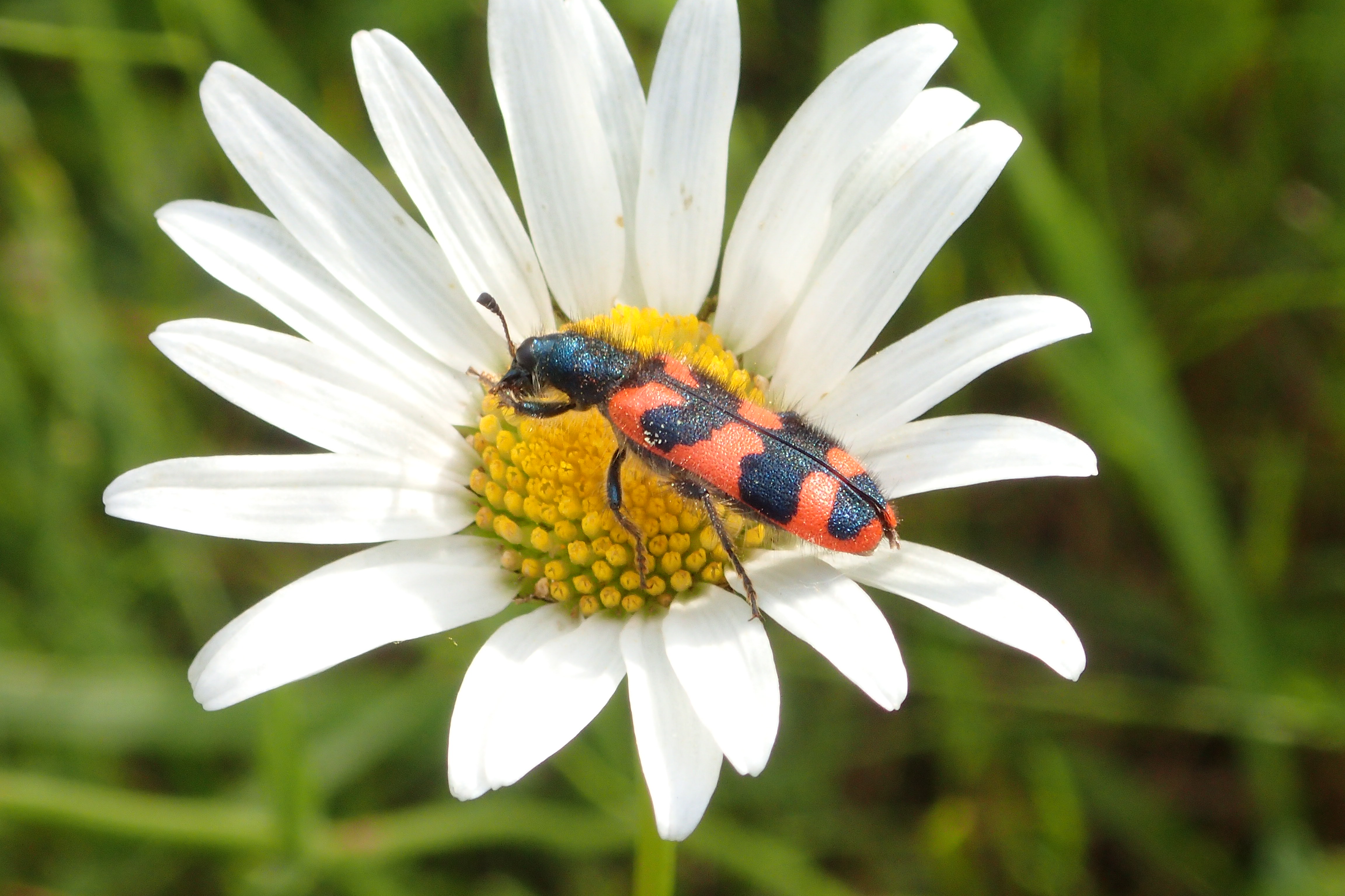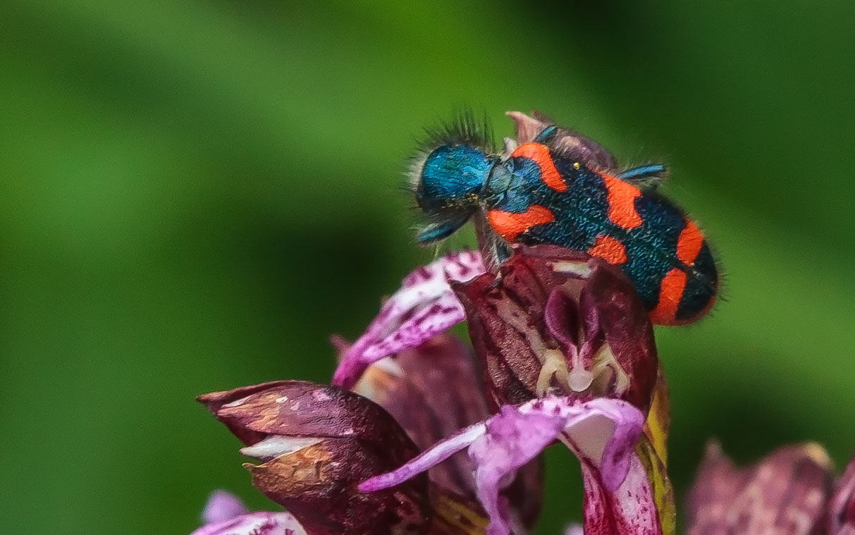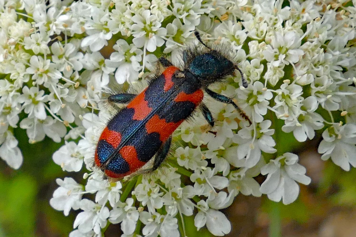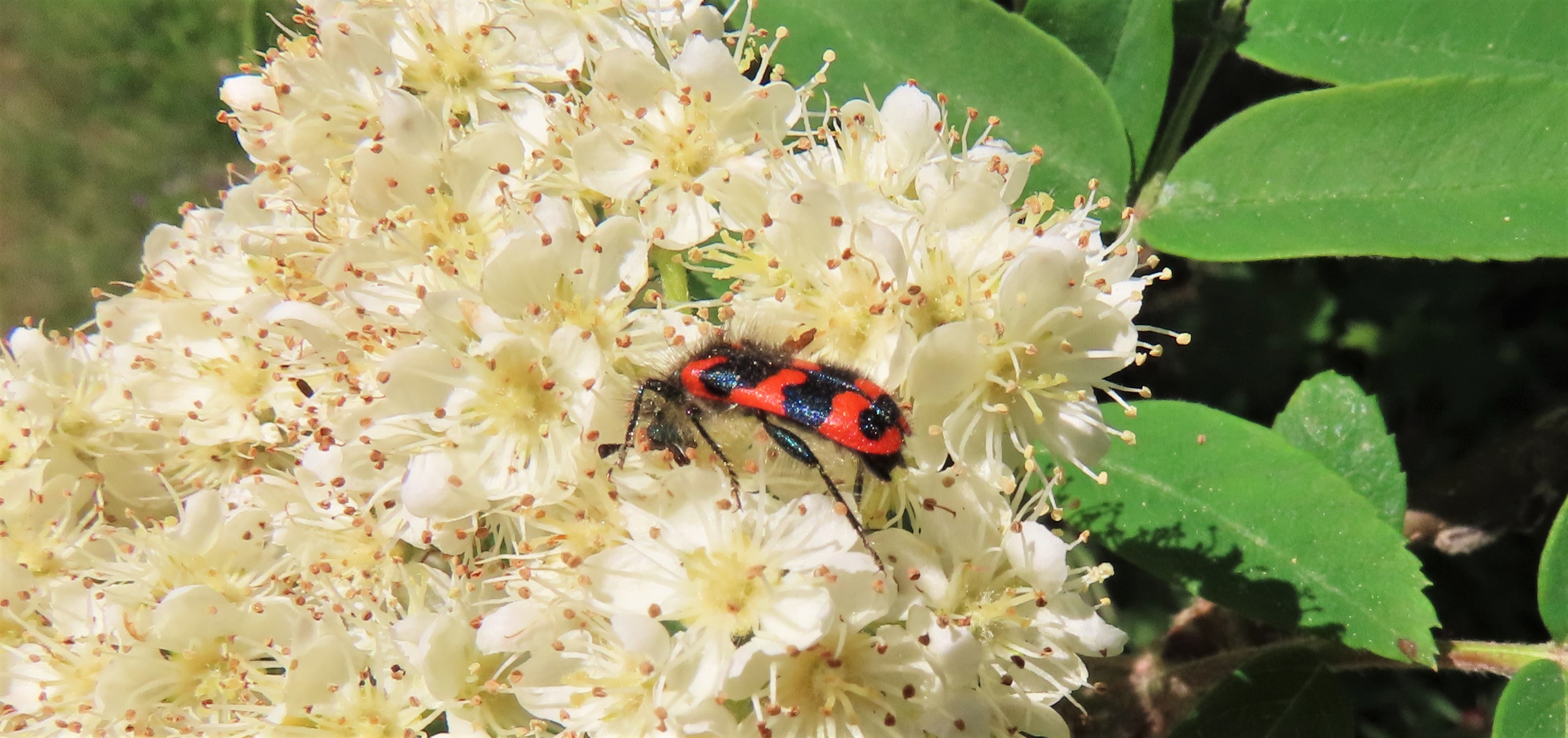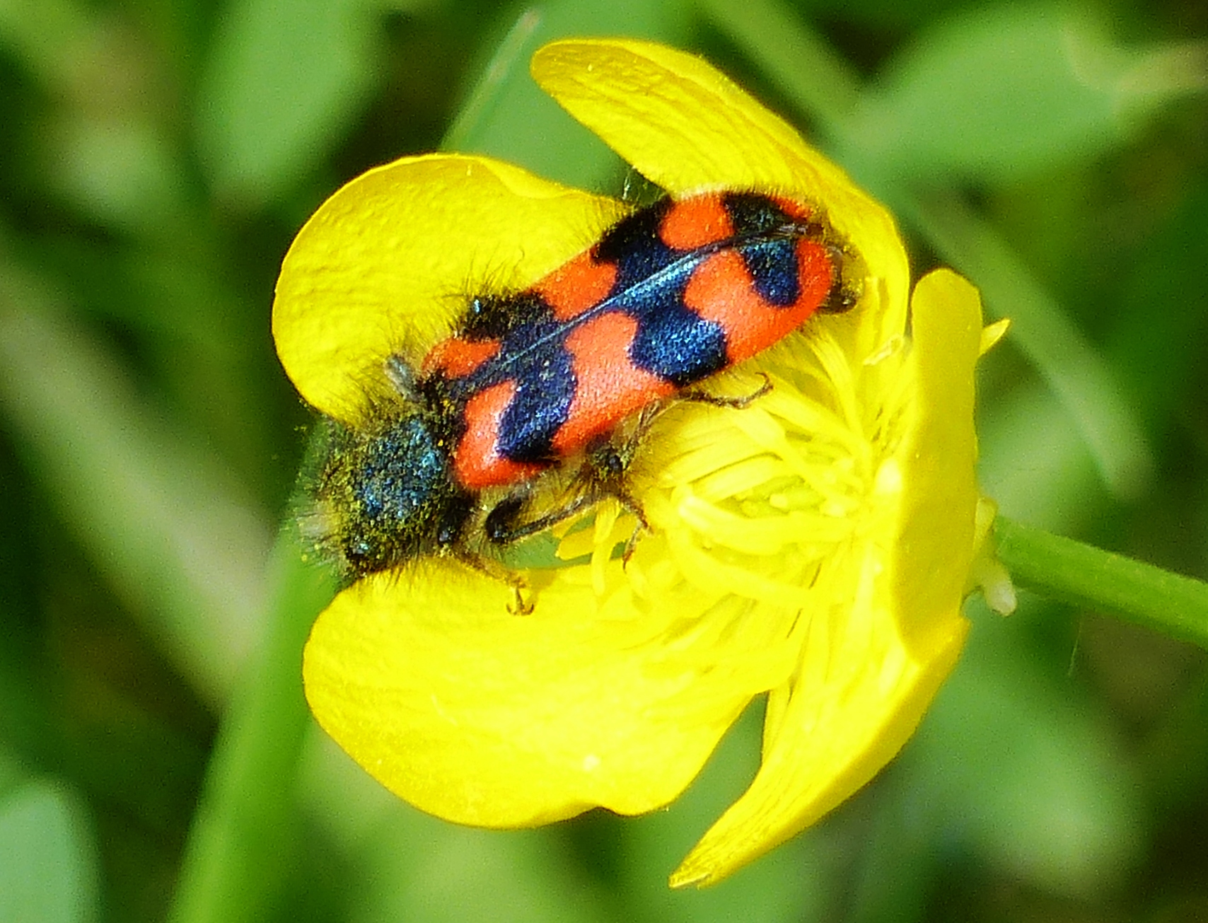 Zottiger Bienenkäfer (Trichodes alvearius (Fabricius, 1792)),Freital/Wurgwitz,Hammerbachaue,auf Weißdorn,Mai 2019 (© Manfred Wonka)( Bild vergrößern)