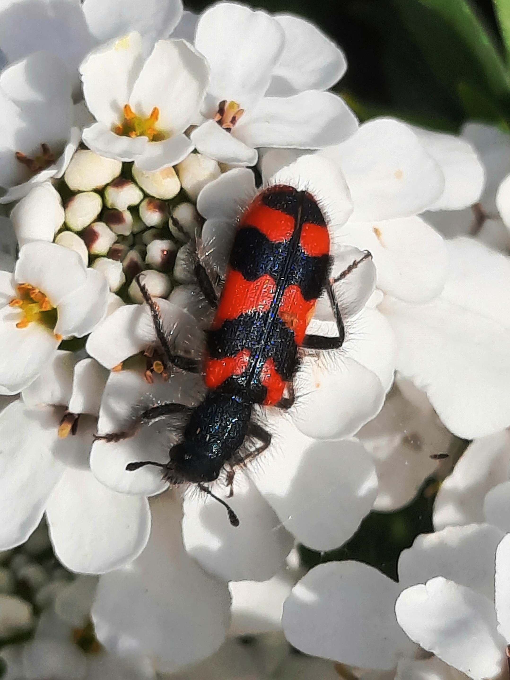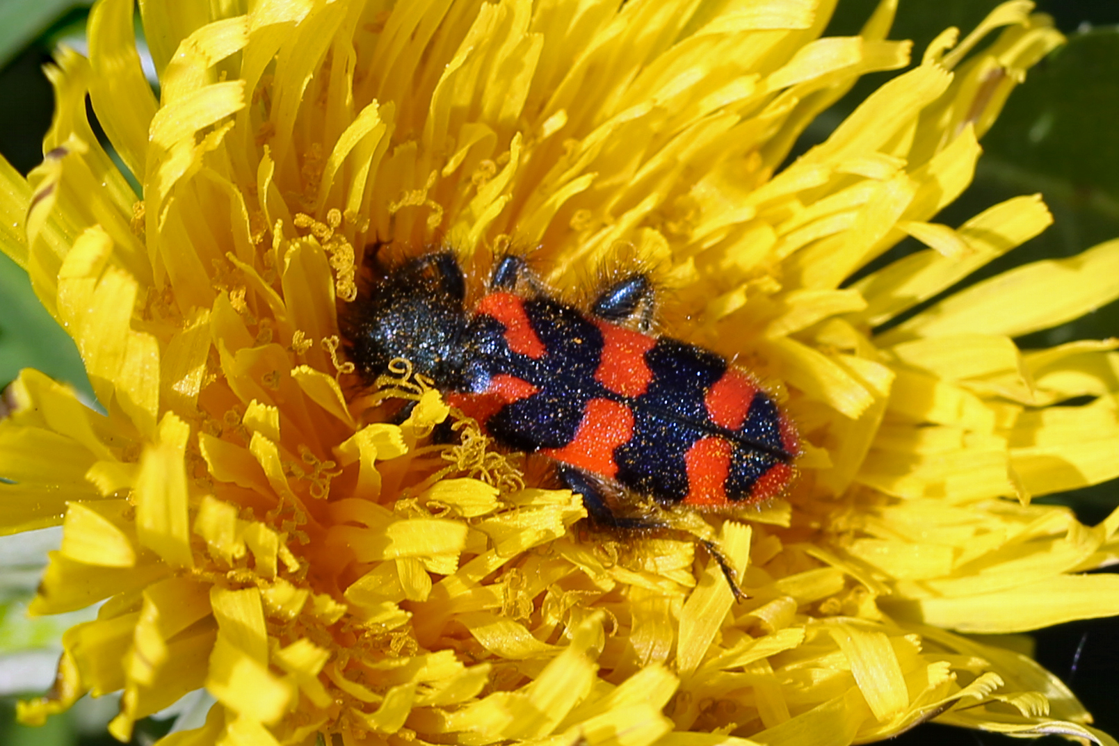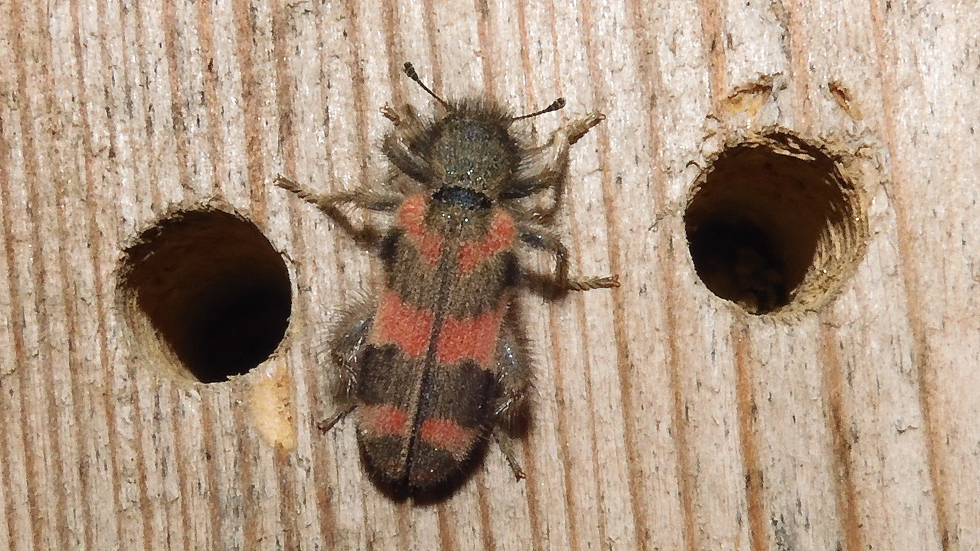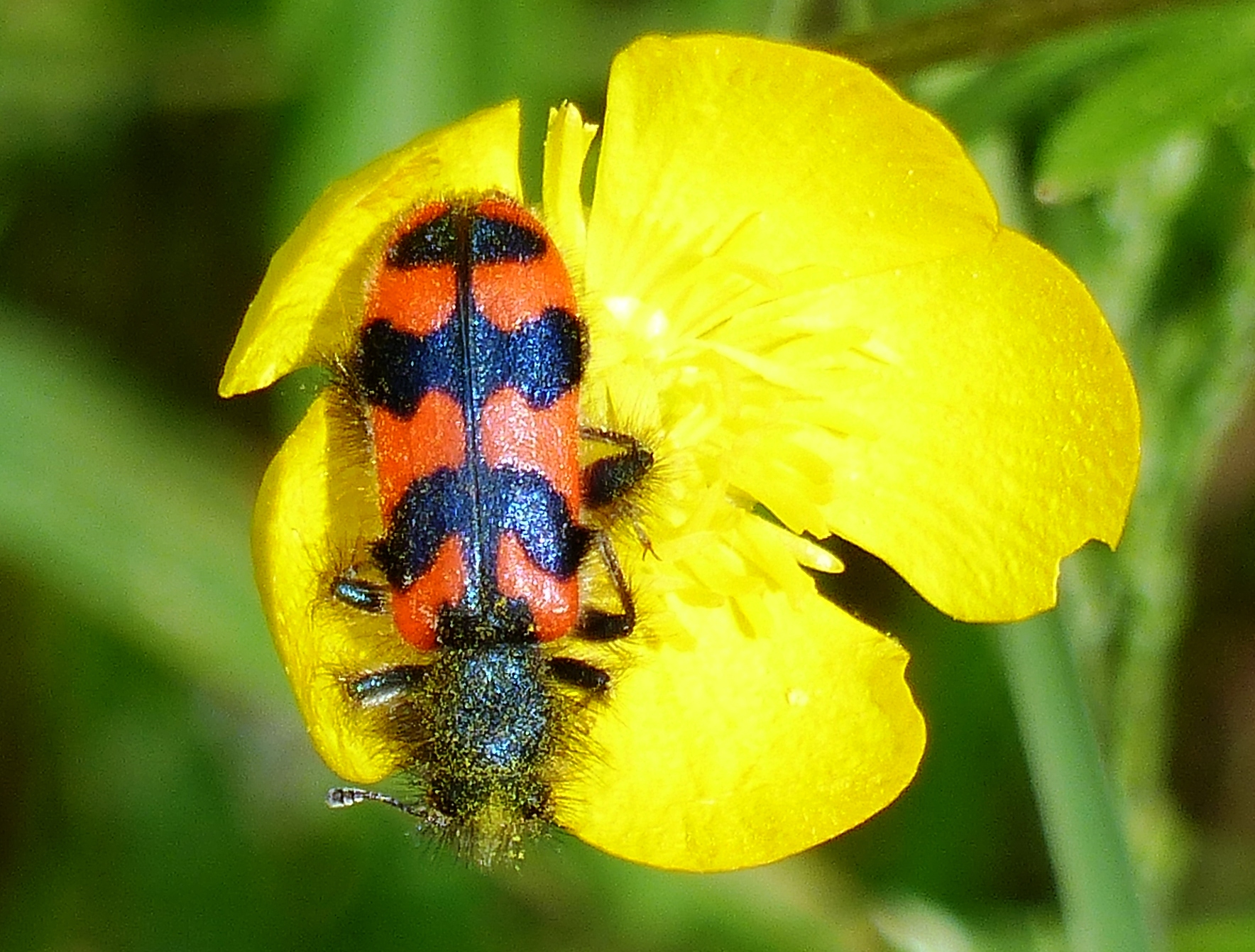 Zottiger Bienenkäfer (Trichodes alvearius (Fabricius, 1792)),Freital/Wurgwitz,Hammerbachaue,auf Weißdorn,Mai 2019 (© Manfred Wonka)( Bild vergrößern)