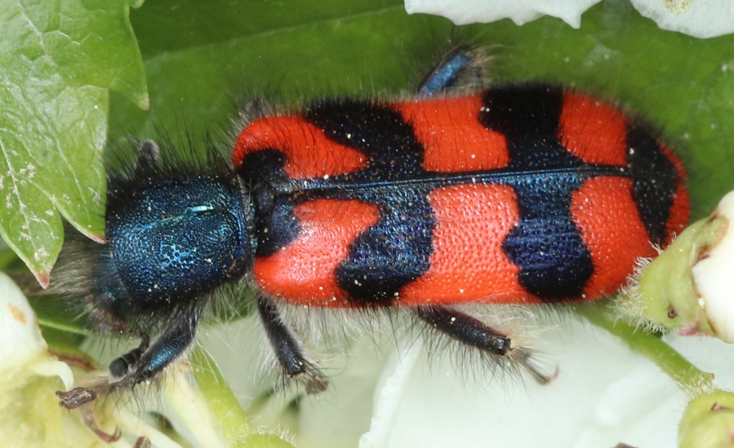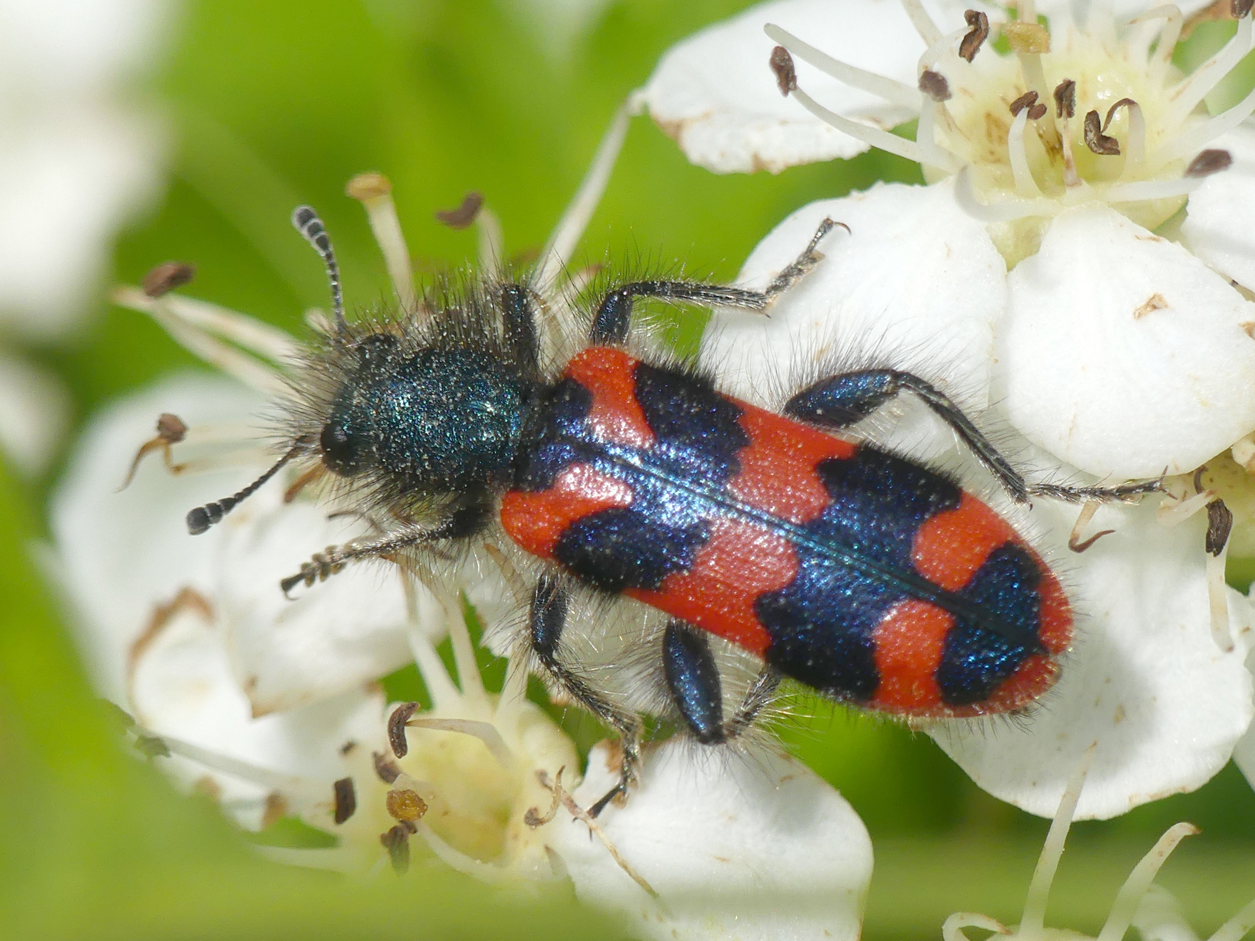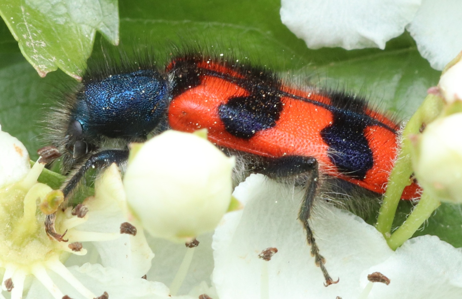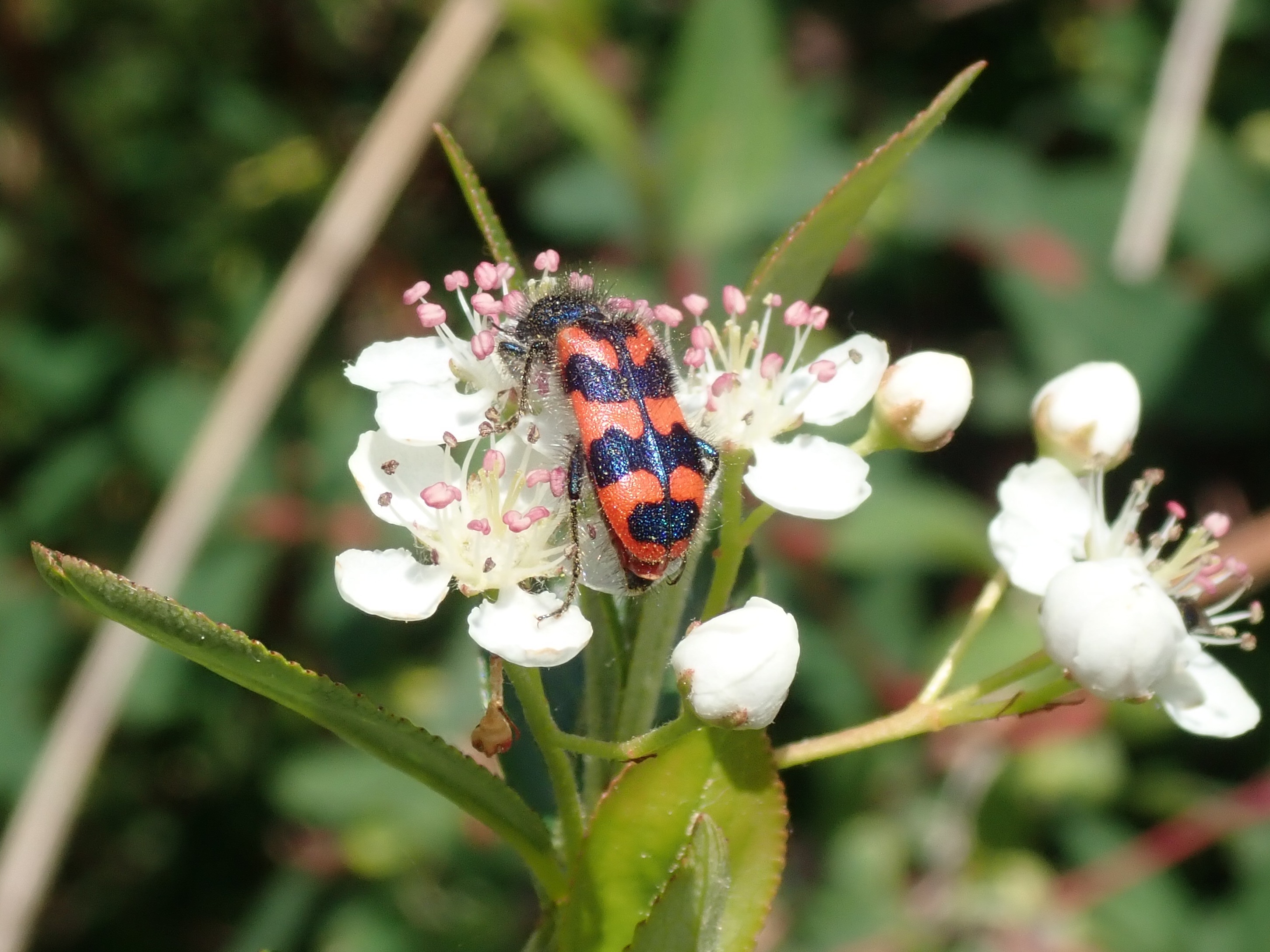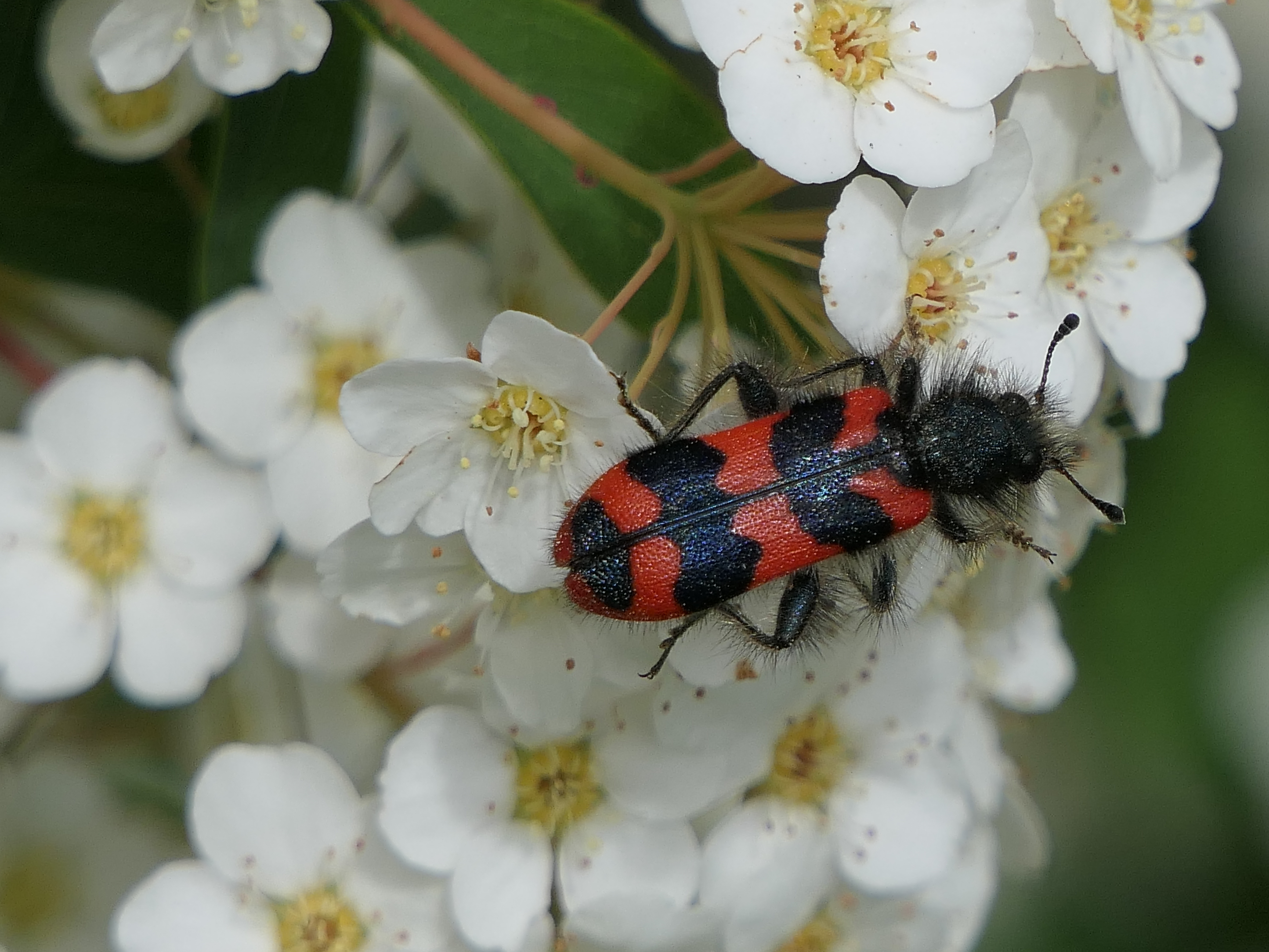 Zottiger Bienenkäfer (Trichodes alvearius (Fabricius, 1792)),Freital/Wurgwitz,Hammerbachaue,auf Weißdorn,Mai 2019
