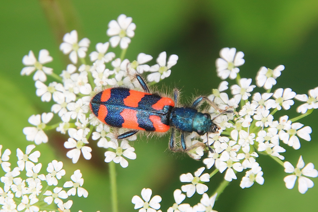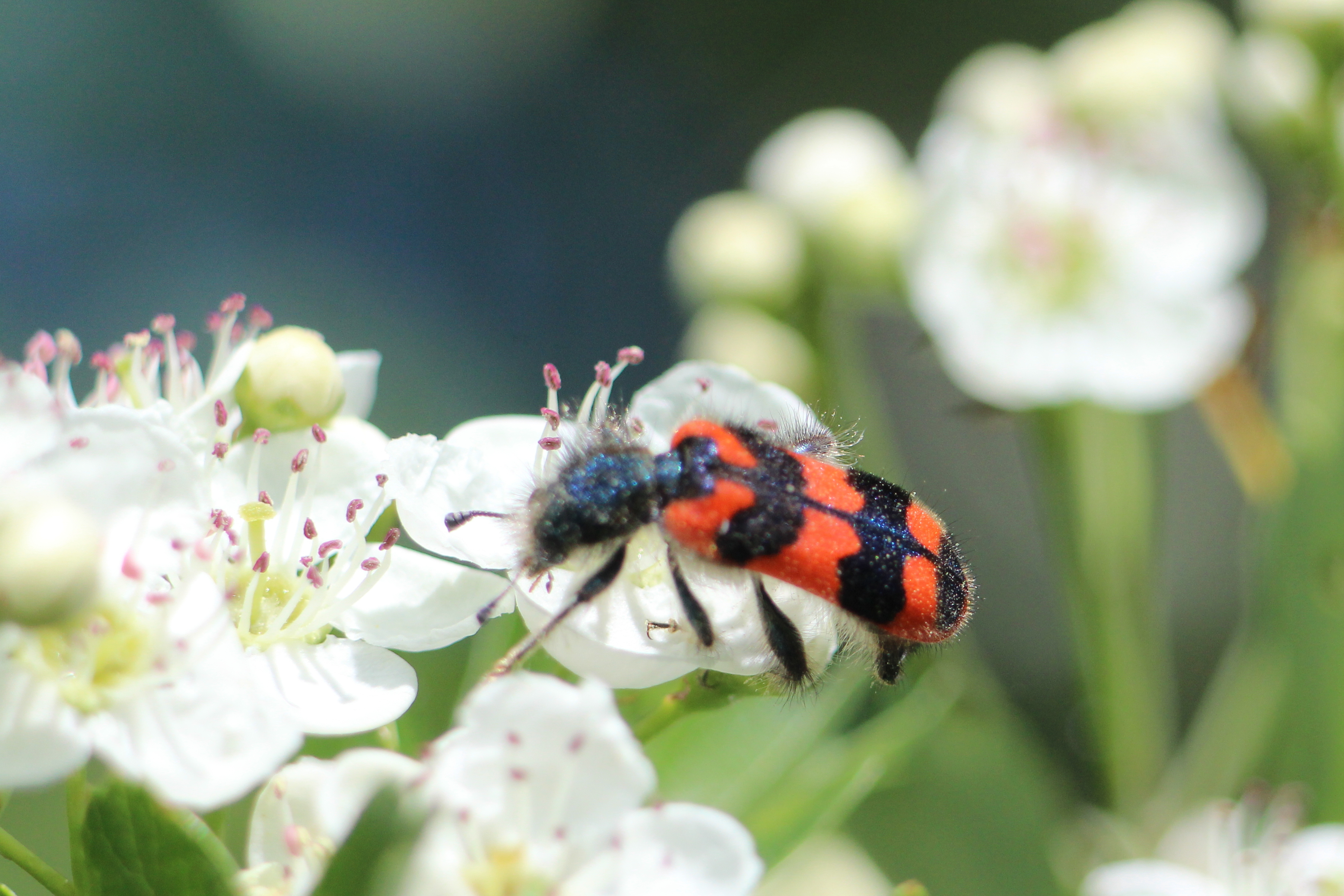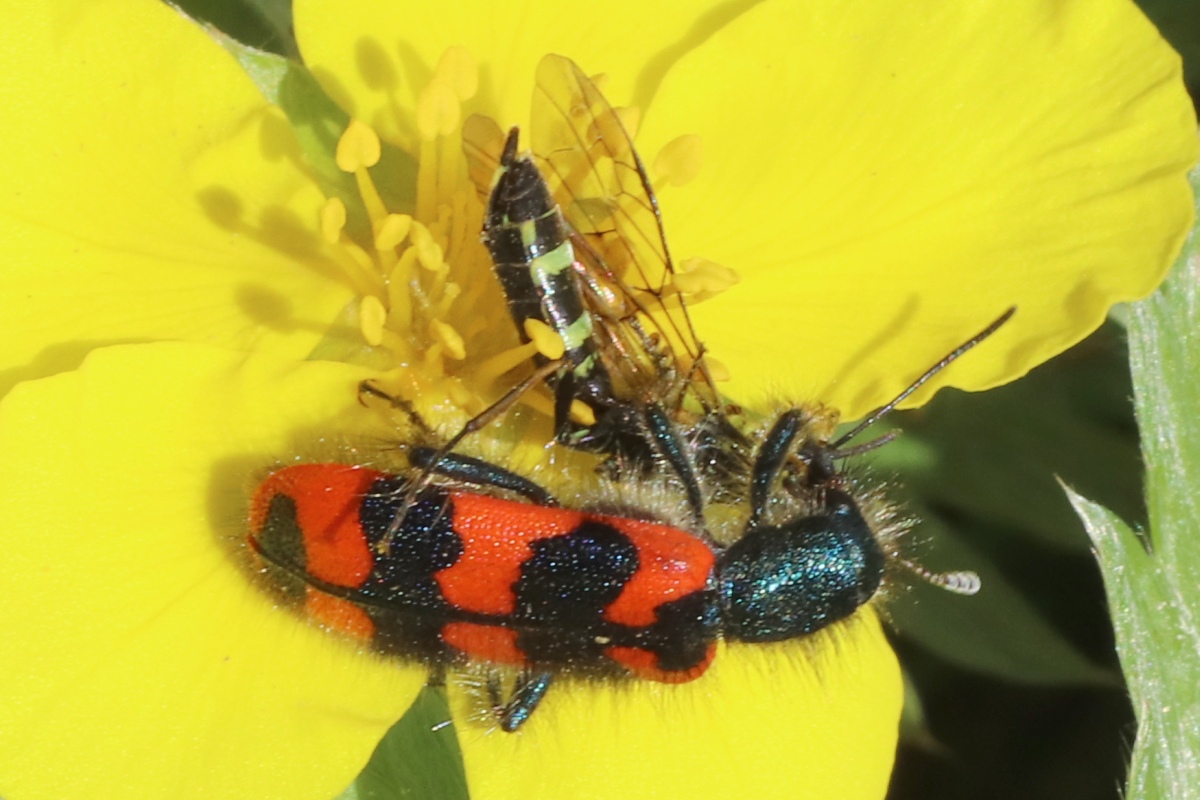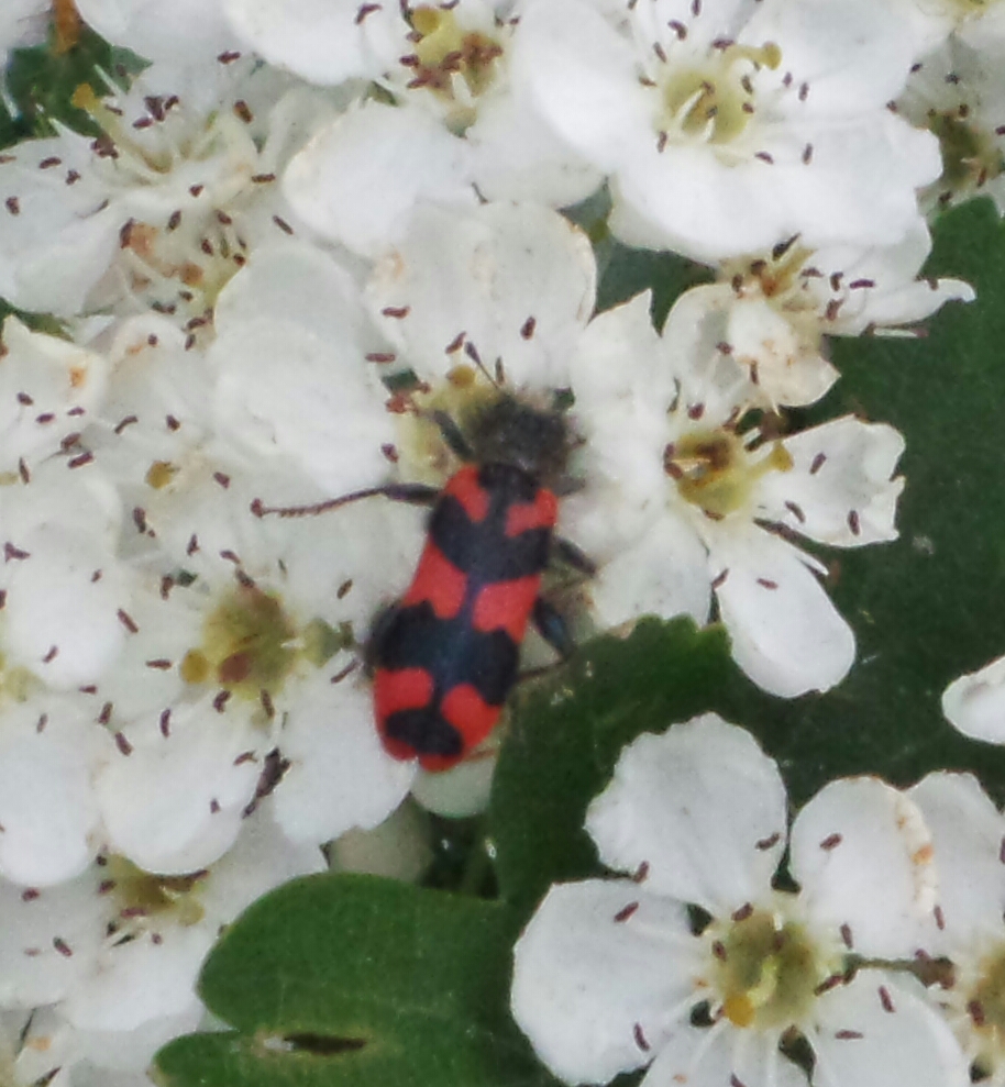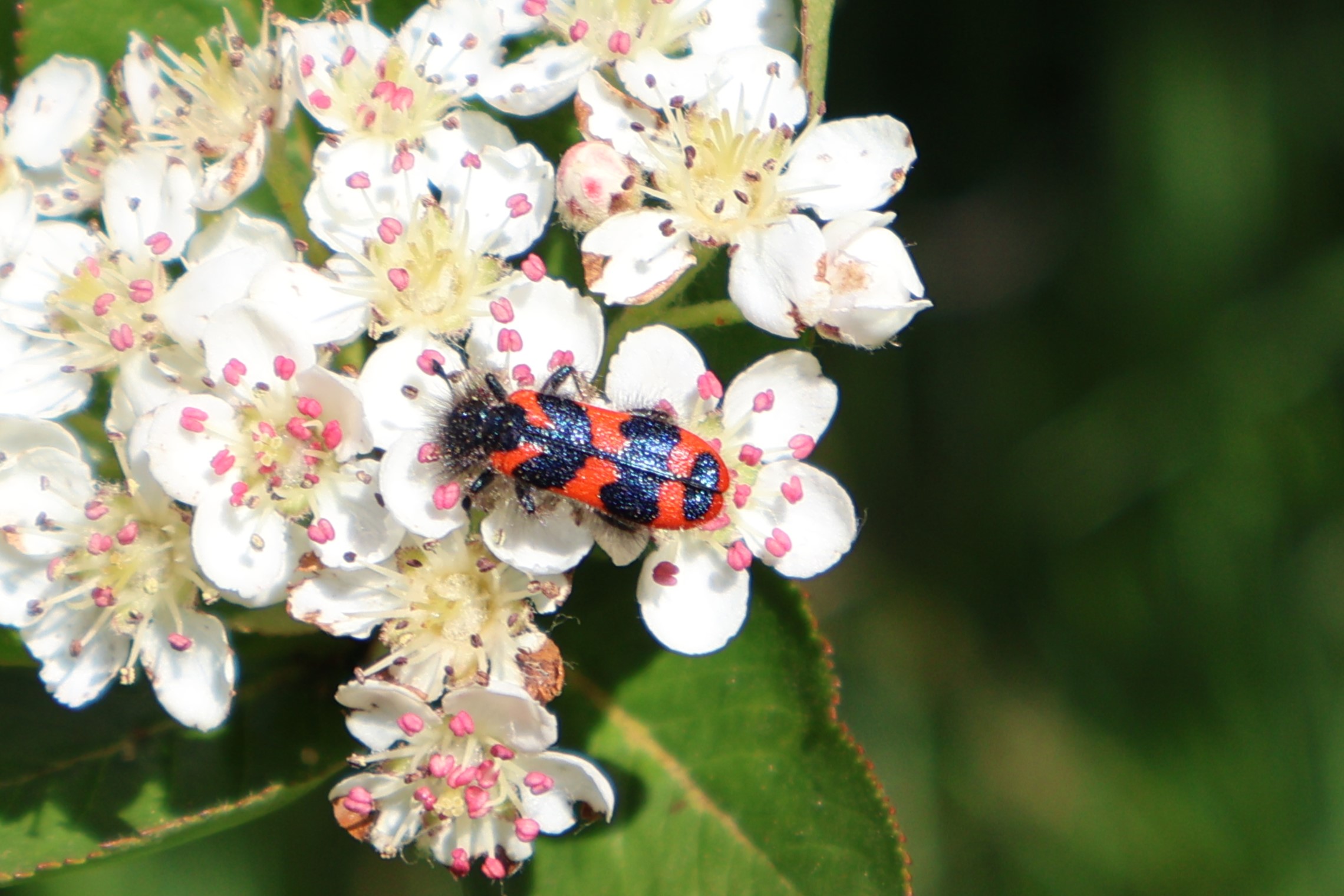 Zottiger Bienenkäfer (Trichodes alvearius (Fabricius, 1792)),Freital/Wurgwitz,Hammerbachaue,auf Weißdorn,Mai 2019
