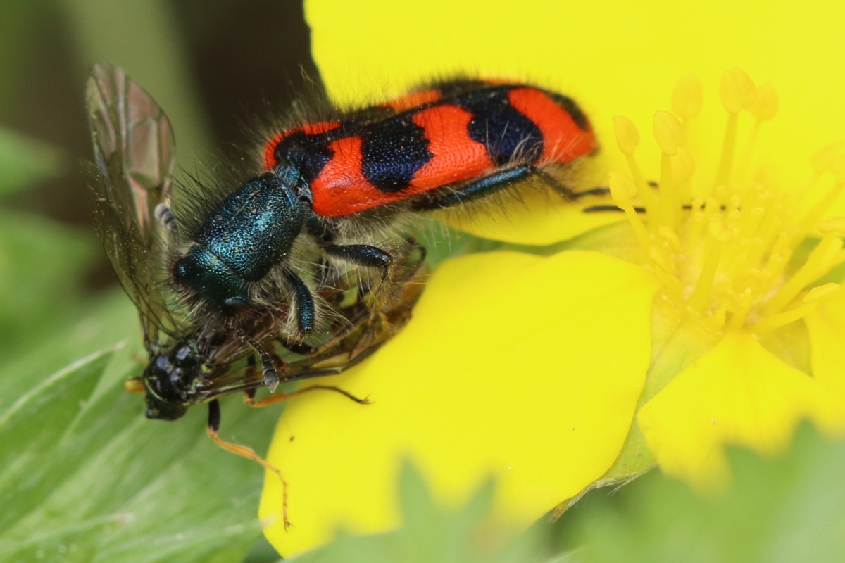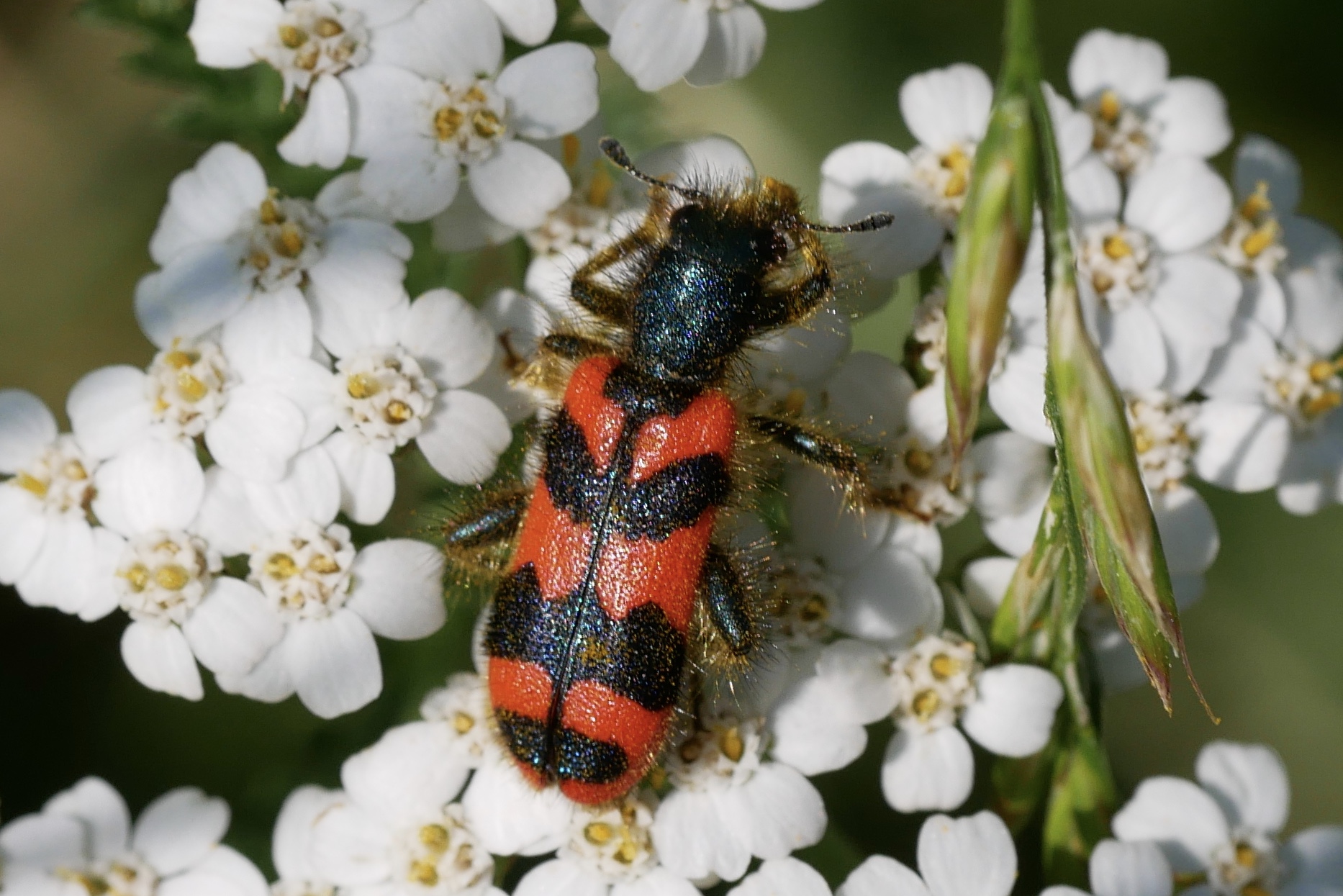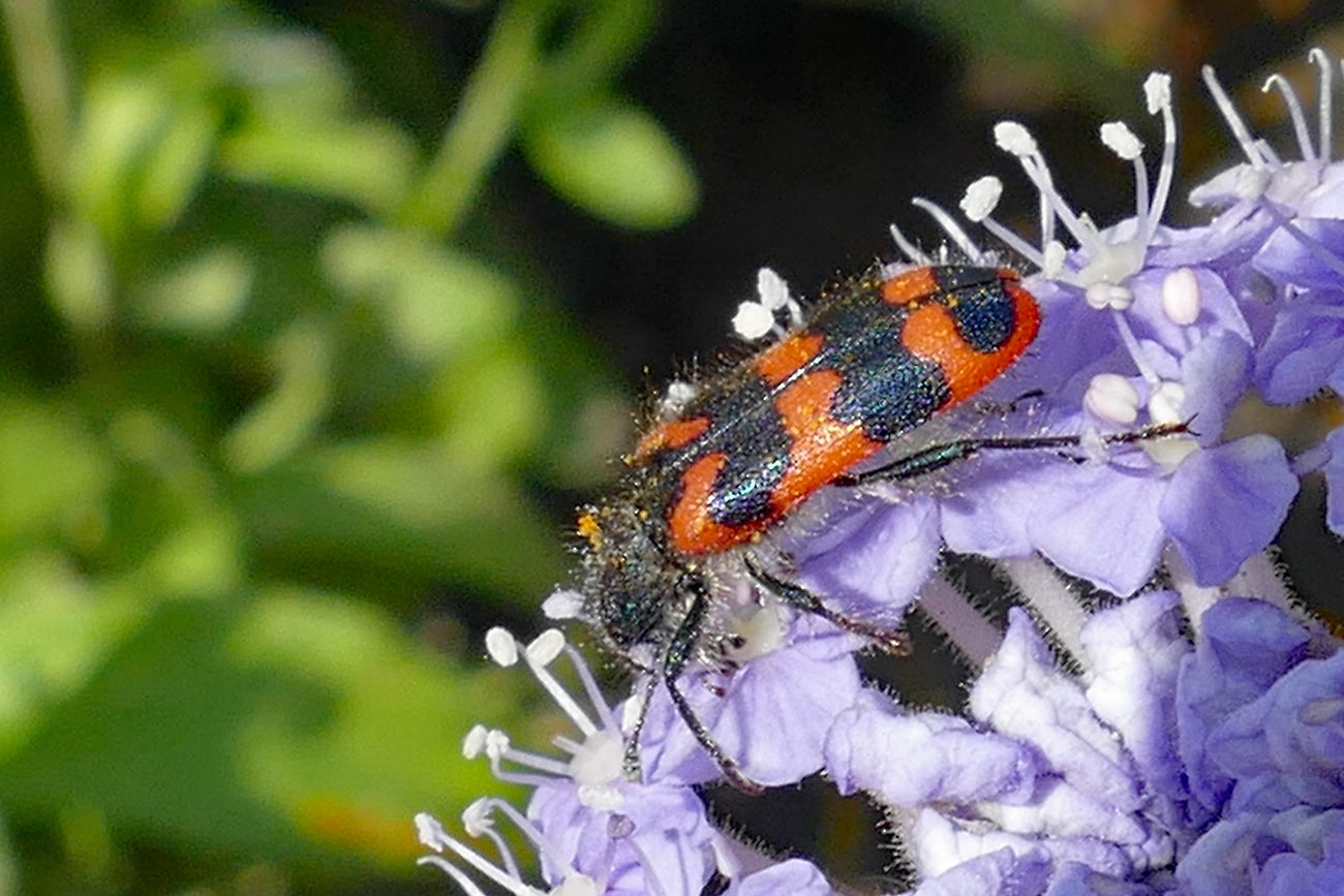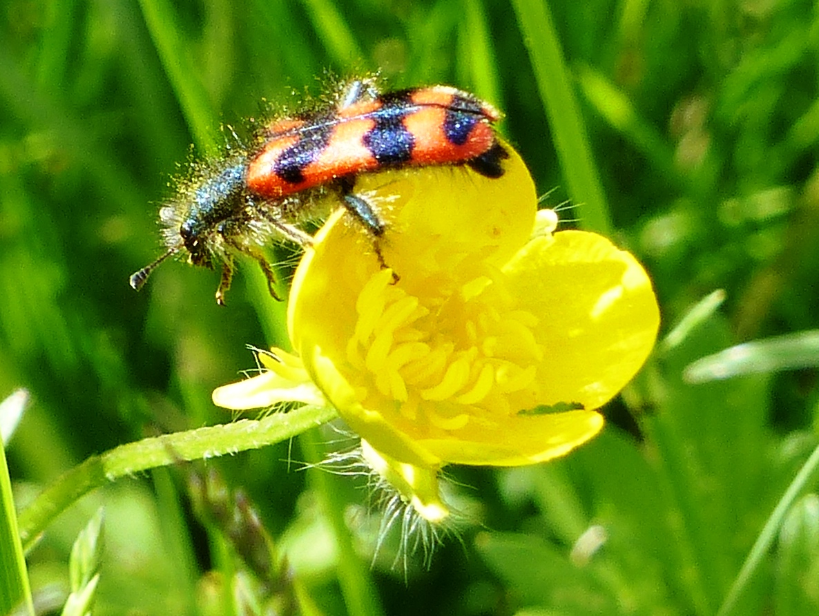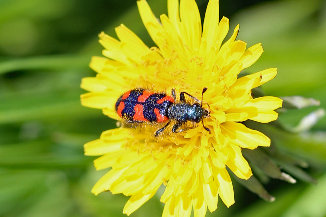 Zottiger Bienenkäfer (Trichodes alvearius (Fabricius, 1792)),Freital/Wurgwitz,Hammerbachaue,auf Weißdorn,Mai 2019