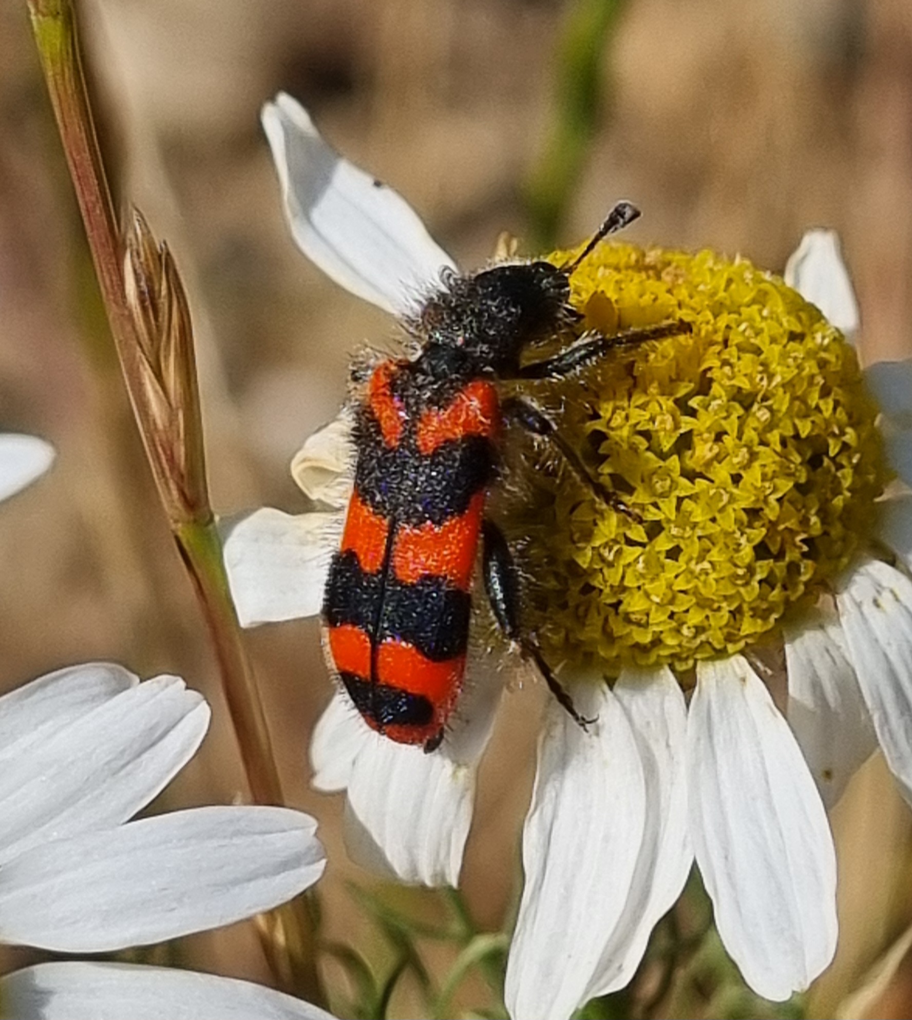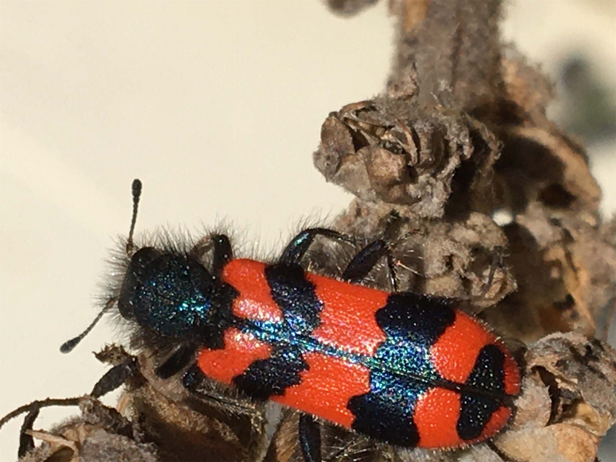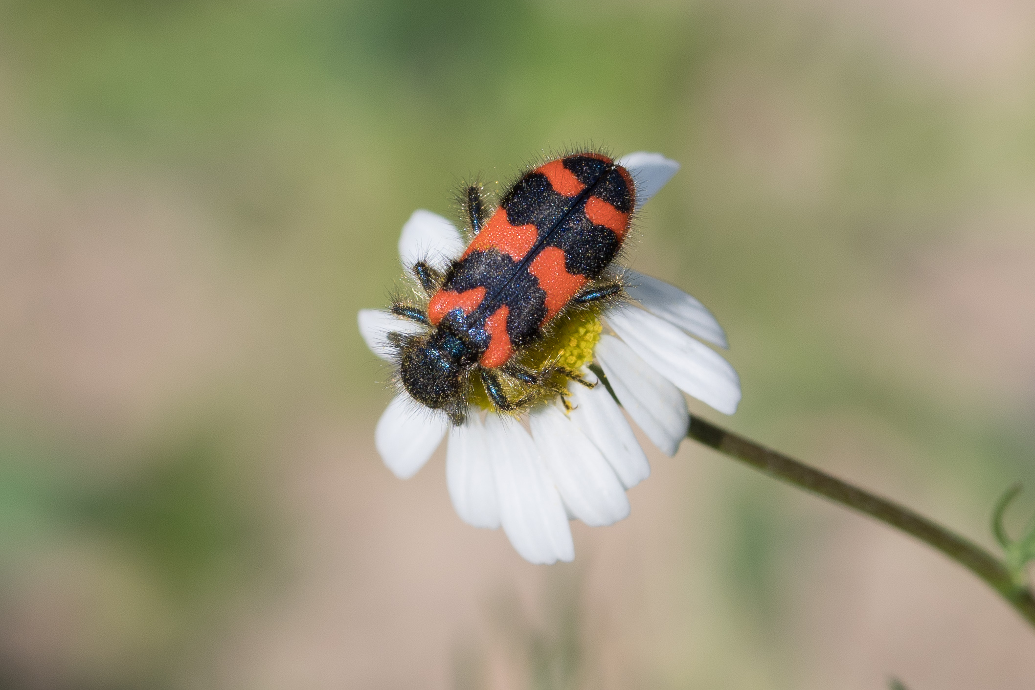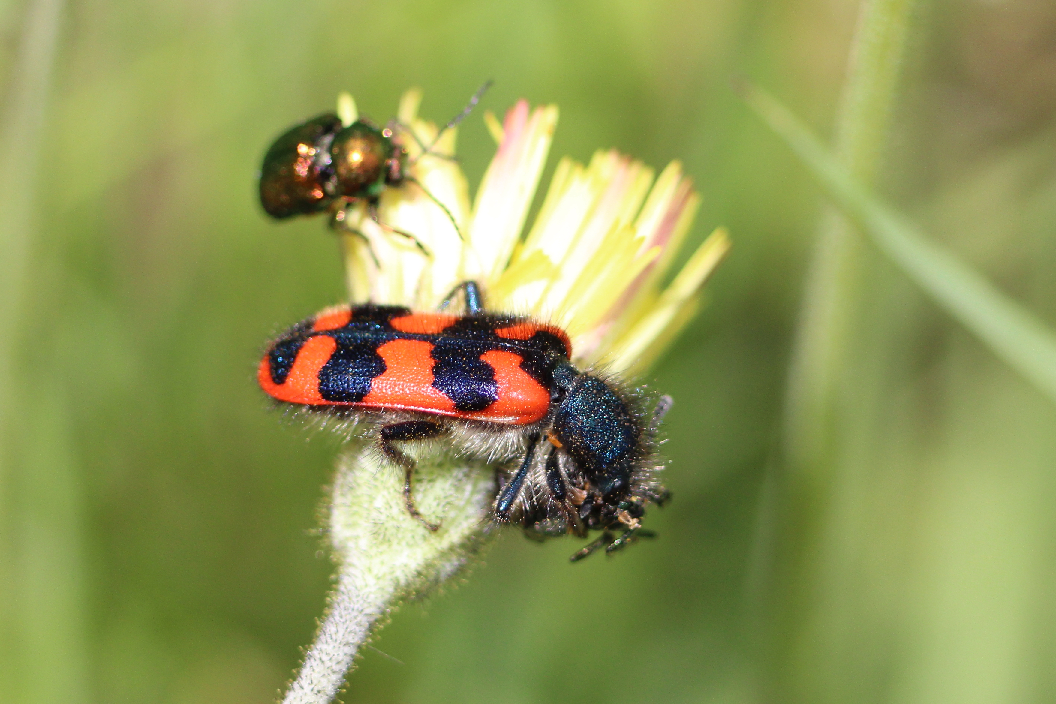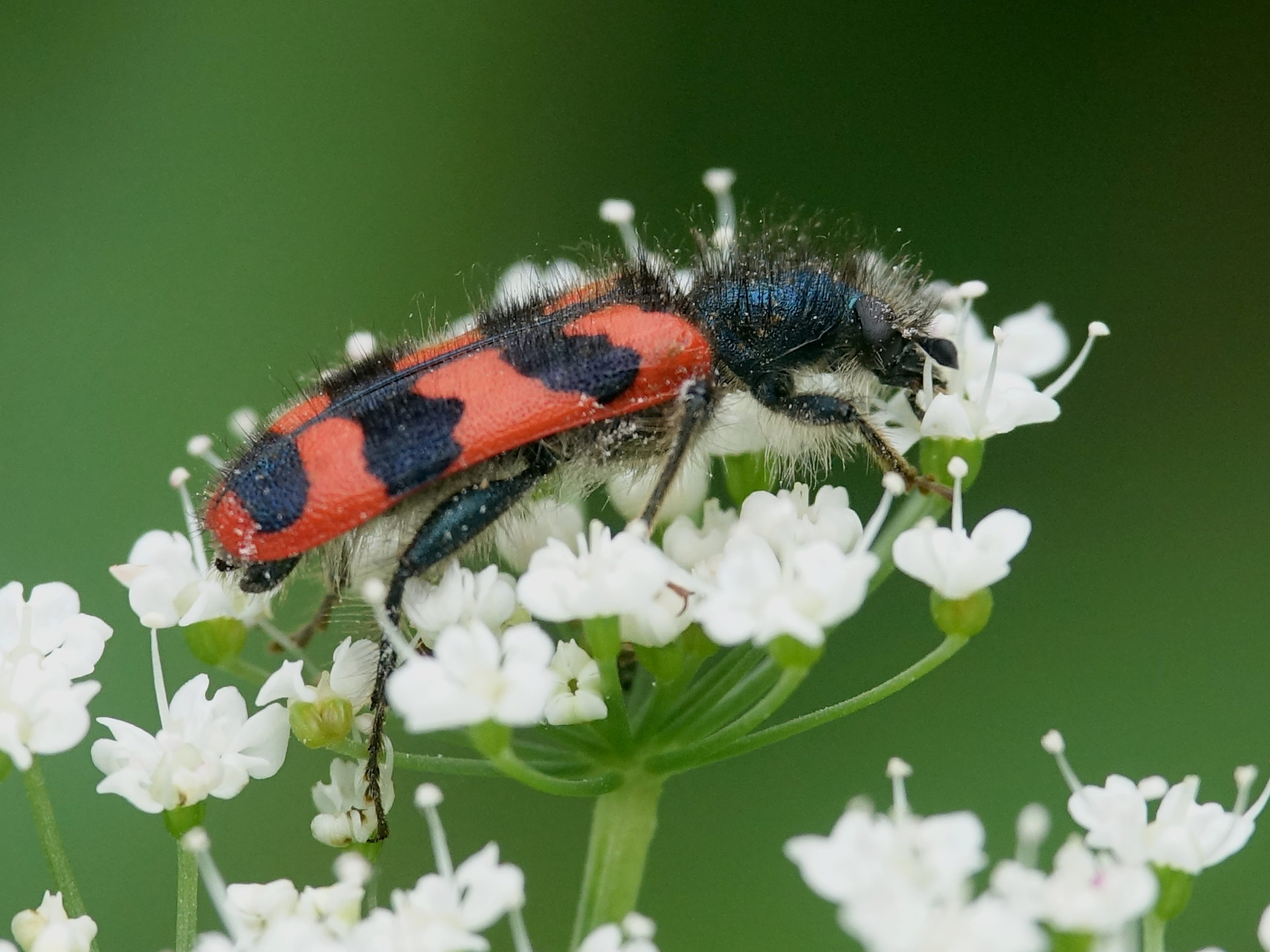 Zottiger Bienenkäfer (Trichodes alvearius (Fabricius, 1792)),Freital/Wurgwitz,Hammerbachaue,auf Weißdorn,Mai 2019