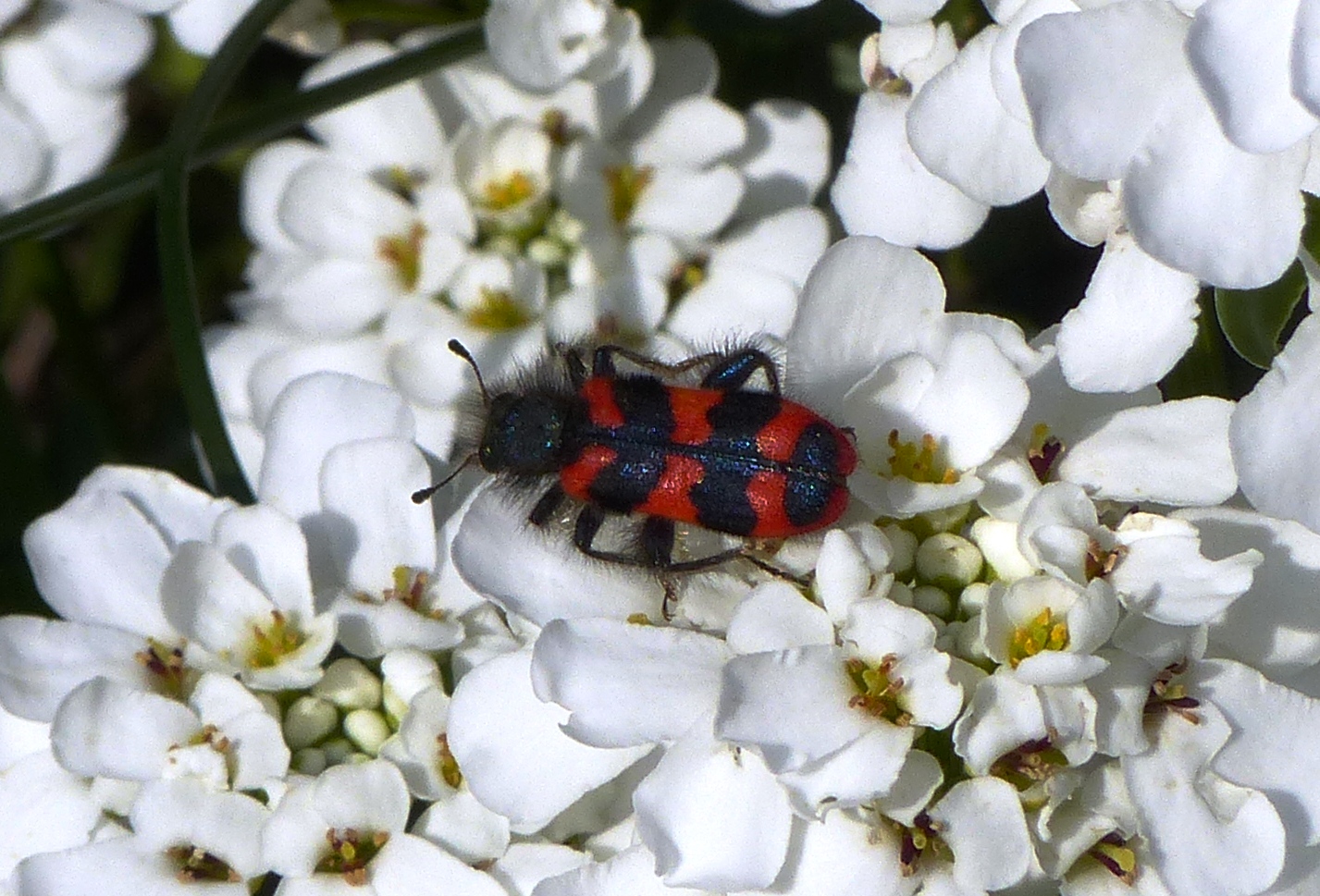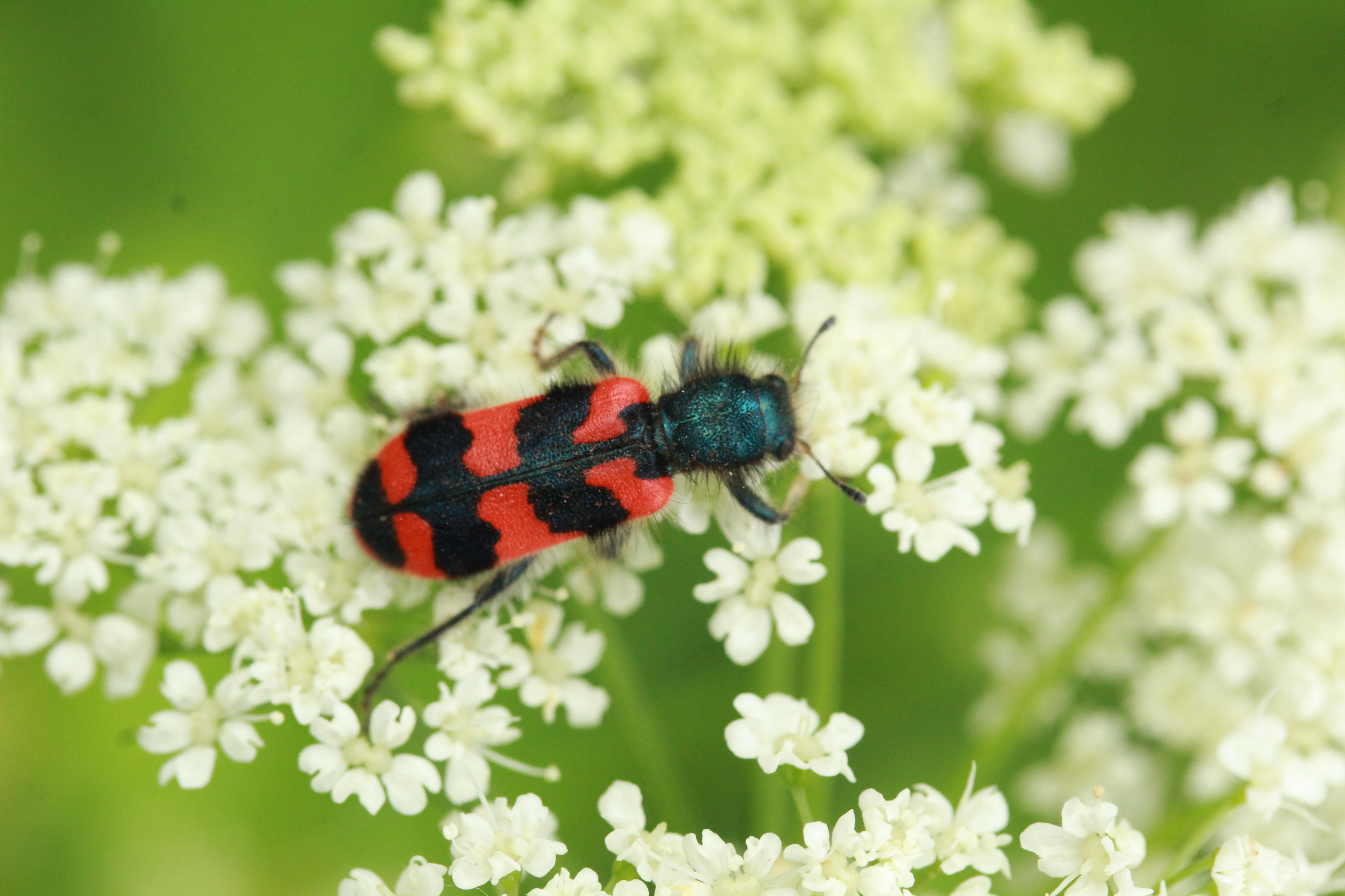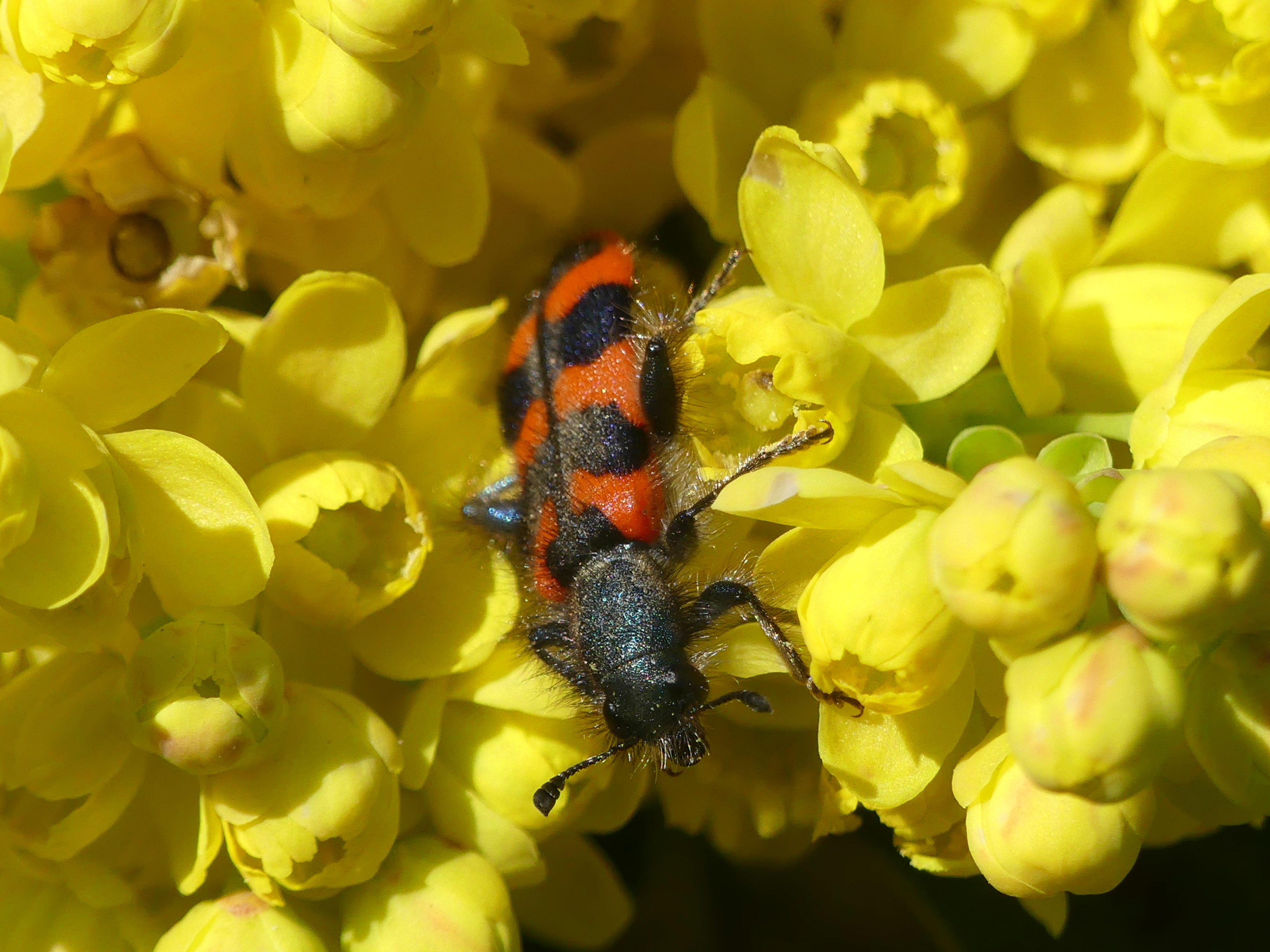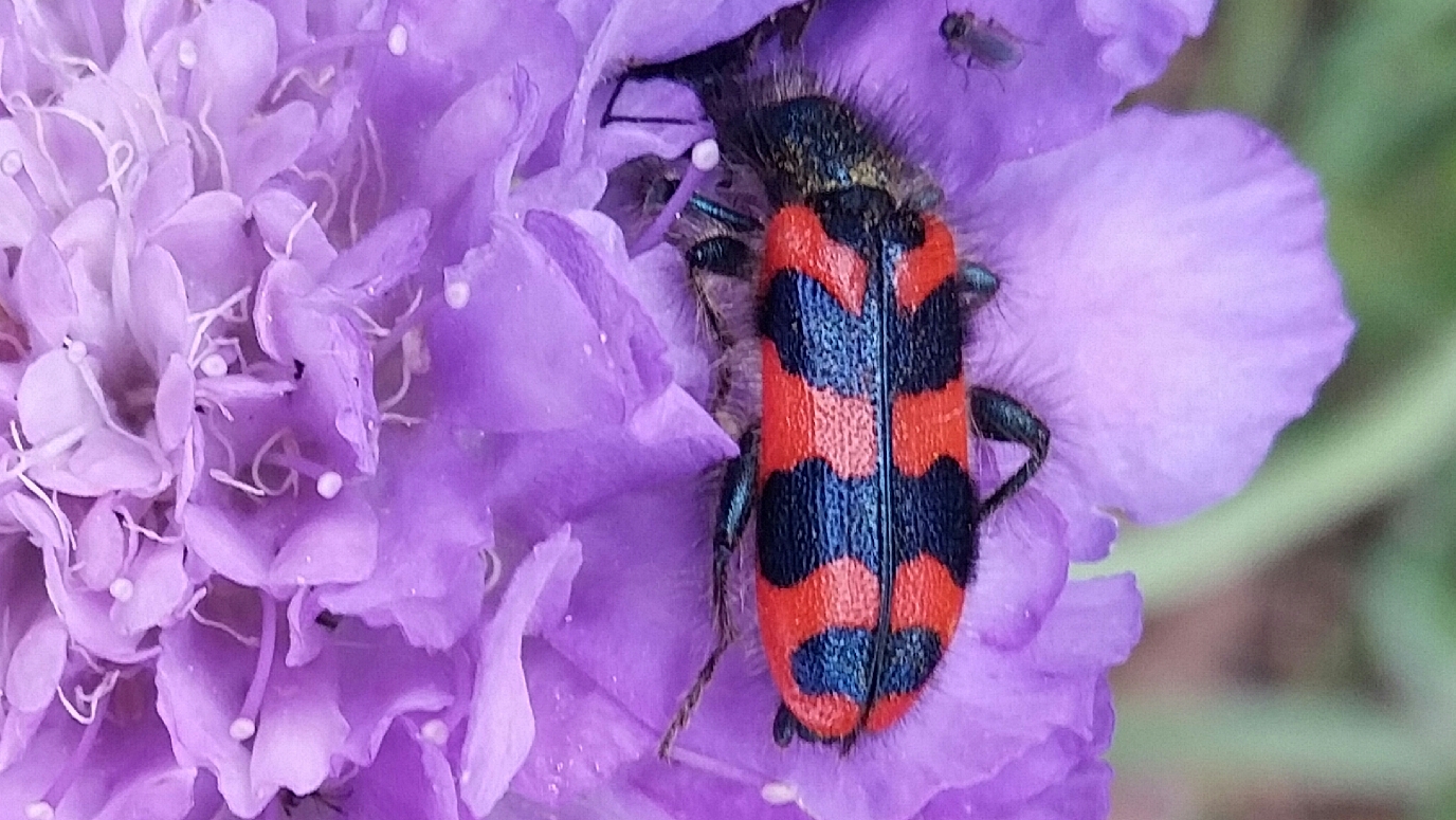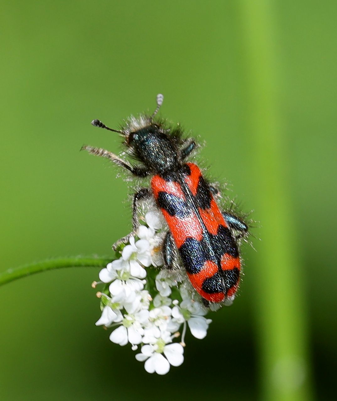 Zottiger Bienenkäfer (Trichodes alvearius (Fabricius, 1792)),Freital/Wurgwitz,Hammerbachaue,auf Weißdorn,Mai 2019