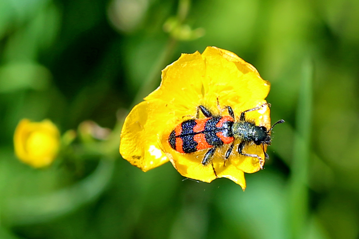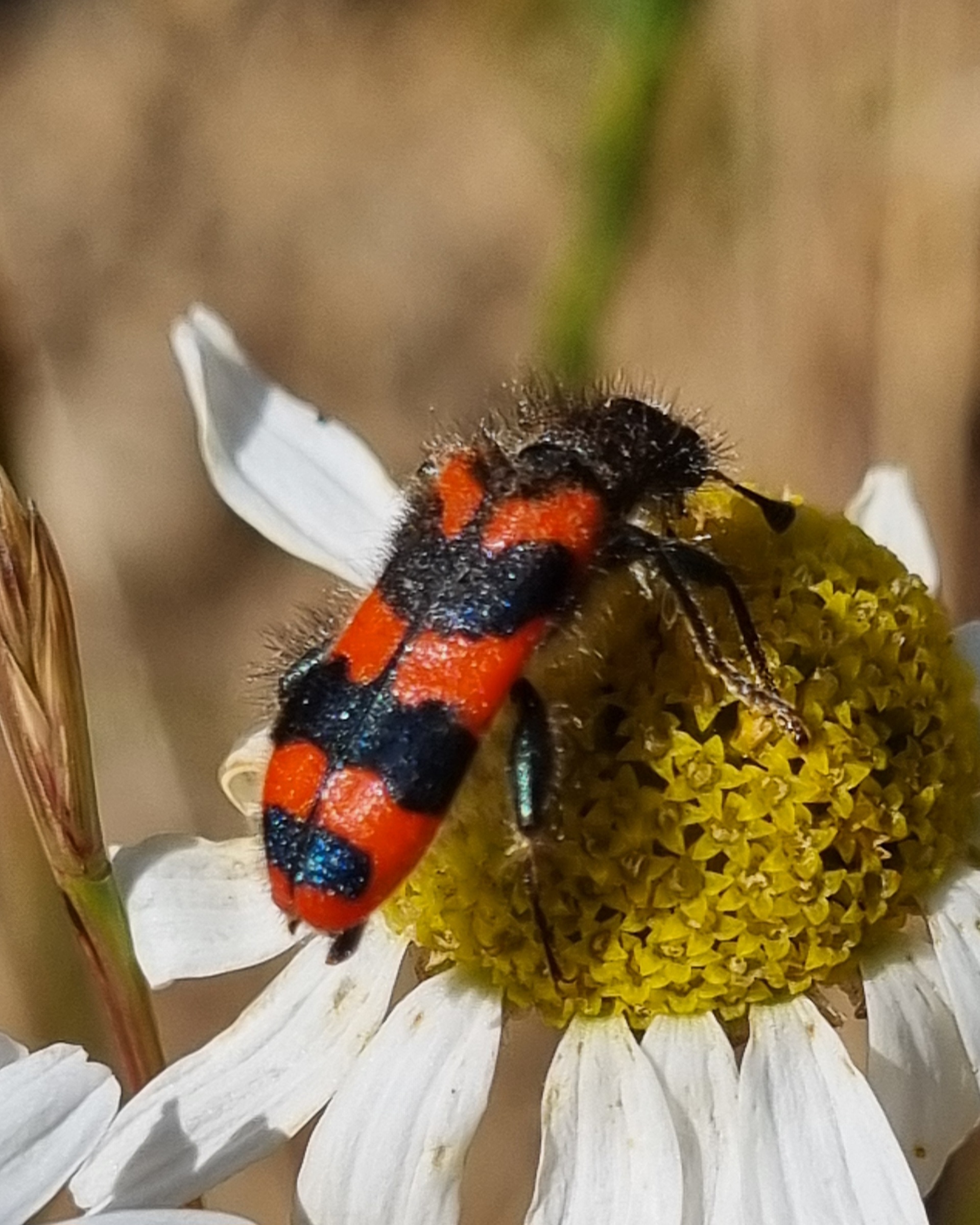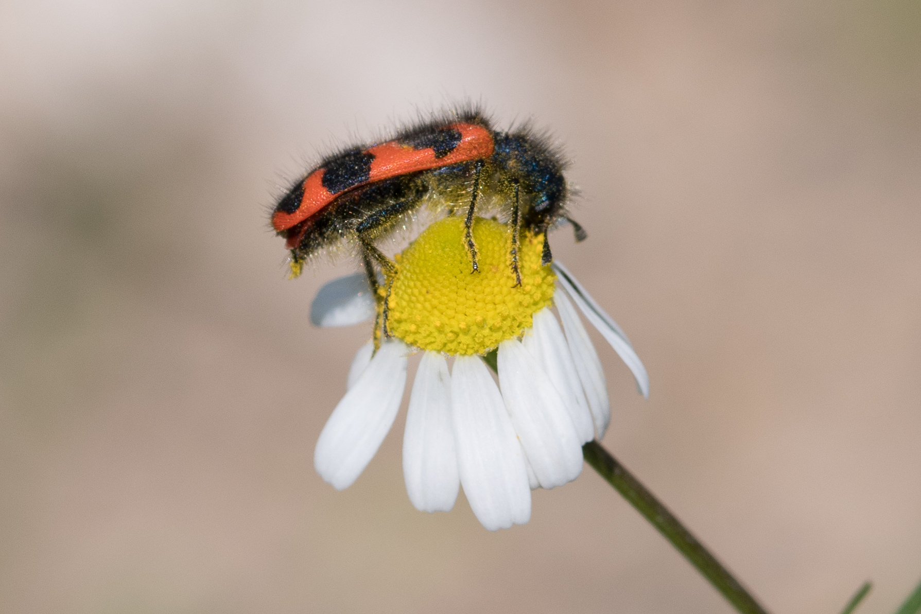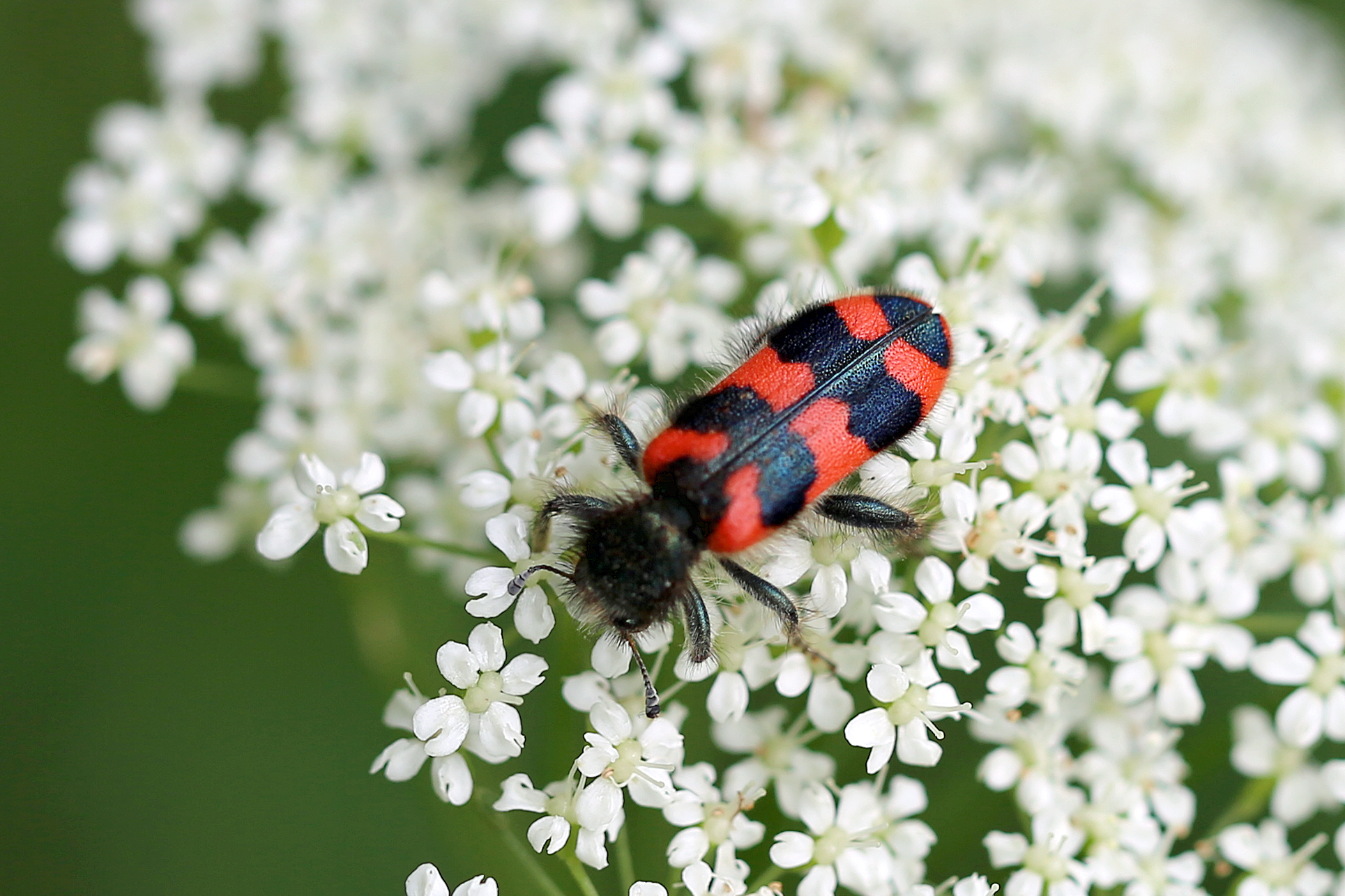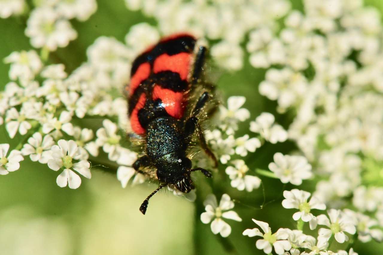 Zottiger Bienenkäfer (Trichodes alvearius (Fabricius, 1792)),Freital/Wurgwitz,Hammerbachaue,auf Weißdorn,Mai 2019