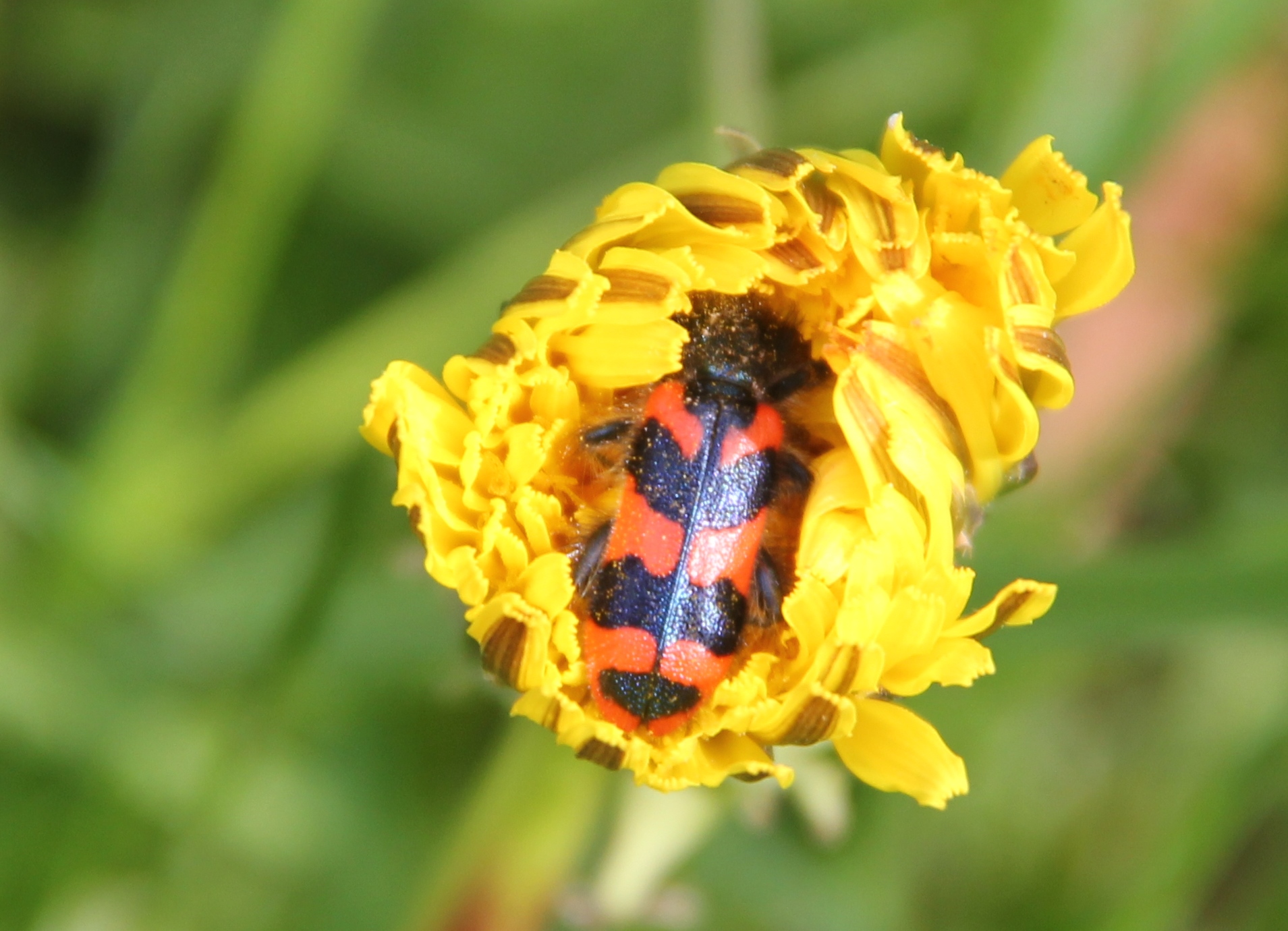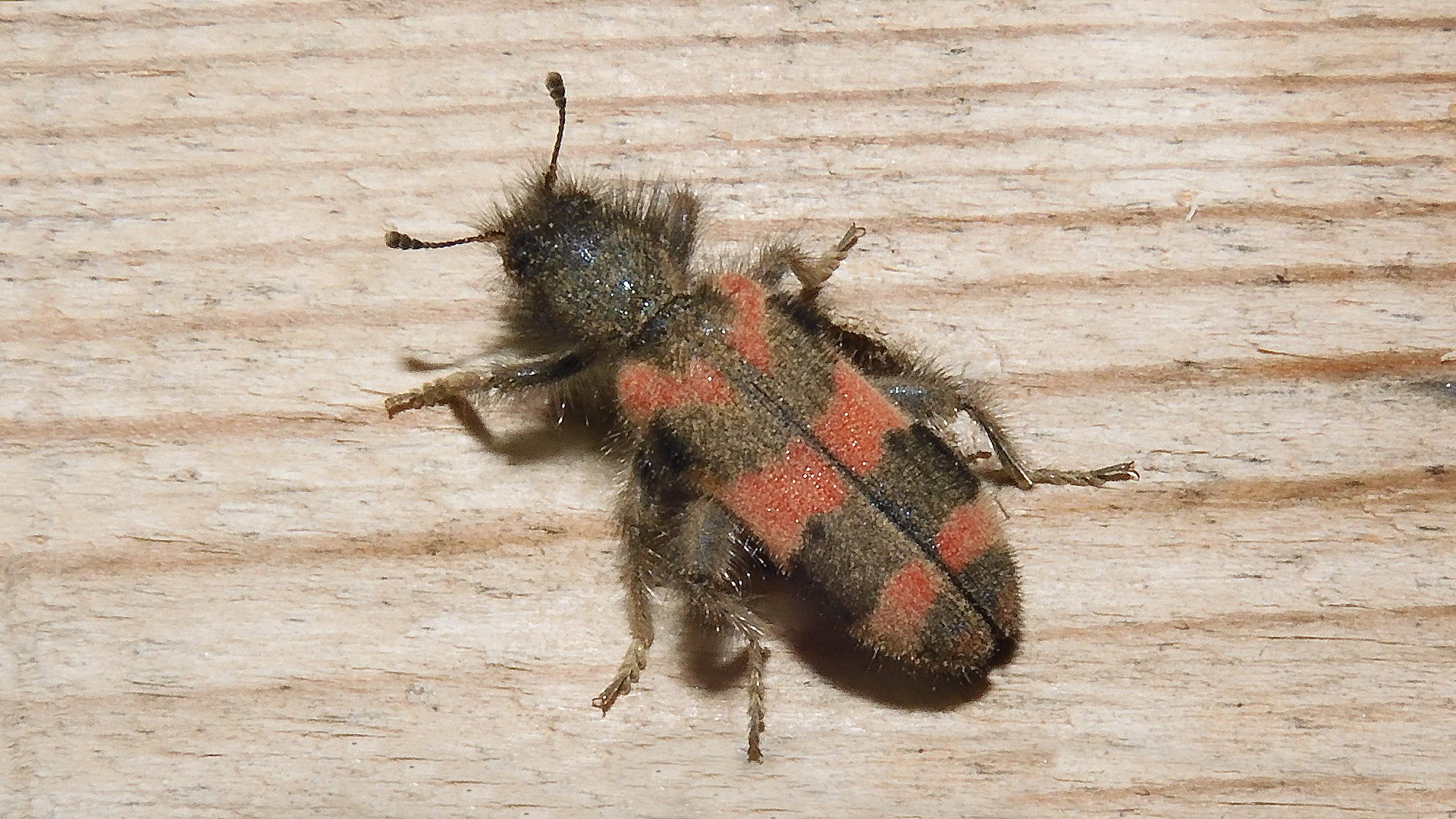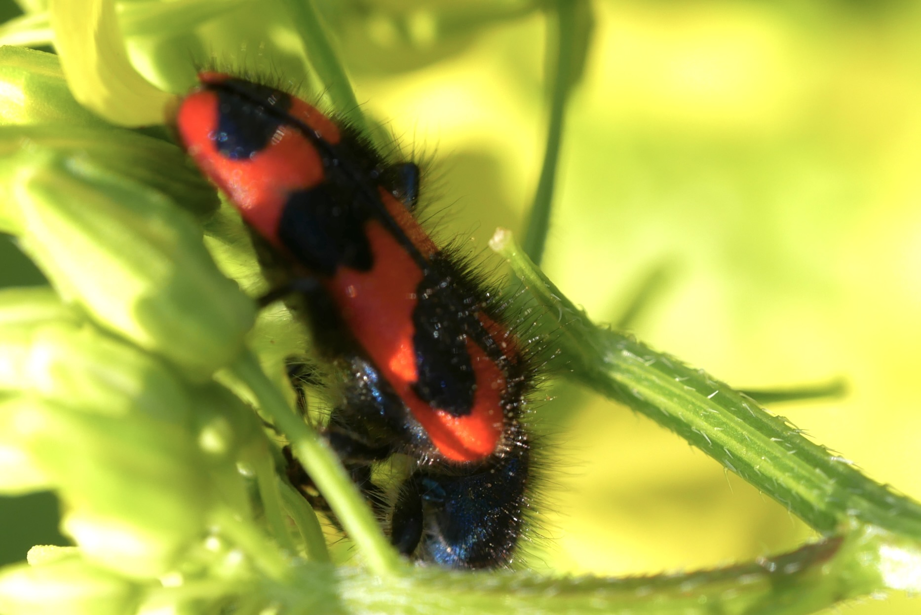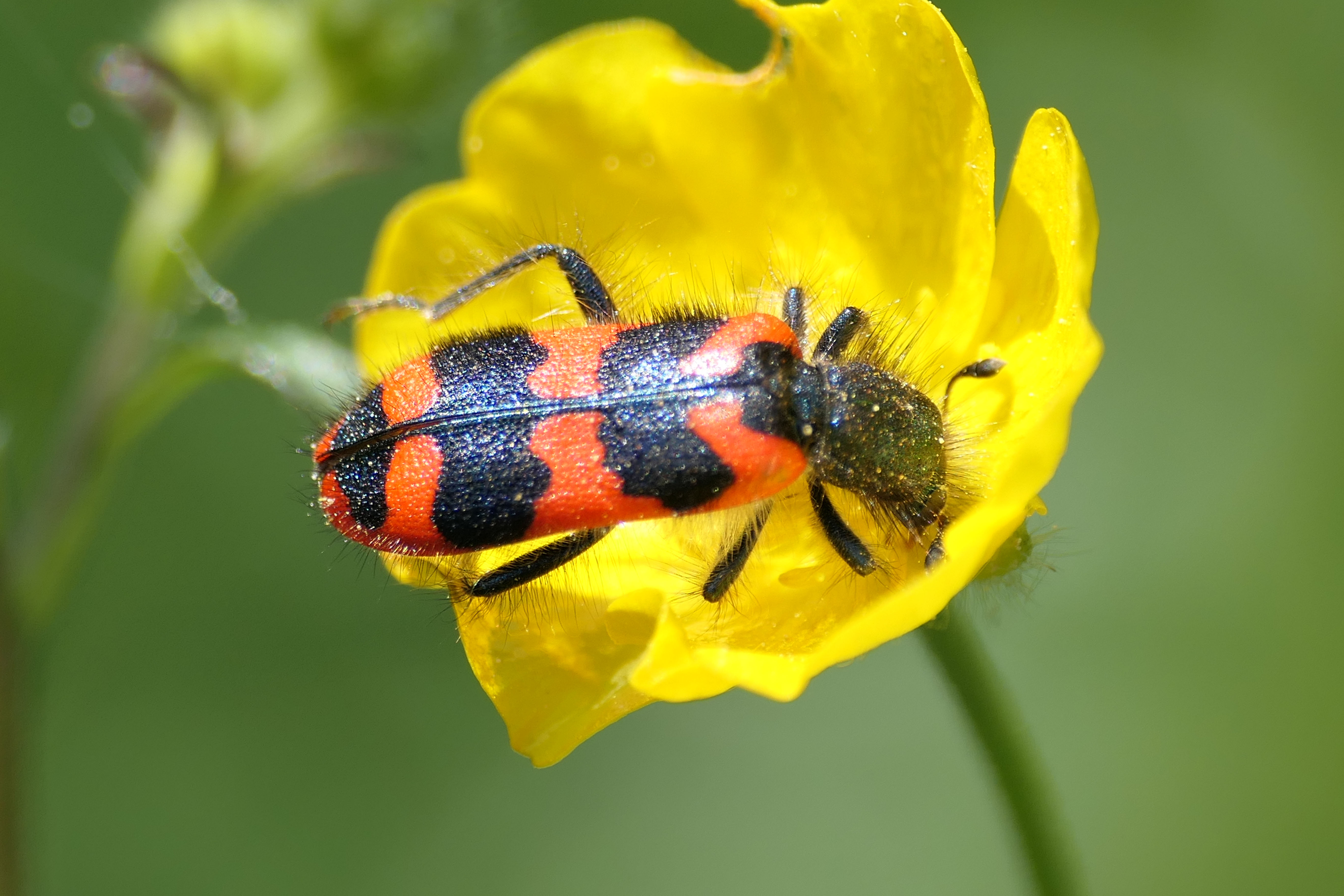 Zottiger Bienenkäfer (Trichodes alvearius (Fabricius, 1792)),Freital/Wurgwitz,Hammerbachaue,auf Weißdorn,Mai 2019