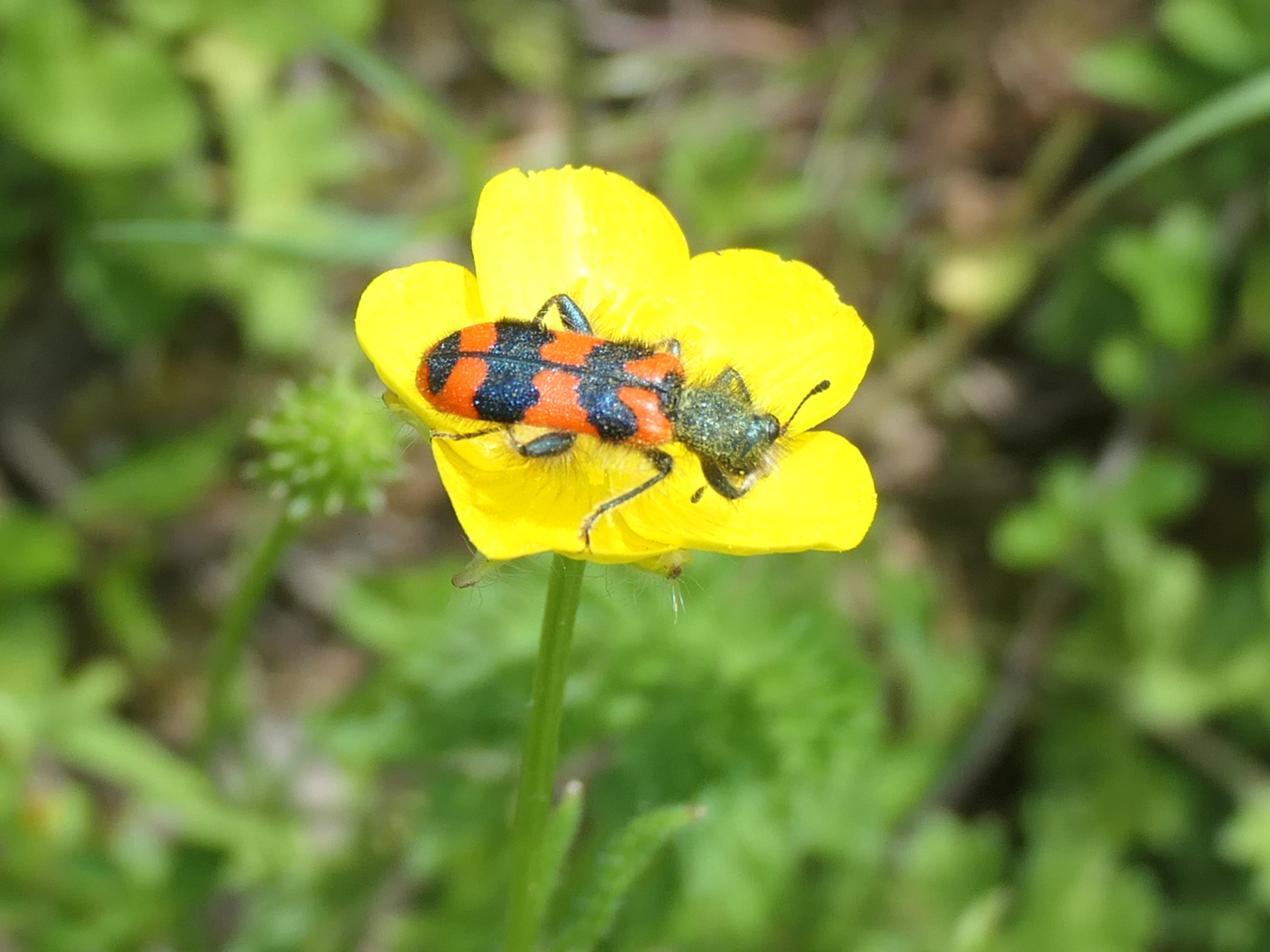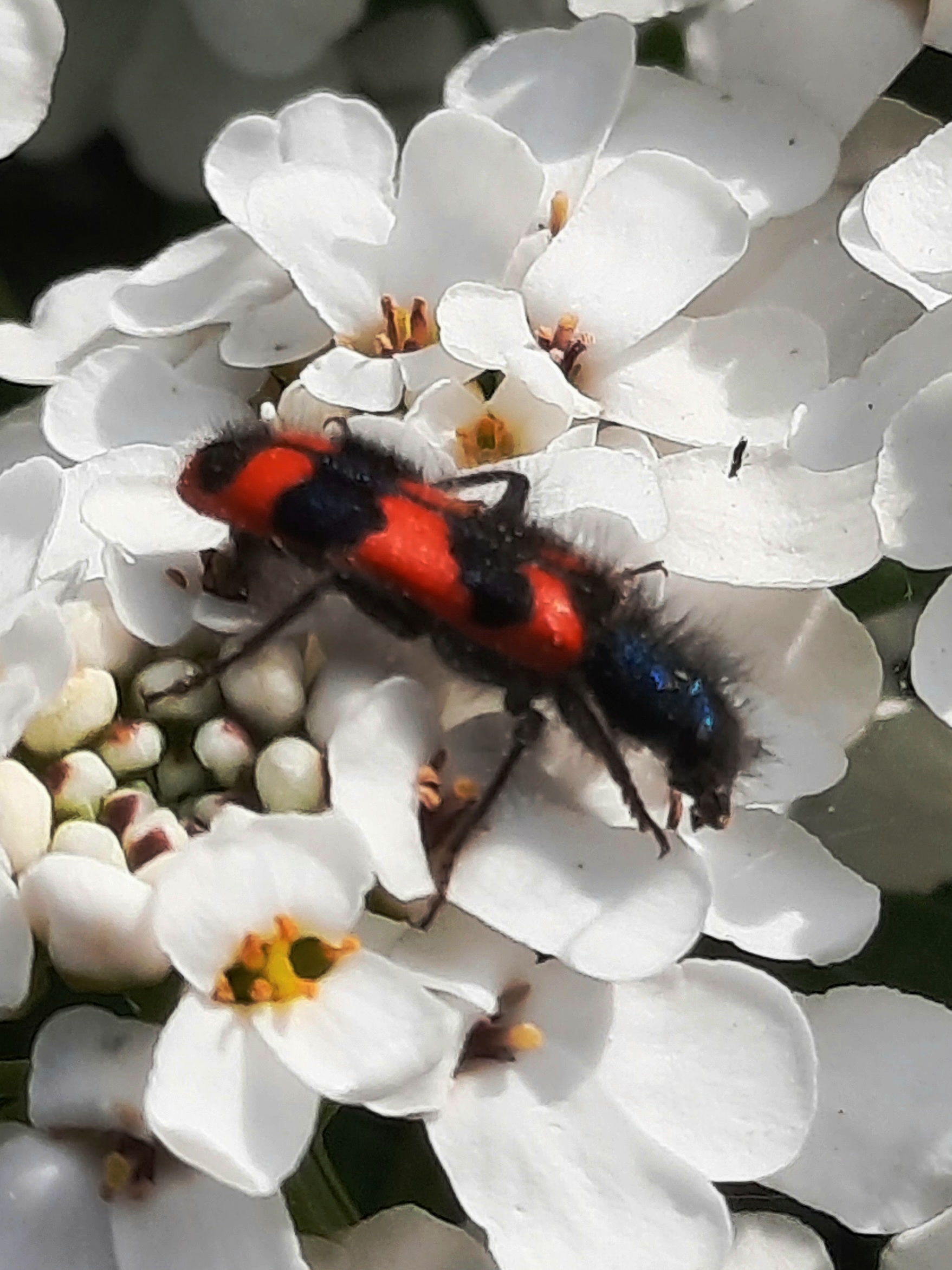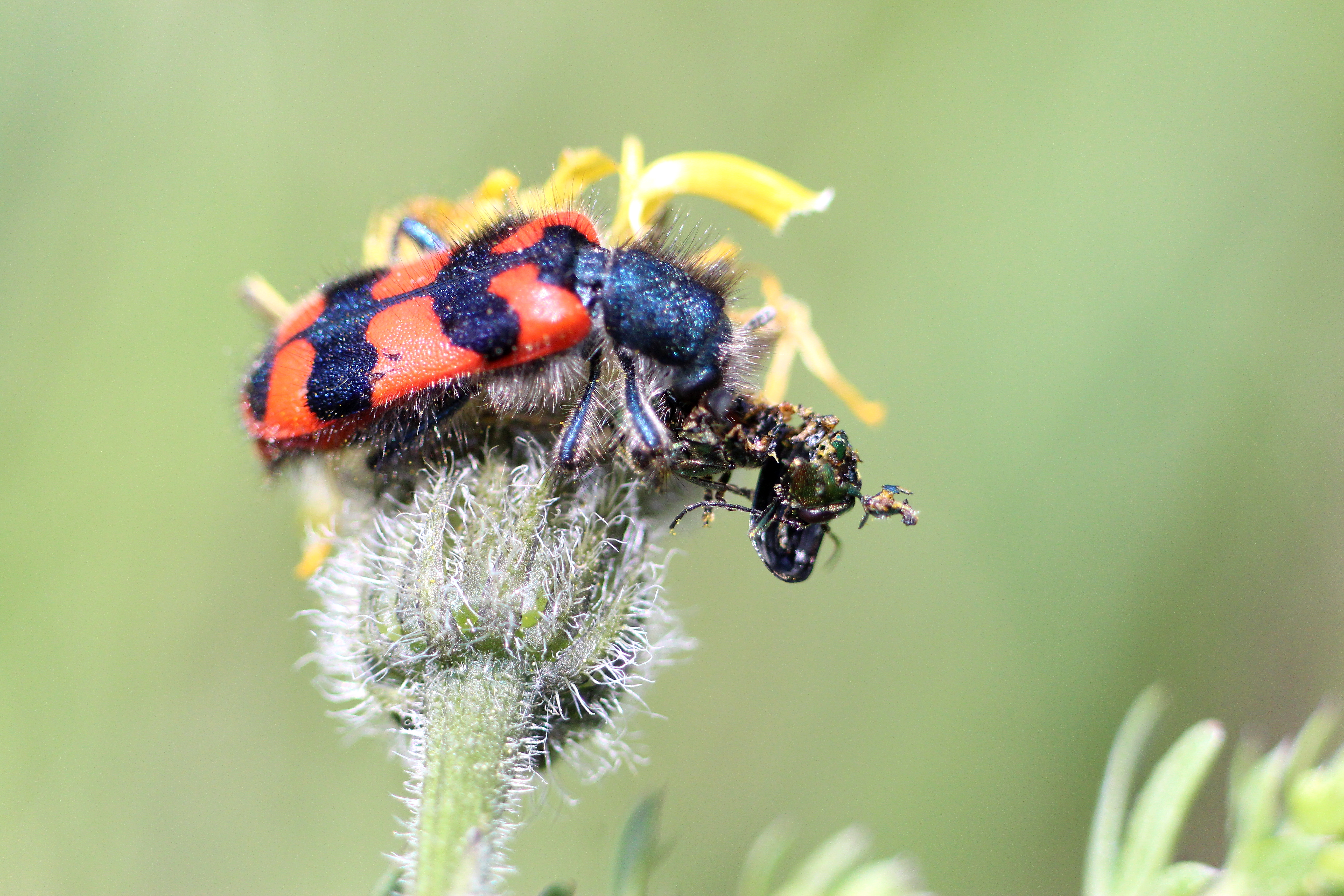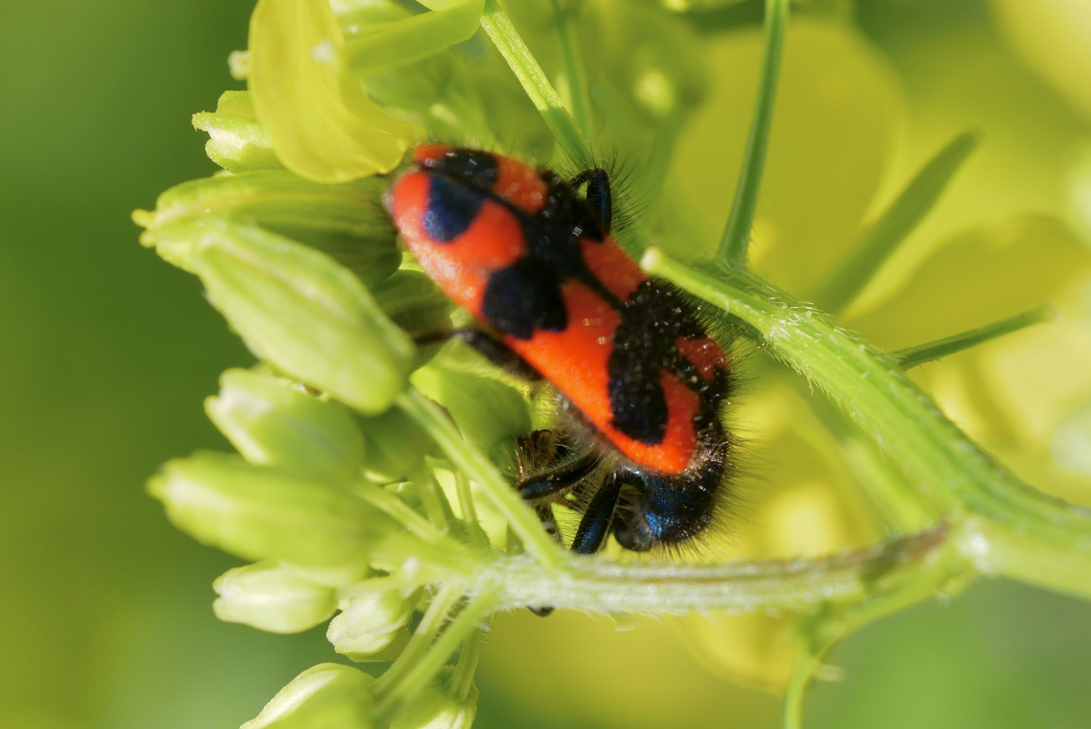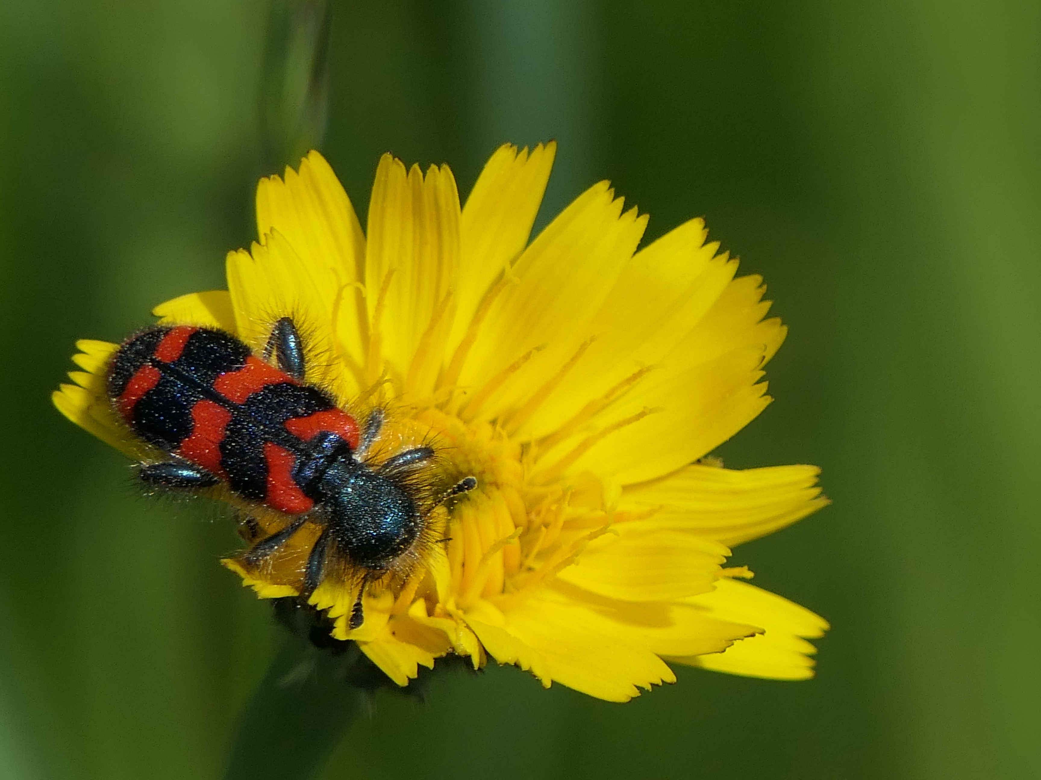 Zottiger Bienenkäfer (Trichodes alvearius (Fabricius, 1792)),Freital/Wurgwitz,Hammerbachaue,auf Weißdorn,Mai 2019