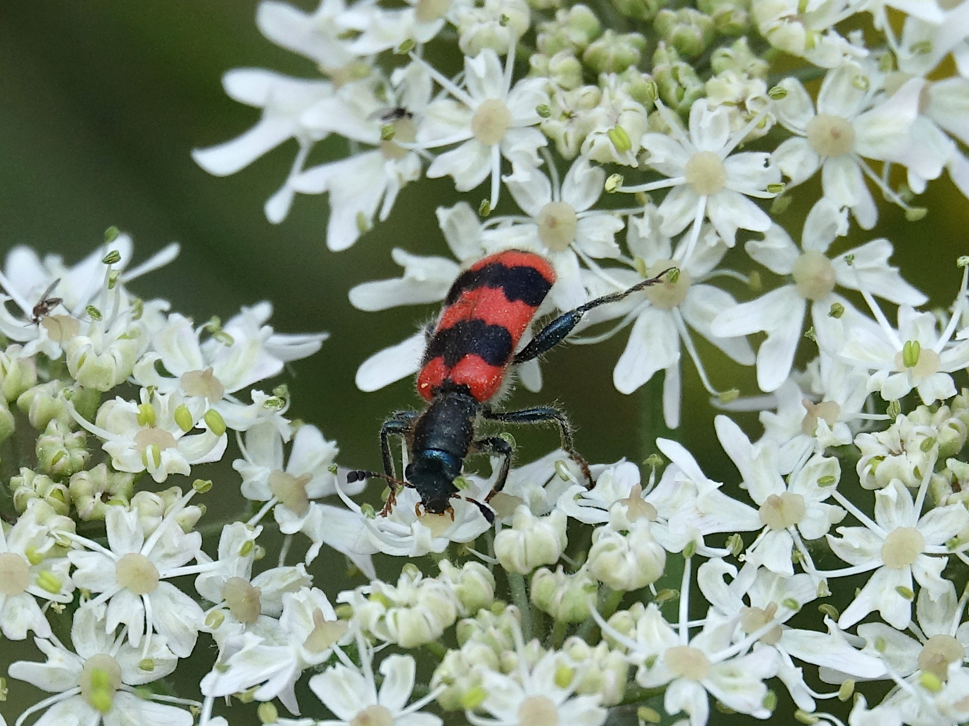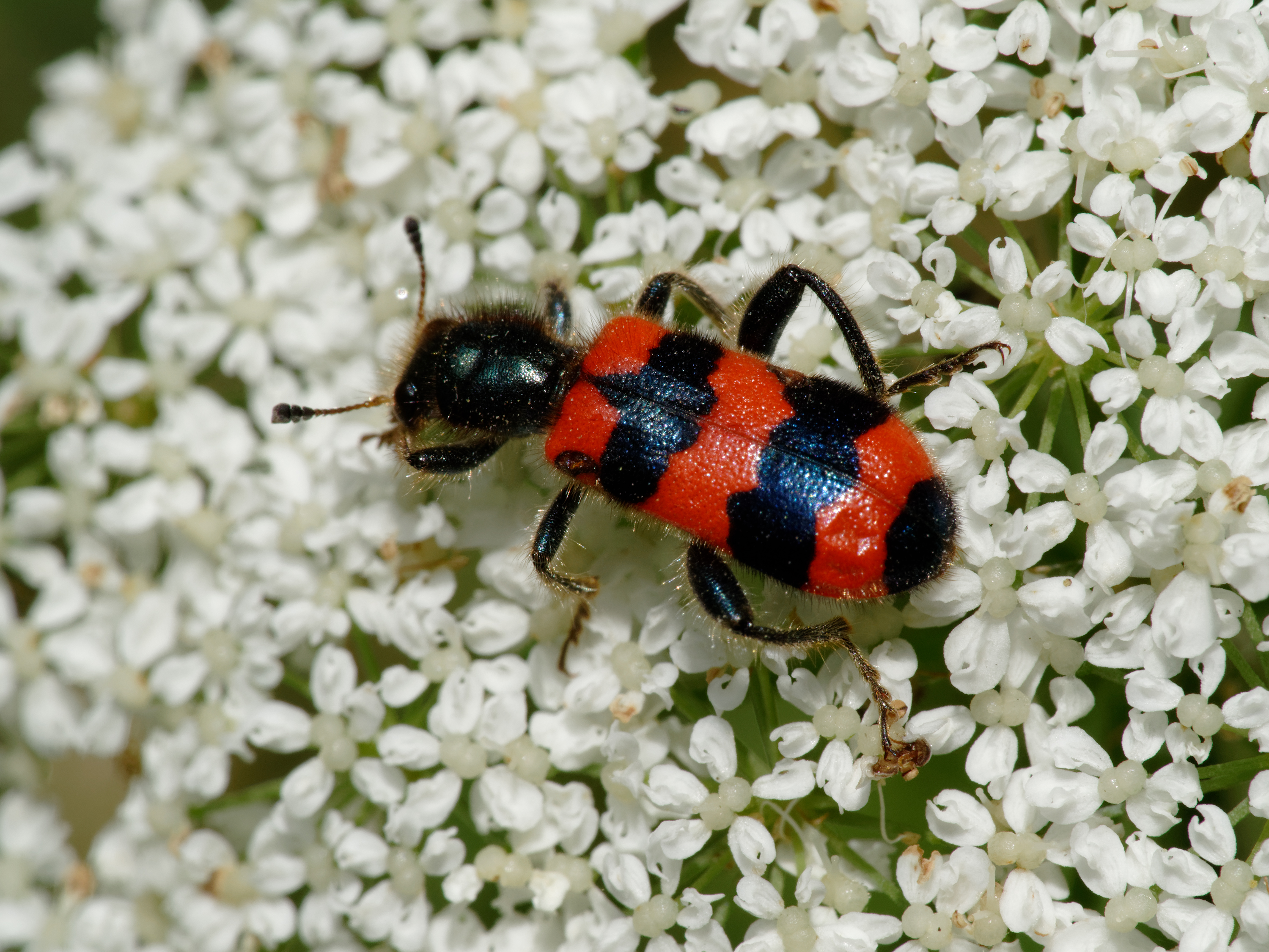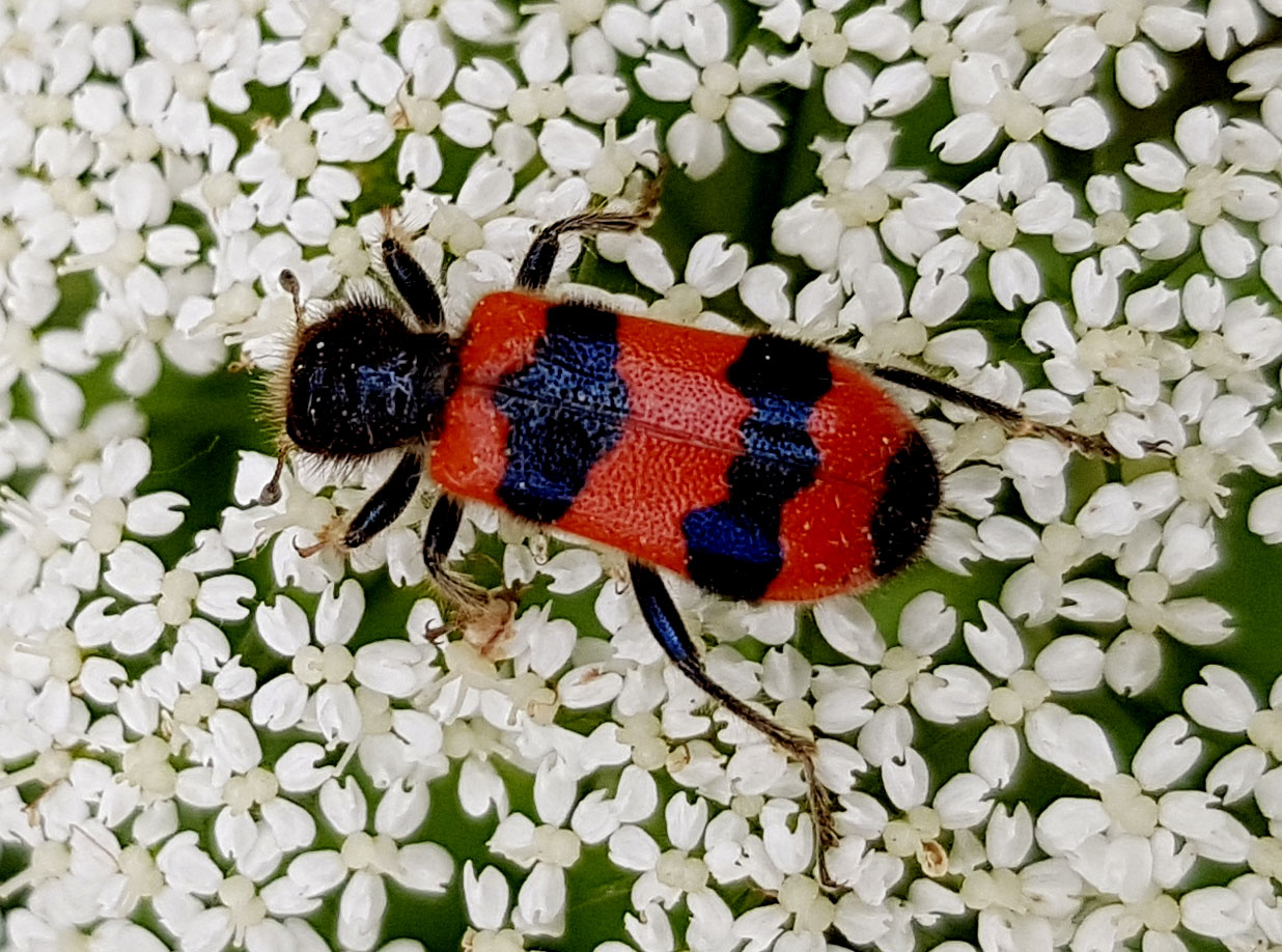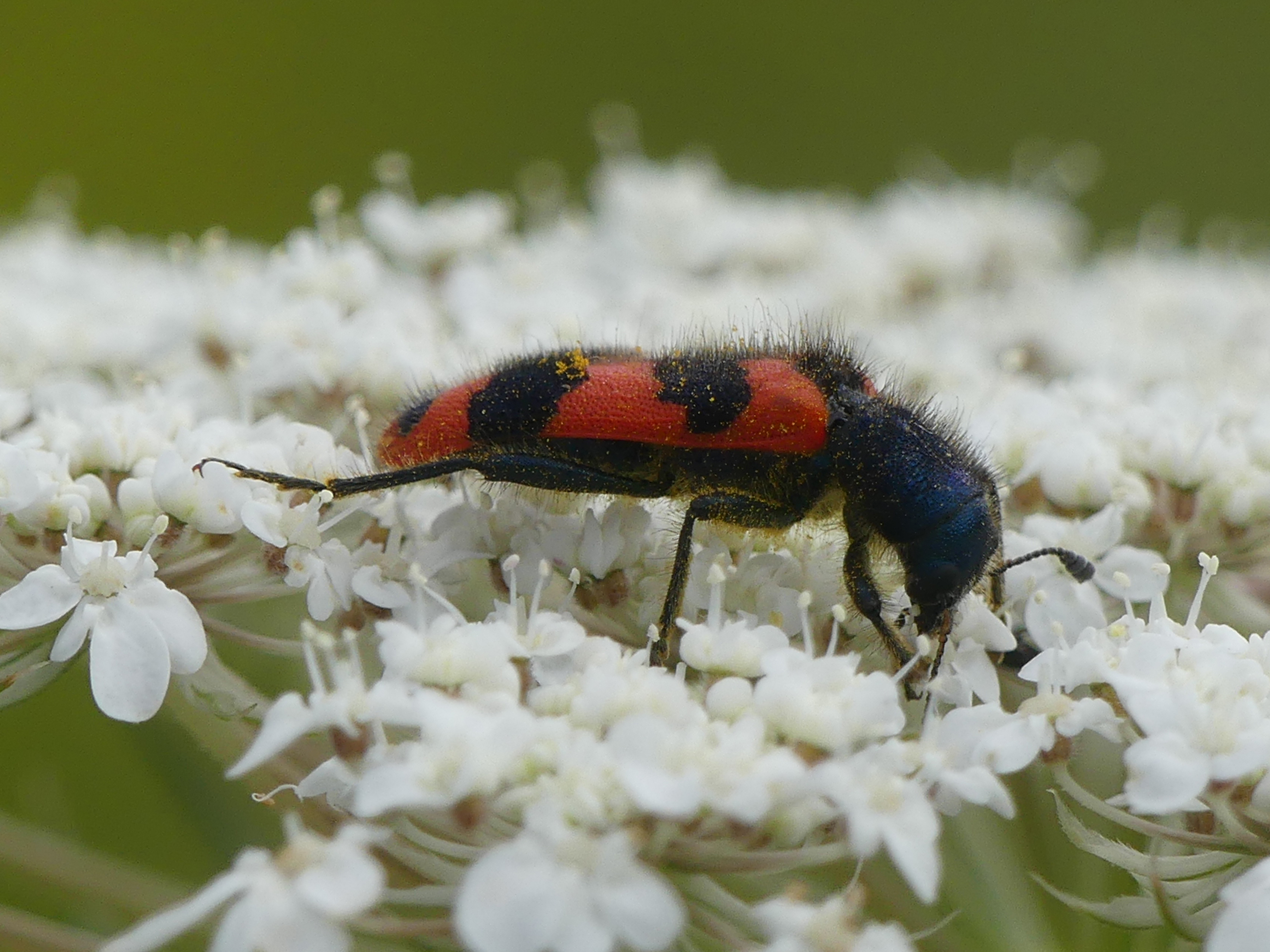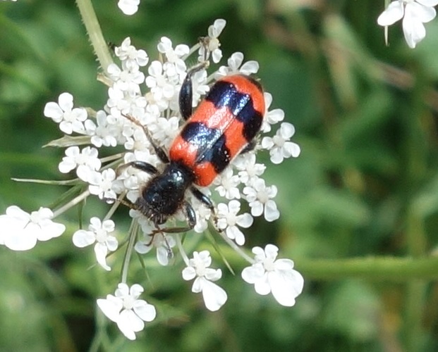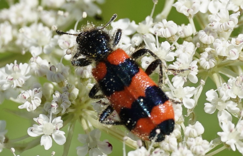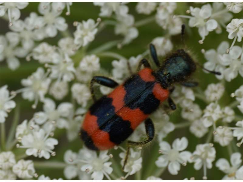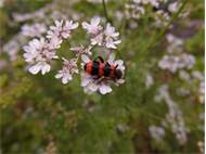 Gemeiner Bienenkäfer (Trichodes apiarius) auf Hundspetersilie (Aethusa cynapium), Fuhlendorf (Vorpommern-Rügen), 22.06.2019