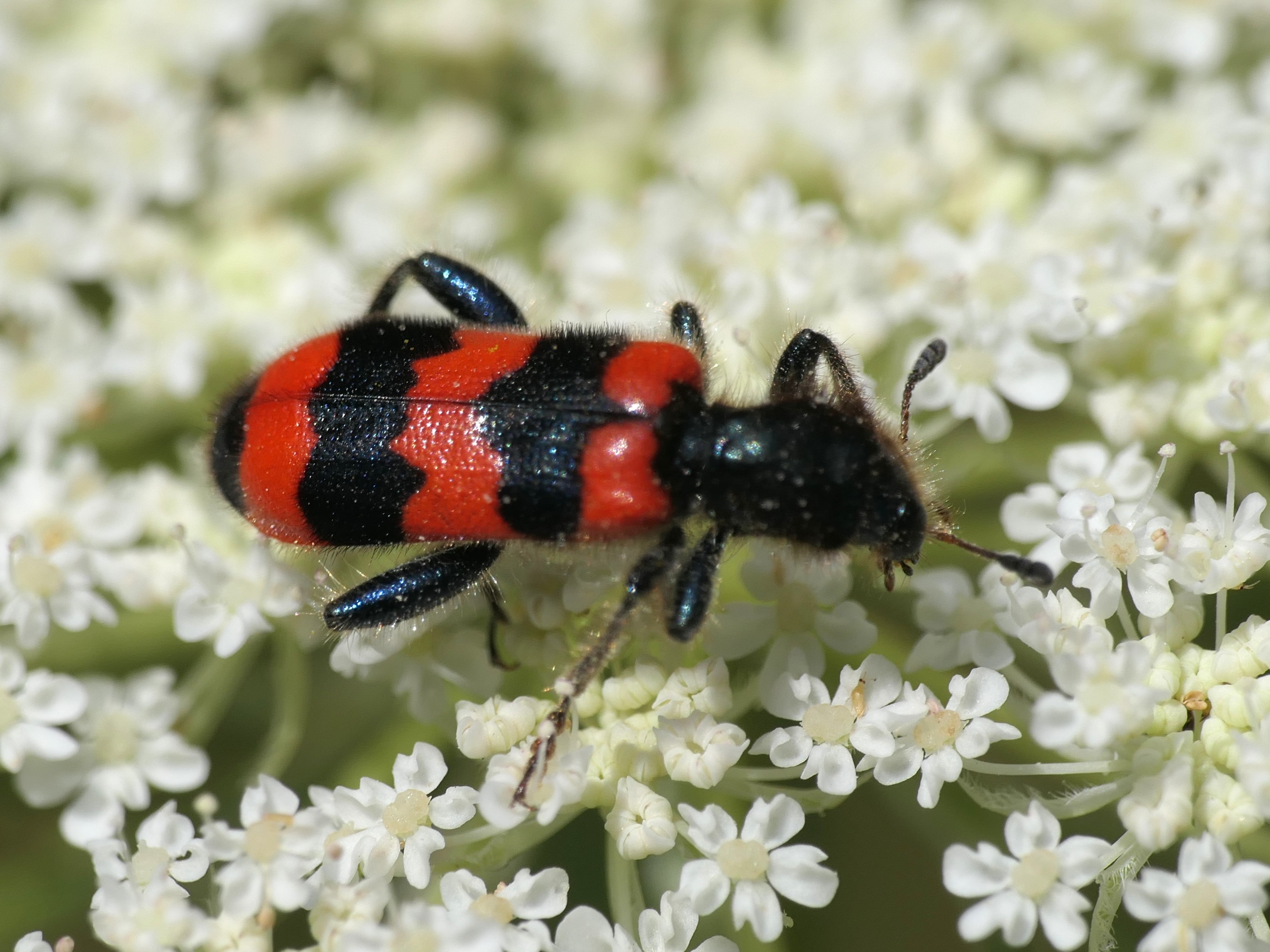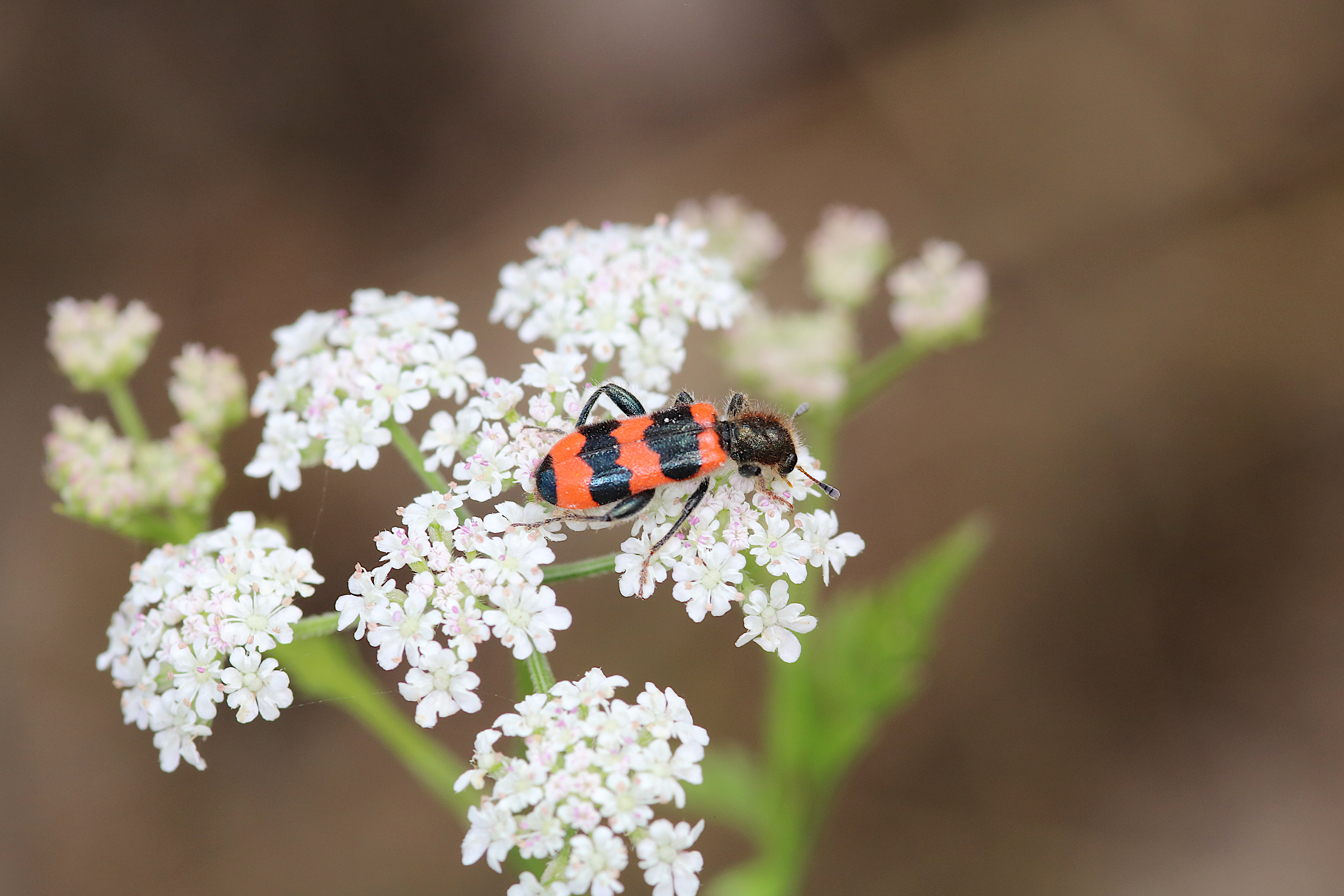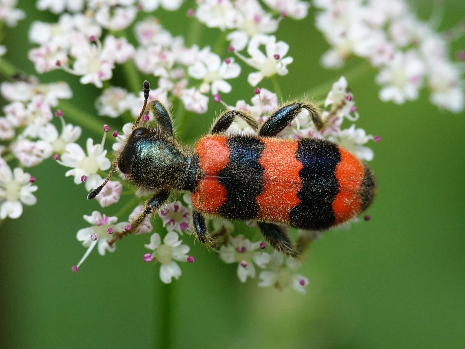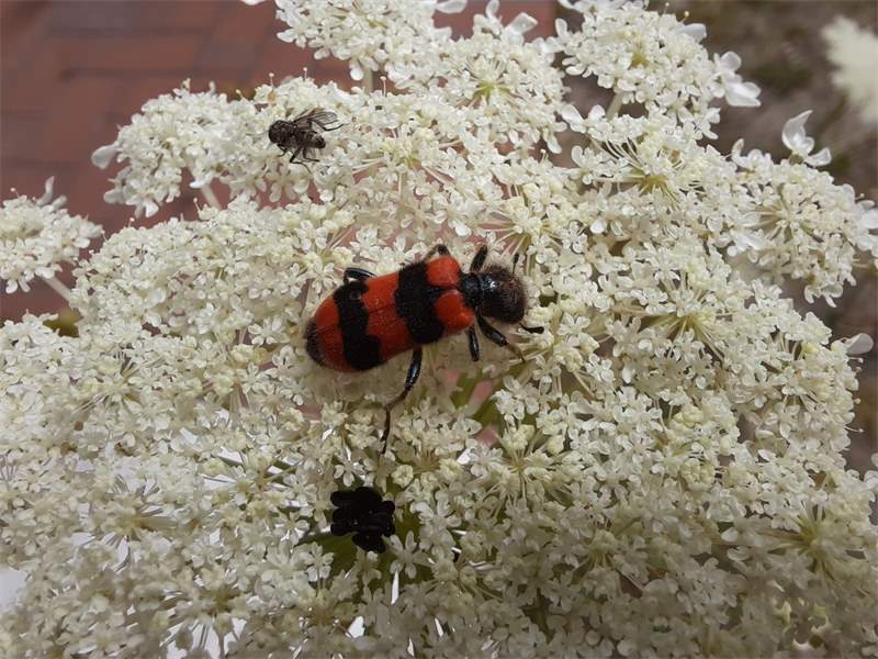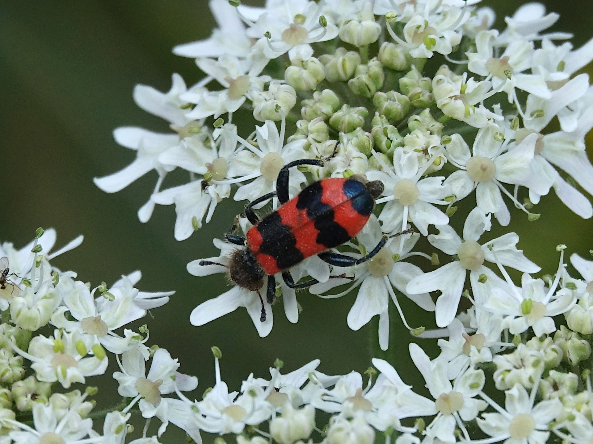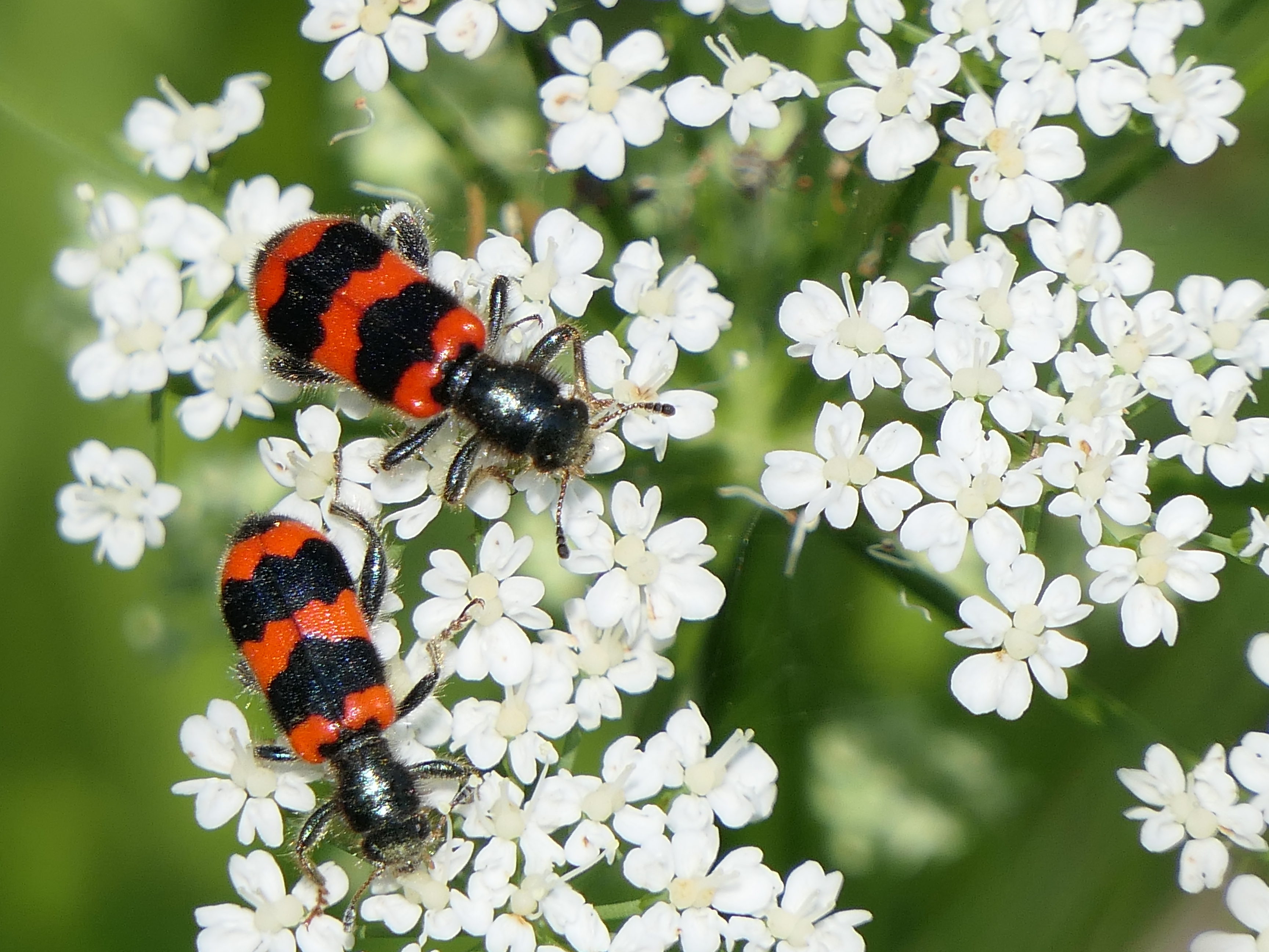Gemeiner Bienenkäfer (Trichodes apiarius) auf Hundspetersilie (Aethusa cynapium), Fuhlendorf (Vorpommern-Rügen), 22.06.2019