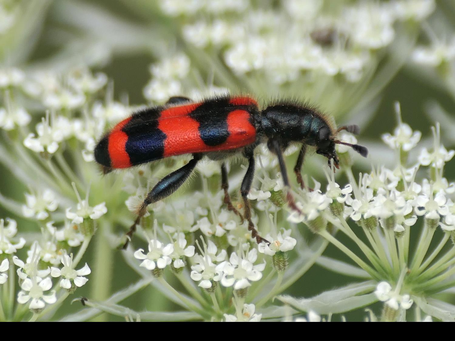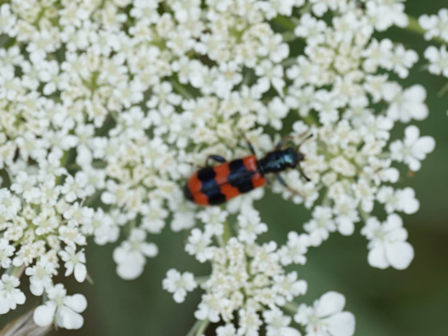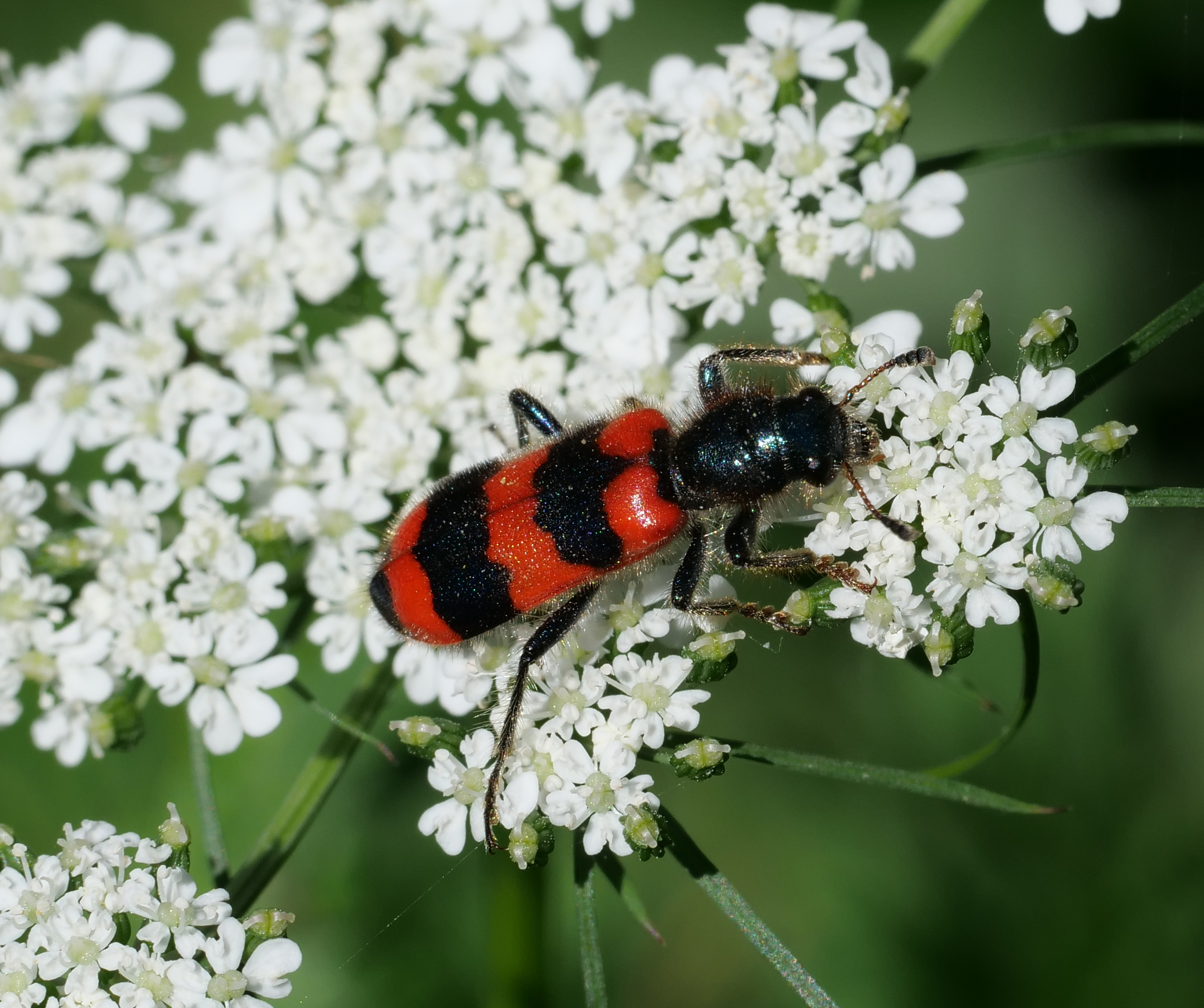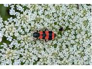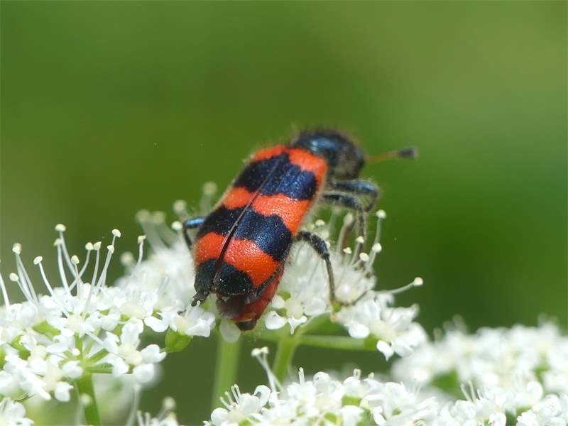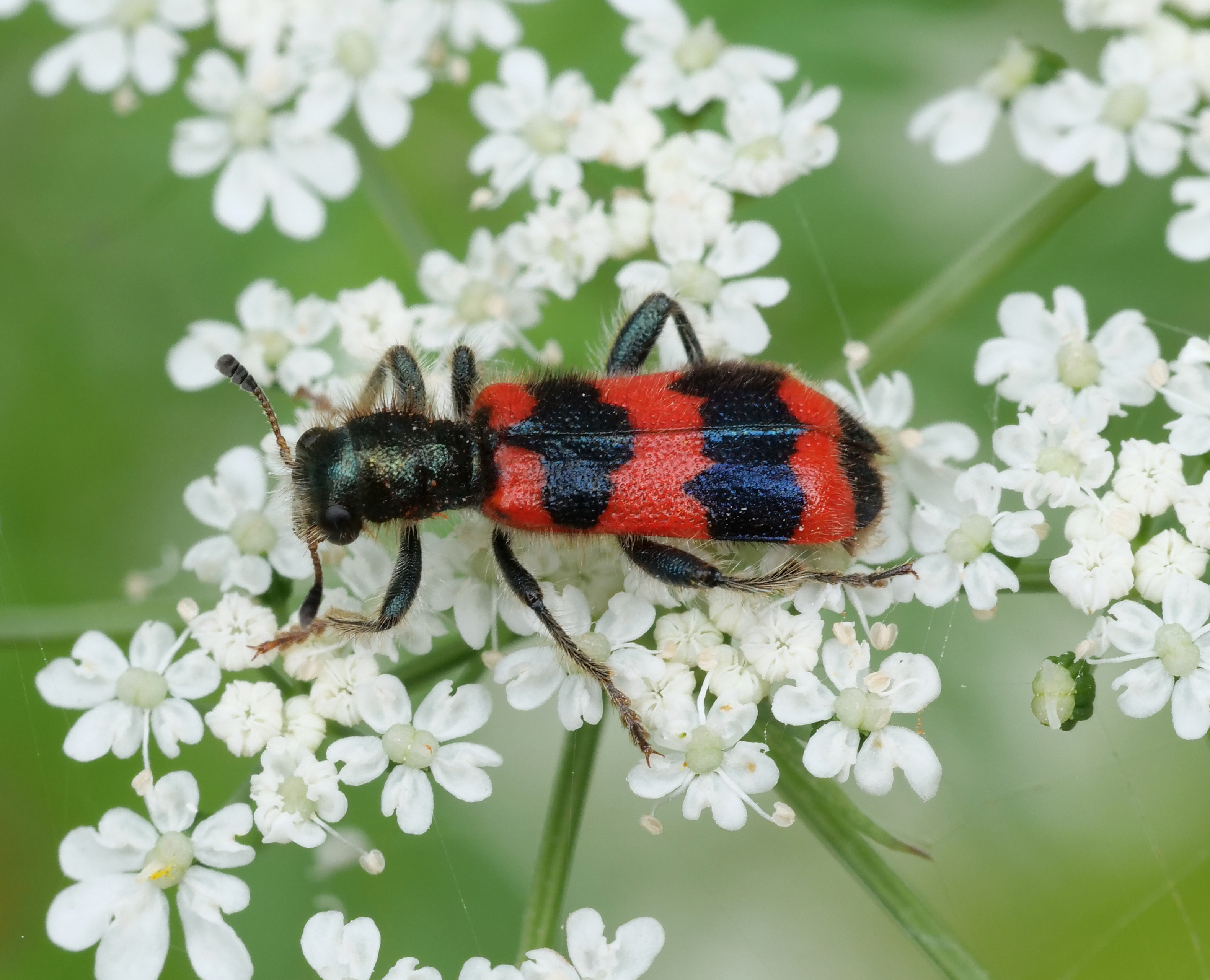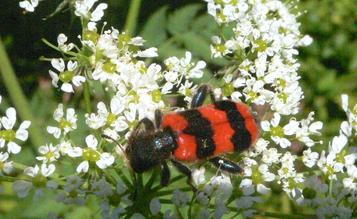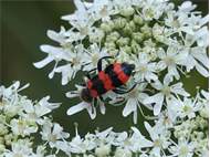 Gemeiner Bienenkäfer (Trichodes apiarius) auf Hundspetersilie (Aethusa cynapium), Fuhlendorf (Vorpommern-Rügen), 22.06.2019