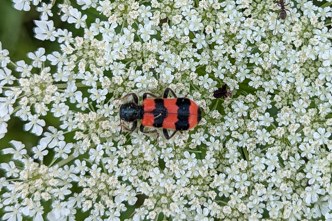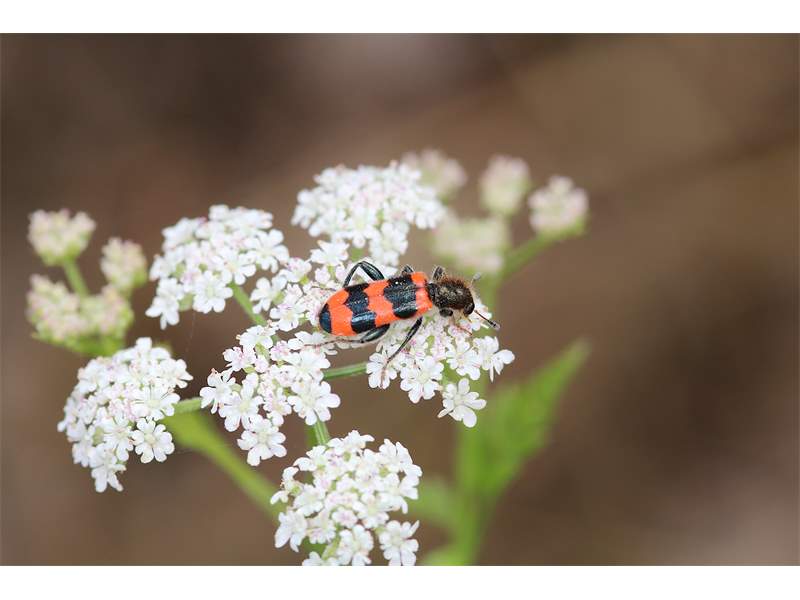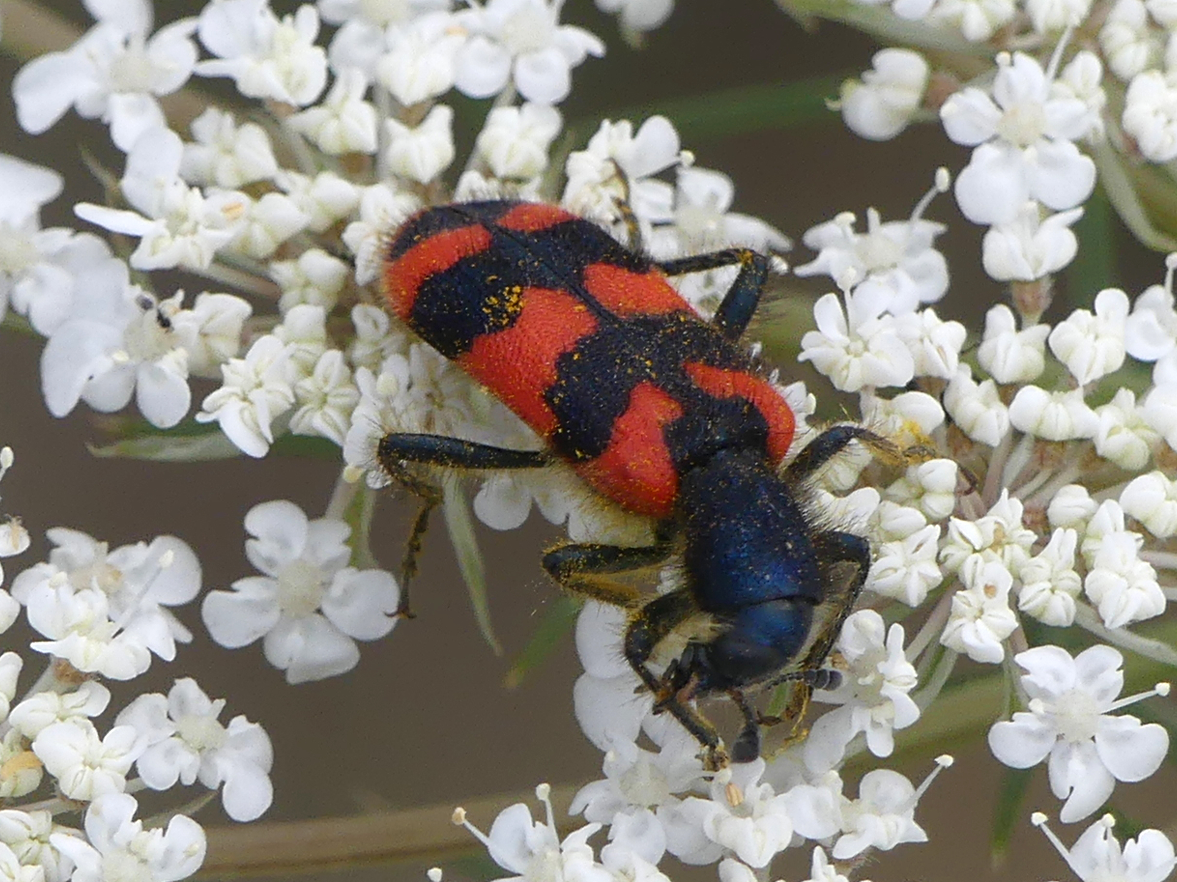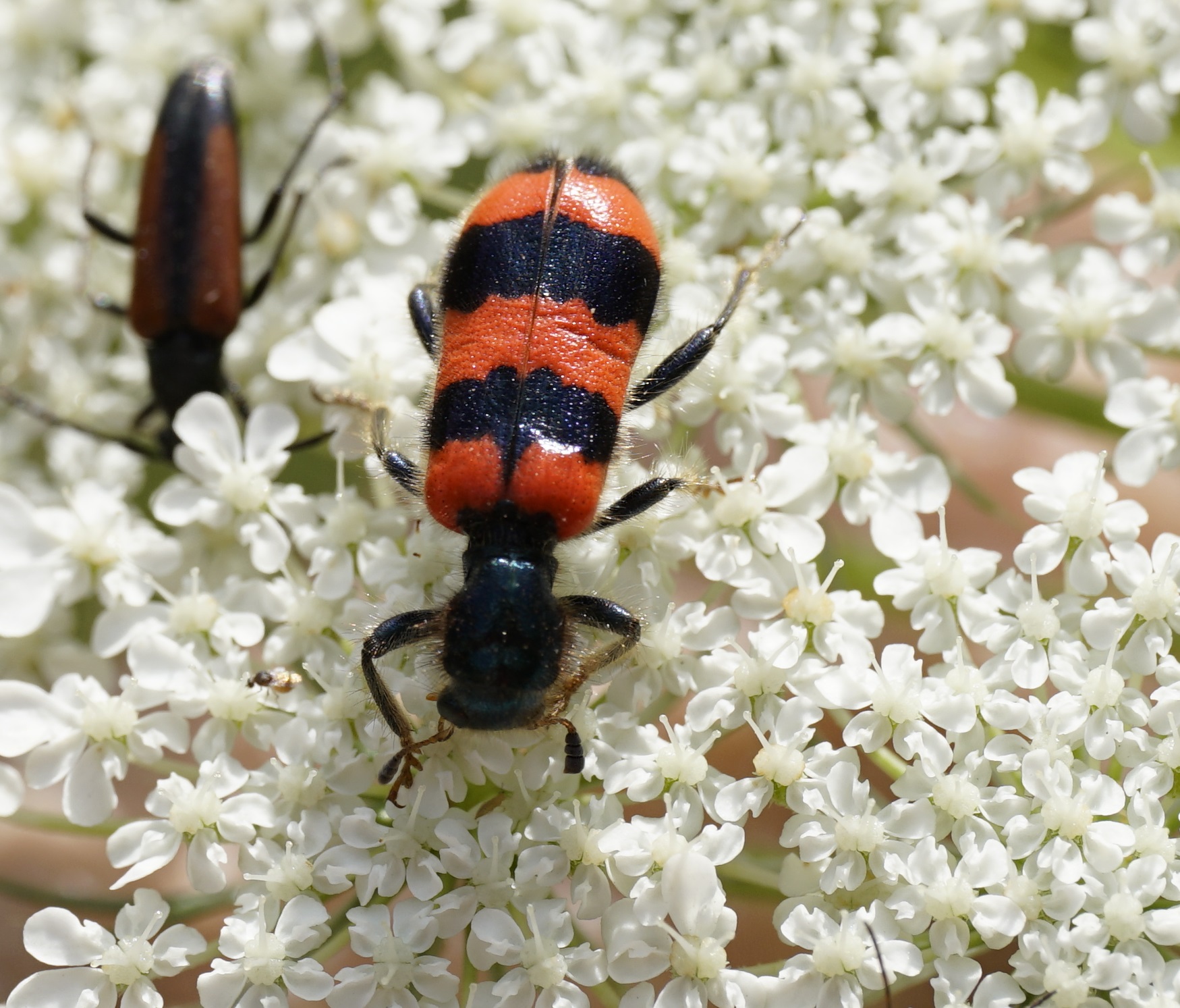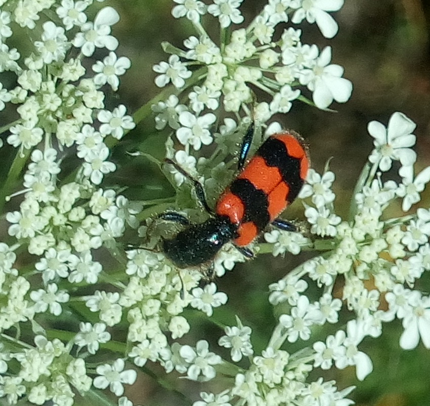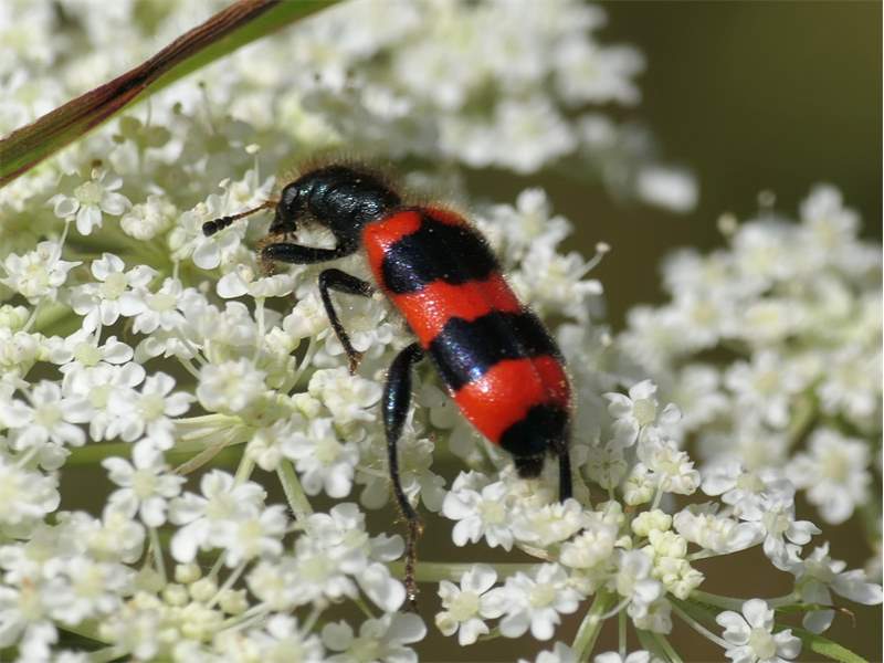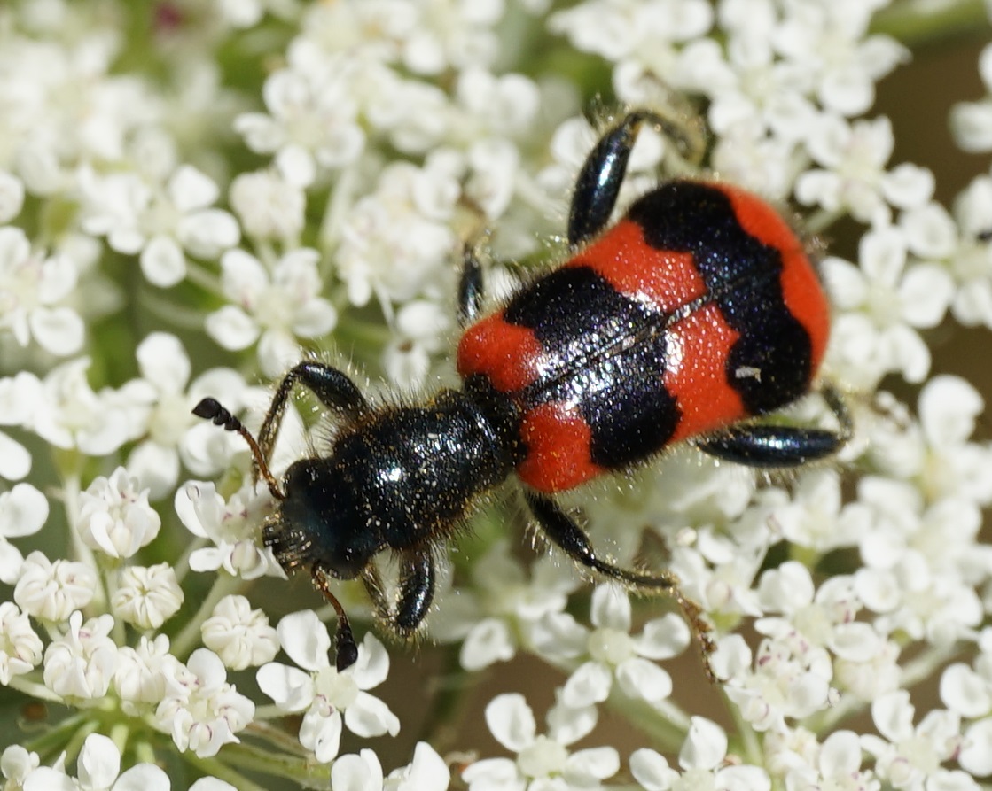 Gemeiner Bienenkäfer (Trichodes apiarius) auf Hundspetersilie (Aethusa cynapium), Fuhlendorf (Vorpommern-Rügen), 22.06.2019