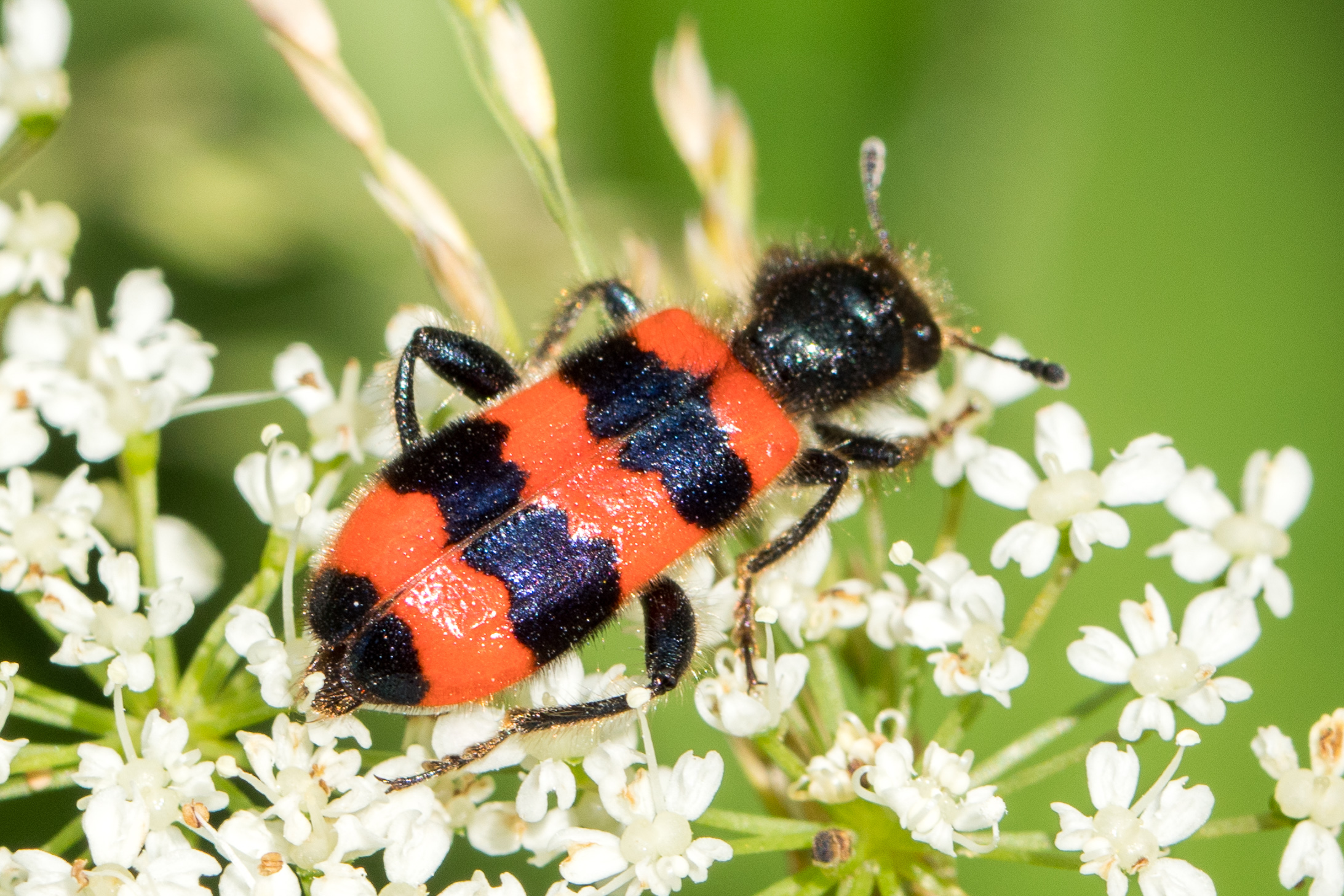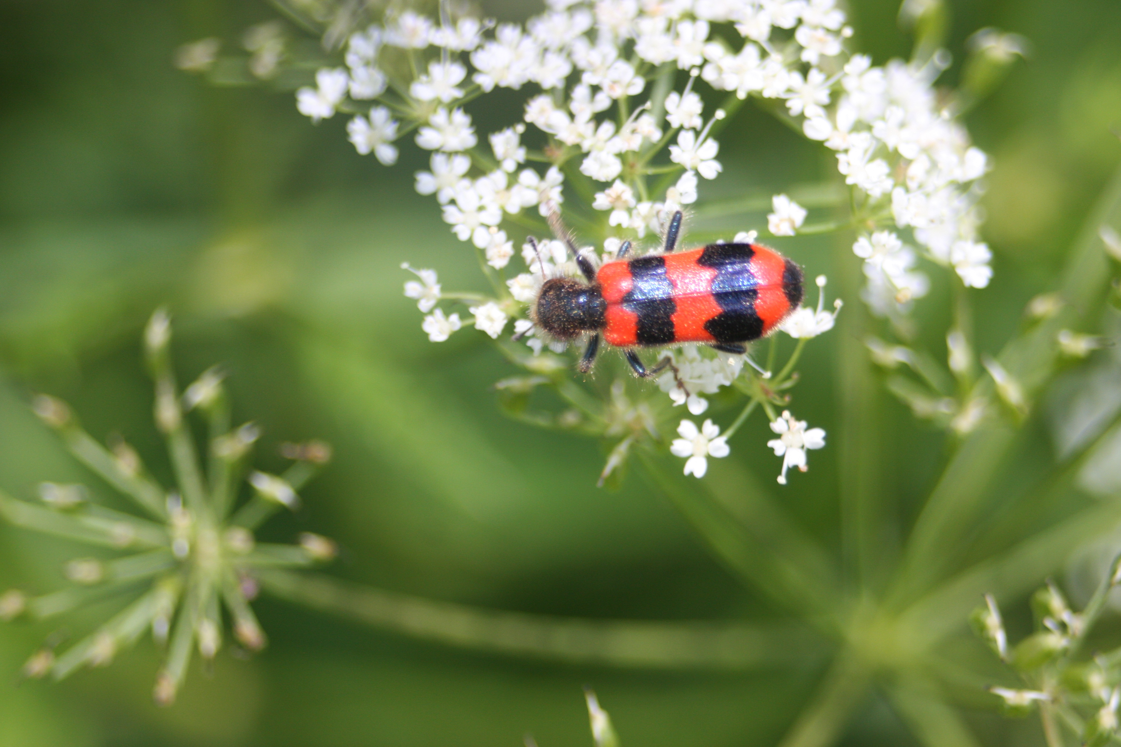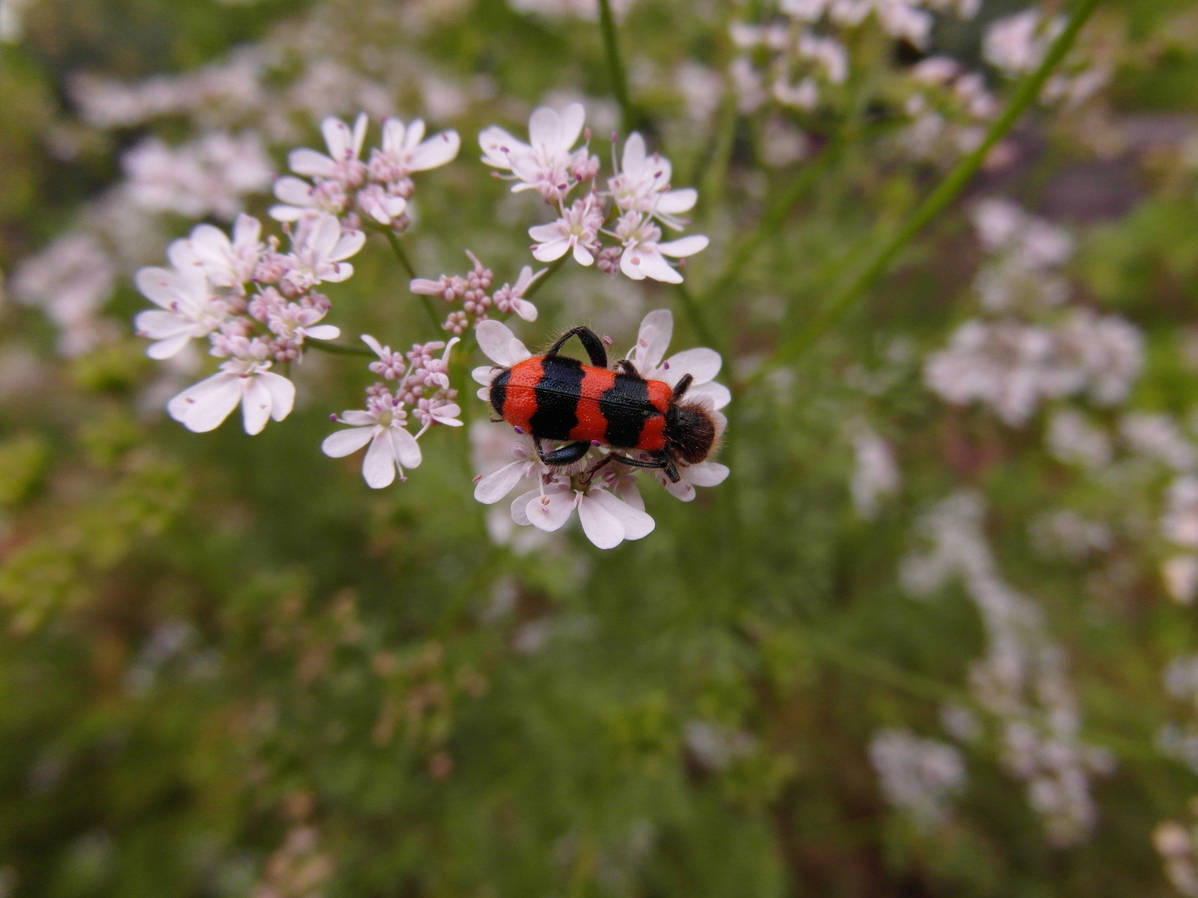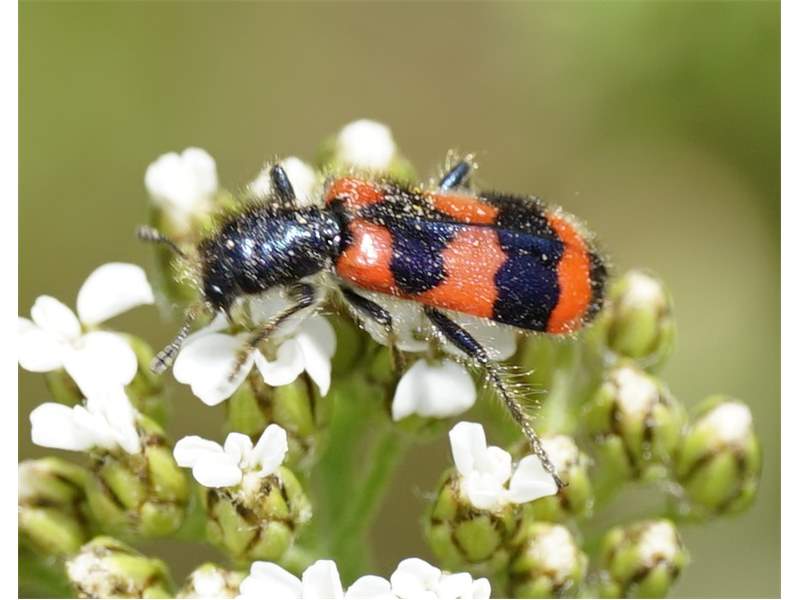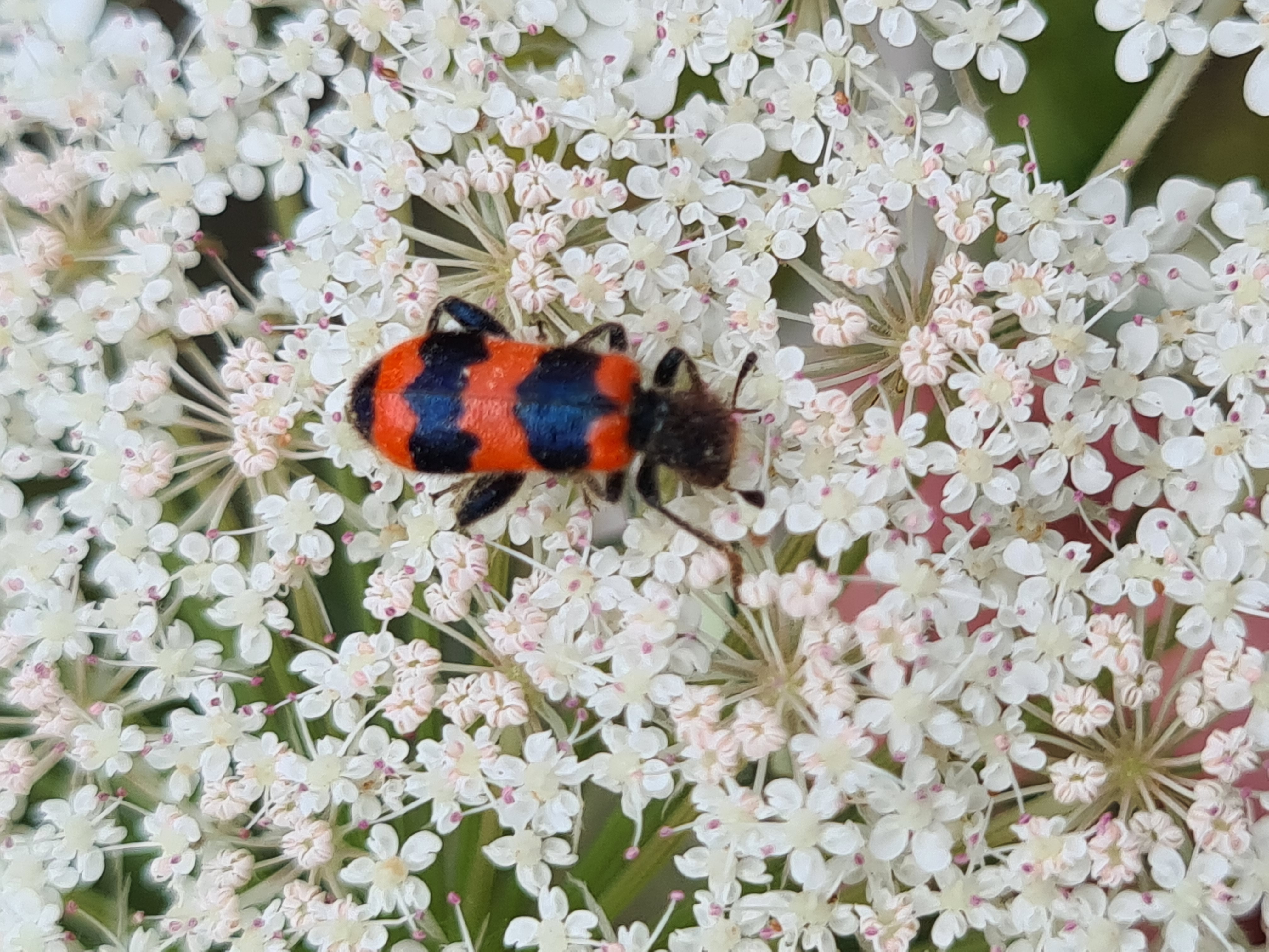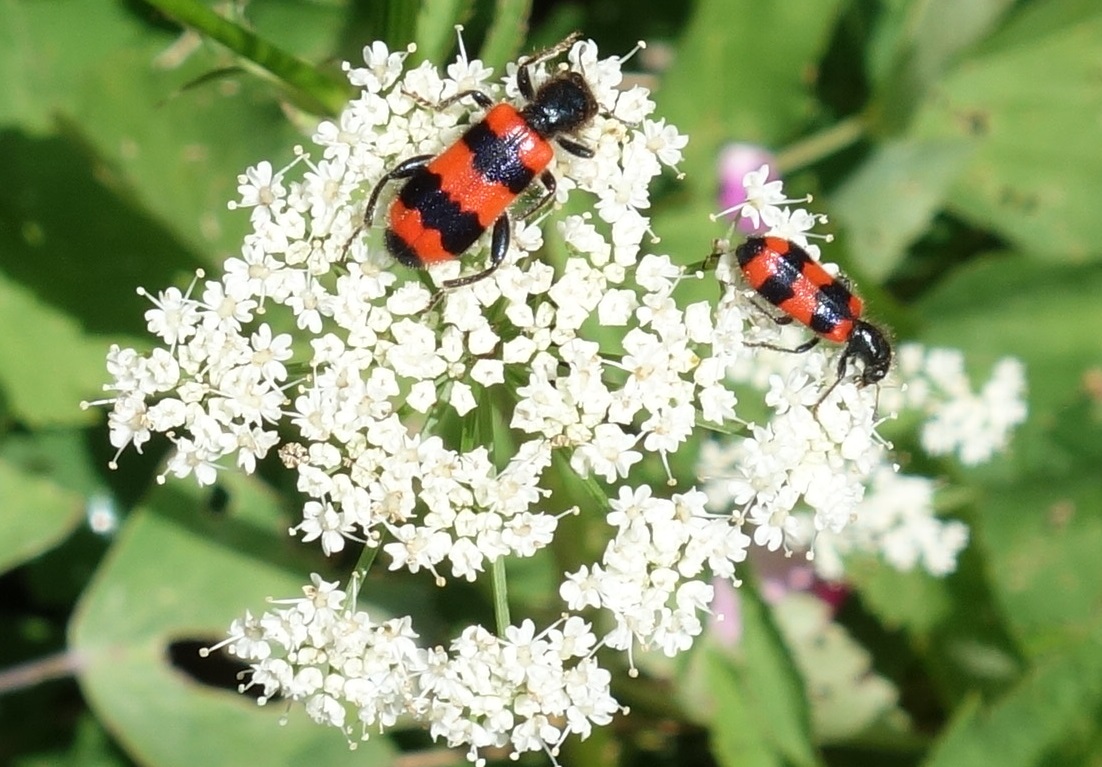 Gemeiner Bienenkäfer (Trichodes apiarius) auf Hundspetersilie (Aethusa cynapium), Fuhlendorf (Vorpommern-Rügen), 22.06.2019