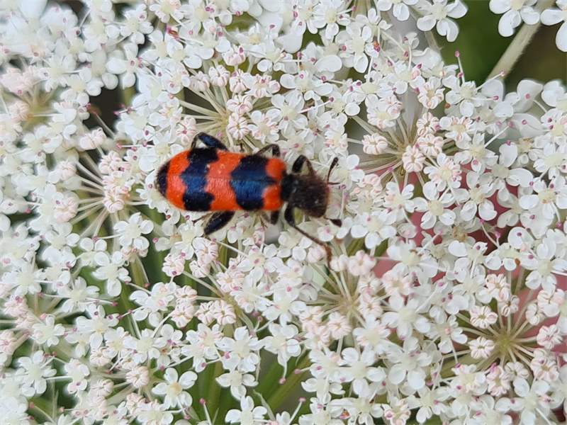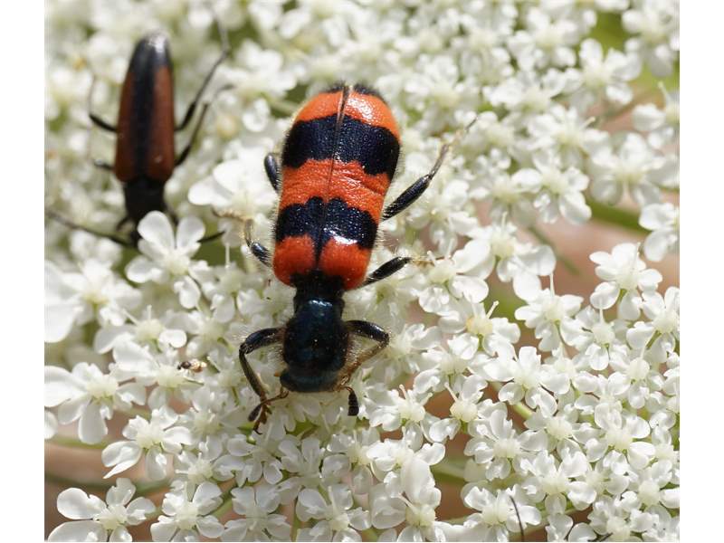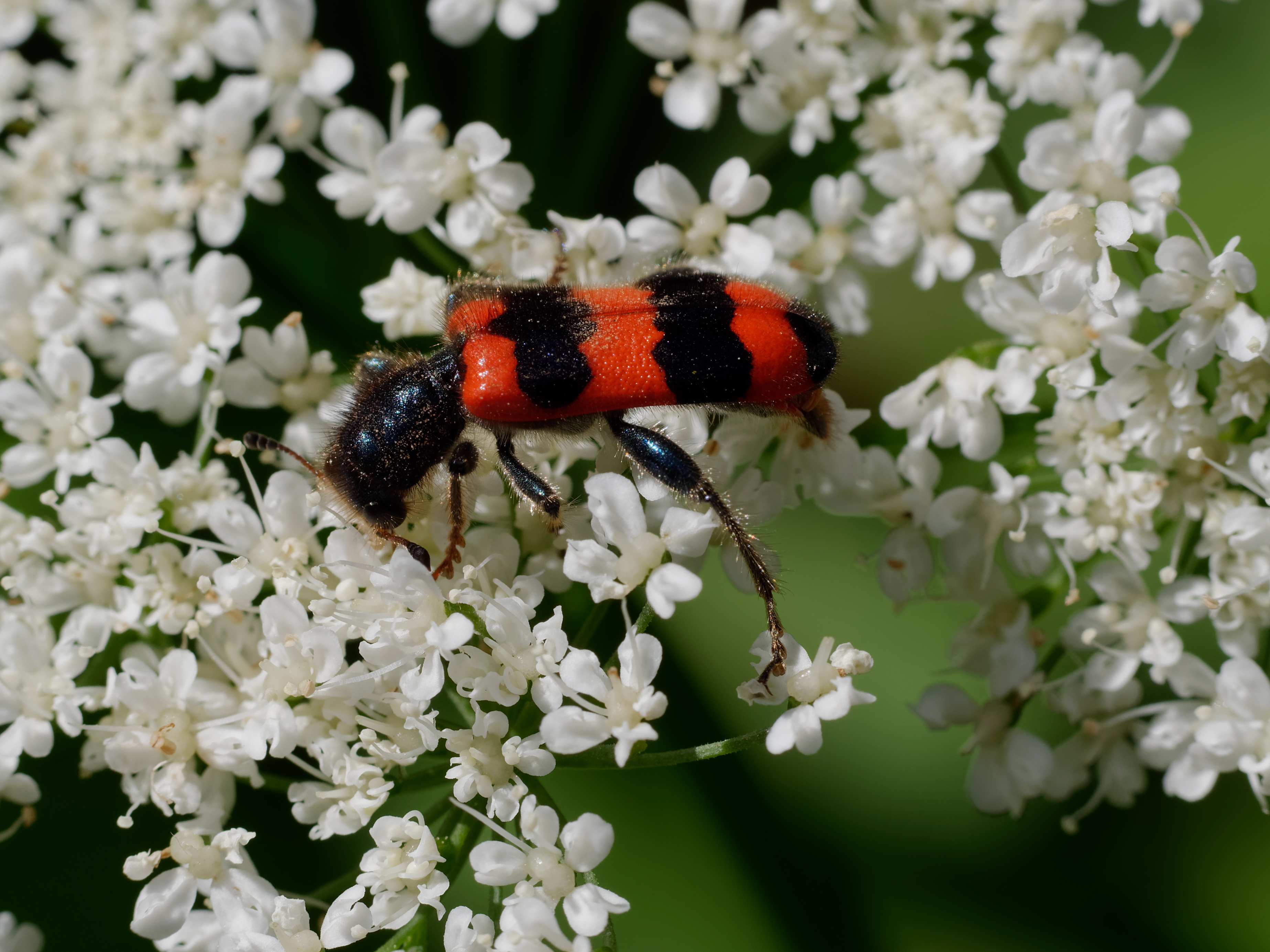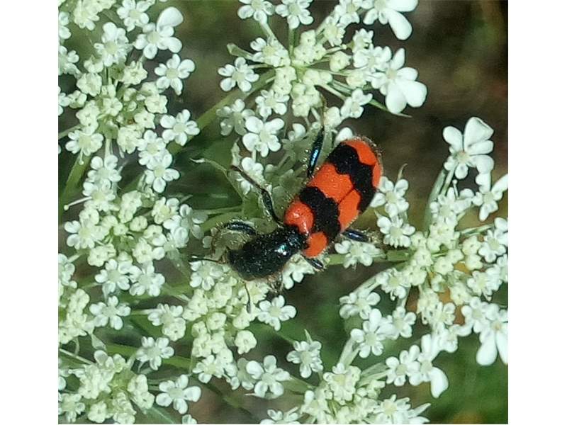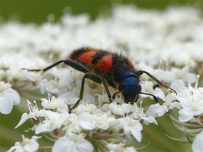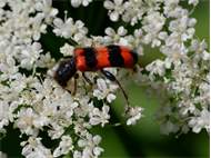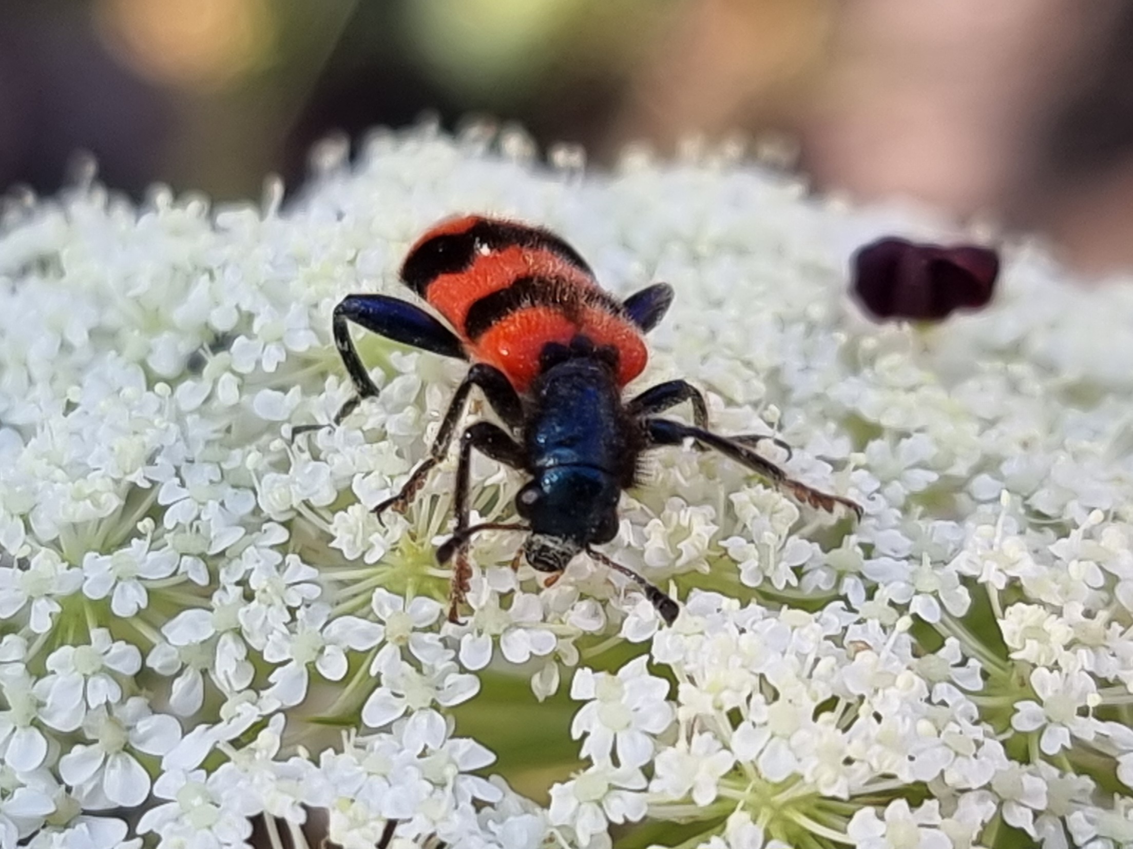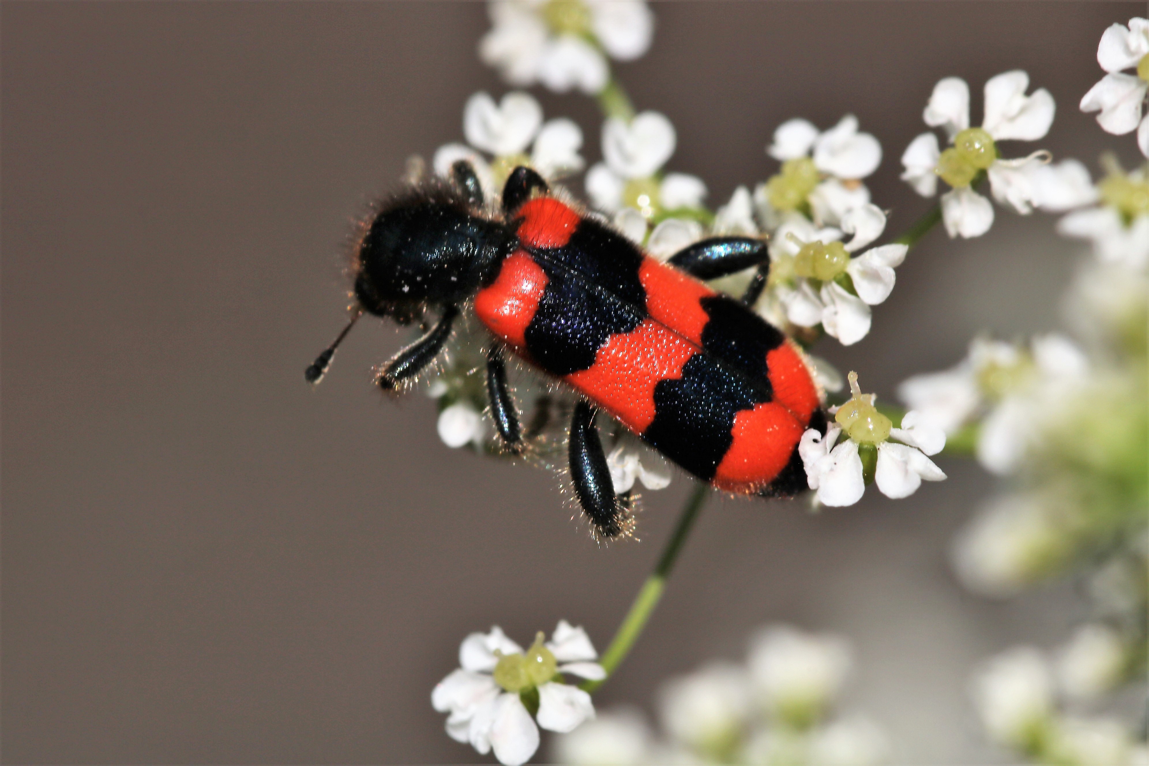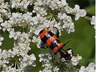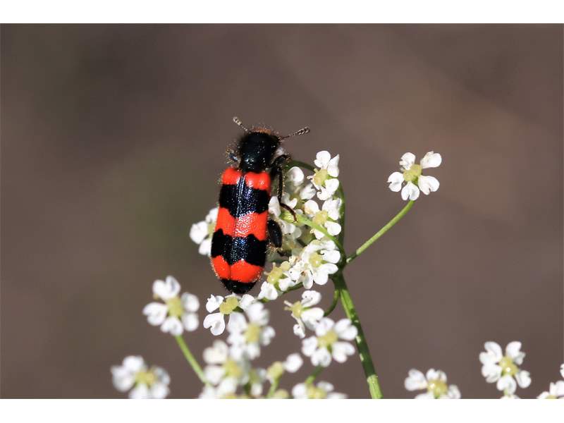 Gemeiner Bienenkäfer (Trichodes apiarius) auf Hundspetersilie (Aethusa cynapium), Fuhlendorf (Vorpommern-Rügen), 22.06.2019