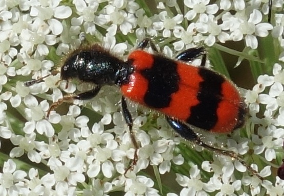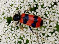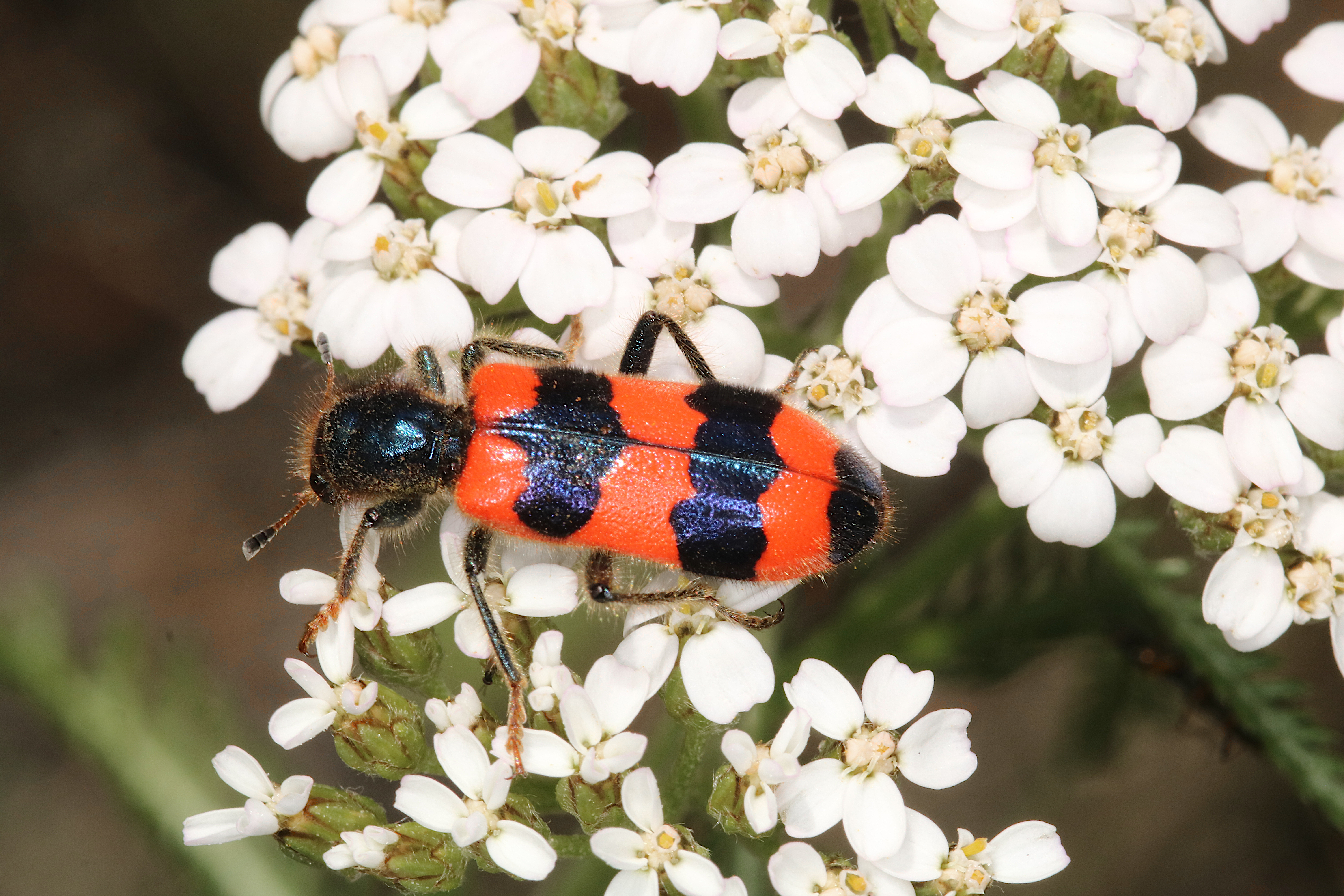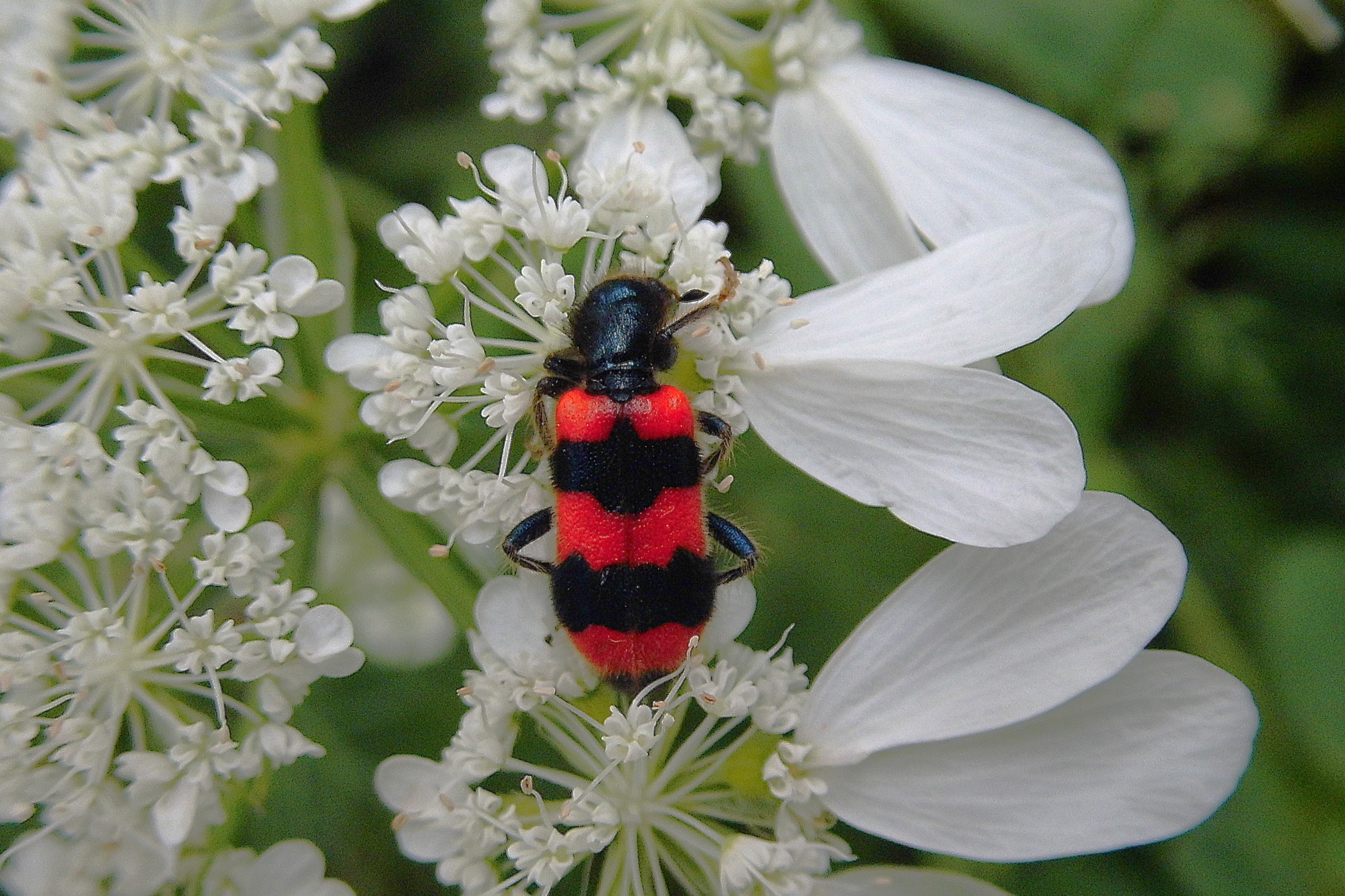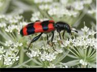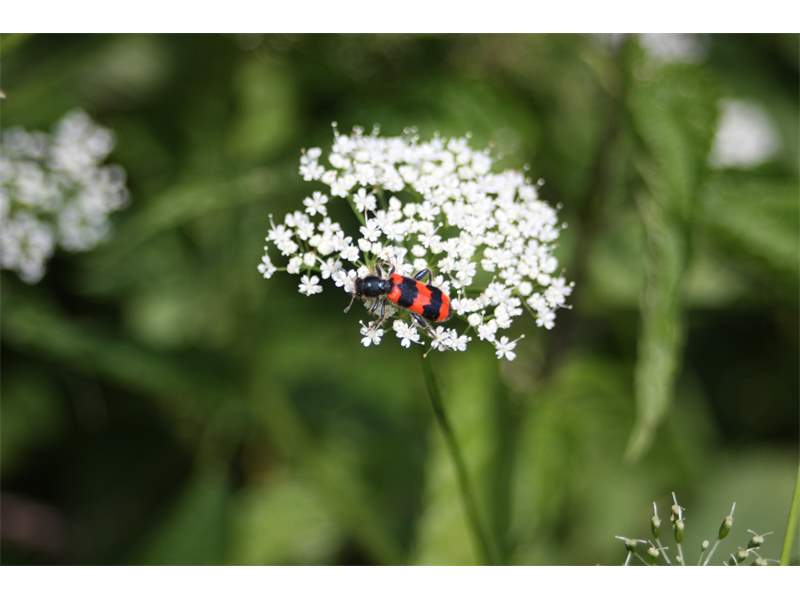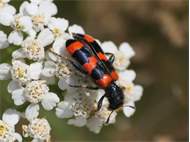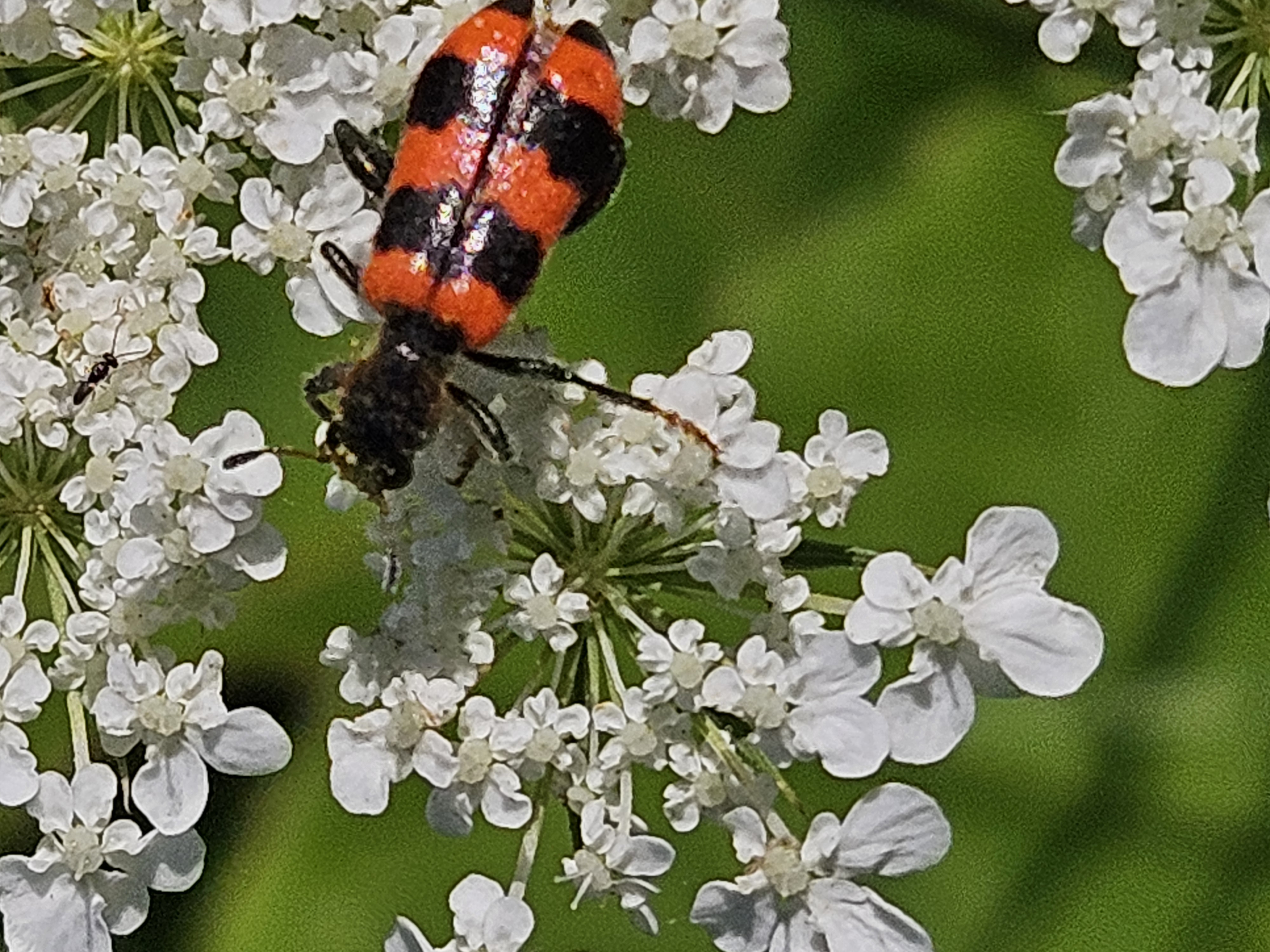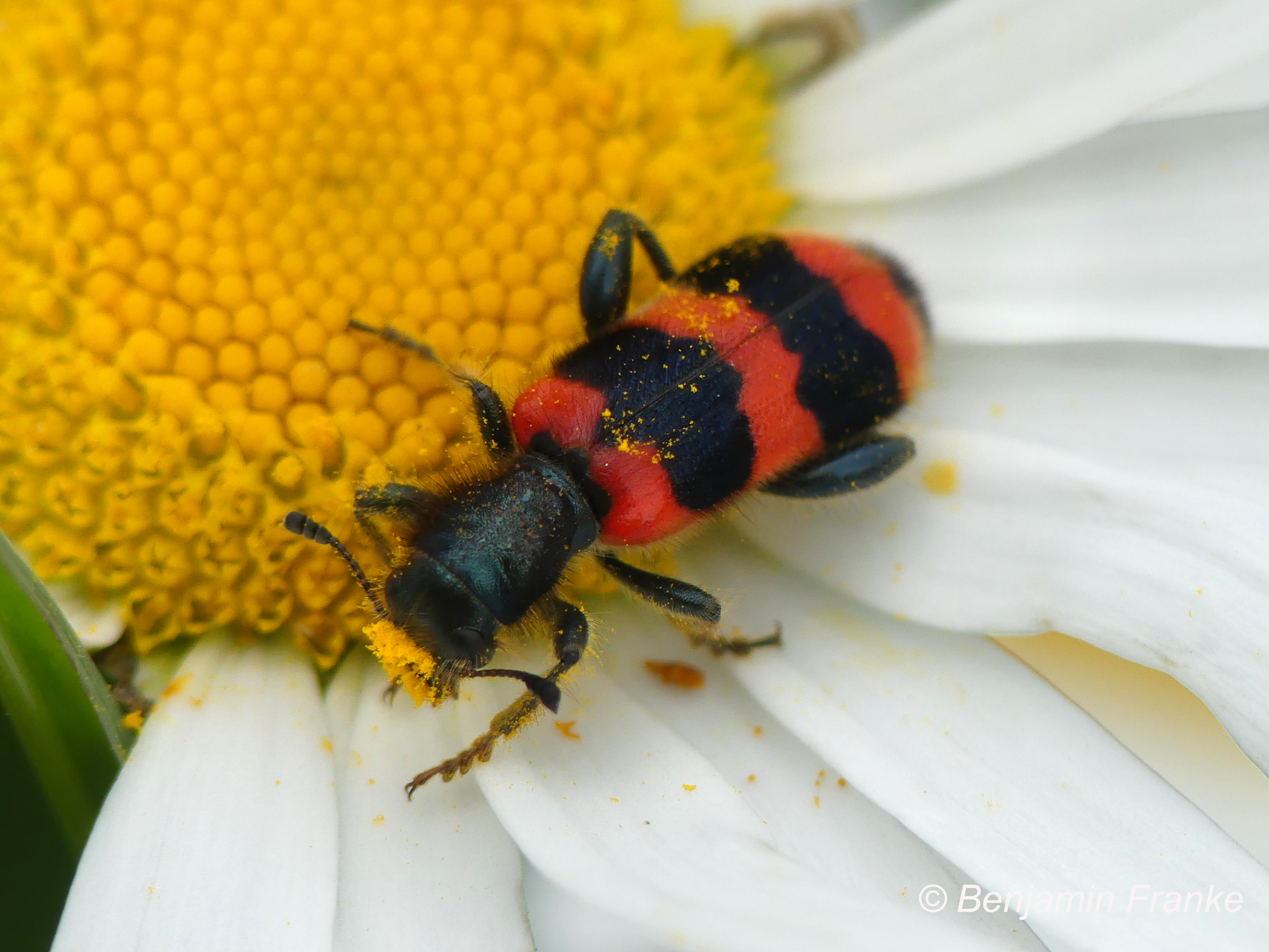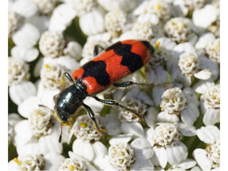 Gemeiner Bienenkäfer (Trichodes apiarius) auf Hundspetersilie (Aethusa cynapium), Fuhlendorf (Vorpommern-Rügen), 22.06.2019