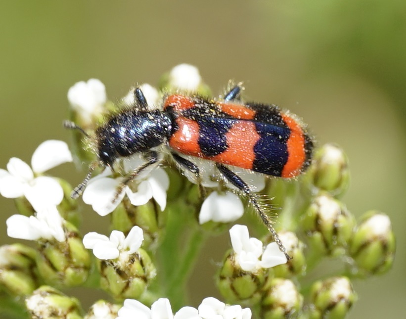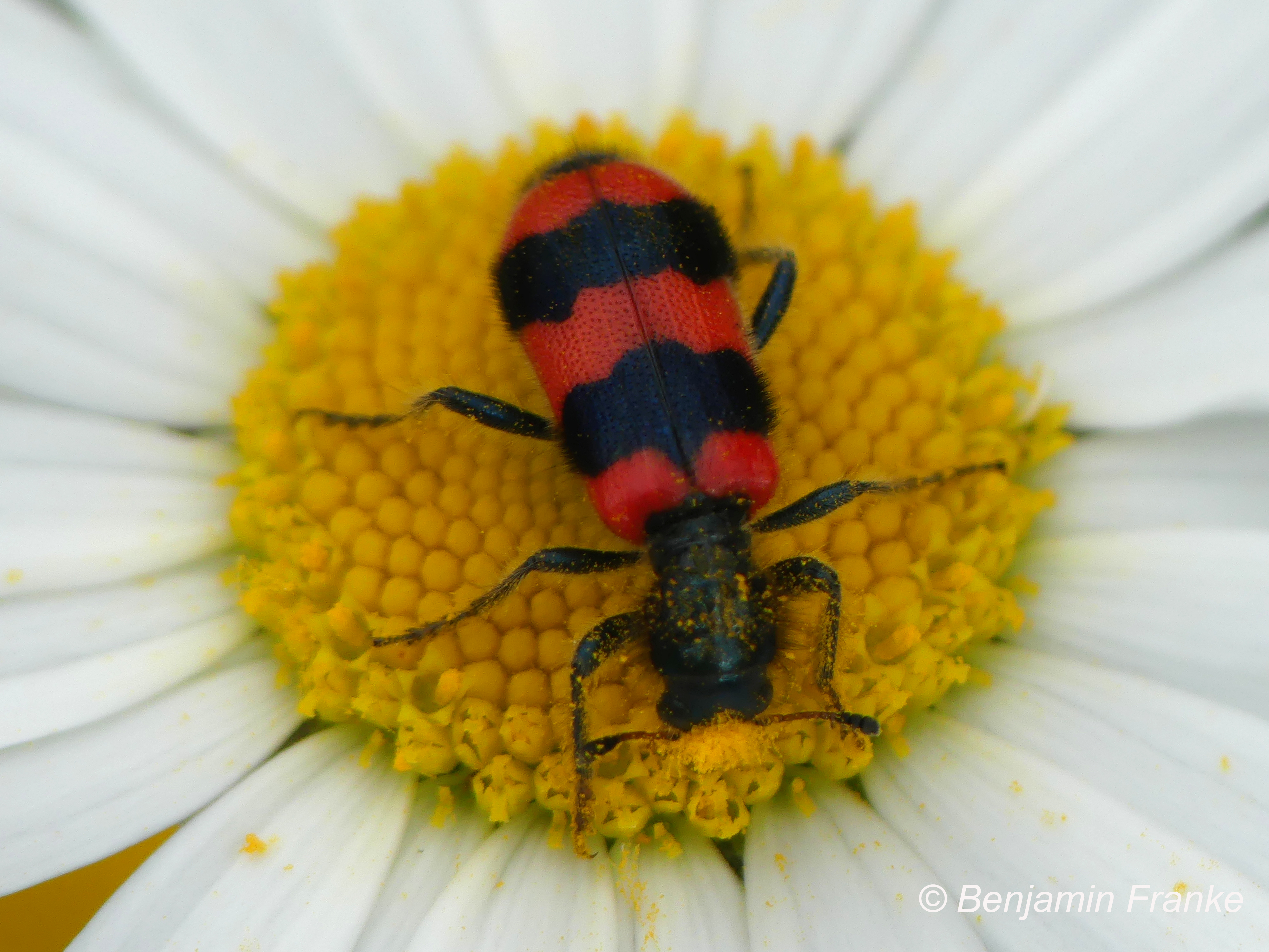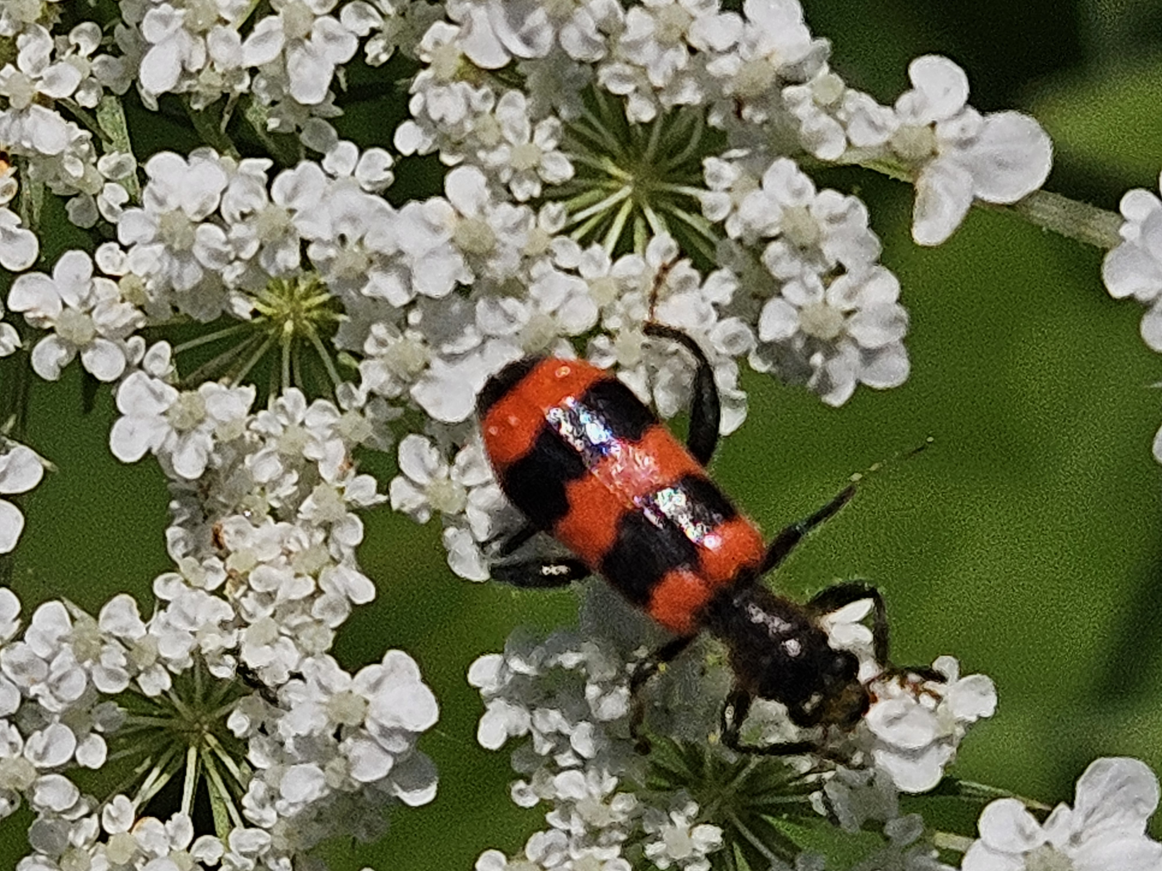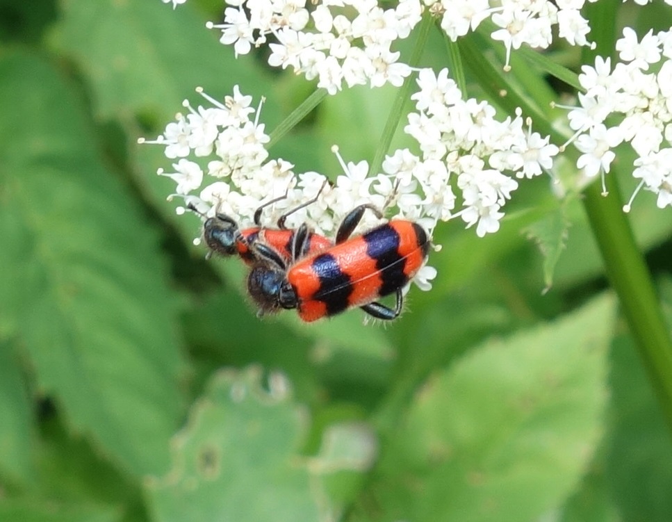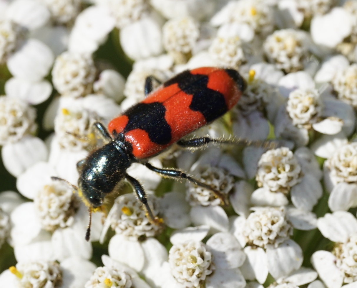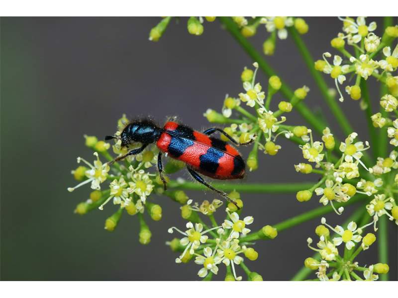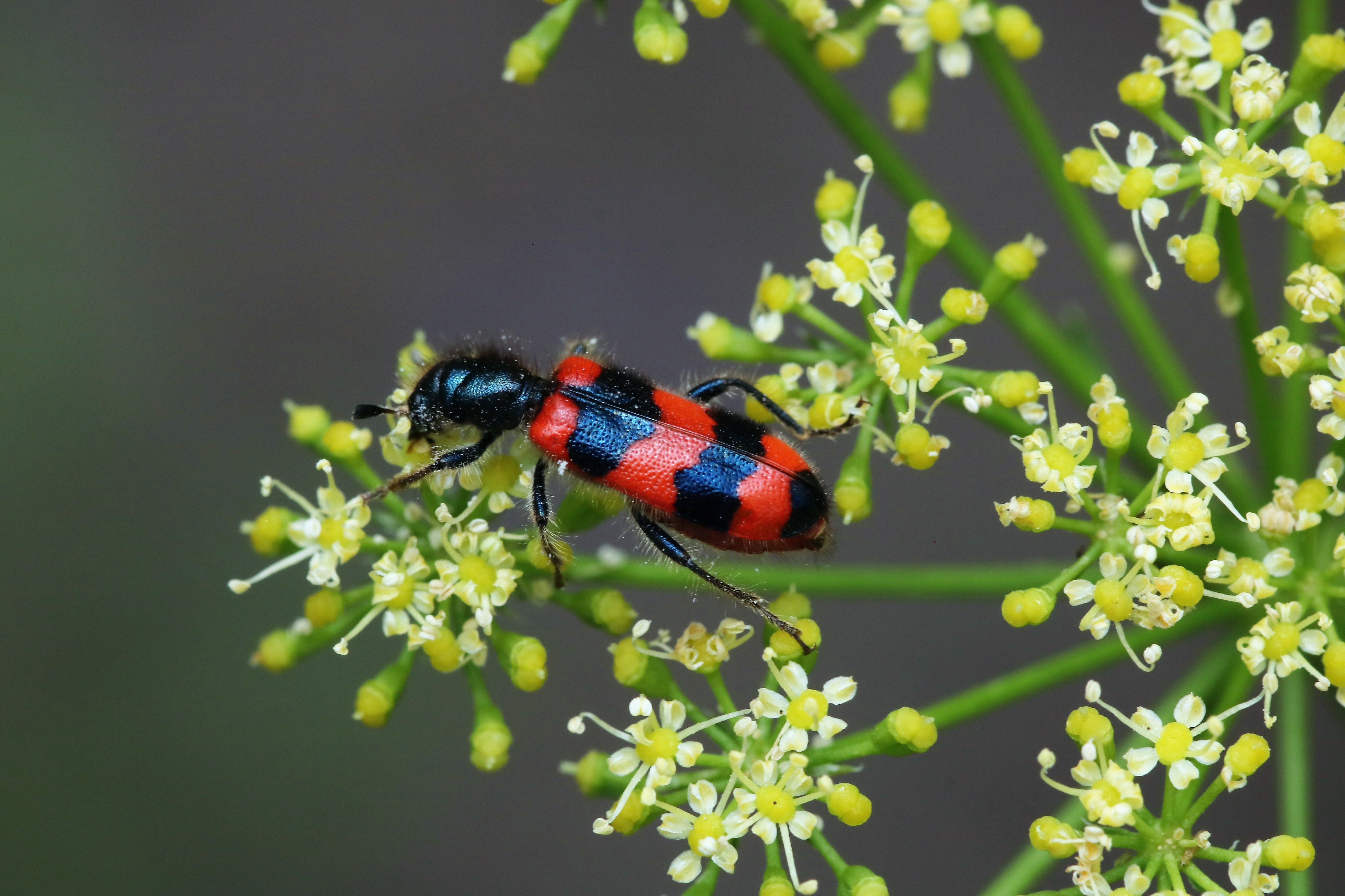 Gemeiner Bienenkäfer (Trichodes apiarius) auf Hundspetersilie (Aethusa cynapium), Fuhlendorf (Vorpommern-Rügen), 22.06.2019