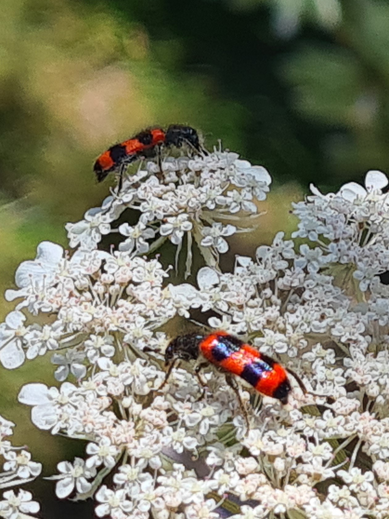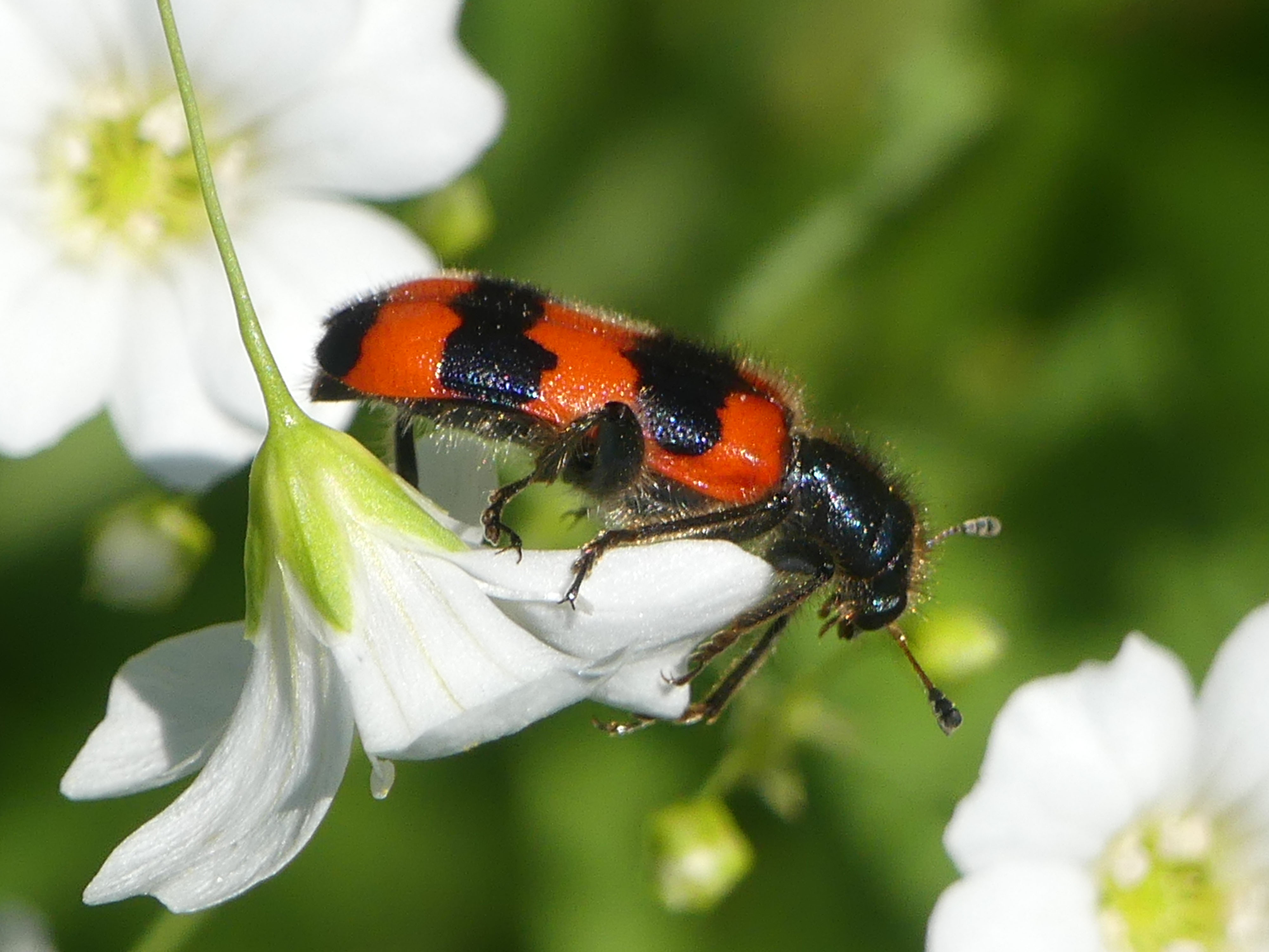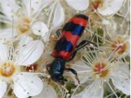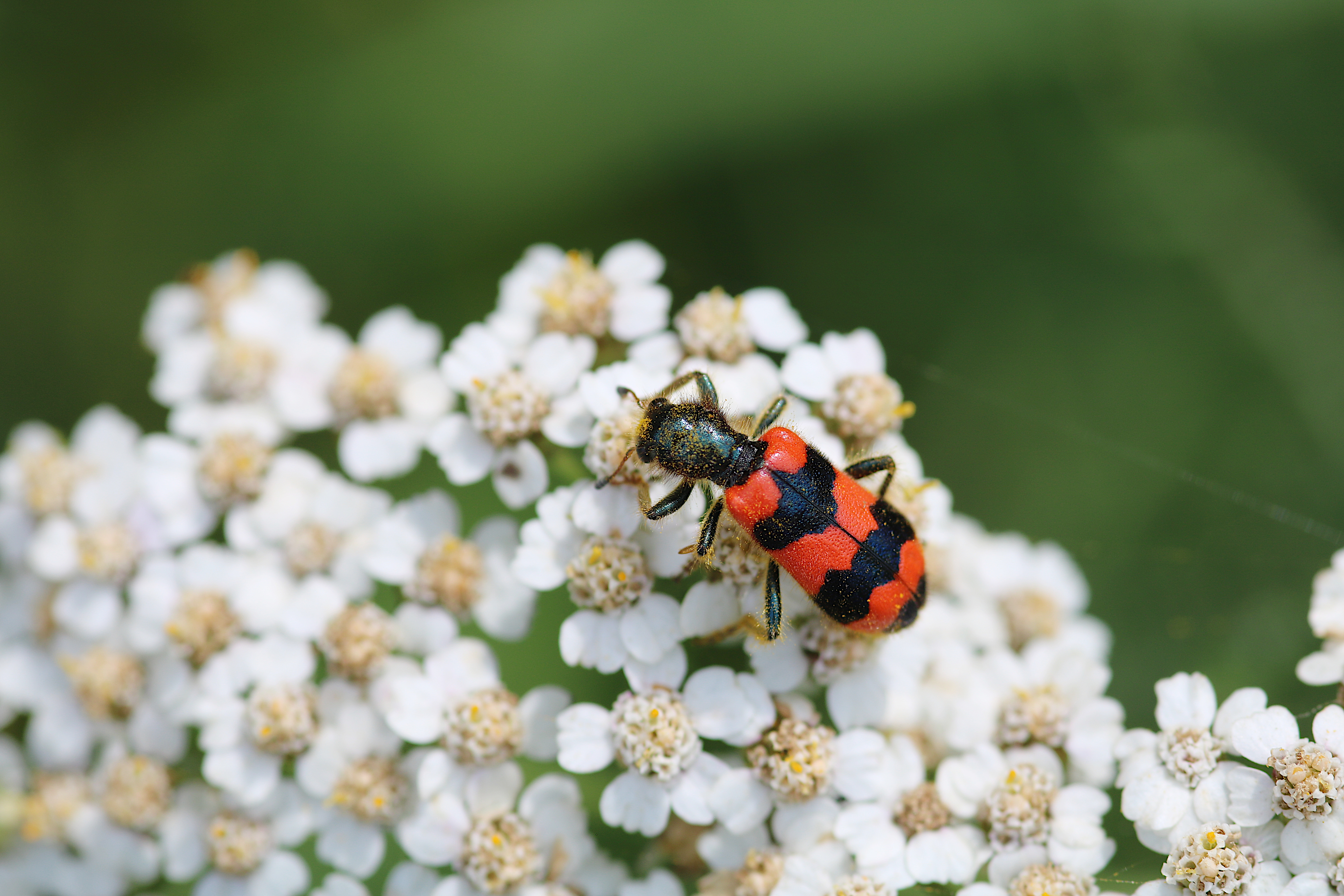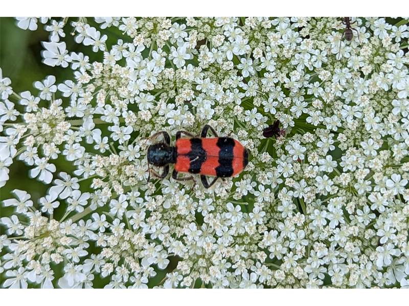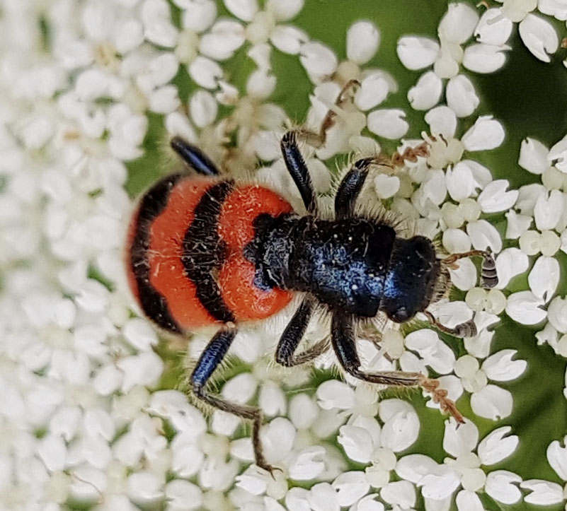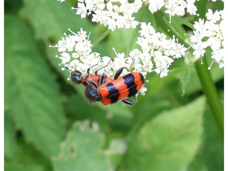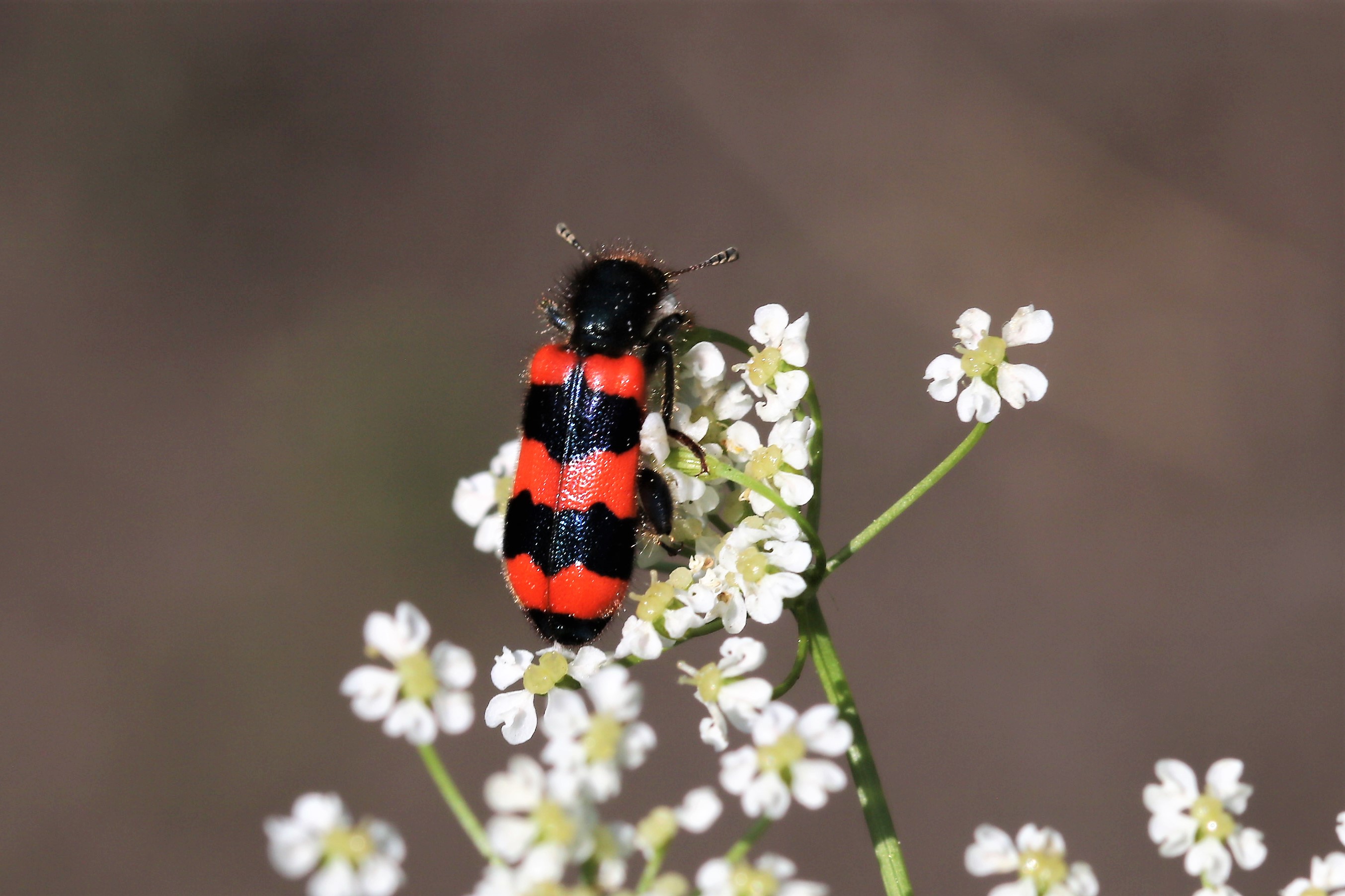 Gemeiner Bienenkäfer (Trichodes apiarius) auf Hundspetersilie (Aethusa cynapium), Fuhlendorf (Vorpommern-Rügen), 22.06.2019