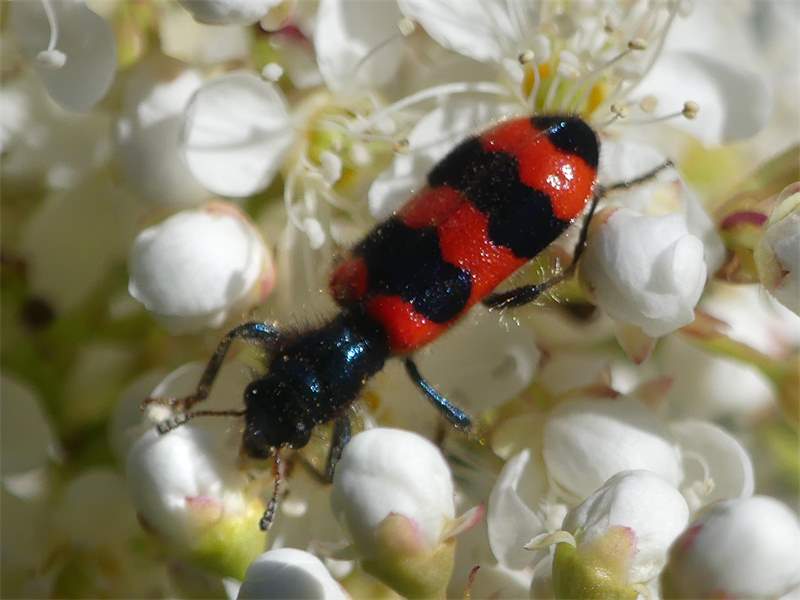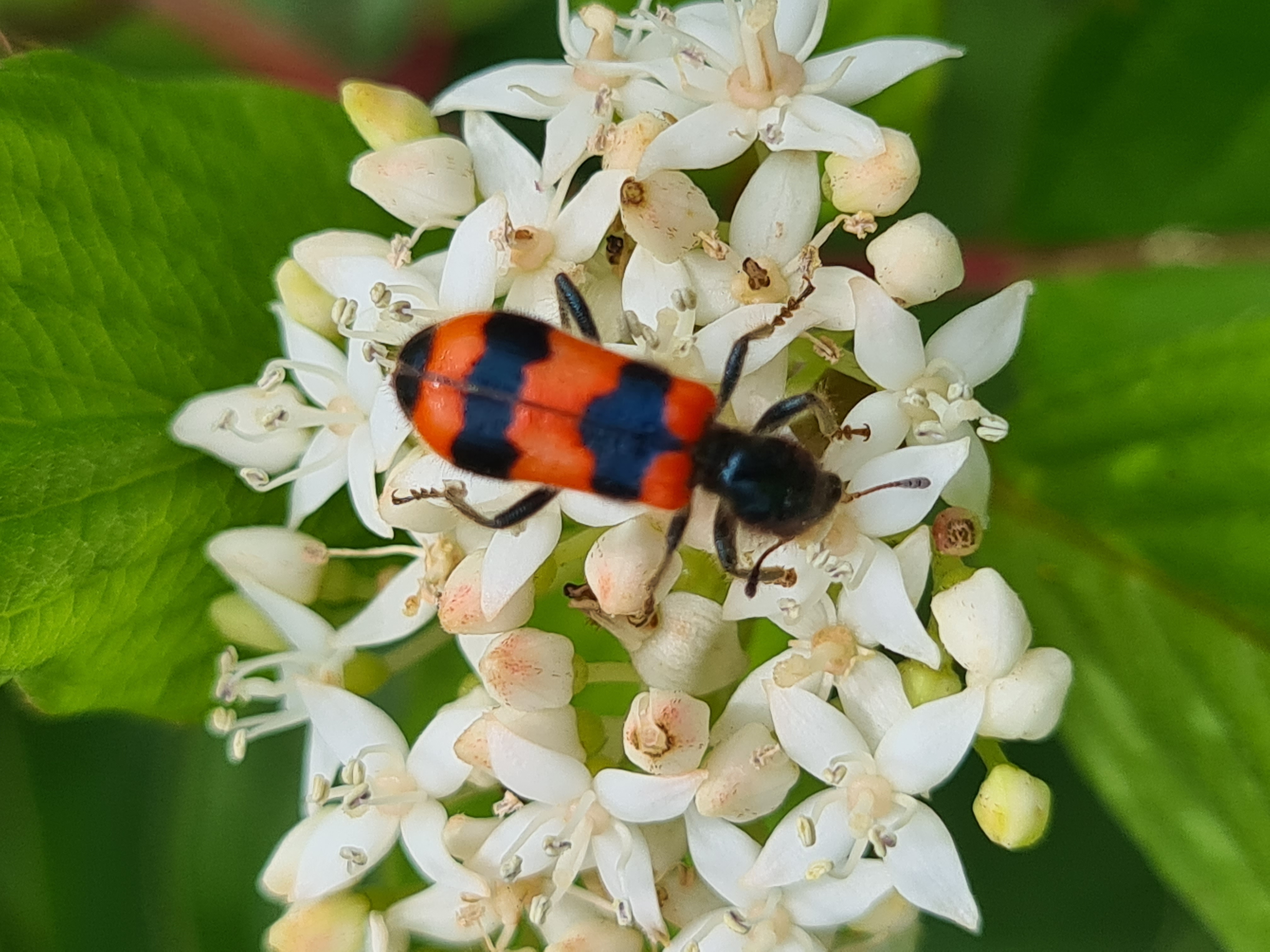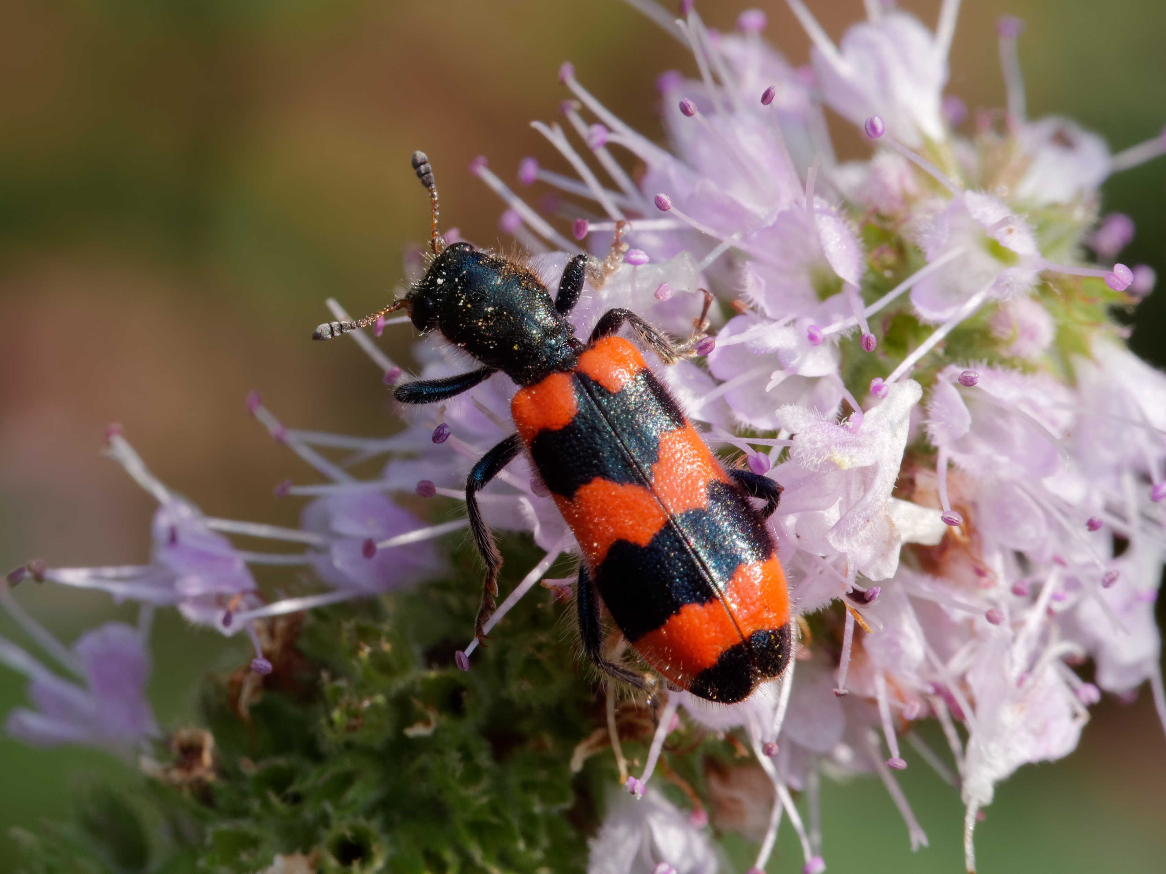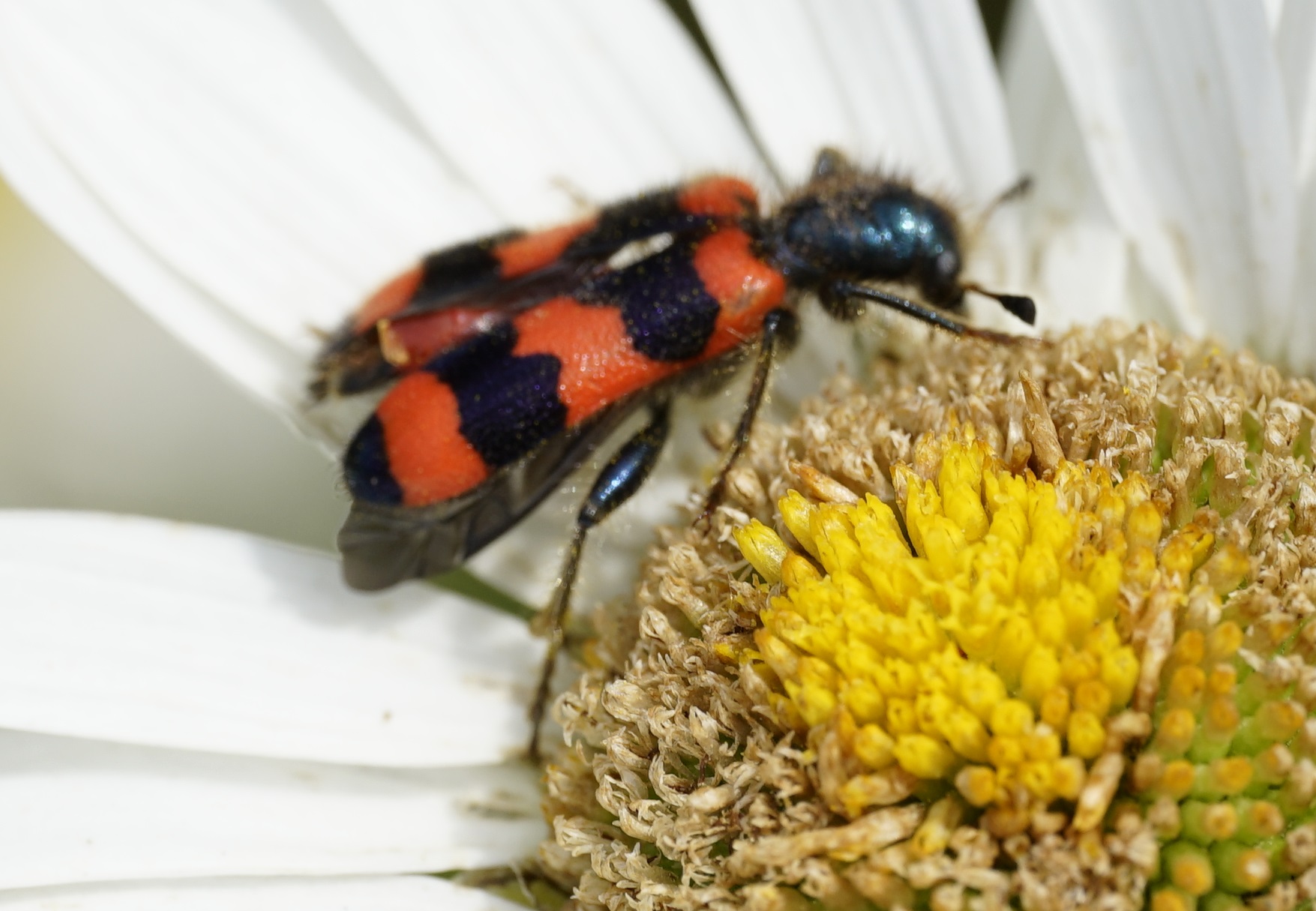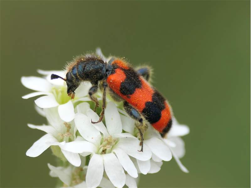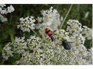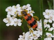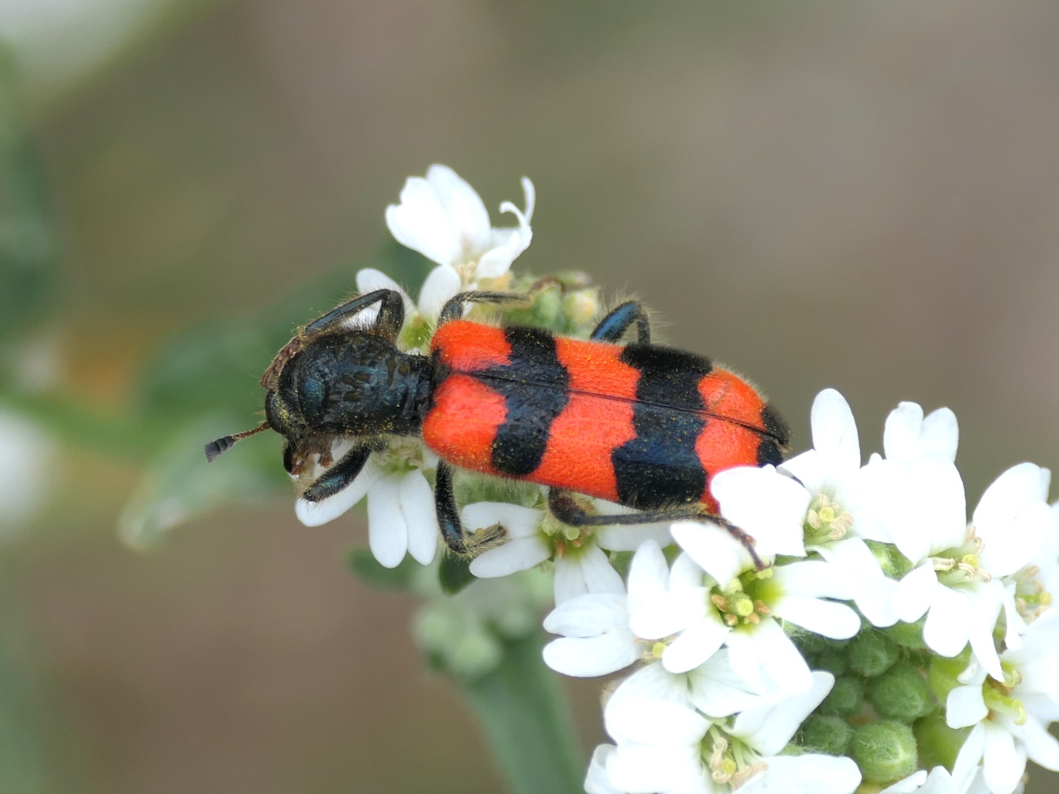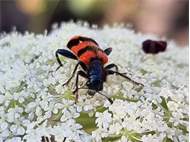 Gemeiner Bienenkäfer (Trichodes apiarius) auf Hundspetersilie (Aethusa cynapium), Fuhlendorf (Vorpommern-Rügen), 22.06.2019