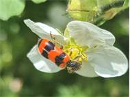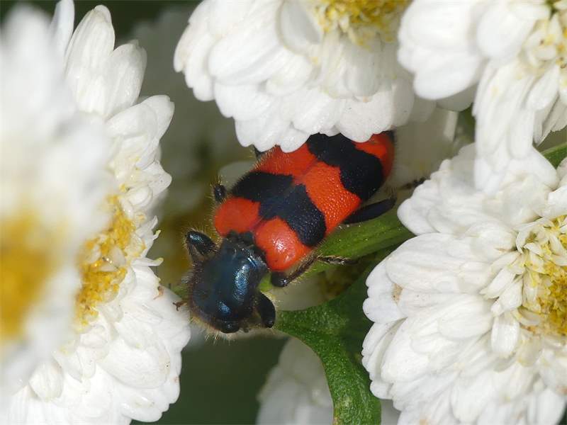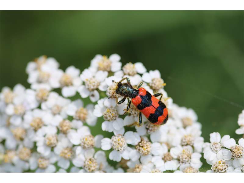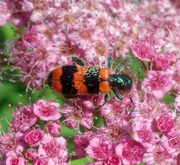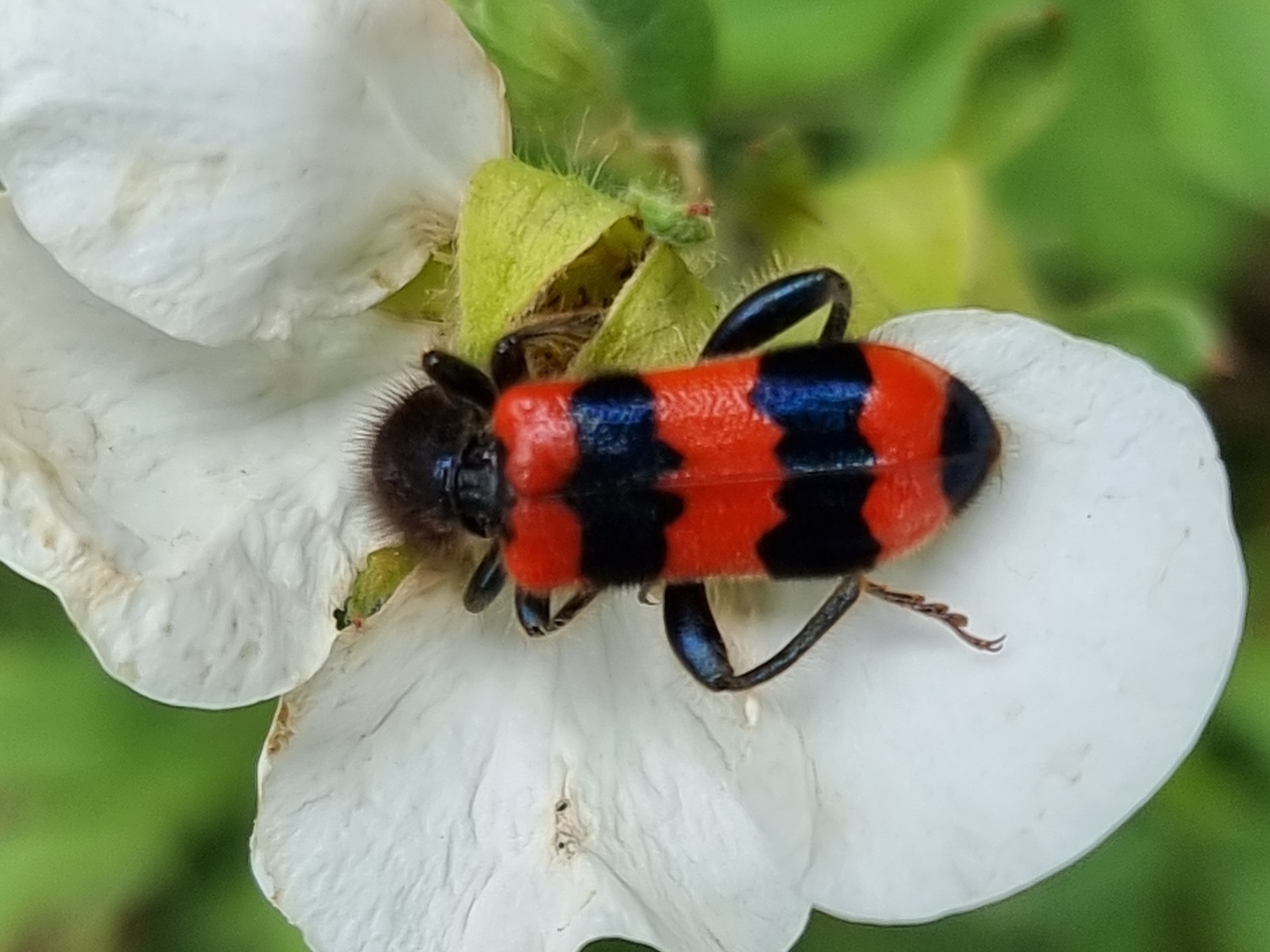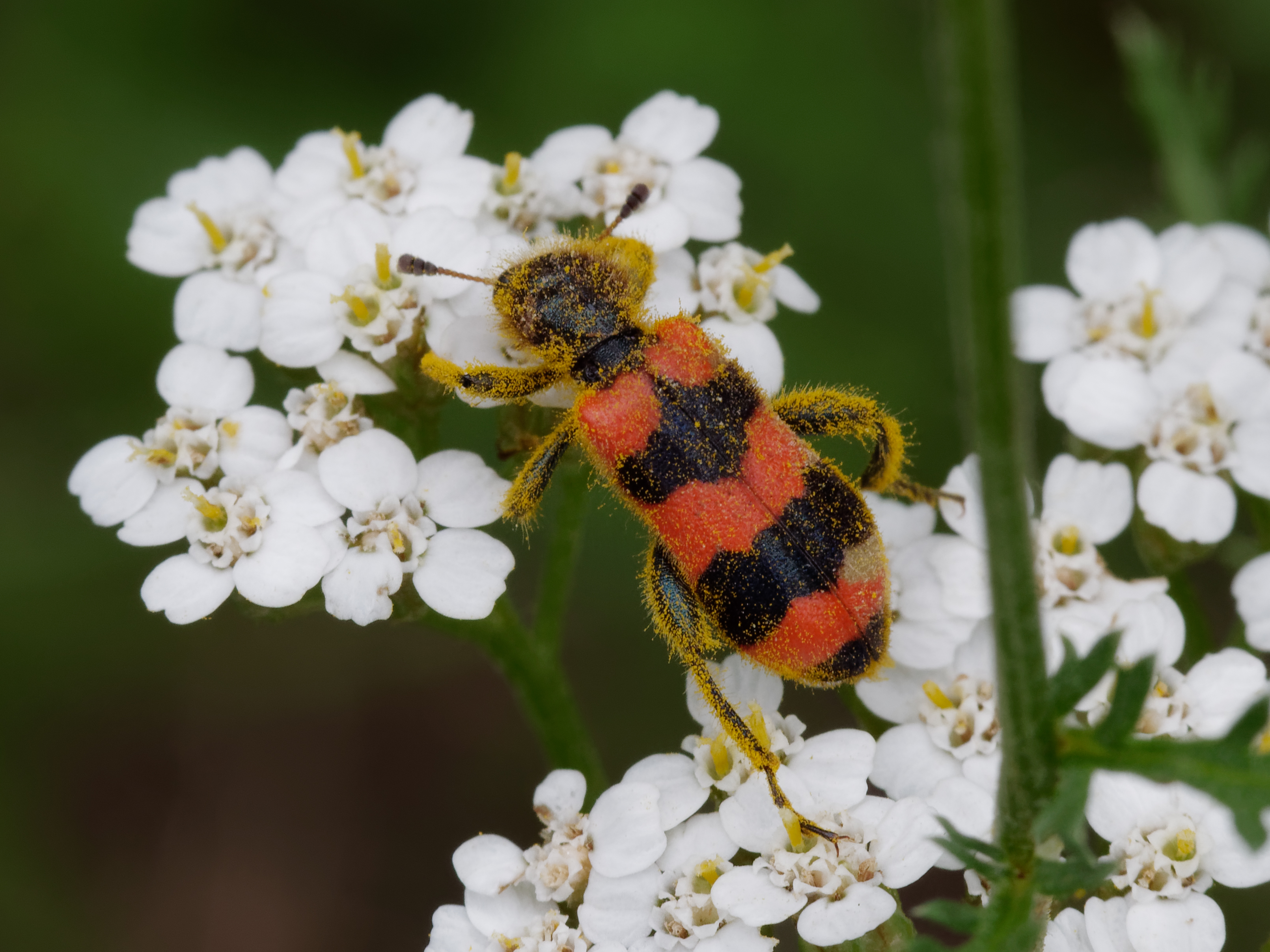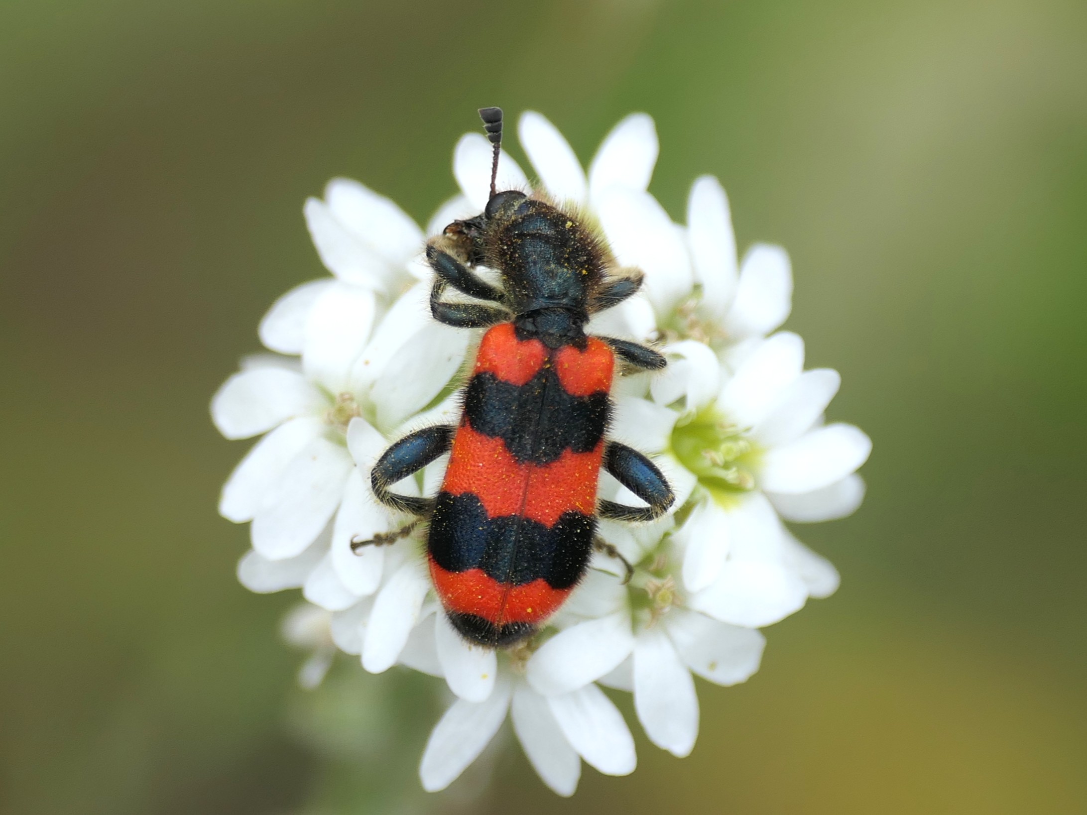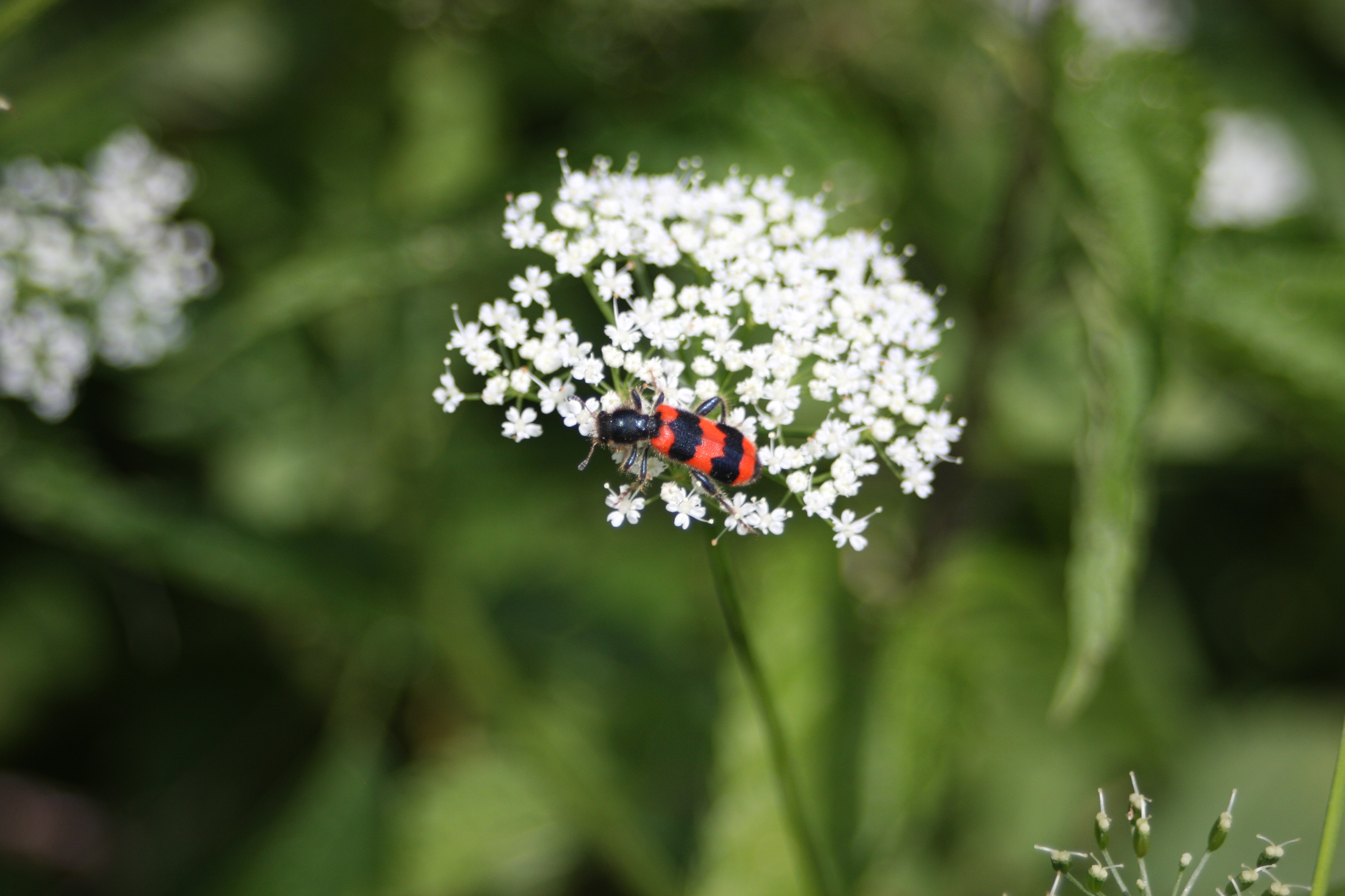 Gemeiner Bienenkäfer (Trichodes apiarius) auf Hundspetersilie (Aethusa cynapium), Fuhlendorf (Vorpommern-Rügen), 22.06.2019