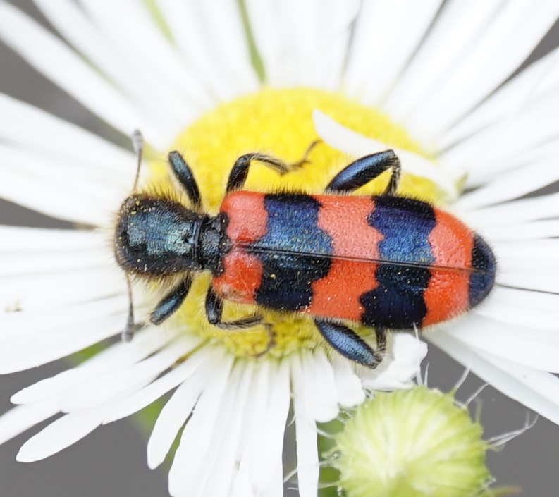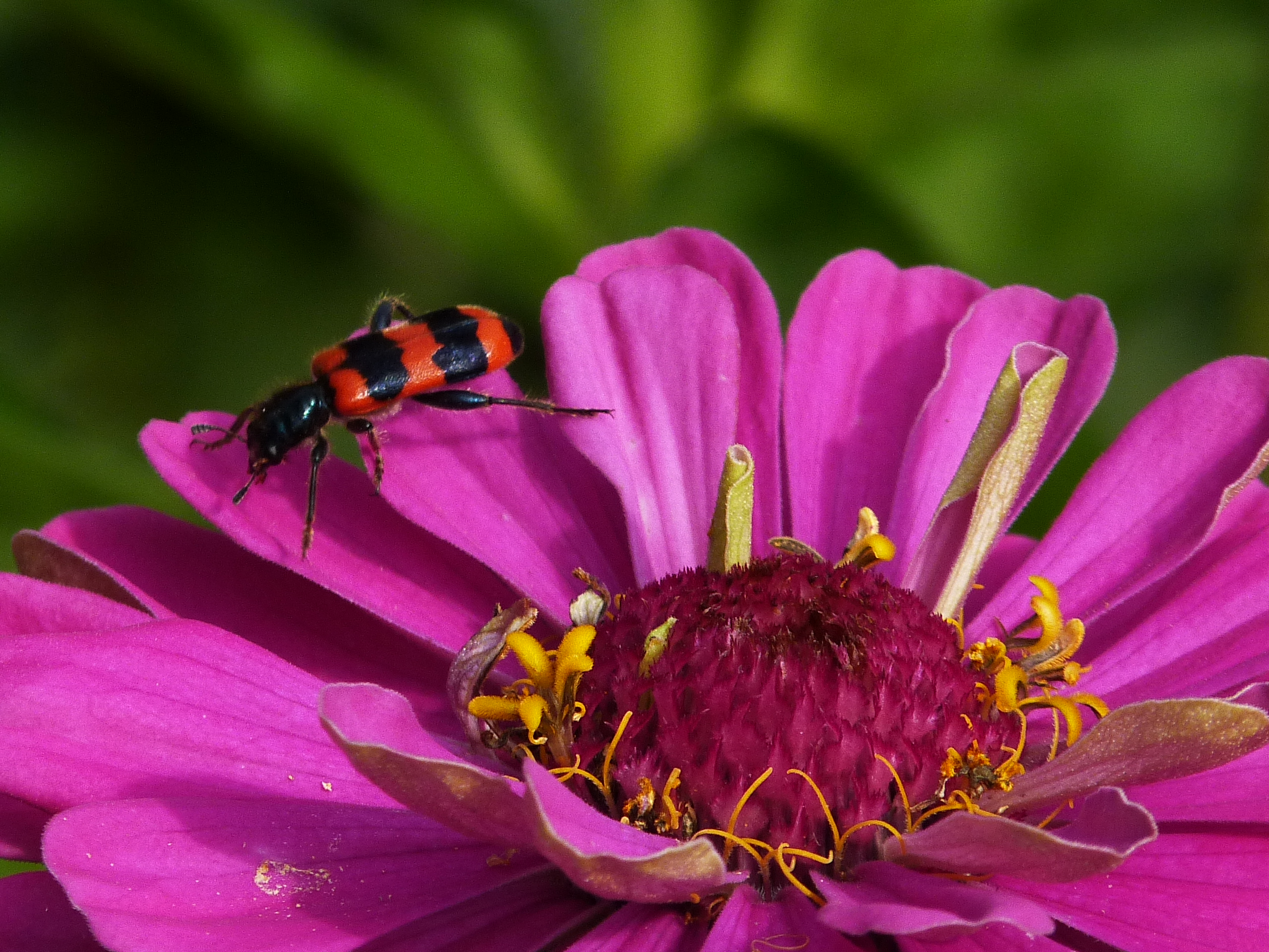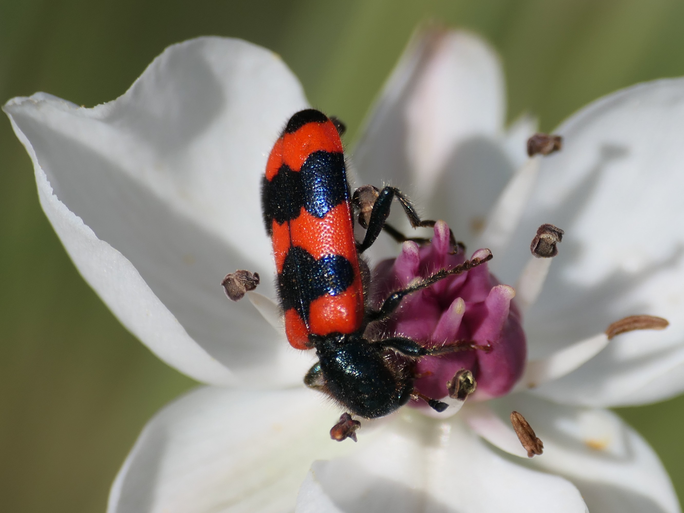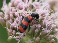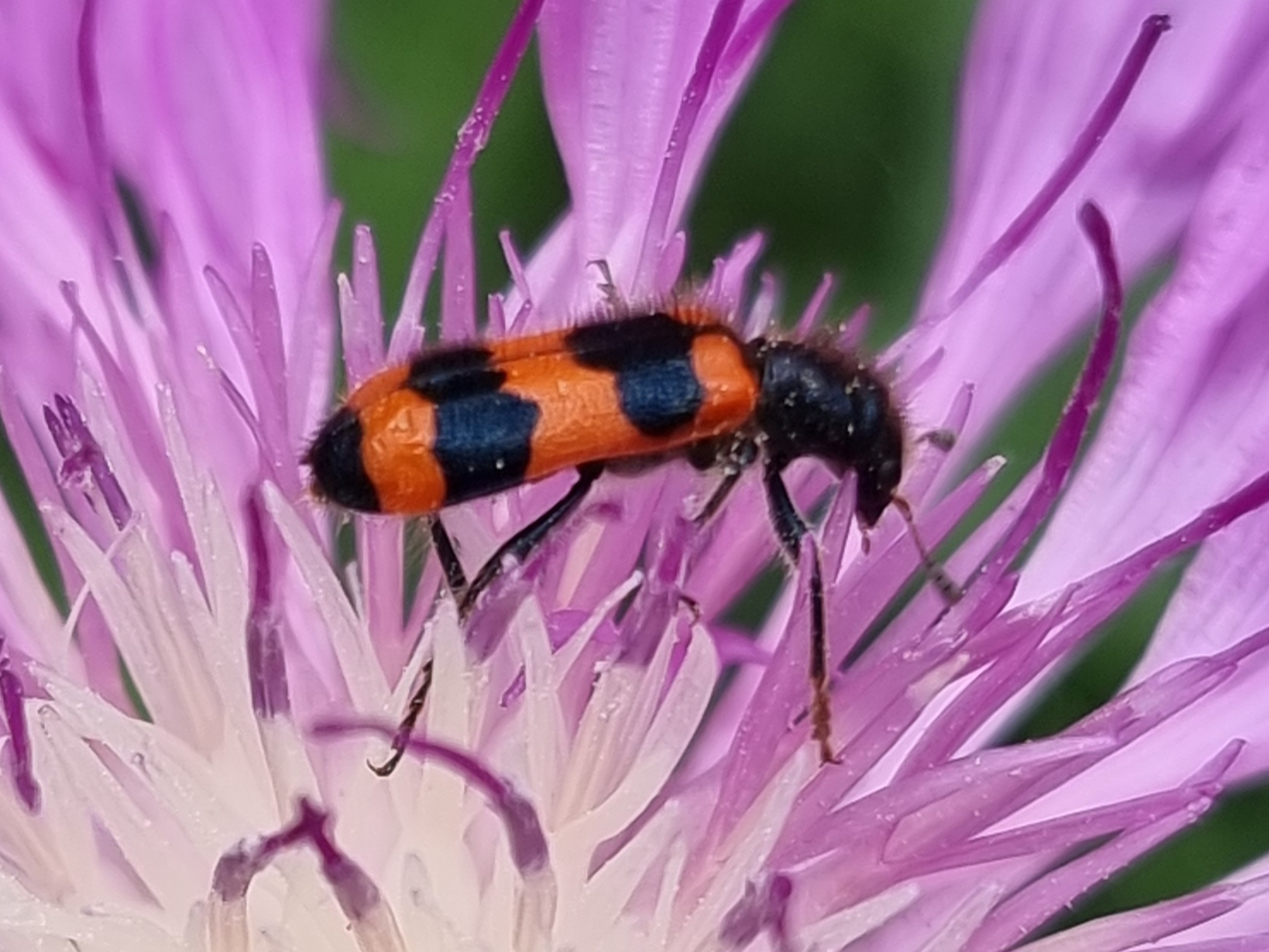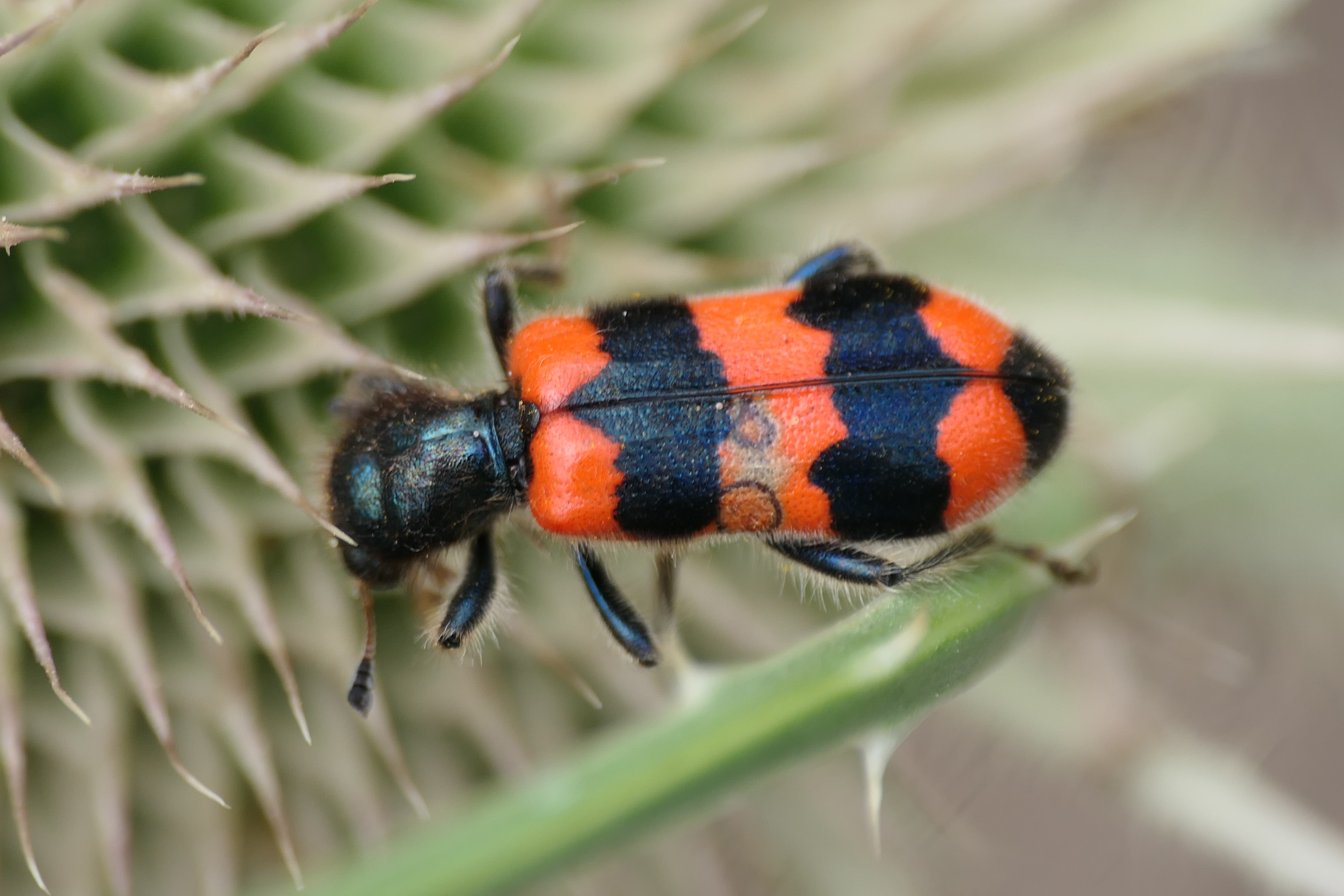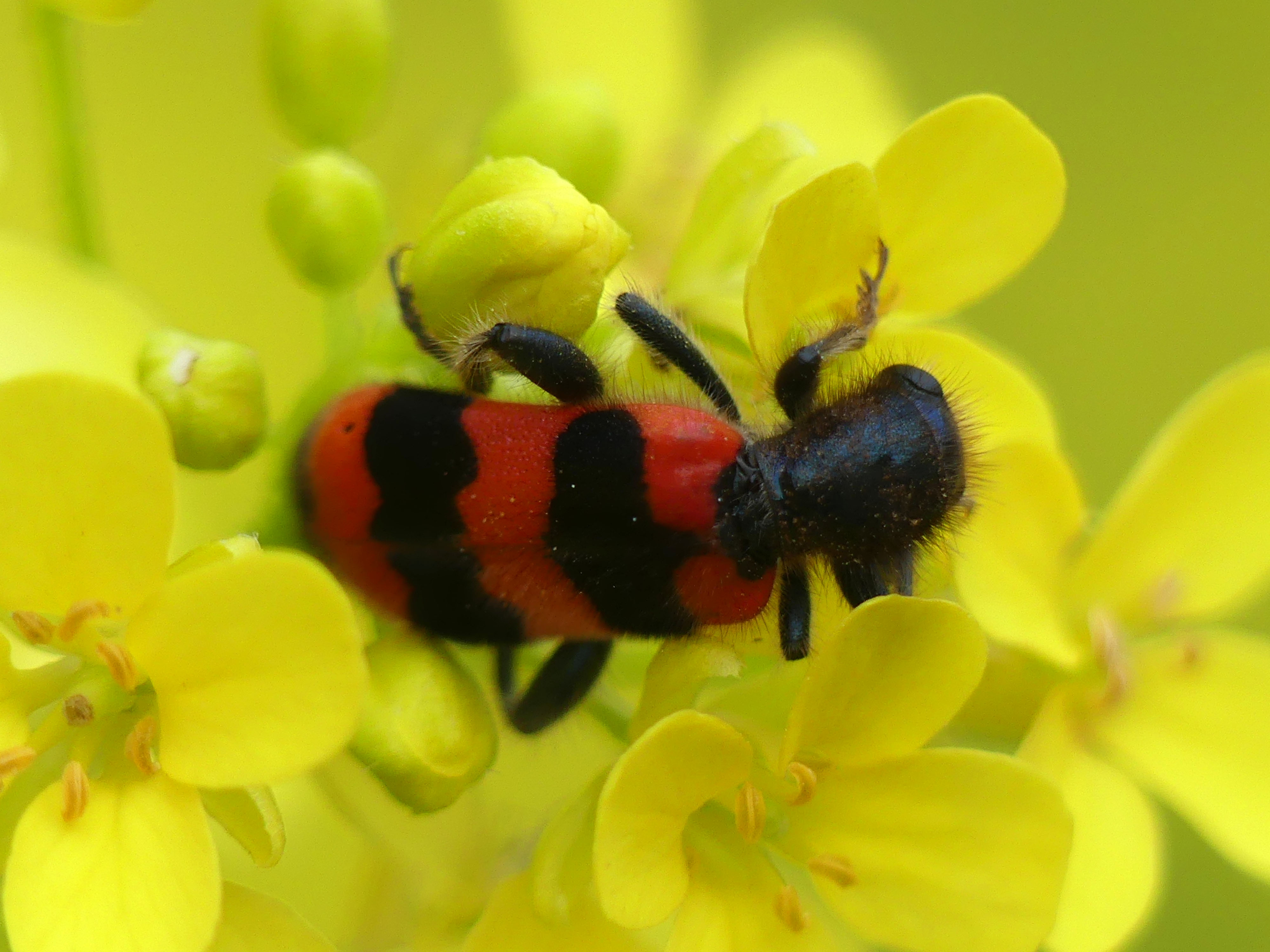 Gemeiner Bienenkäfer (Trichodes apiarius) auf Hundspetersilie (Aethusa cynapium), Fuhlendorf (Vorpommern-Rügen), 22.06.2019