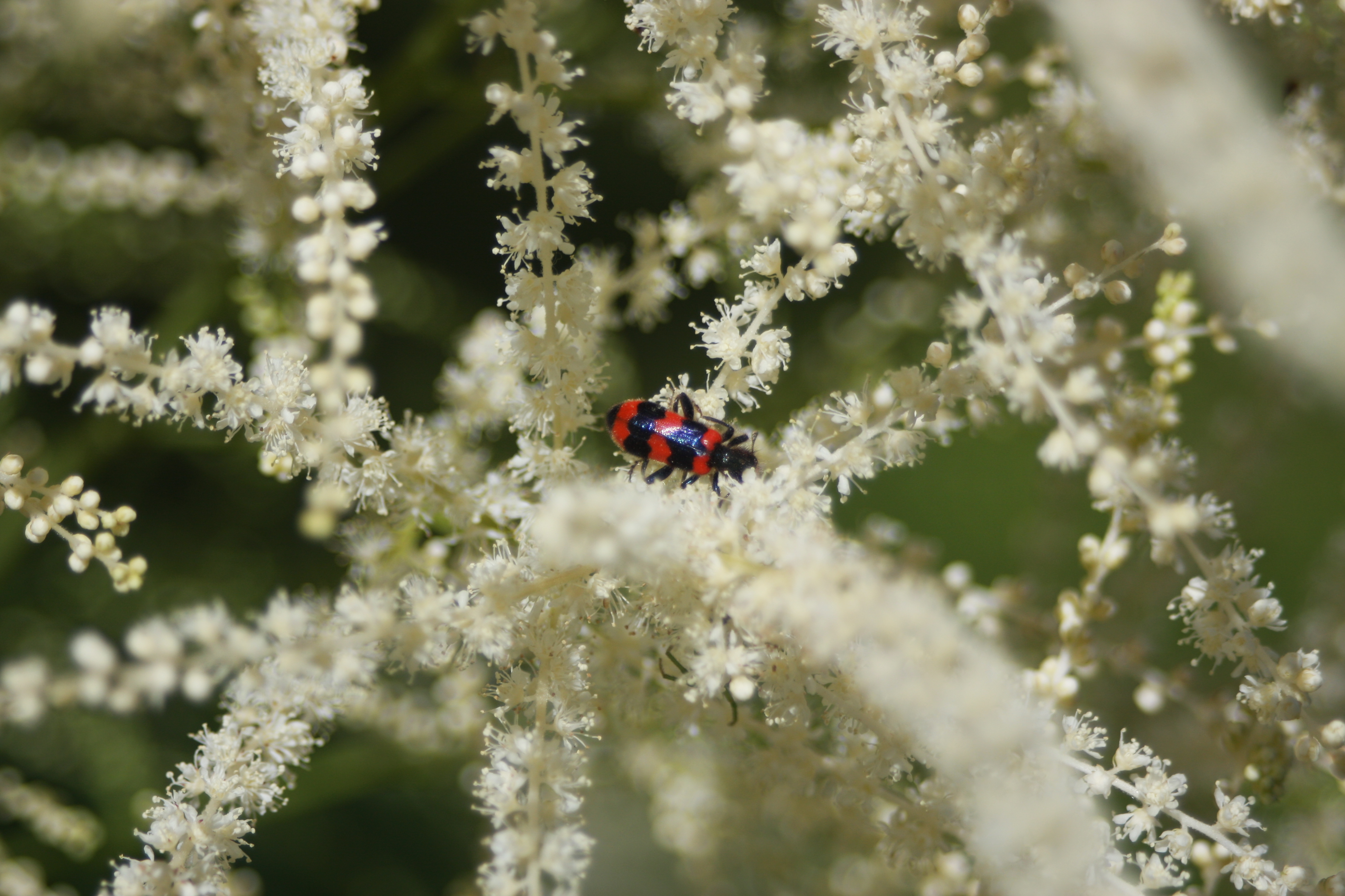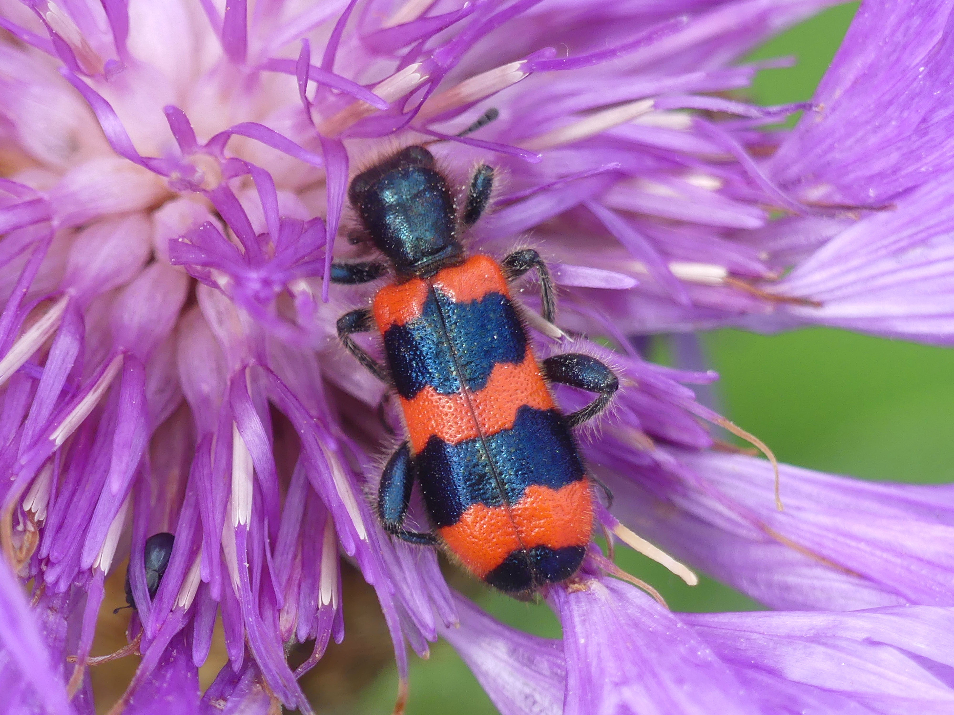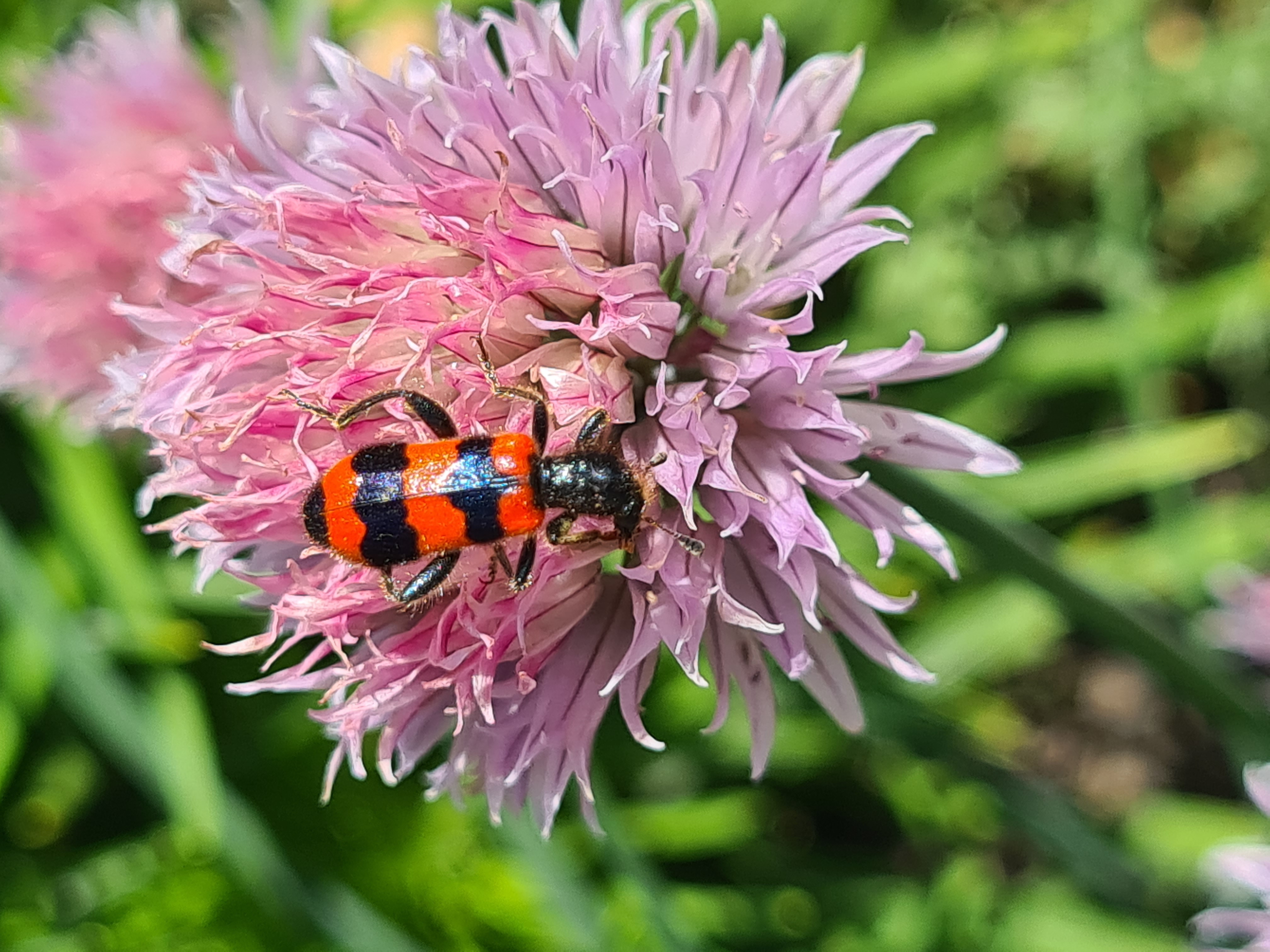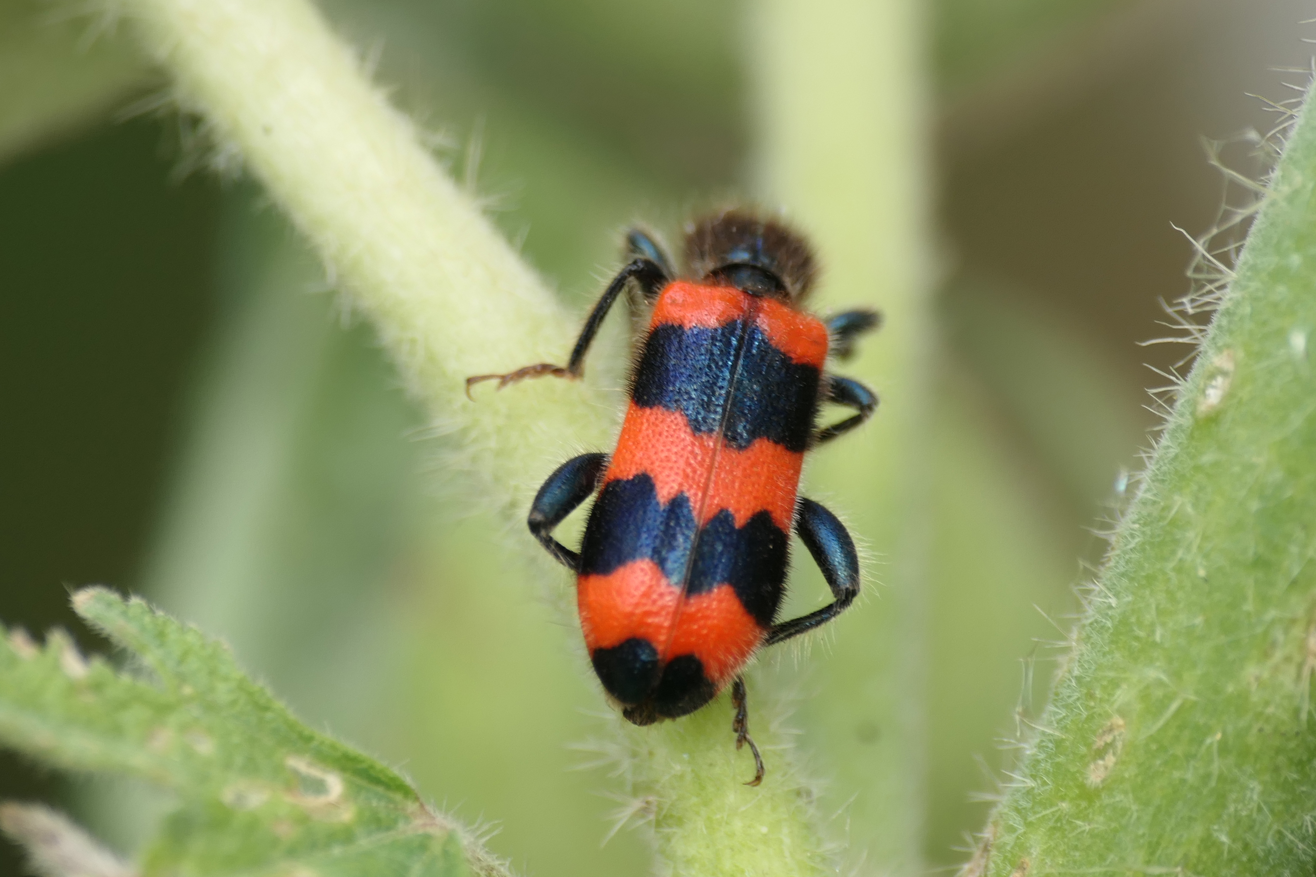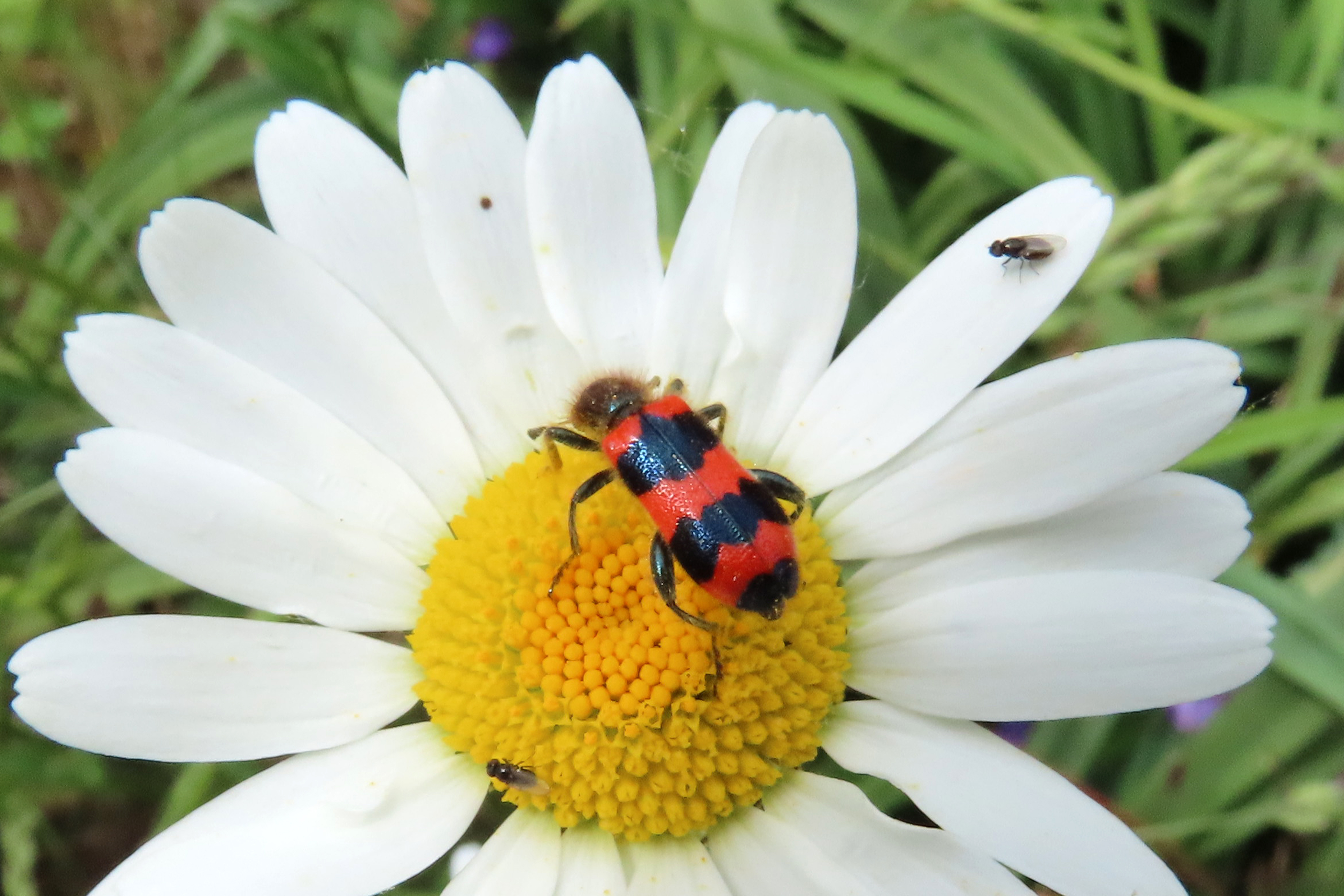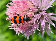 Gemeiner Bienenkäfer (Trichodes apiarius) auf Hundspetersilie (Aethusa cynapium), Fuhlendorf (Vorpommern-Rügen), 22.06.2019