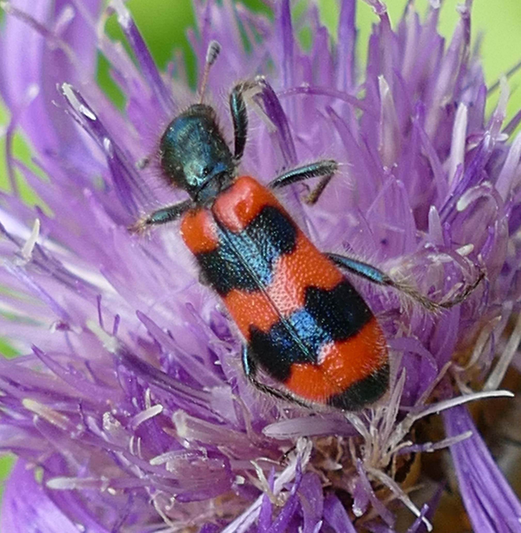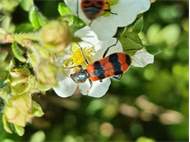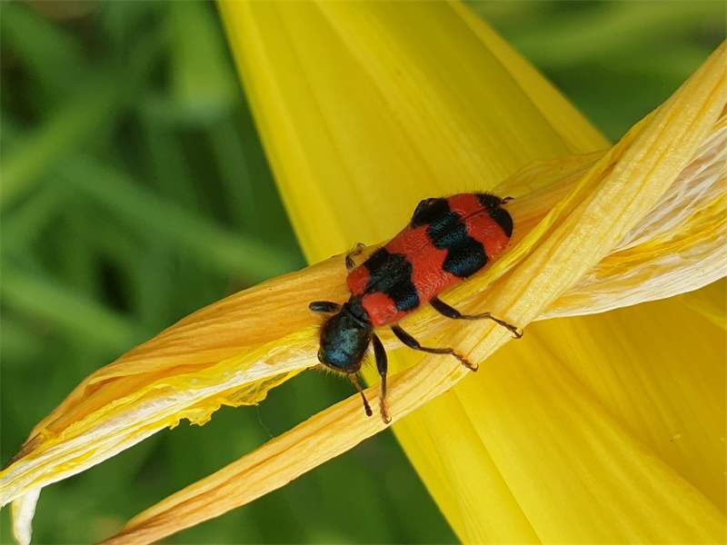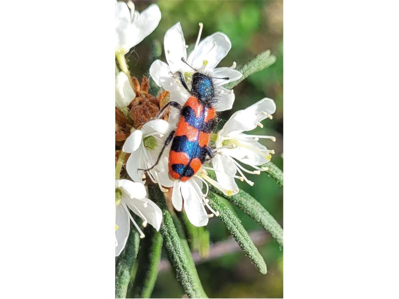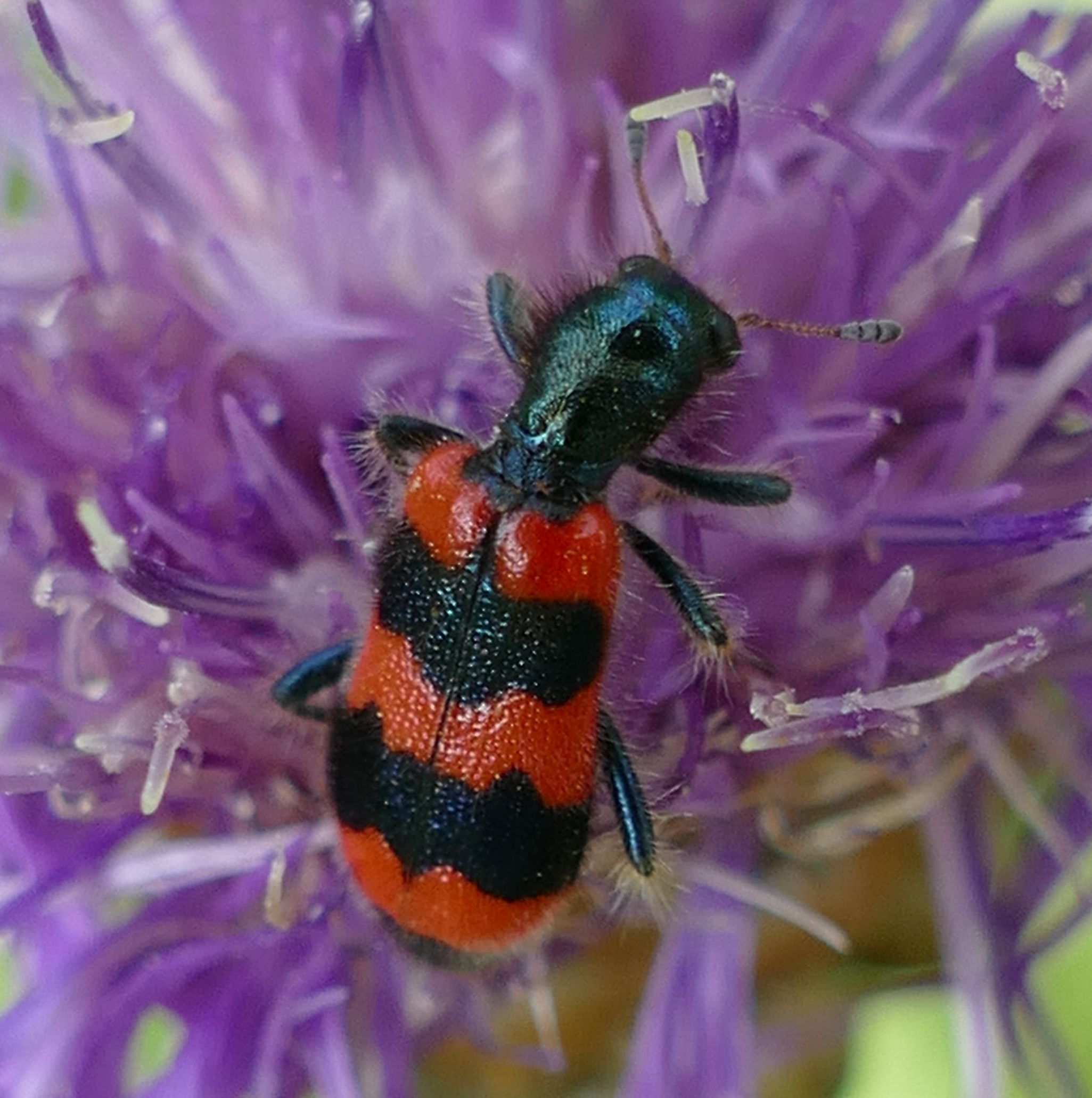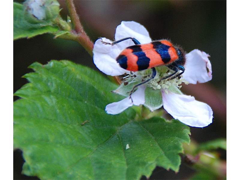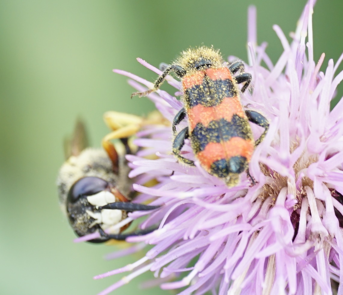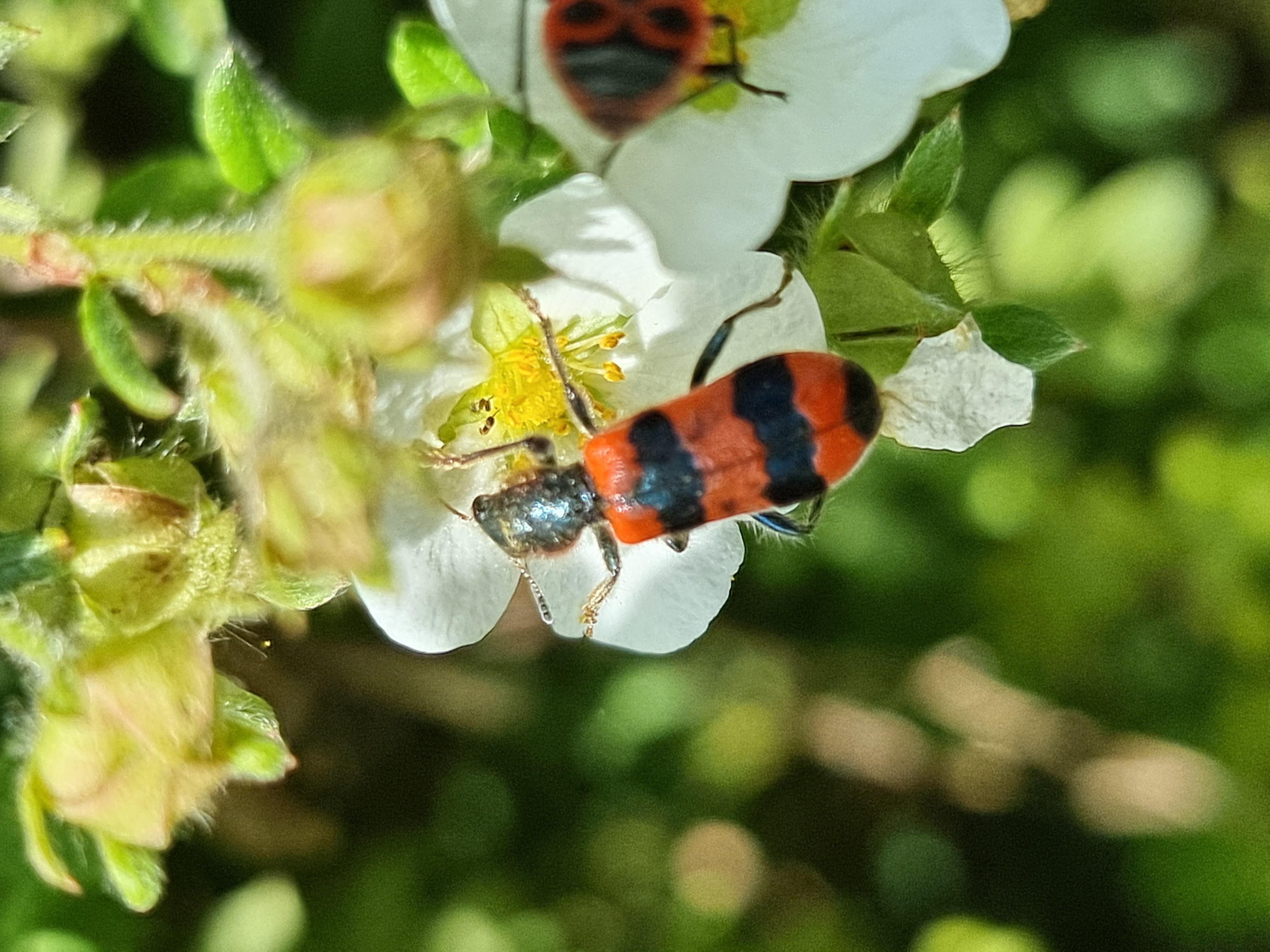 Gemeiner Bienenkäfer (Trichodes apiarius) auf Hundspetersilie (Aethusa cynapium), Fuhlendorf (Vorpommern-Rügen), 22.06.2019