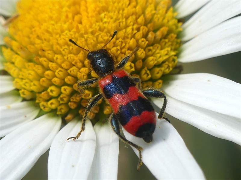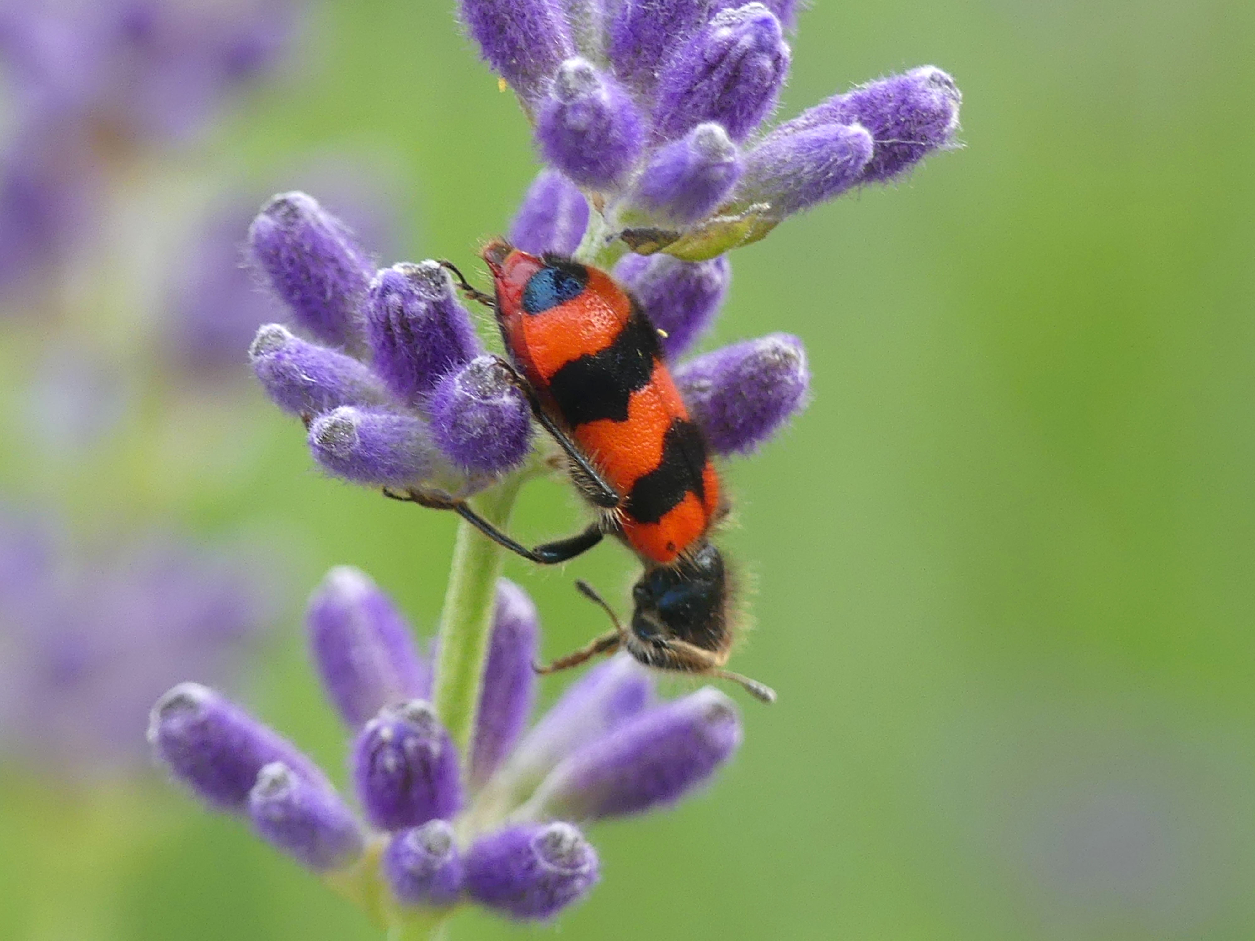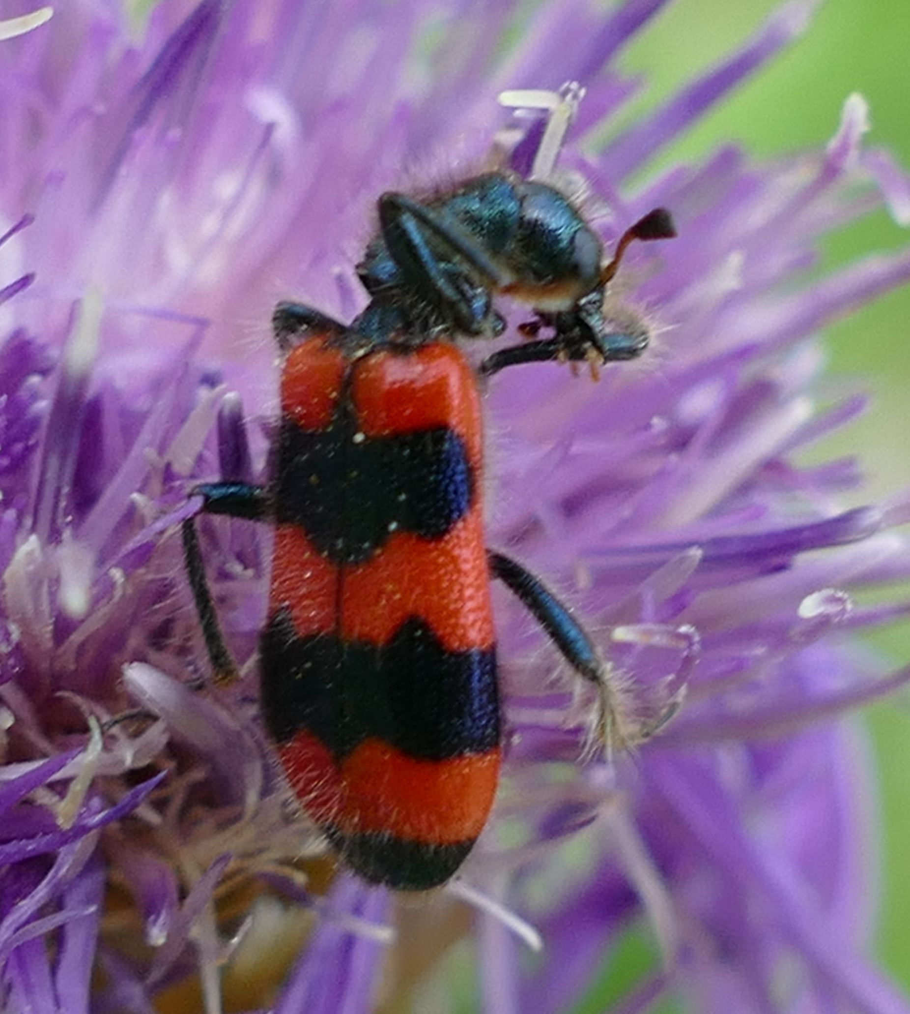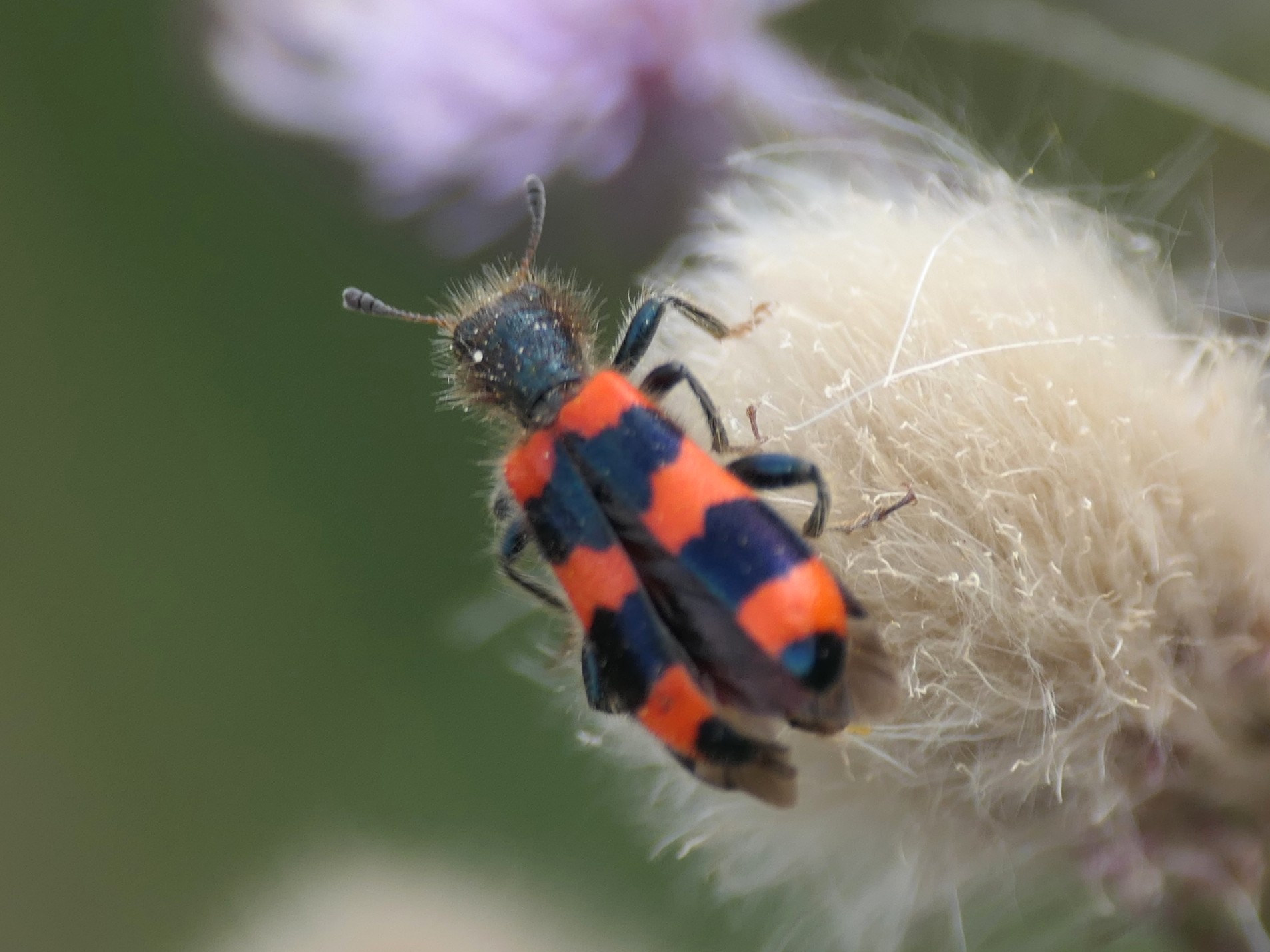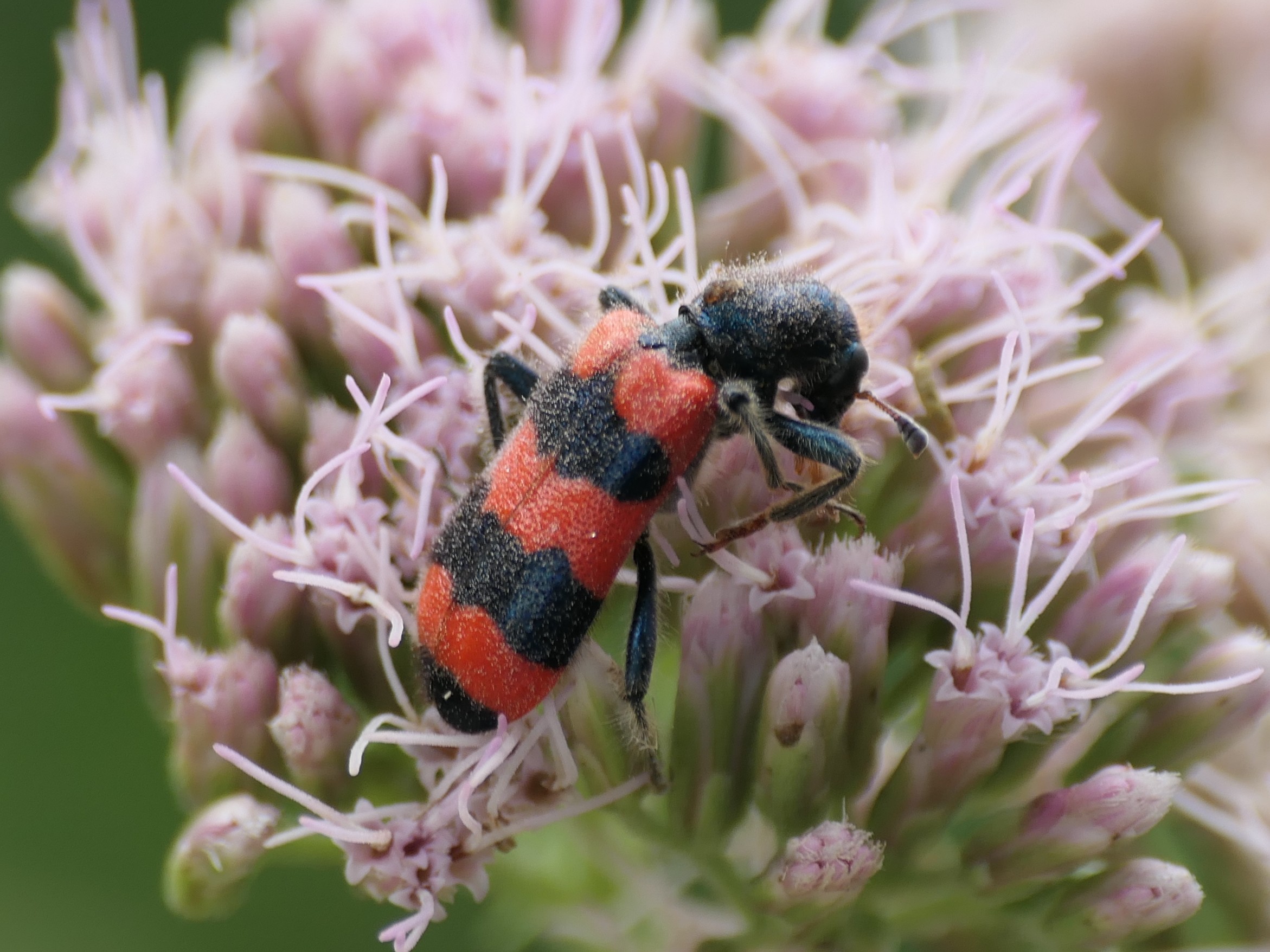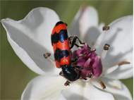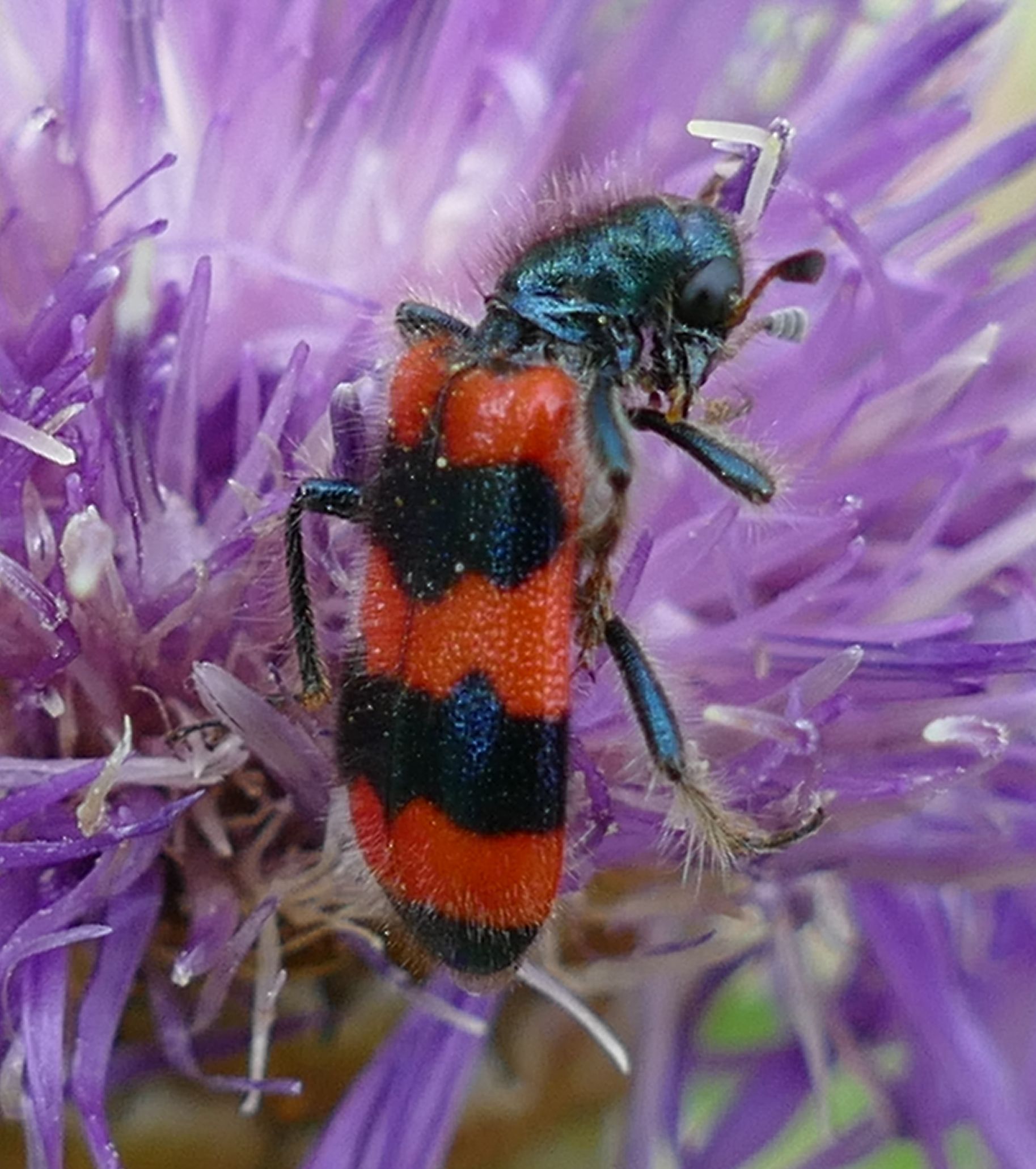 Gemeiner Bienenkäfer (Trichodes apiarius) auf Hundspetersilie (Aethusa cynapium), Fuhlendorf (Vorpommern-Rügen), 22.06.2019