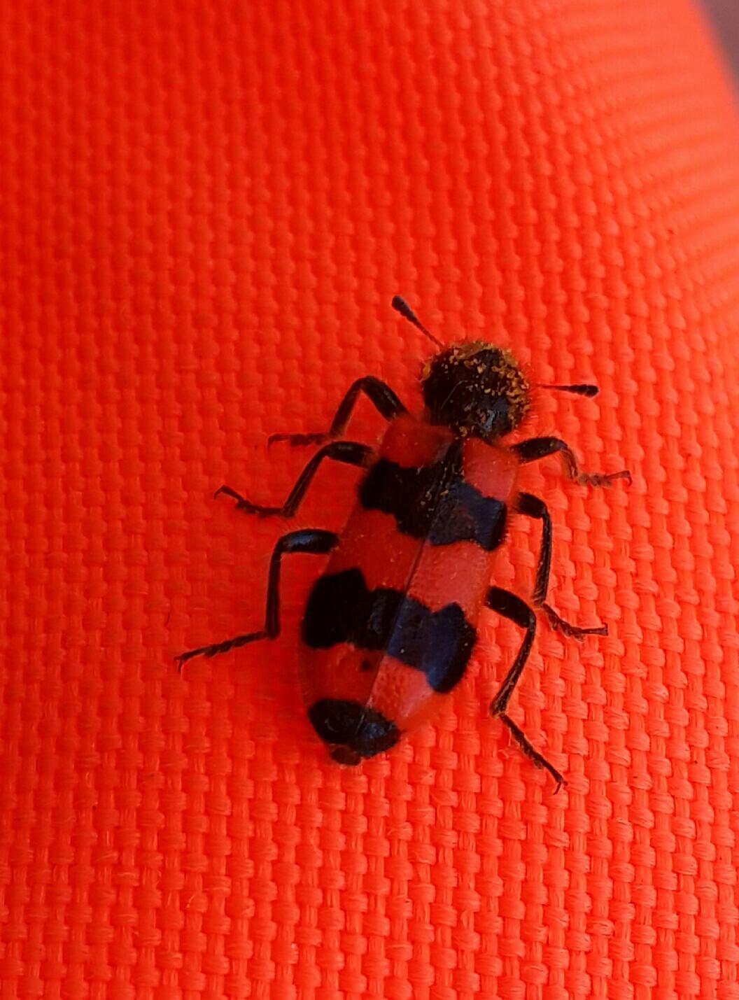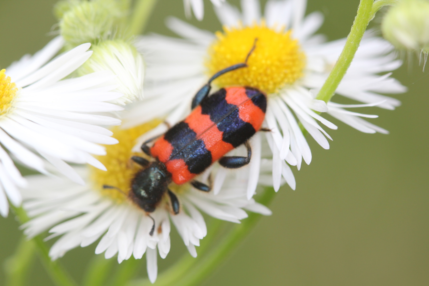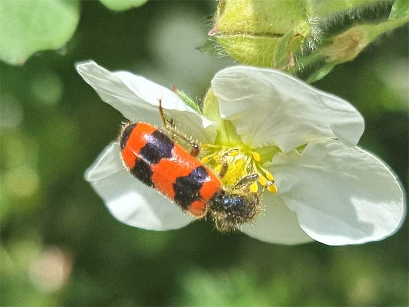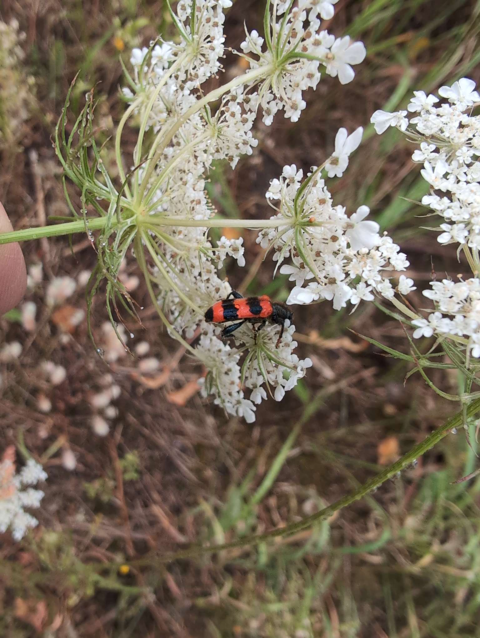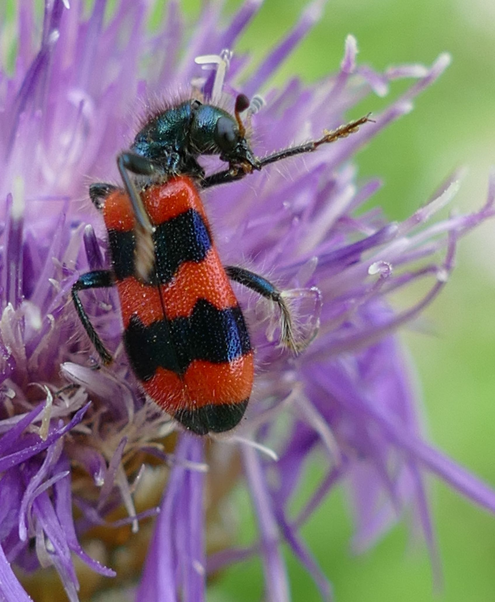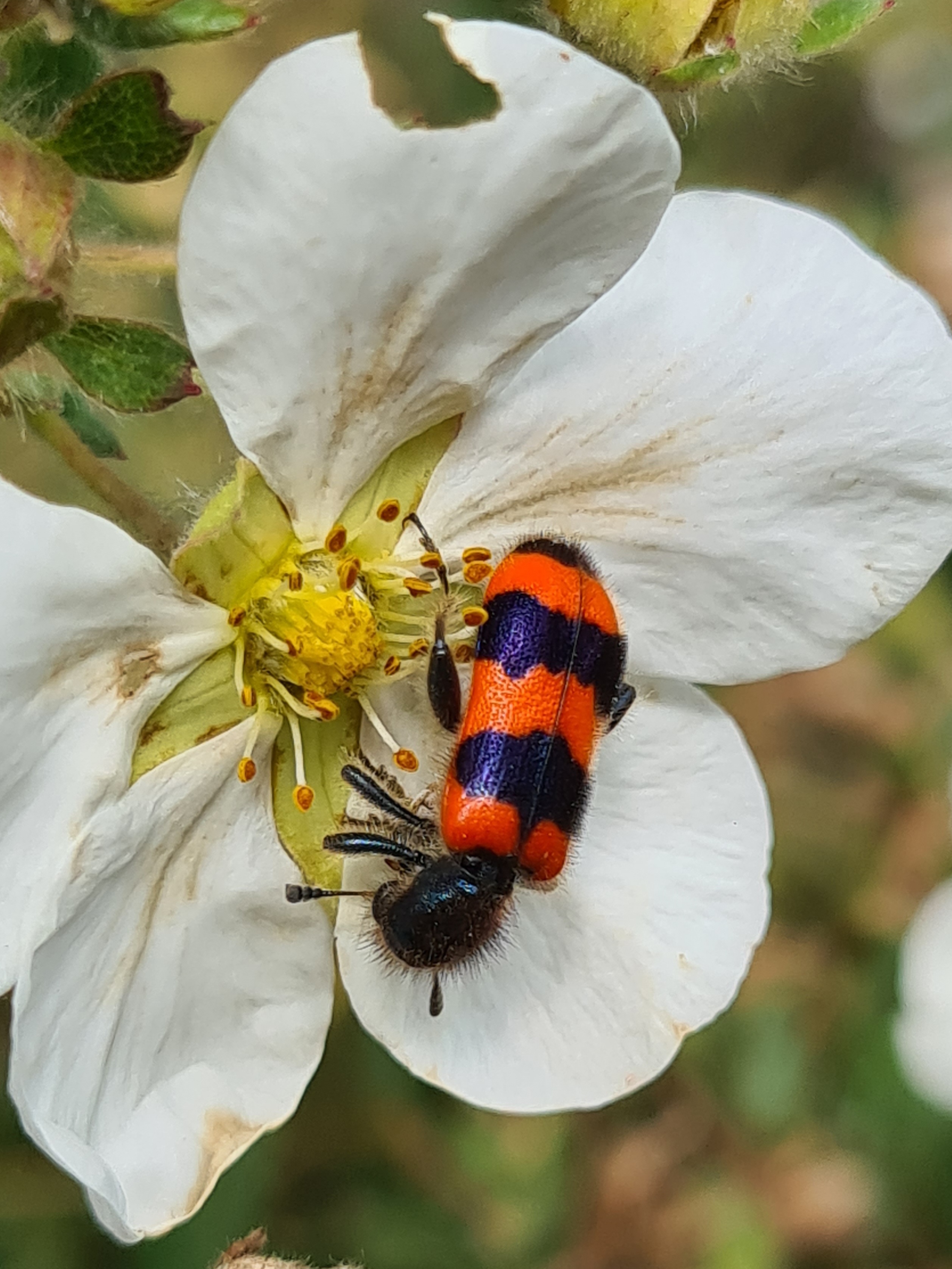 Gemeiner Bienenkäfer (Trichodes apiarius) auf Hundspetersilie (Aethusa cynapium), Fuhlendorf (Vorpommern-Rügen), 22.06.2019