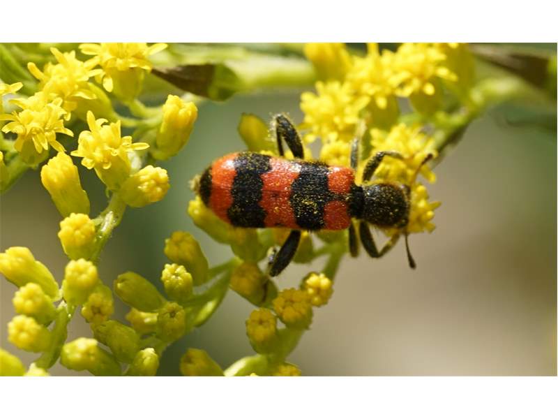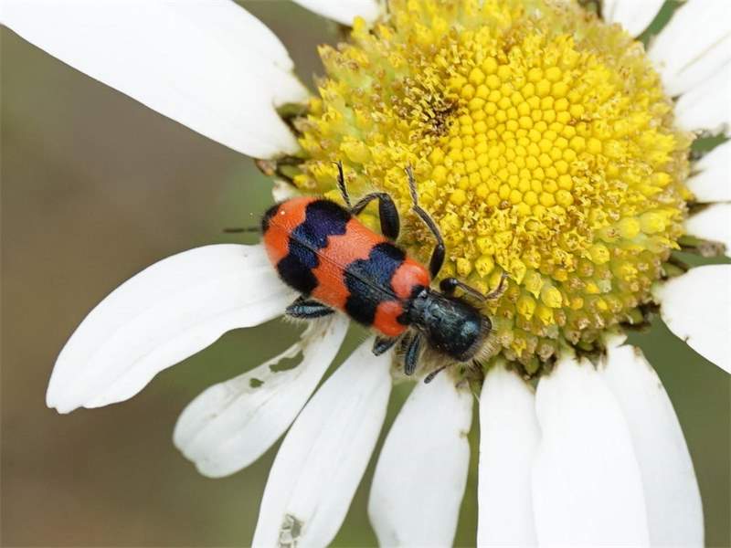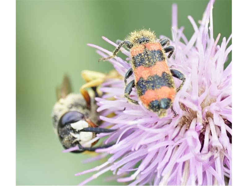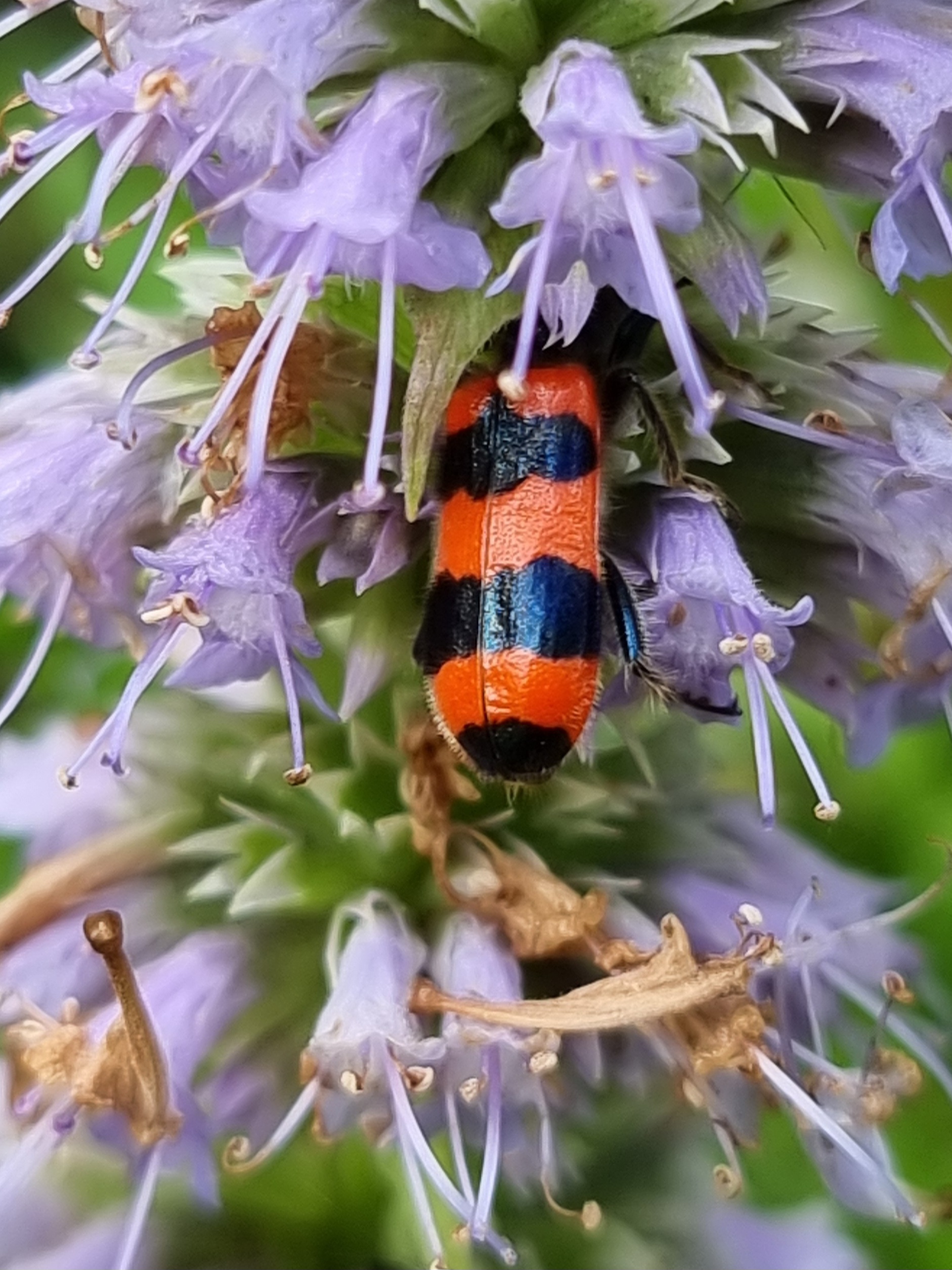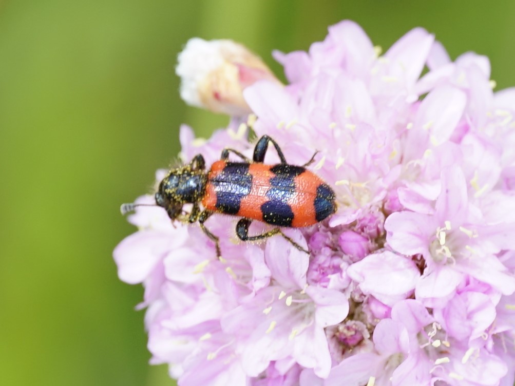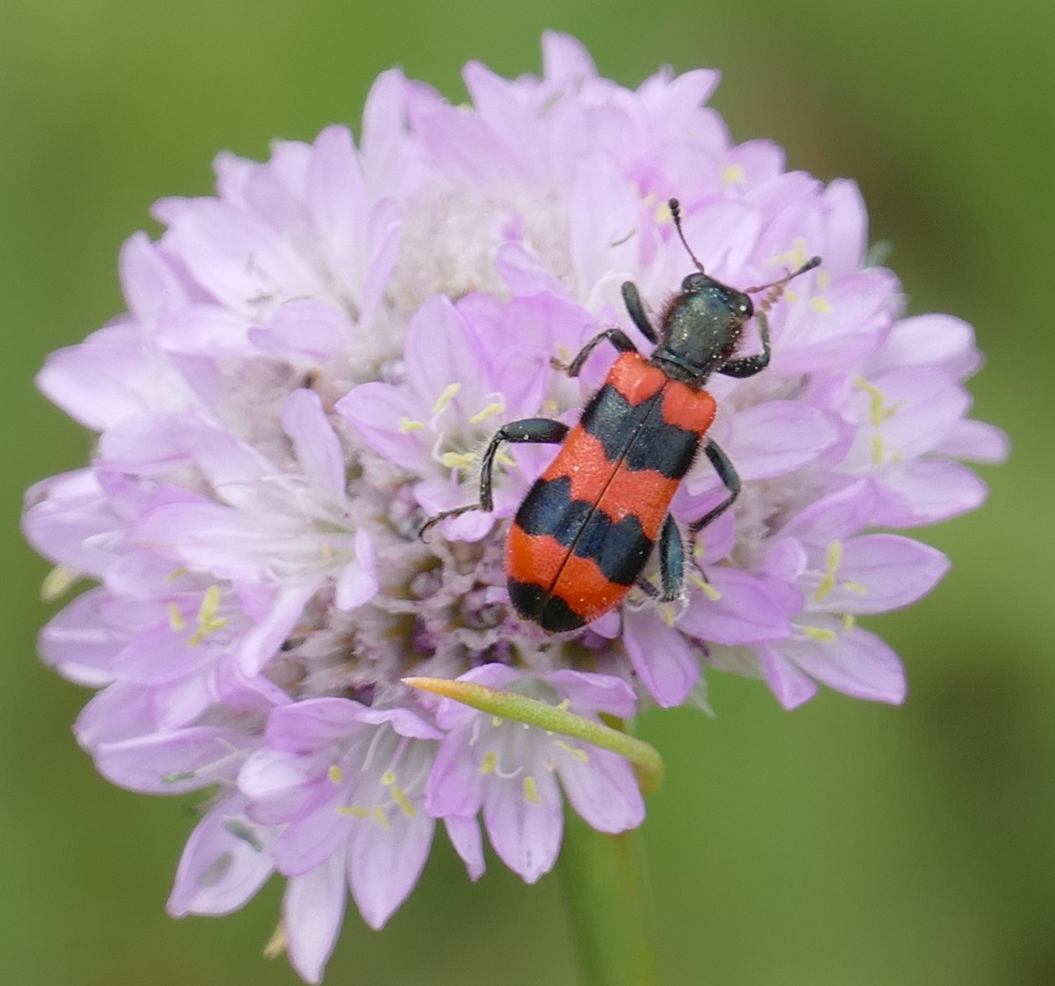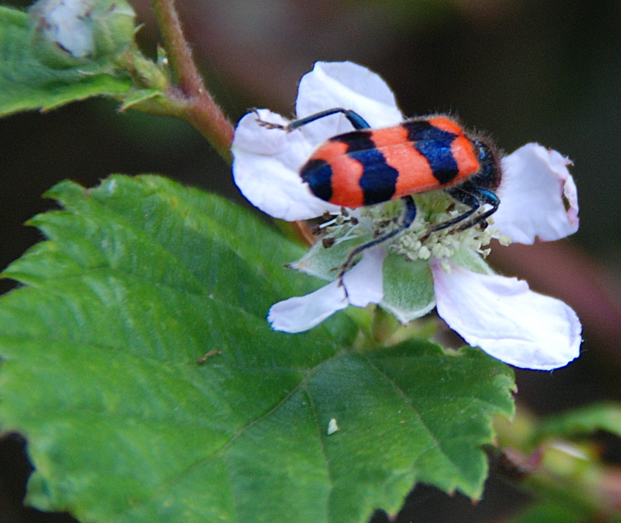 Gemeiner Bienenkäfer (Trichodes apiarius) auf Hundspetersilie (Aethusa cynapium), Fuhlendorf (Vorpommern-Rügen), 22.06.2019