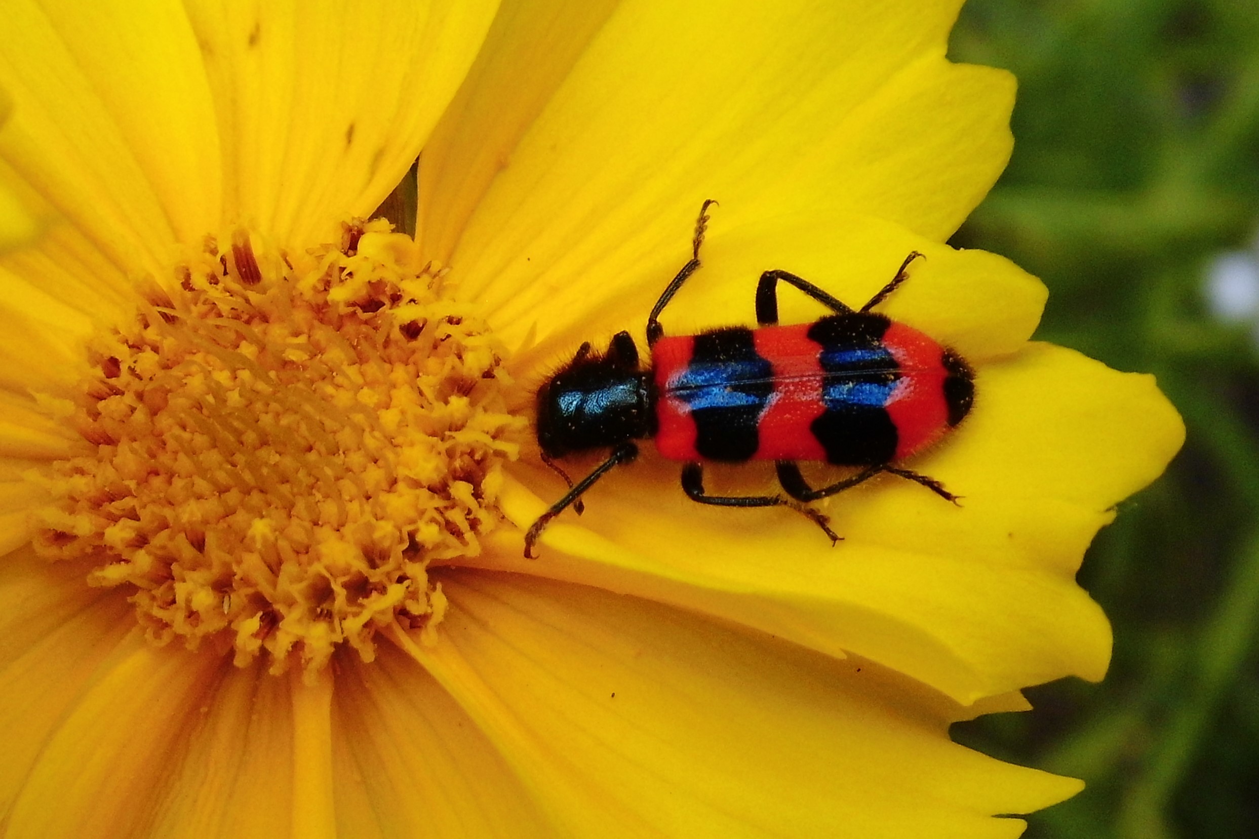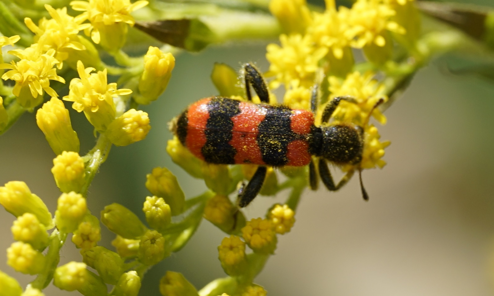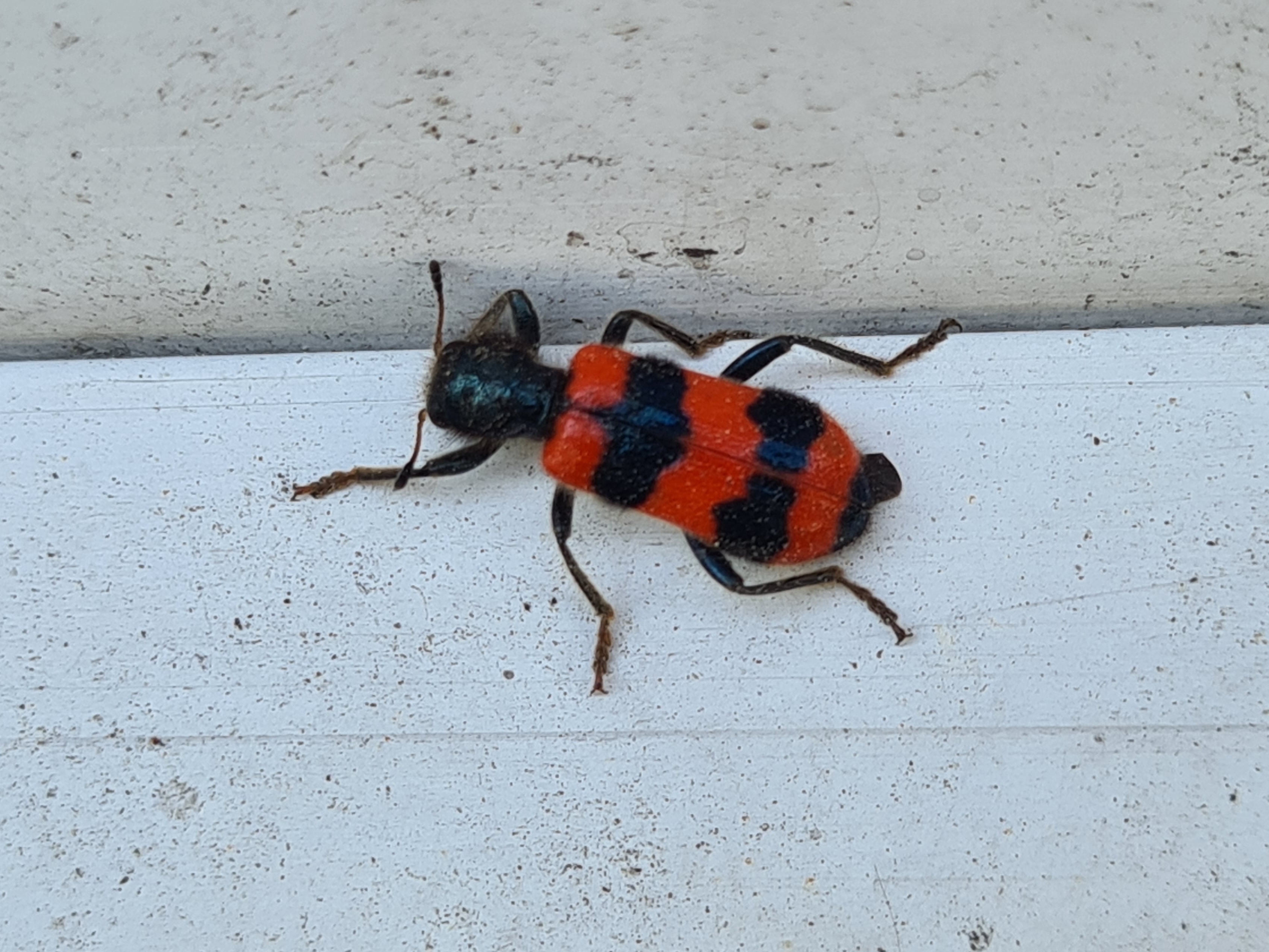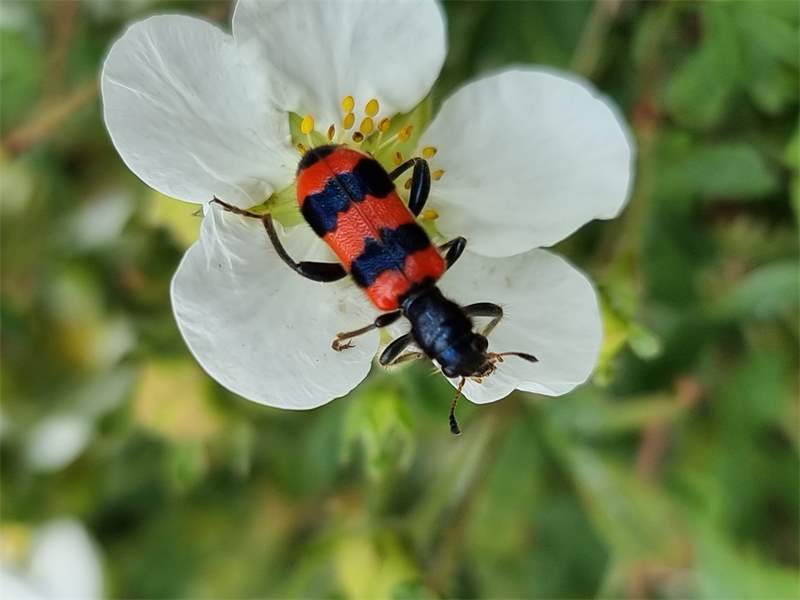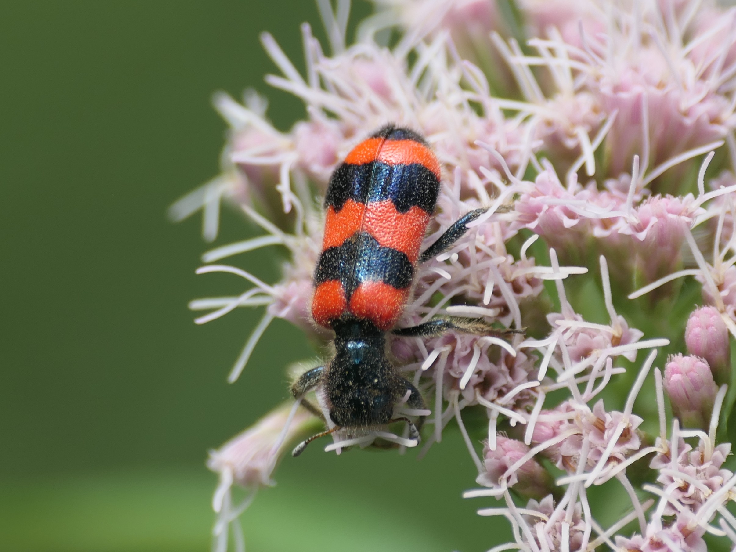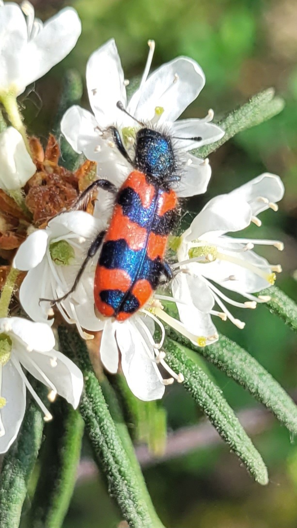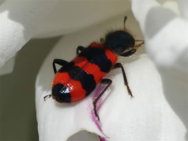 Gemeiner Bienenkäfer (Trichodes apiarius) auf Hundspetersilie (Aethusa cynapium), Fuhlendorf (Vorpommern-Rügen), 22.06.2019