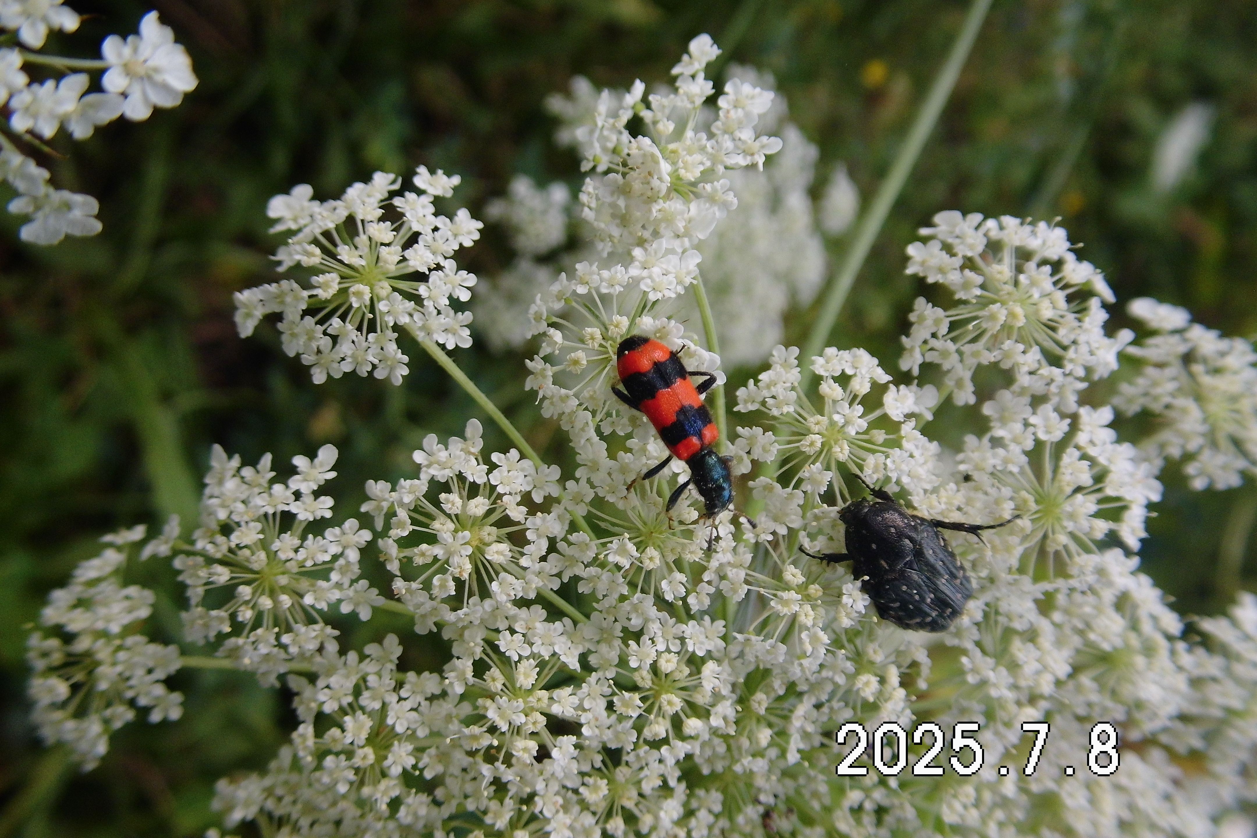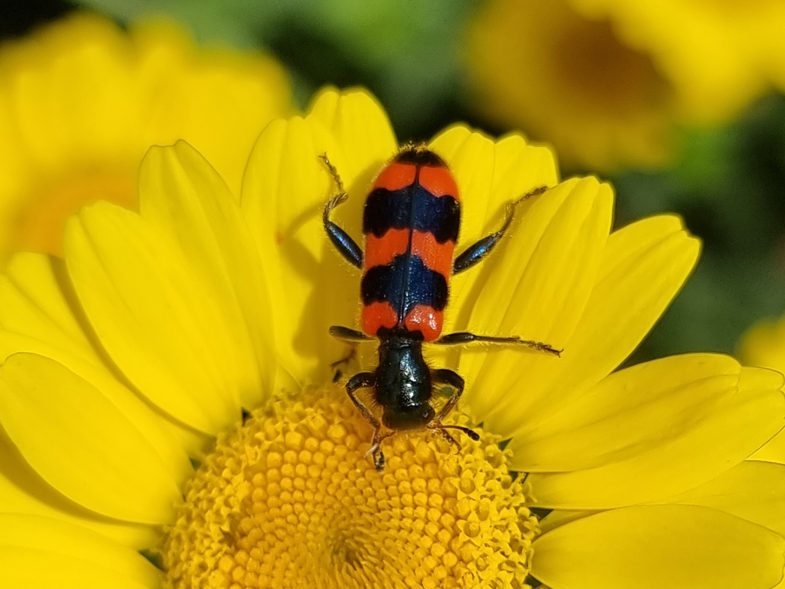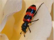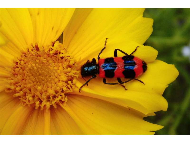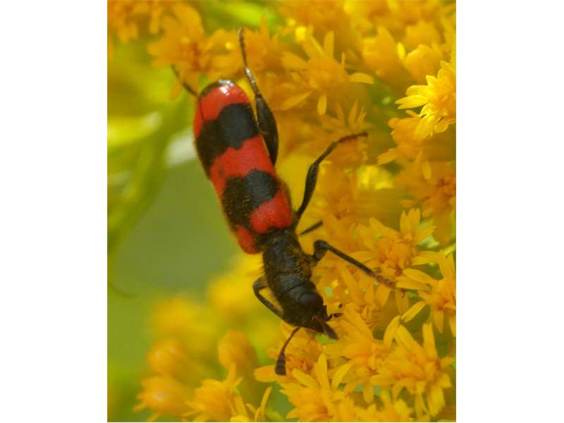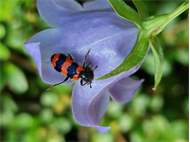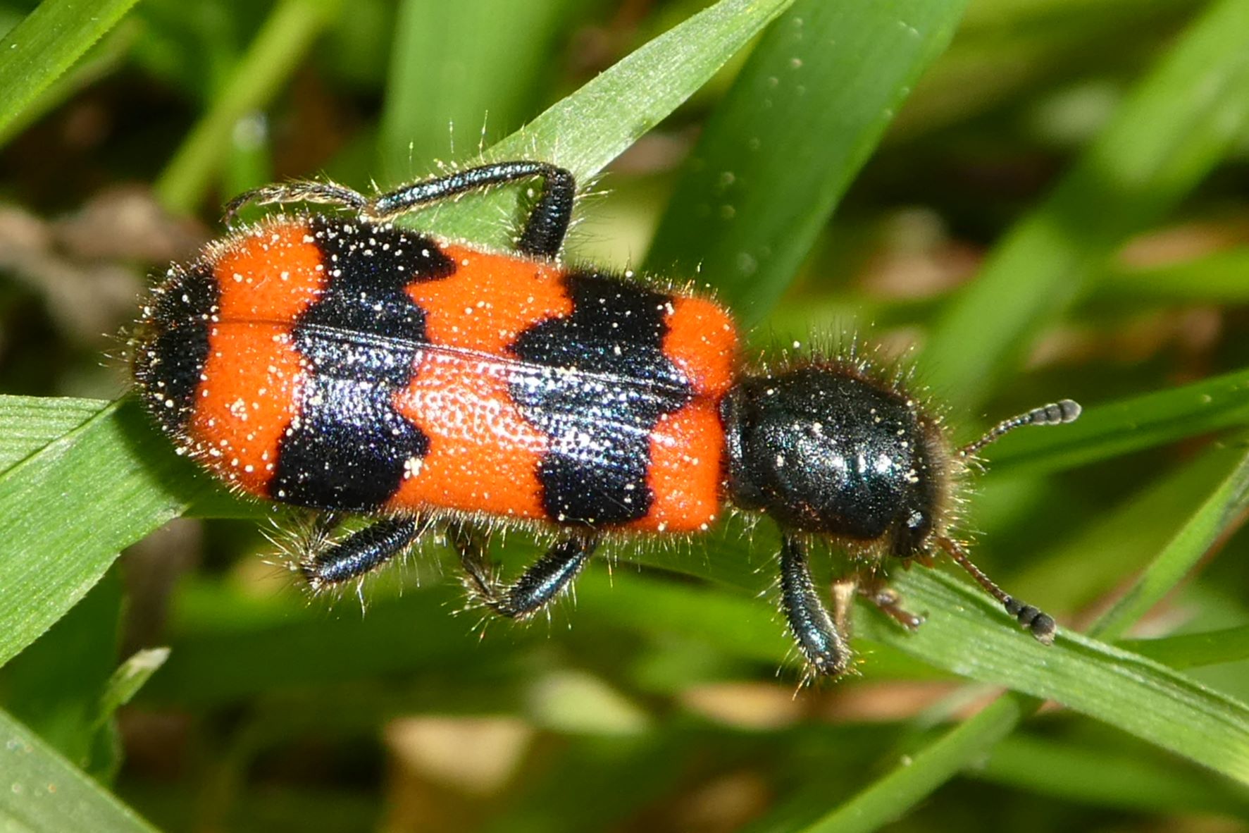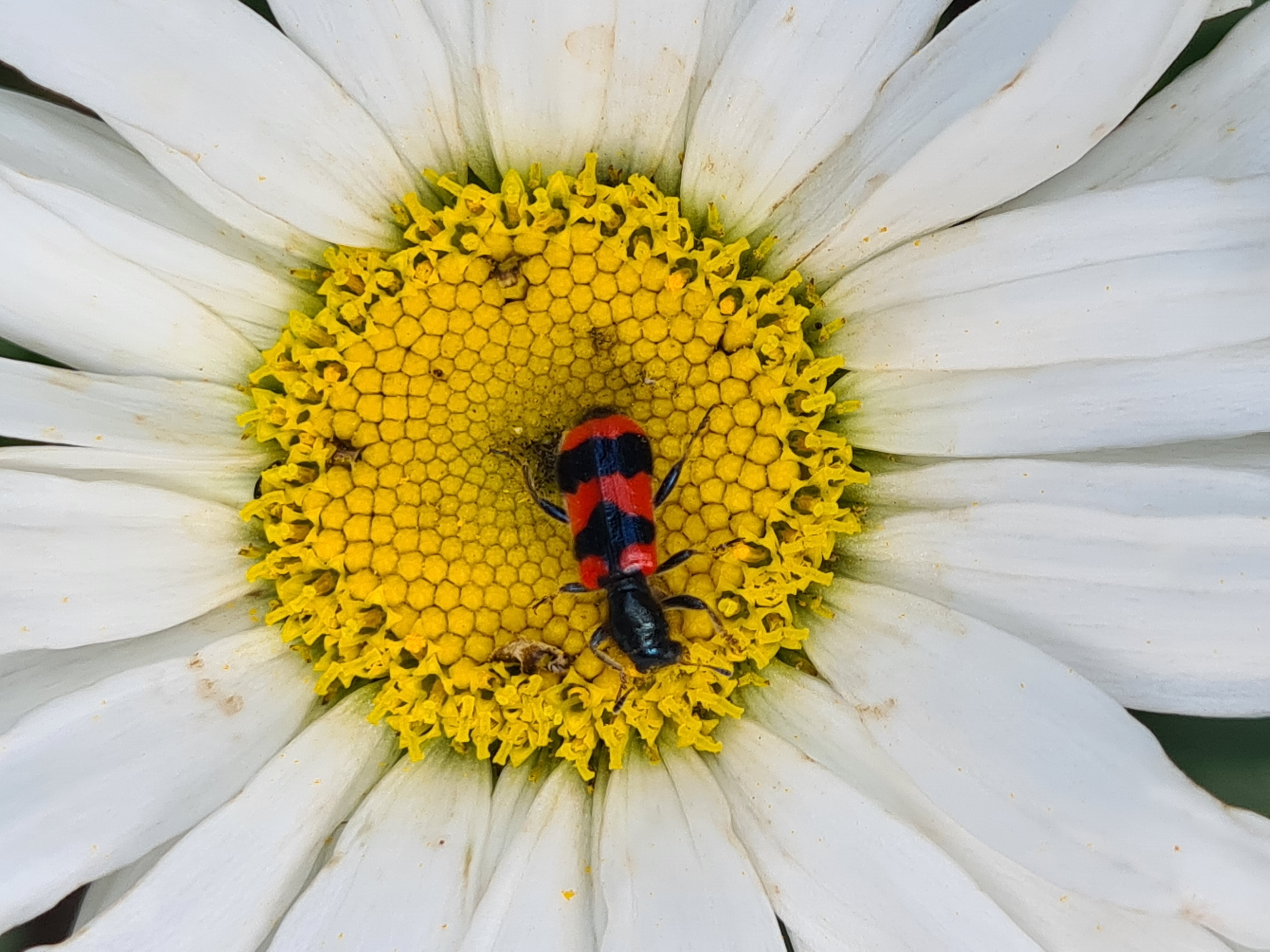 Gemeiner Bienenkäfer (Trichodes apiarius) auf Hundspetersilie (Aethusa cynapium), Fuhlendorf (Vorpommern-Rügen), 22.06.2019