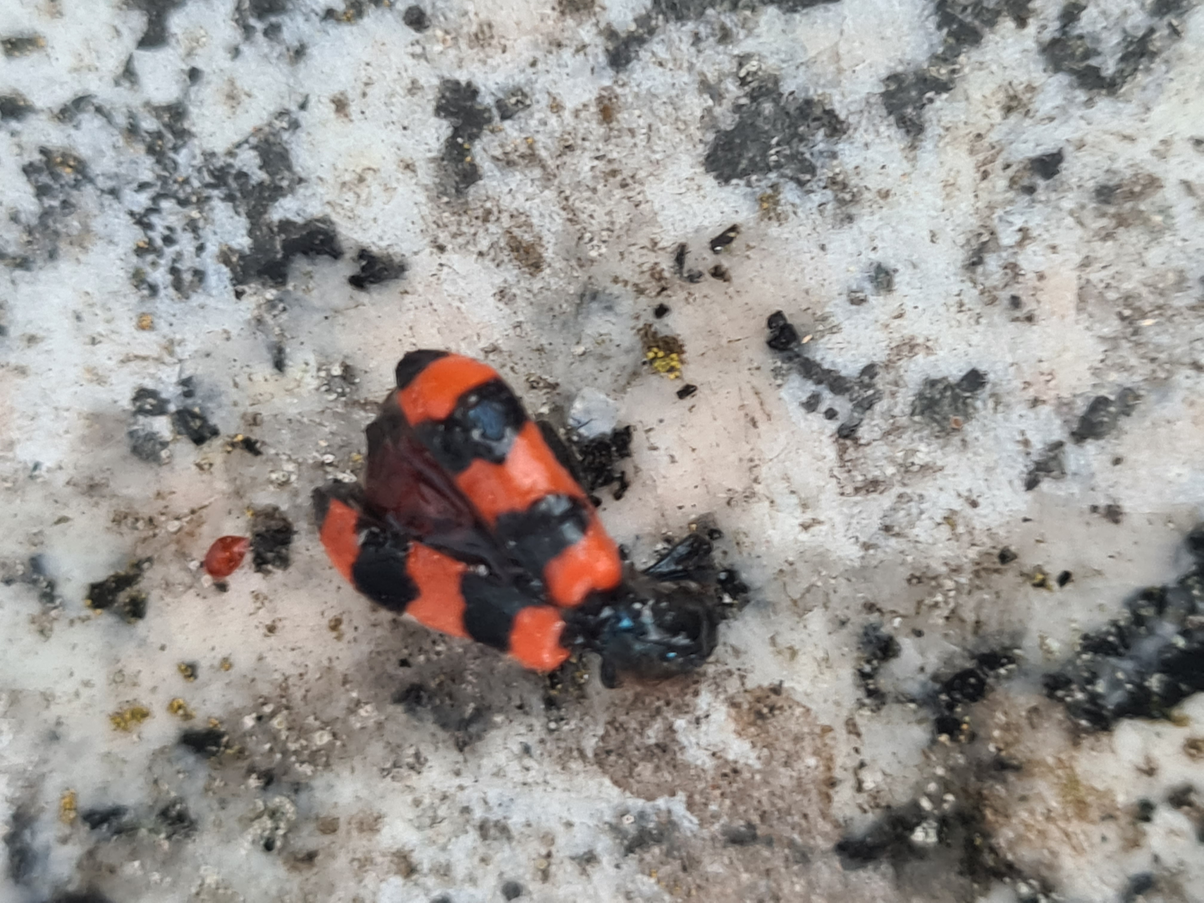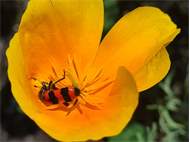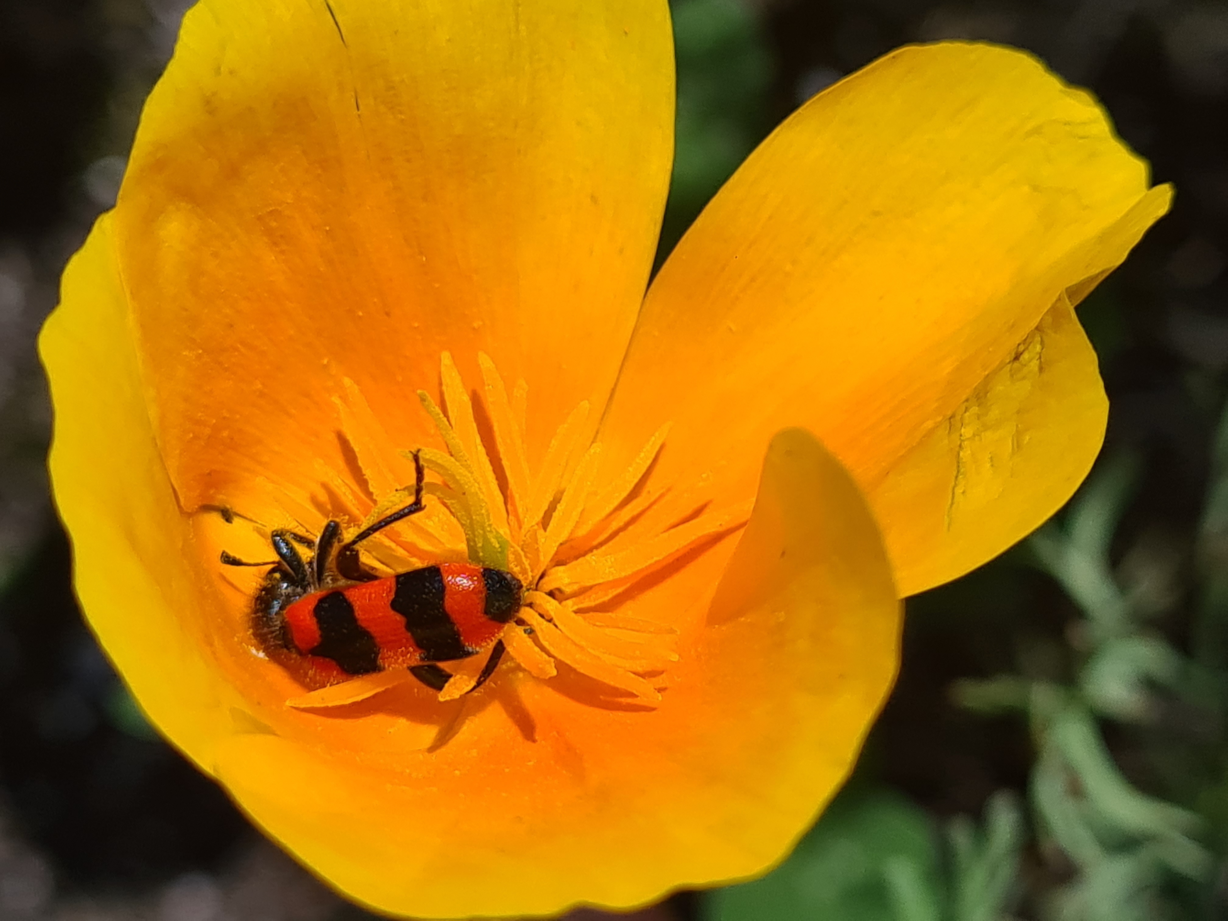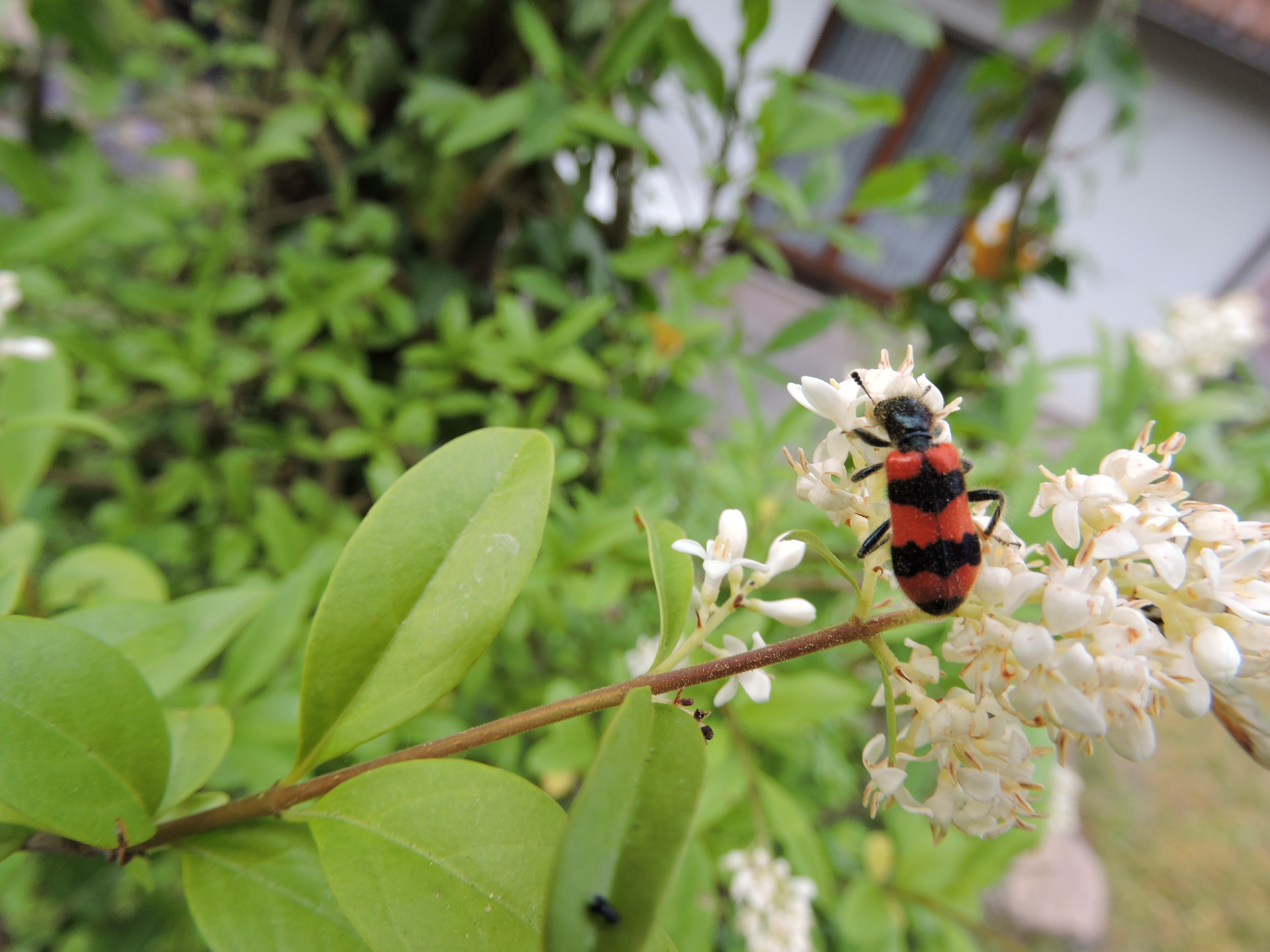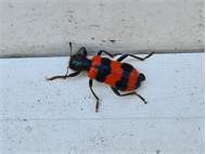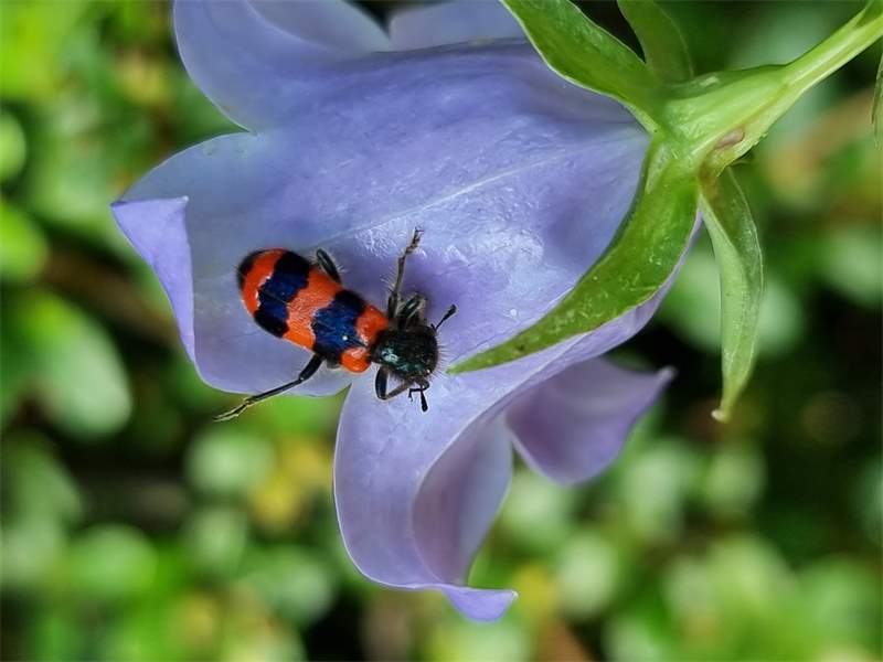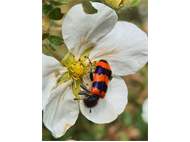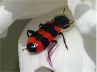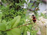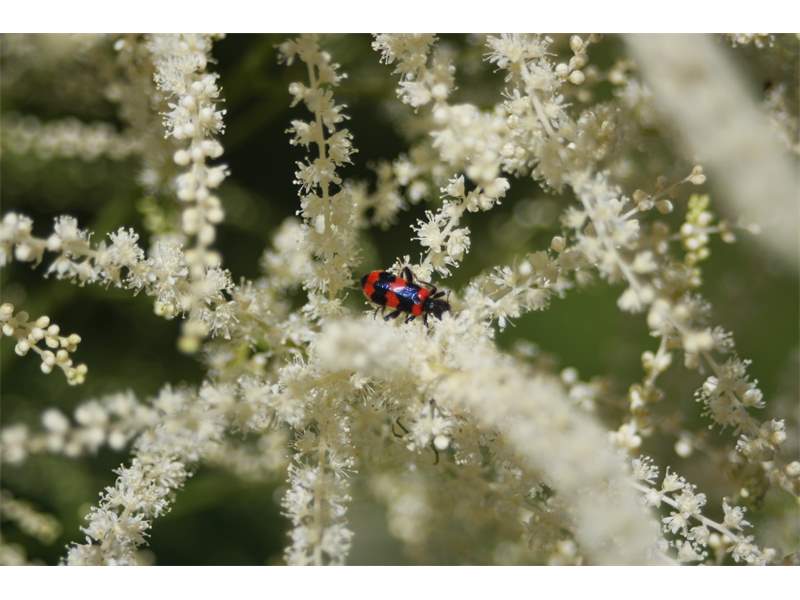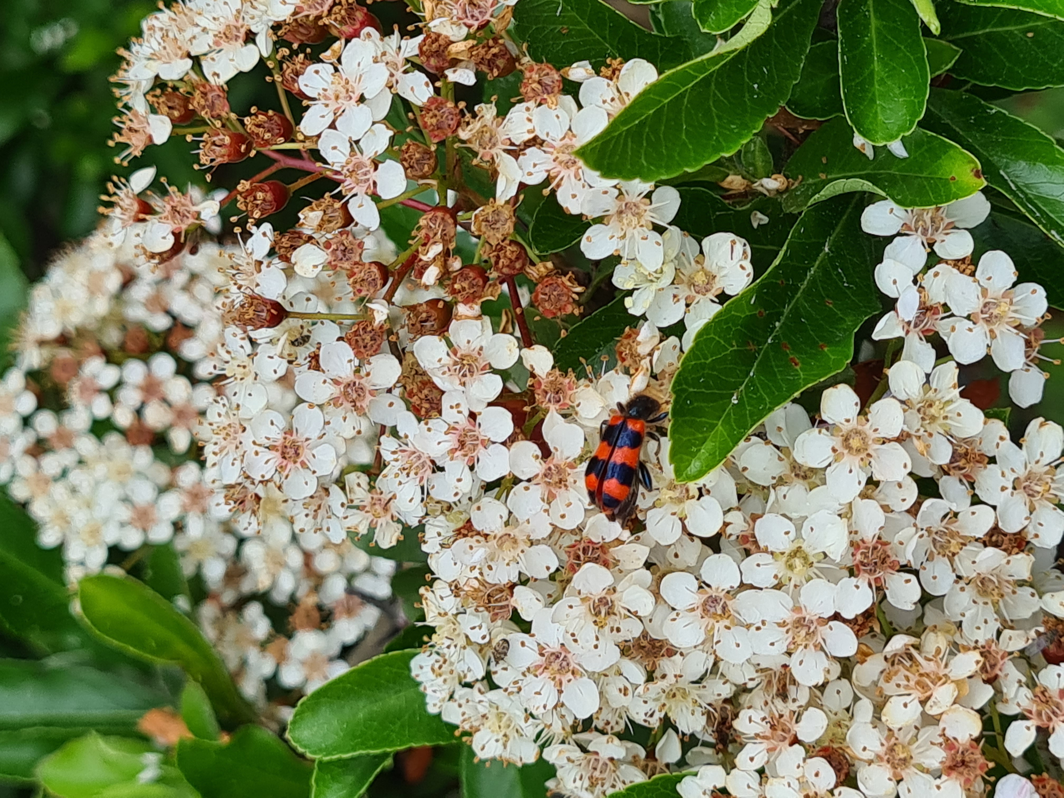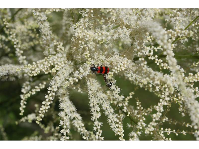Gemeiner Bienenkäfer (Trichodes apiarius) auf Hundspetersilie (Aethusa cynapium), Fuhlendorf (Vorpommern-Rügen), 22.06.2019
