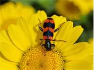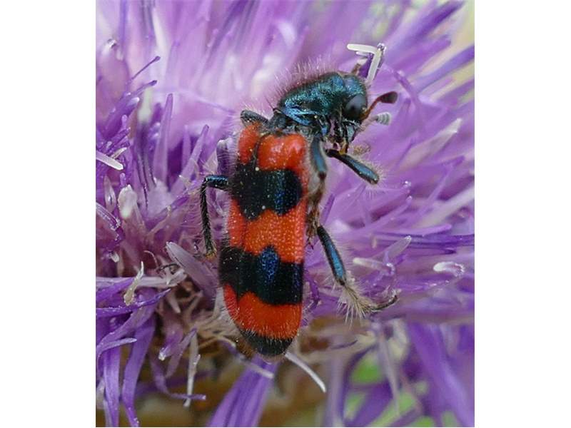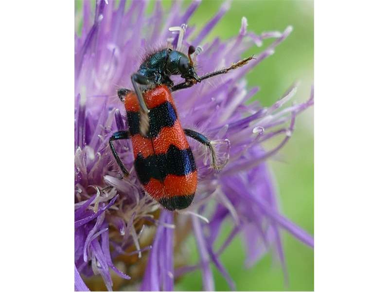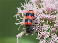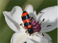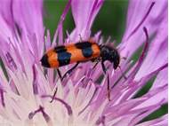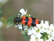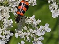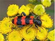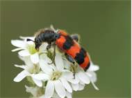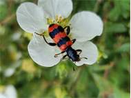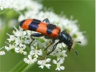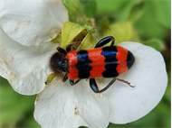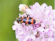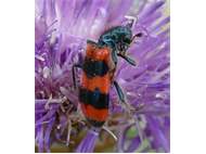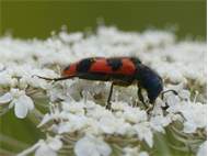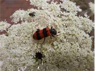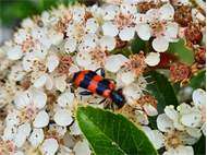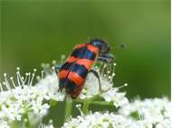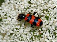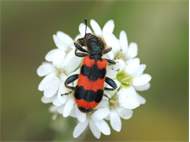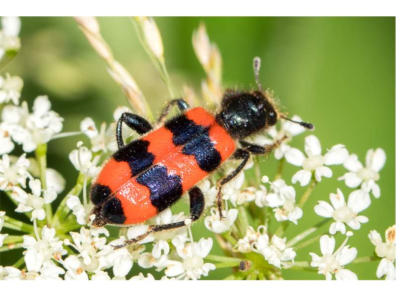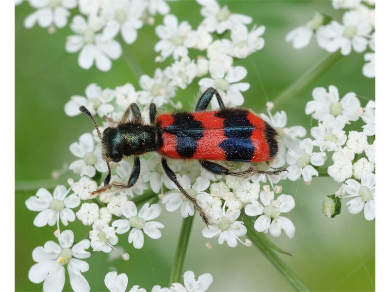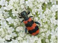 Gemeiner Bienenkäfer (Trichodes apiarius) auf Hundspetersilie (Aethusa cynapium), Fuhlendorf (Vorpommern-Rügen), 22.06.2019 (© Martin Feike)( Bild vergrößern)