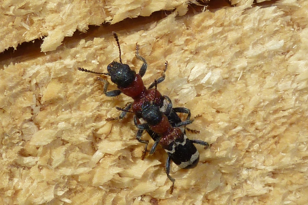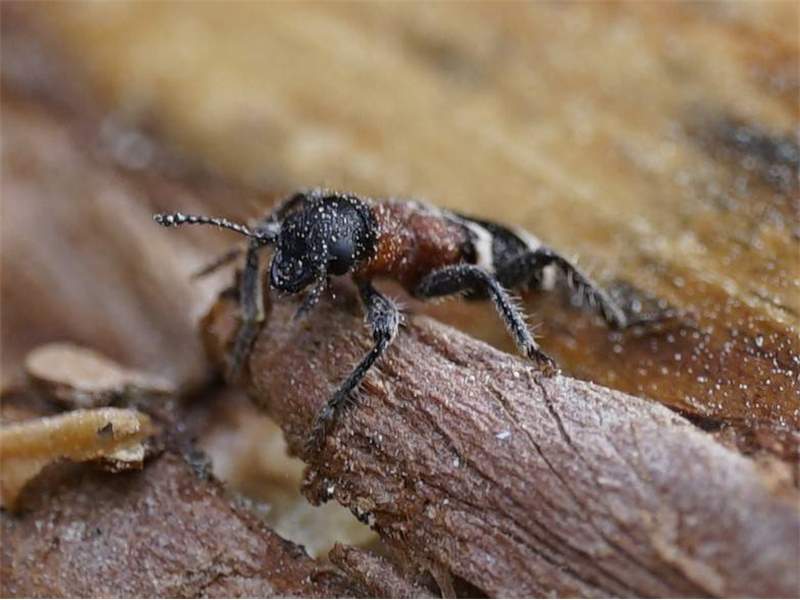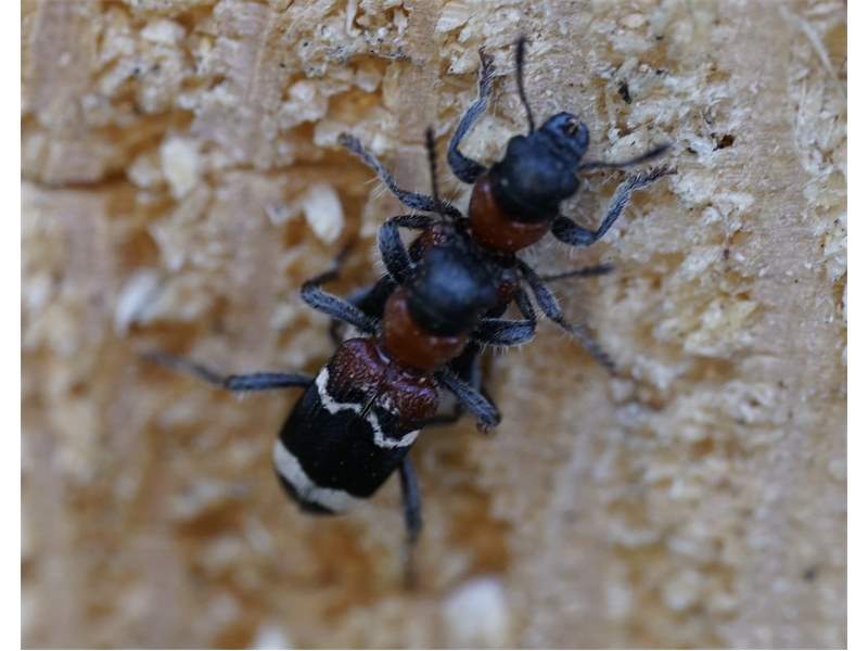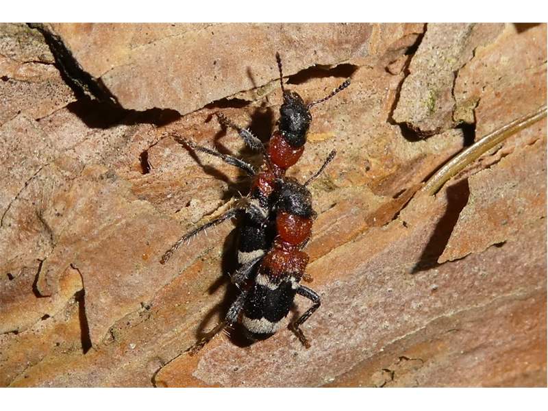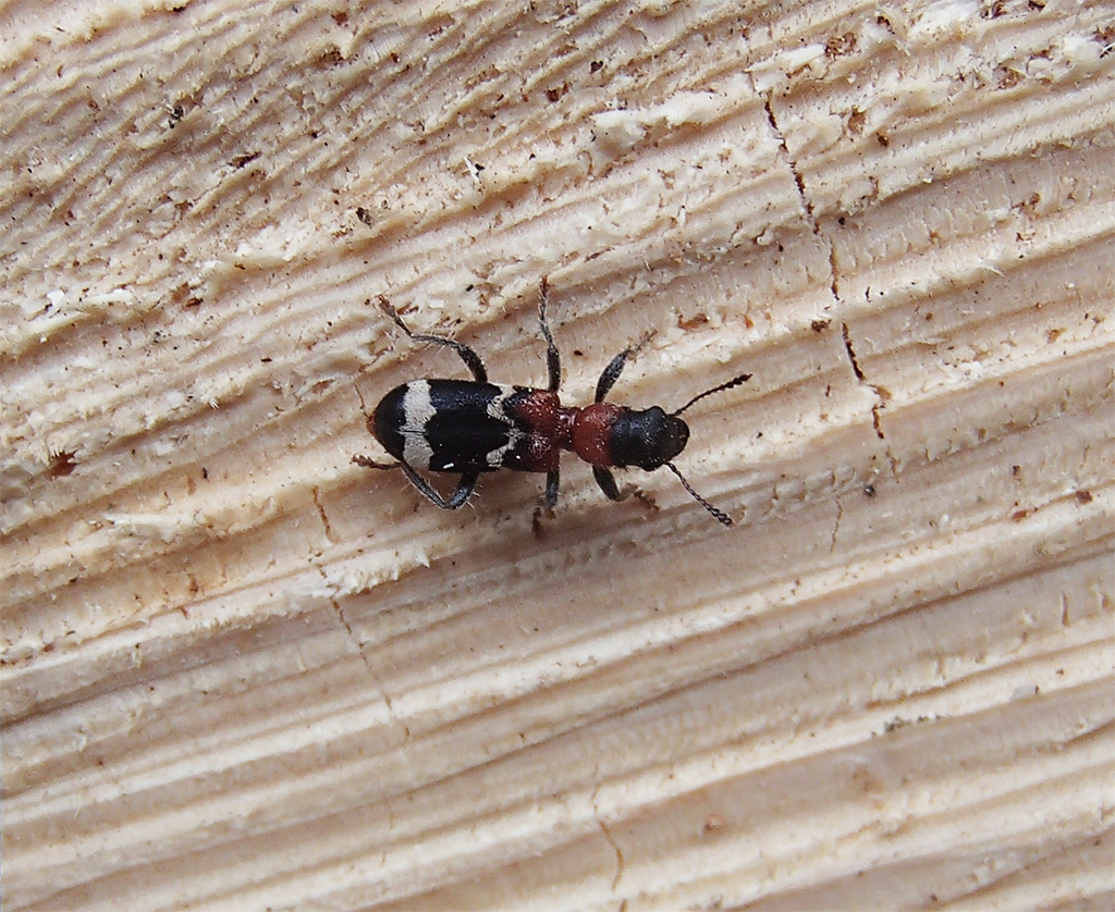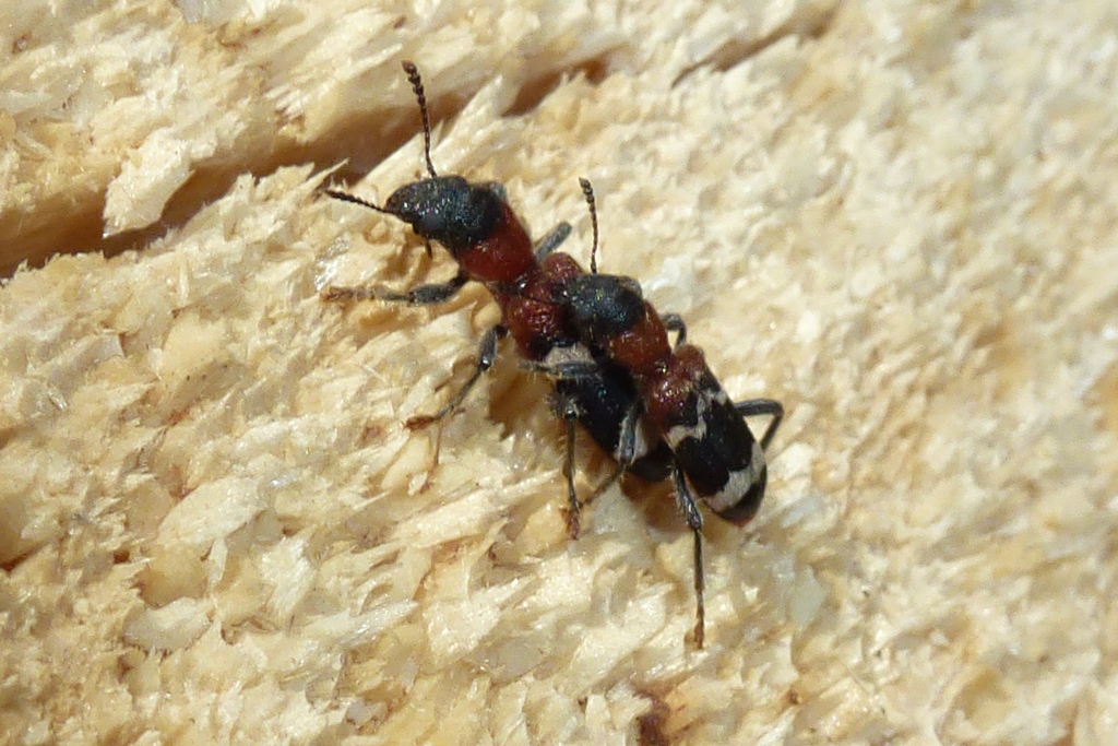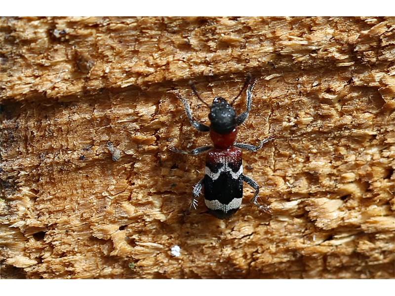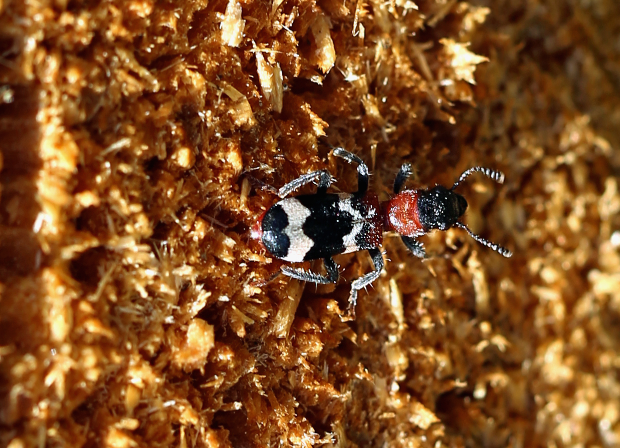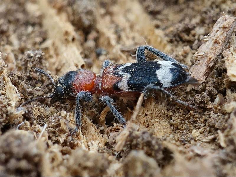 Gemeiner Ameisenbuntkäfer am 18.05.2017 im Tharandter Wald an einem Holzlagerplatz.