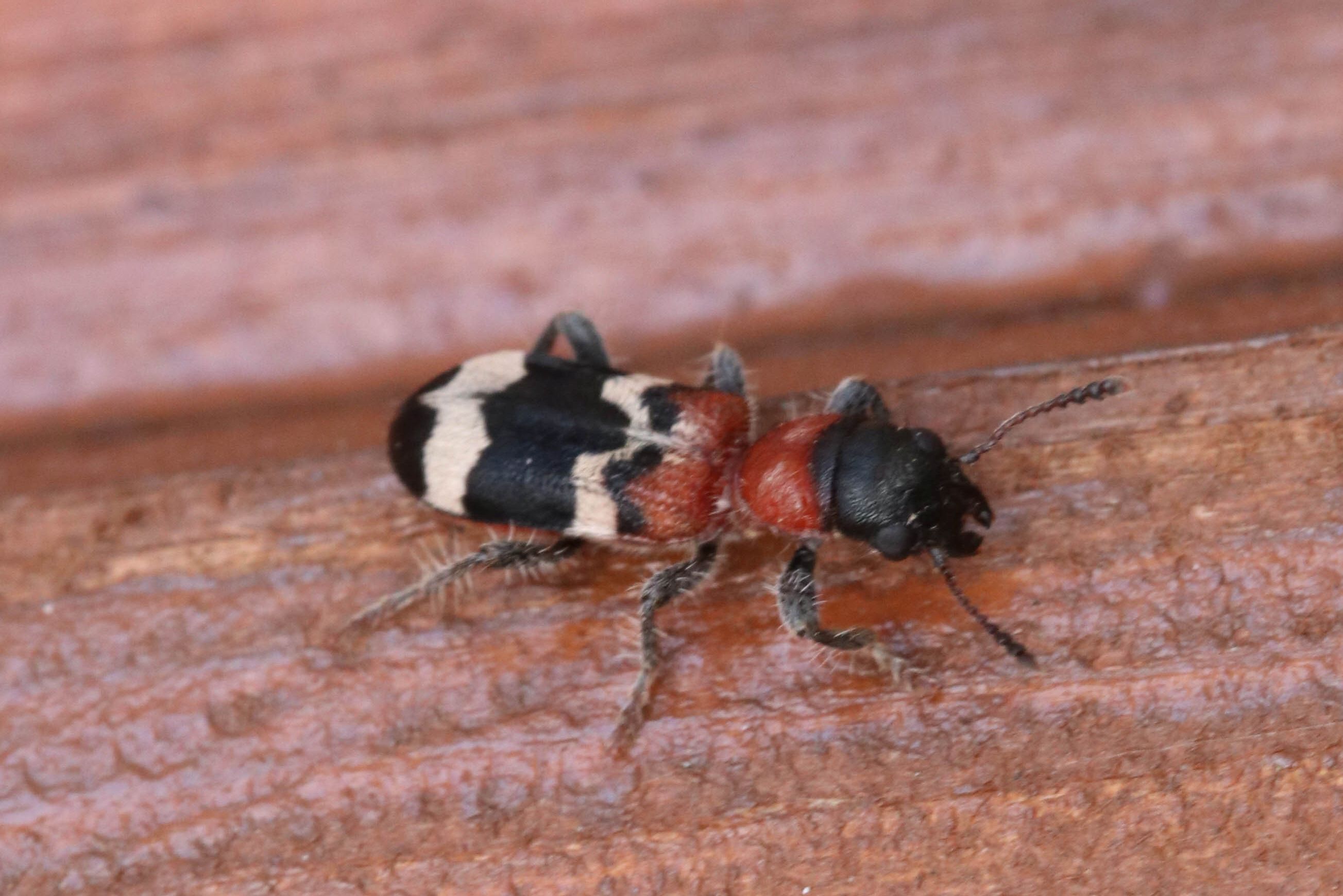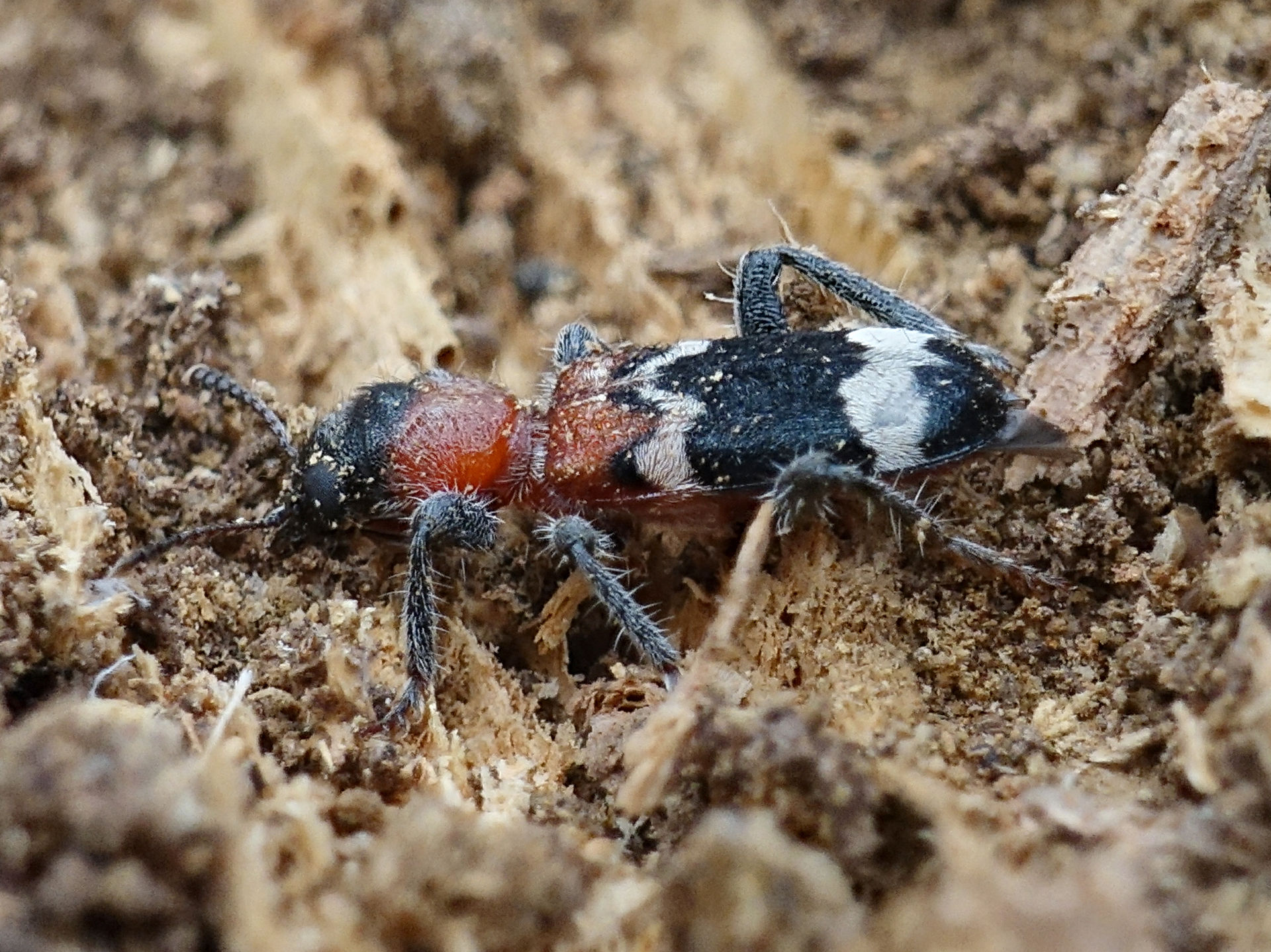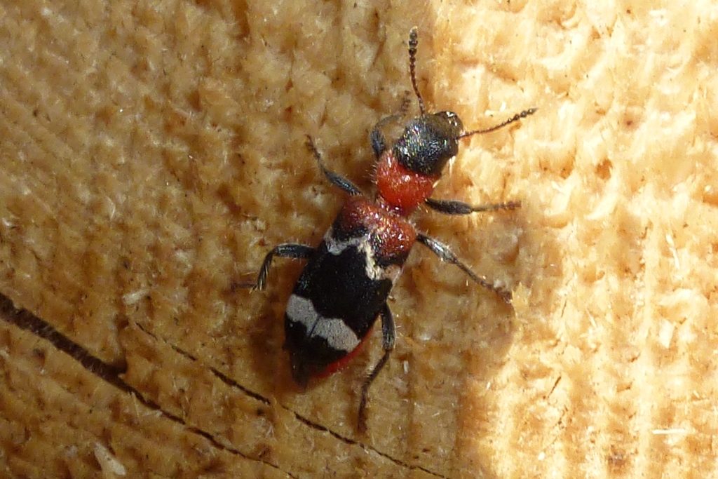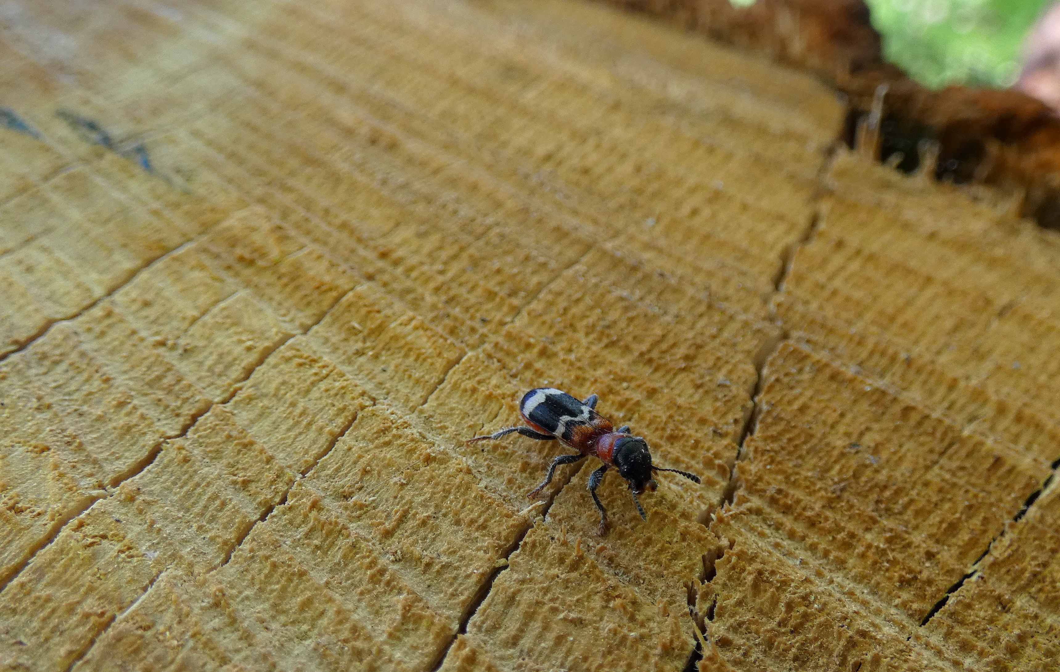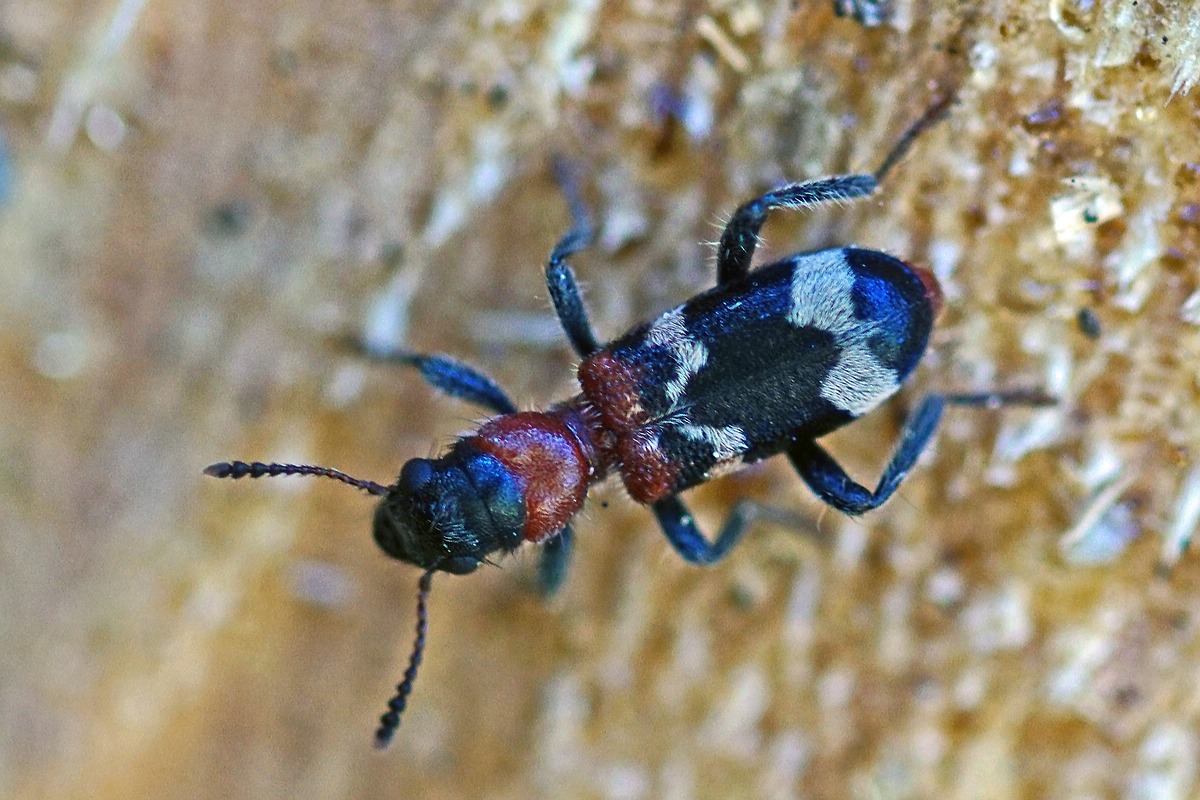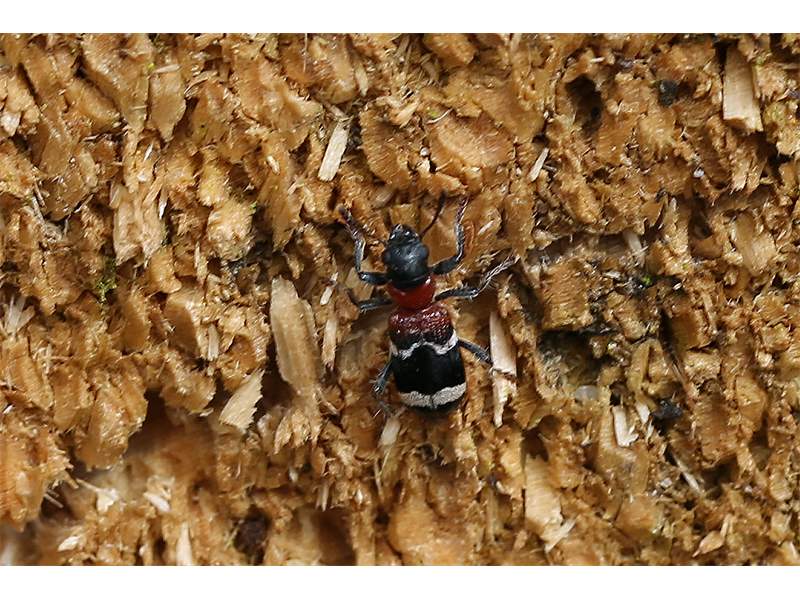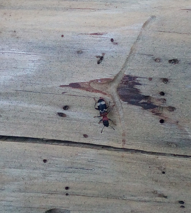 Gemeiner Ameisenbuntkäfer am 18.05.2017 im Tharandter Wald an einem Holzlagerplatz.