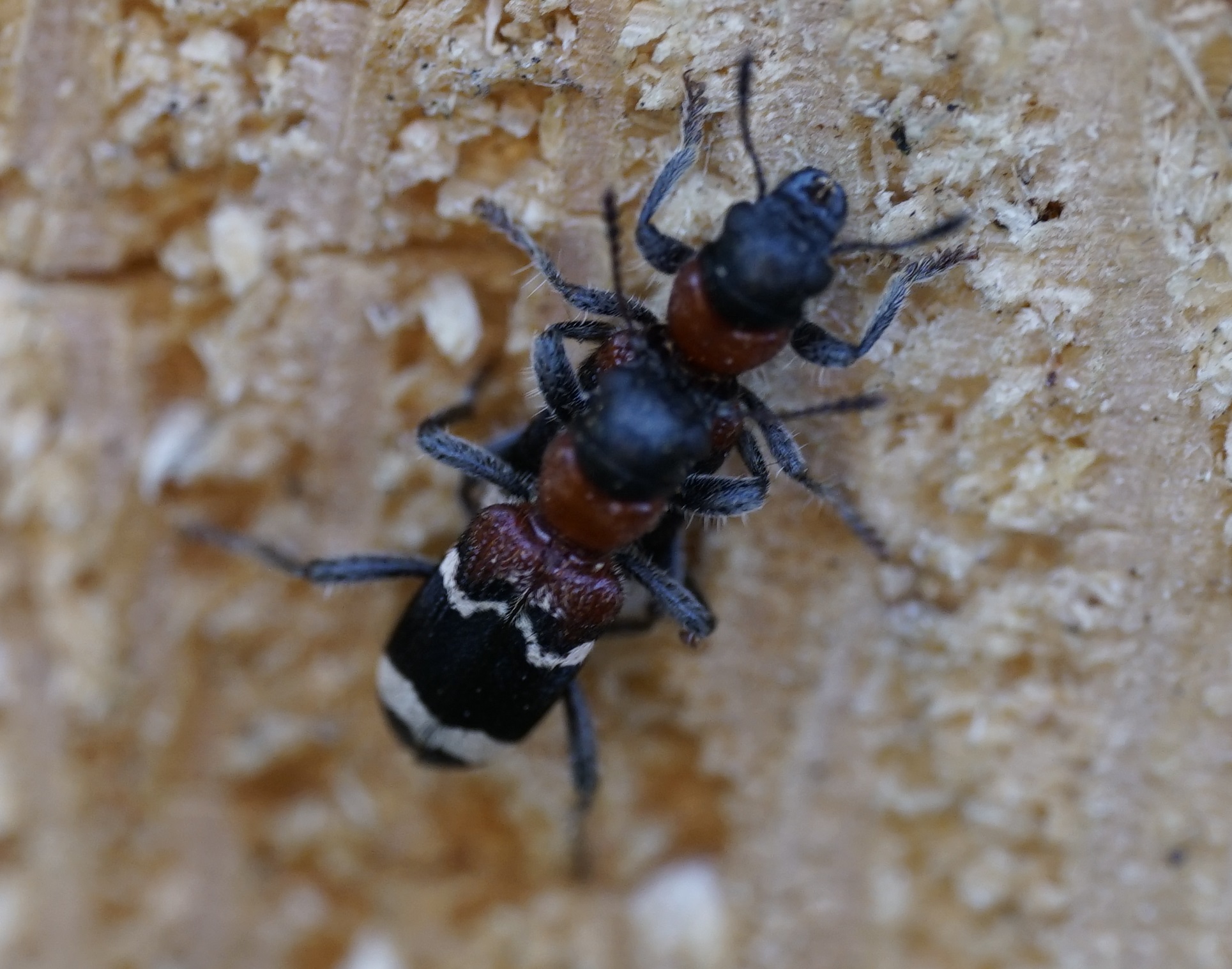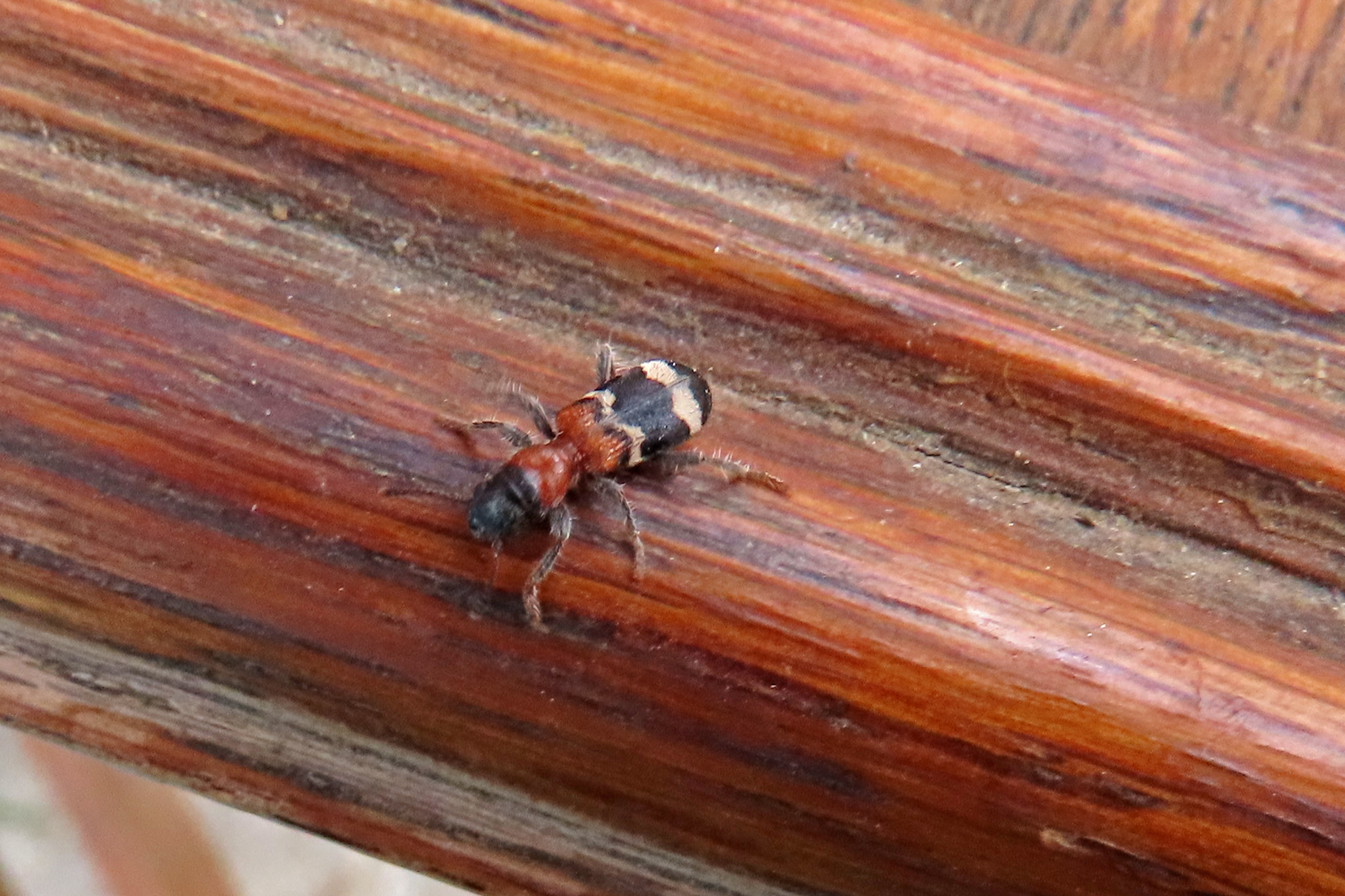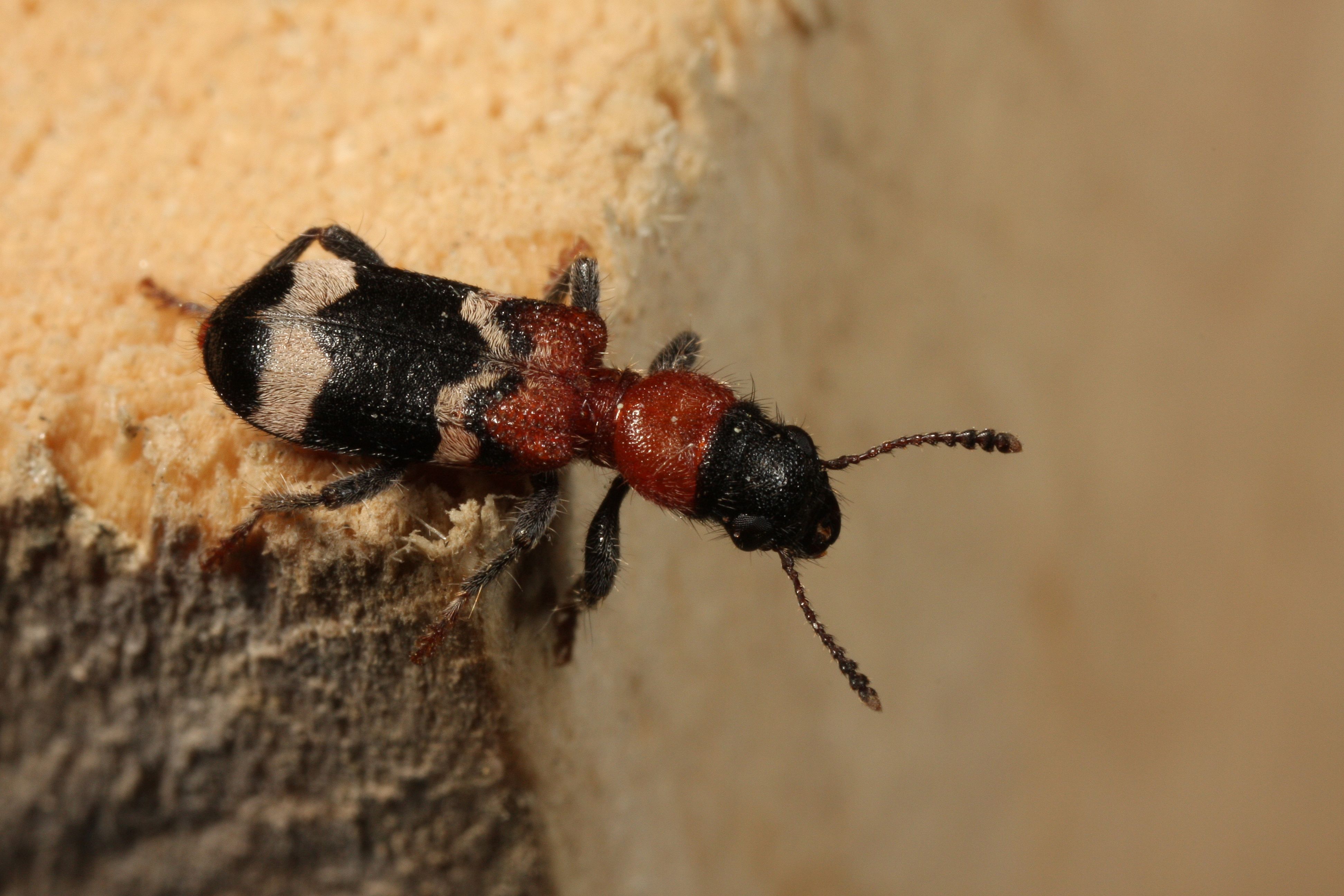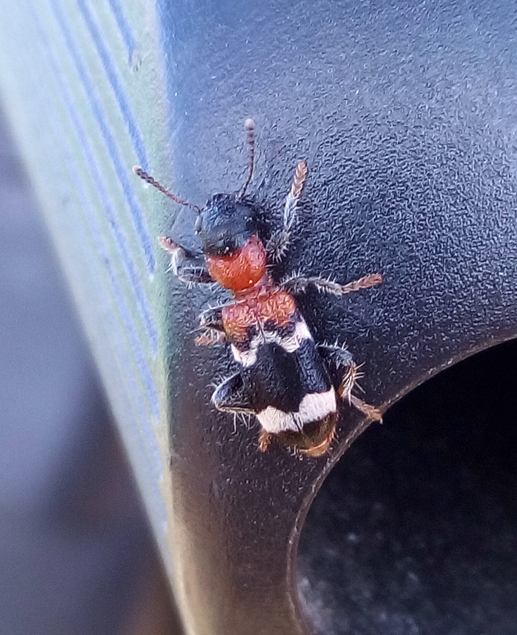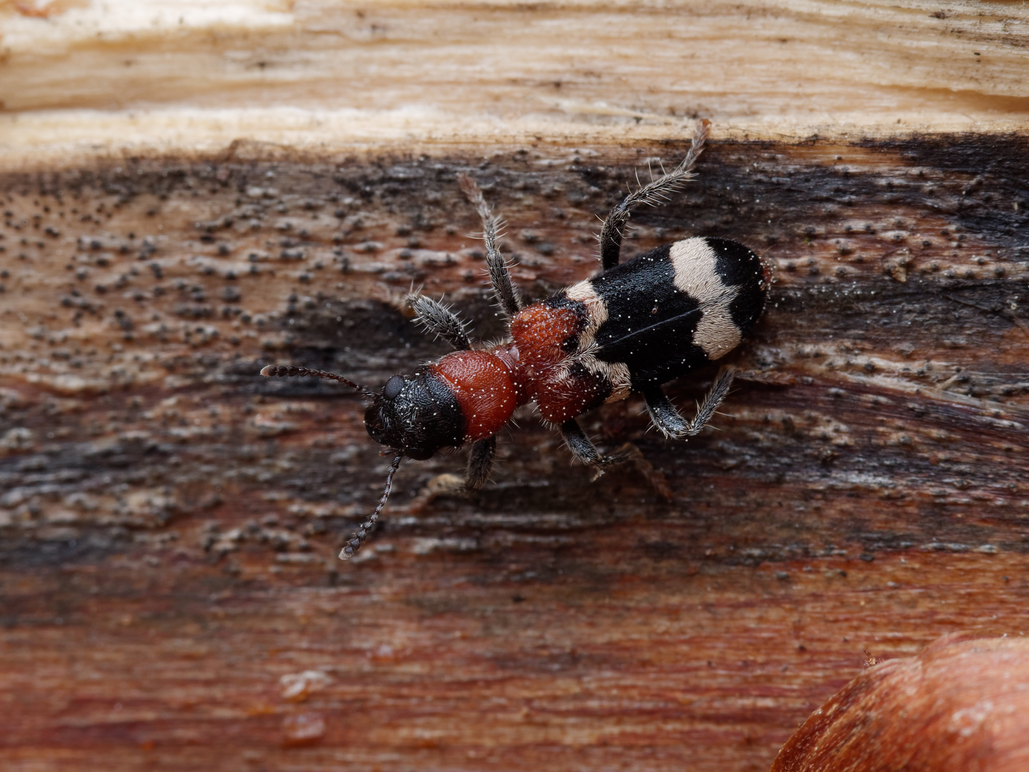 Gemeiner Ameisenbuntkäfer am 18.05.2017 im Tharandter Wald an einem Holzlagerplatz.