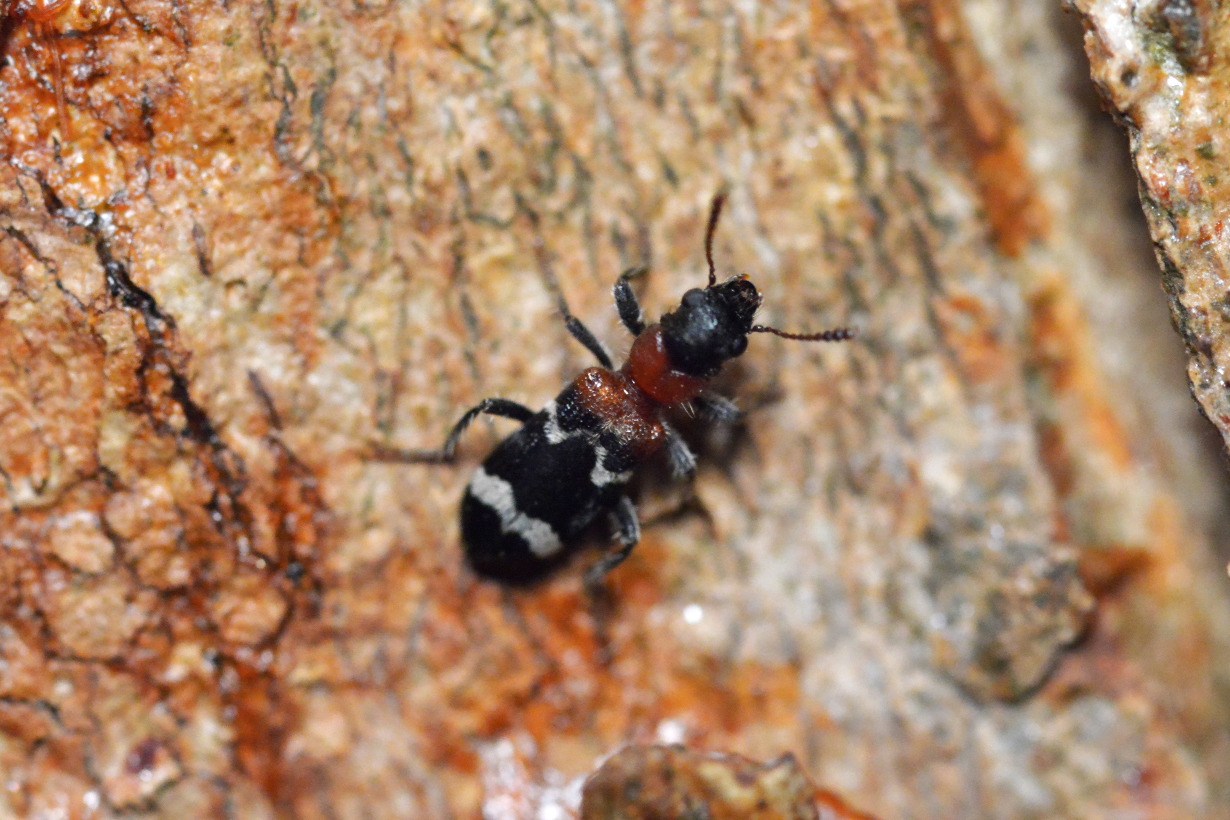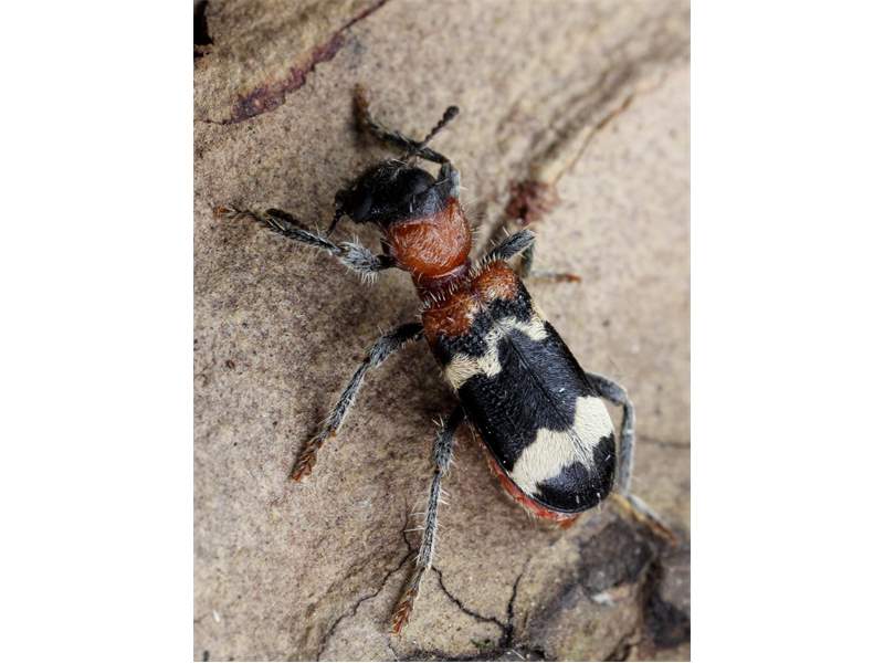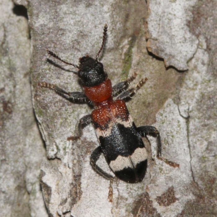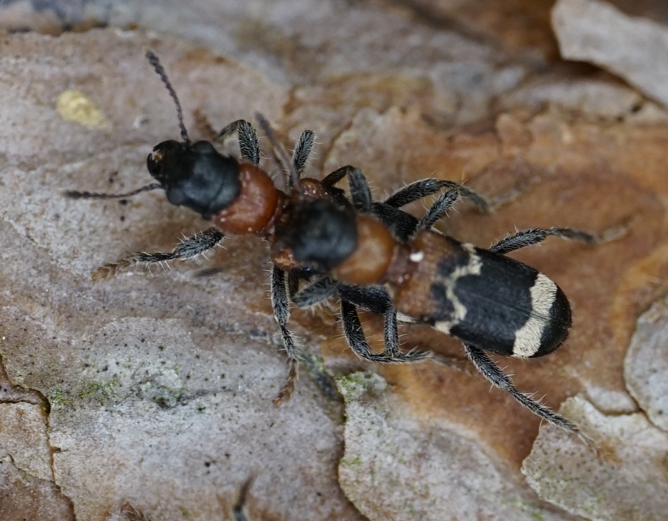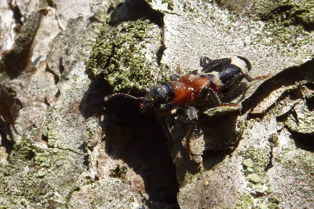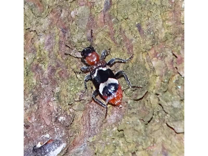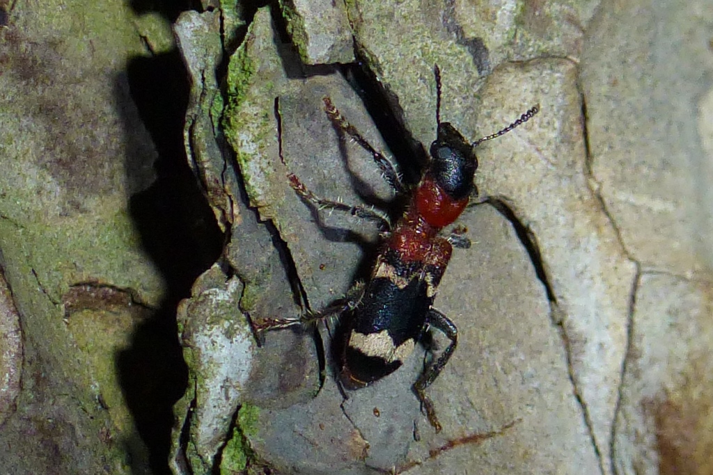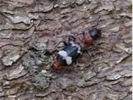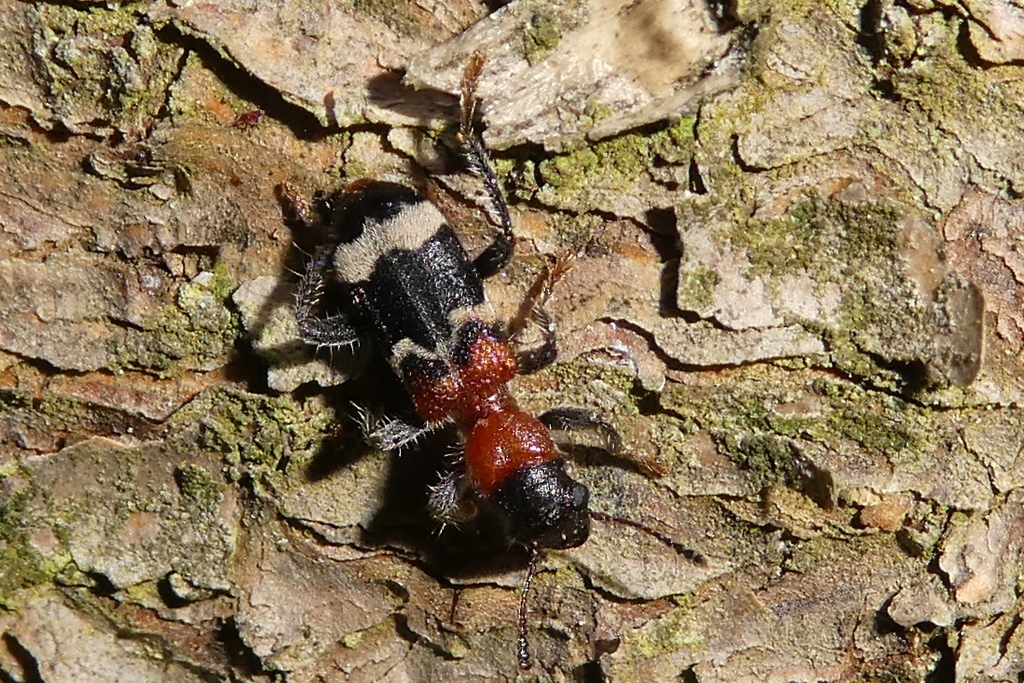 Gemeiner Ameisenbuntkäfer auf Kiefernrinde bei Brischko, Juli 2015