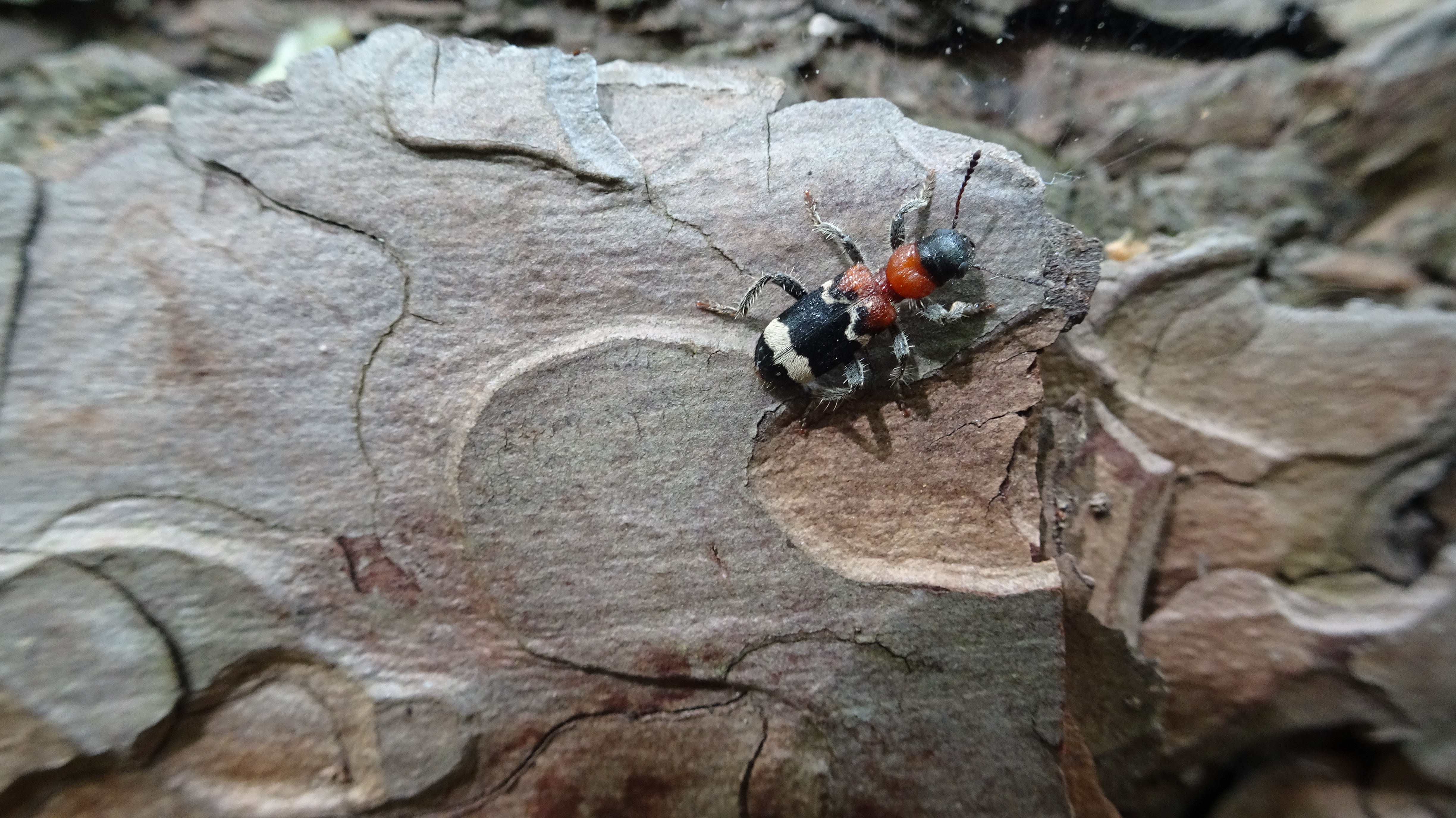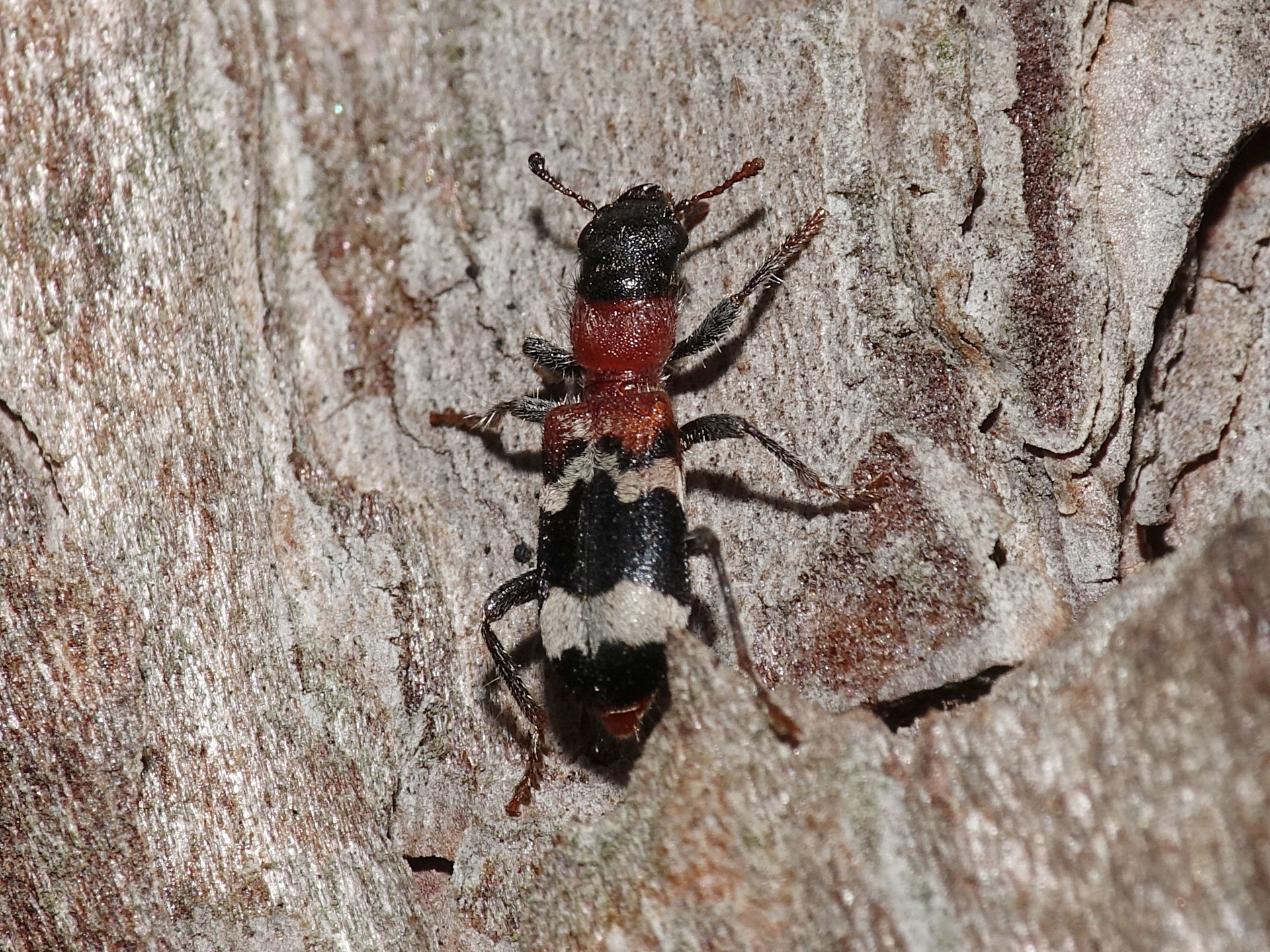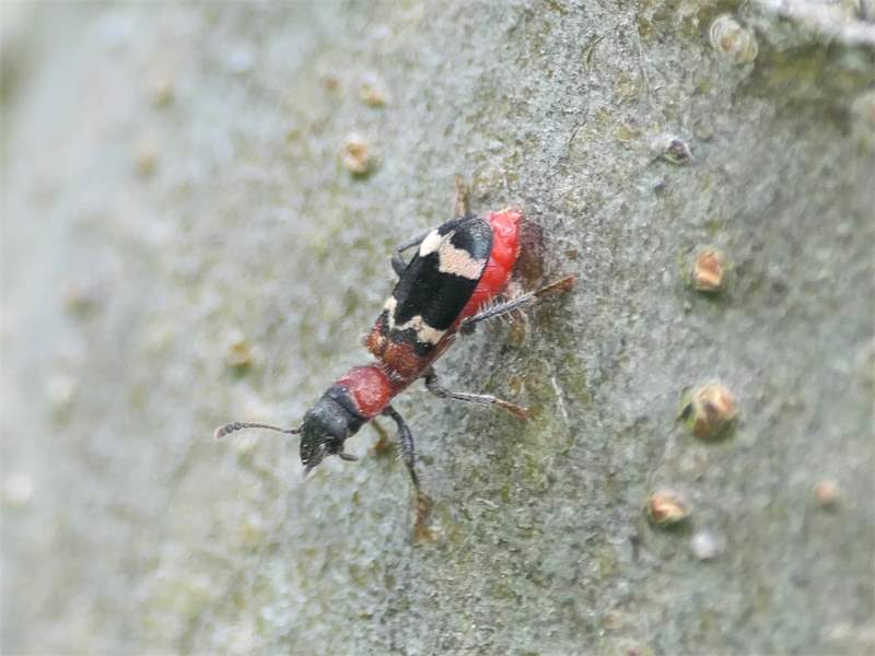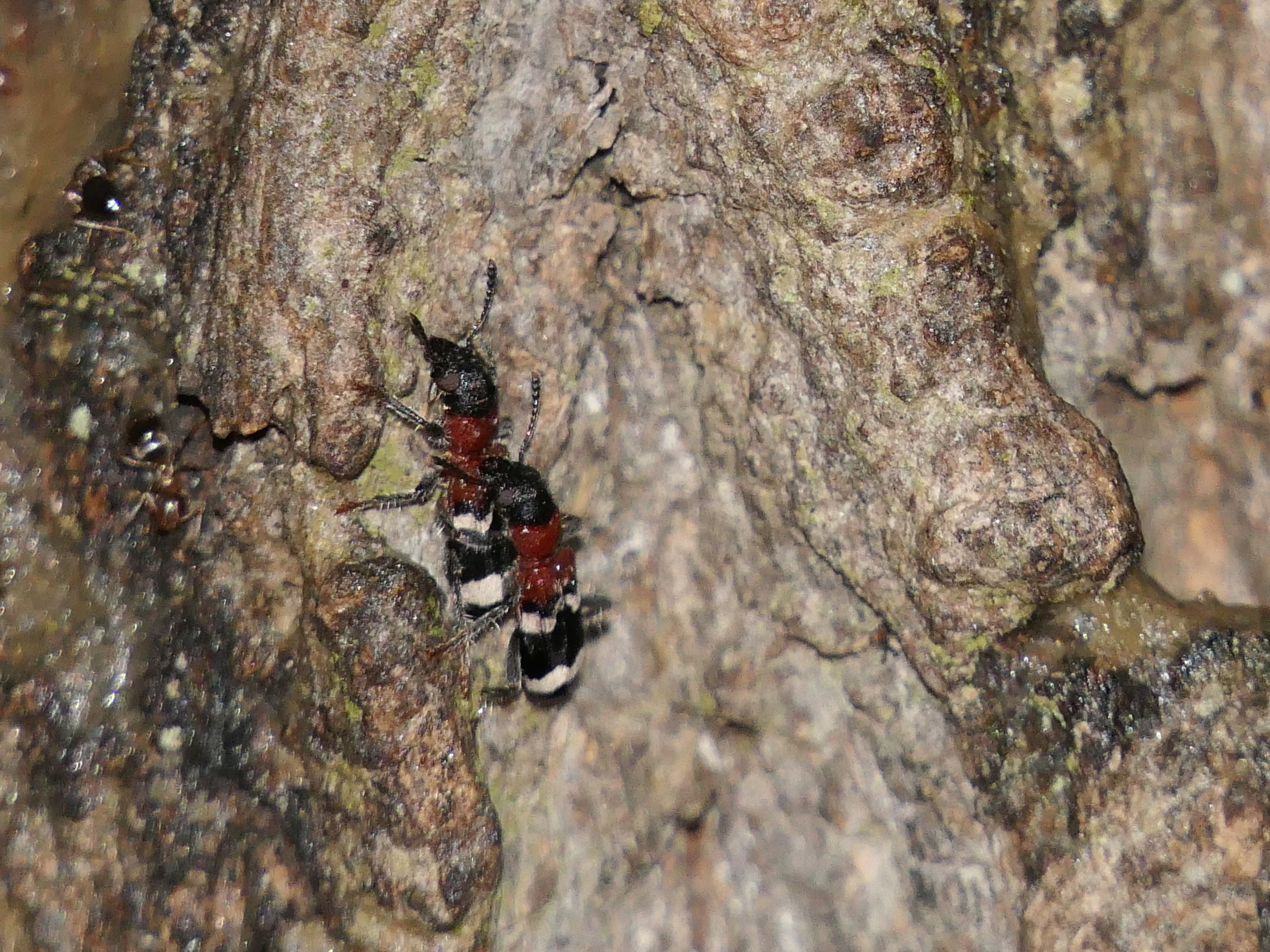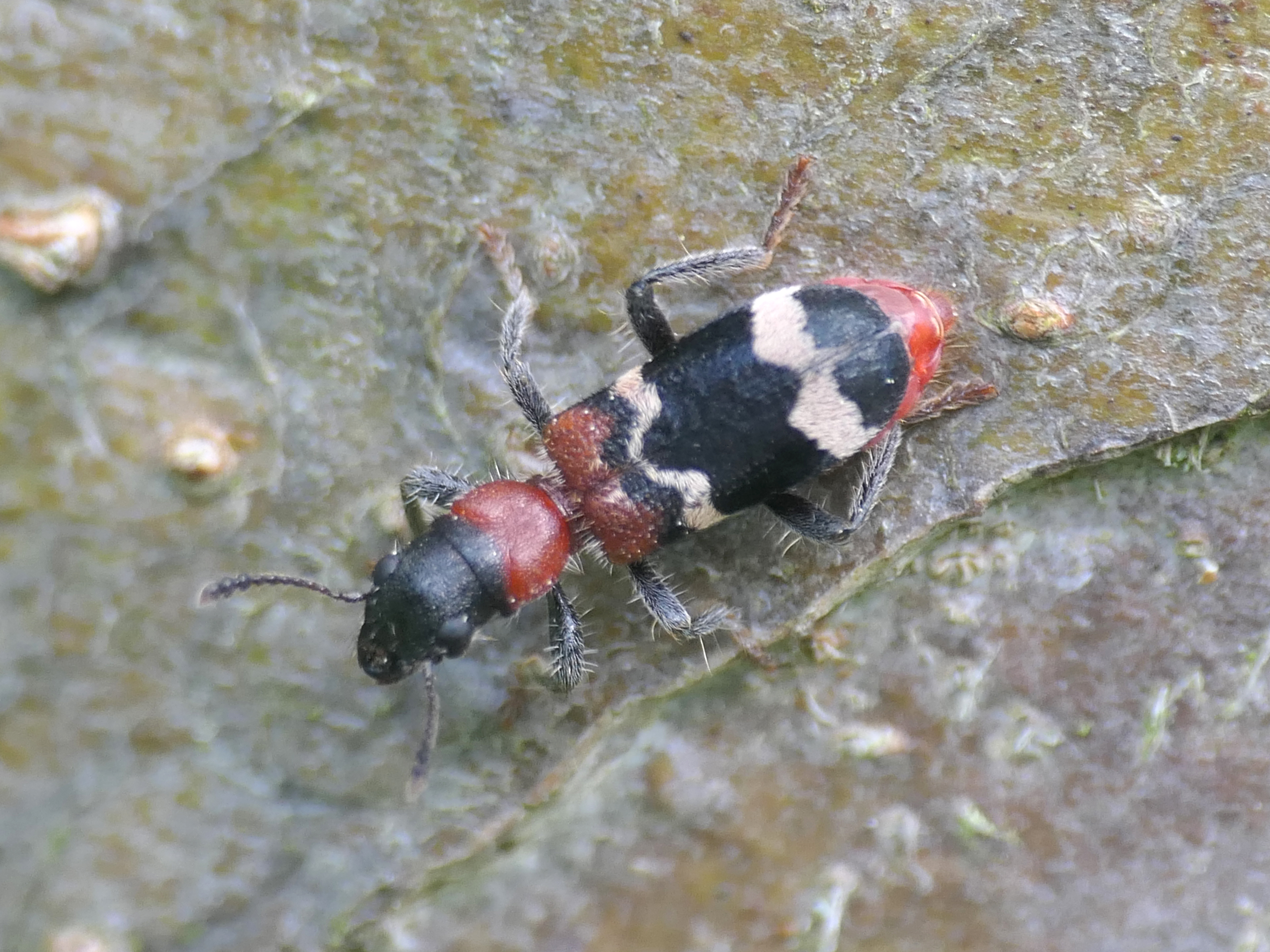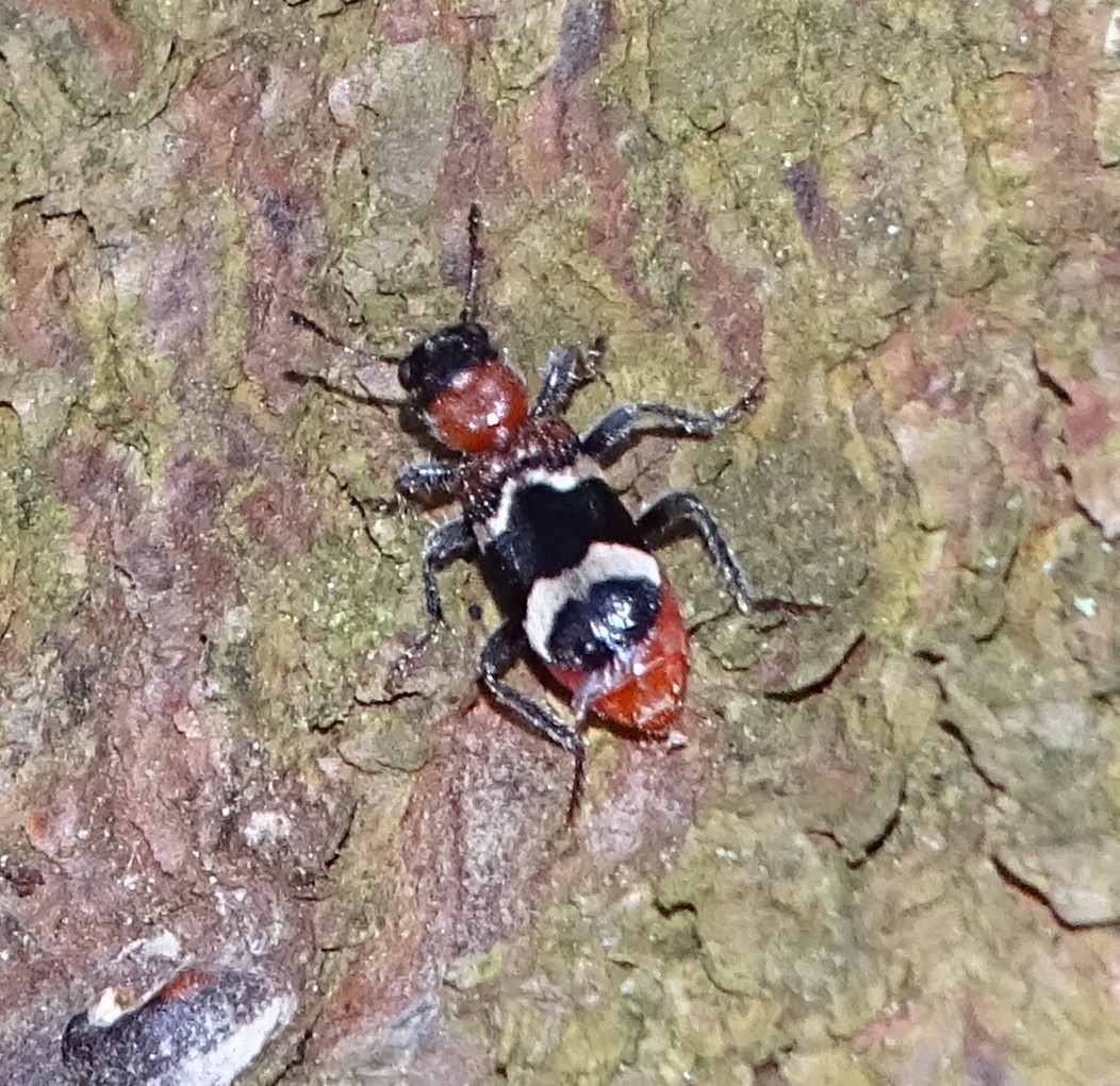 Gemeiner Ameisenbuntkäfer auf Kiefernrinde bei Brischko, Juli 2015