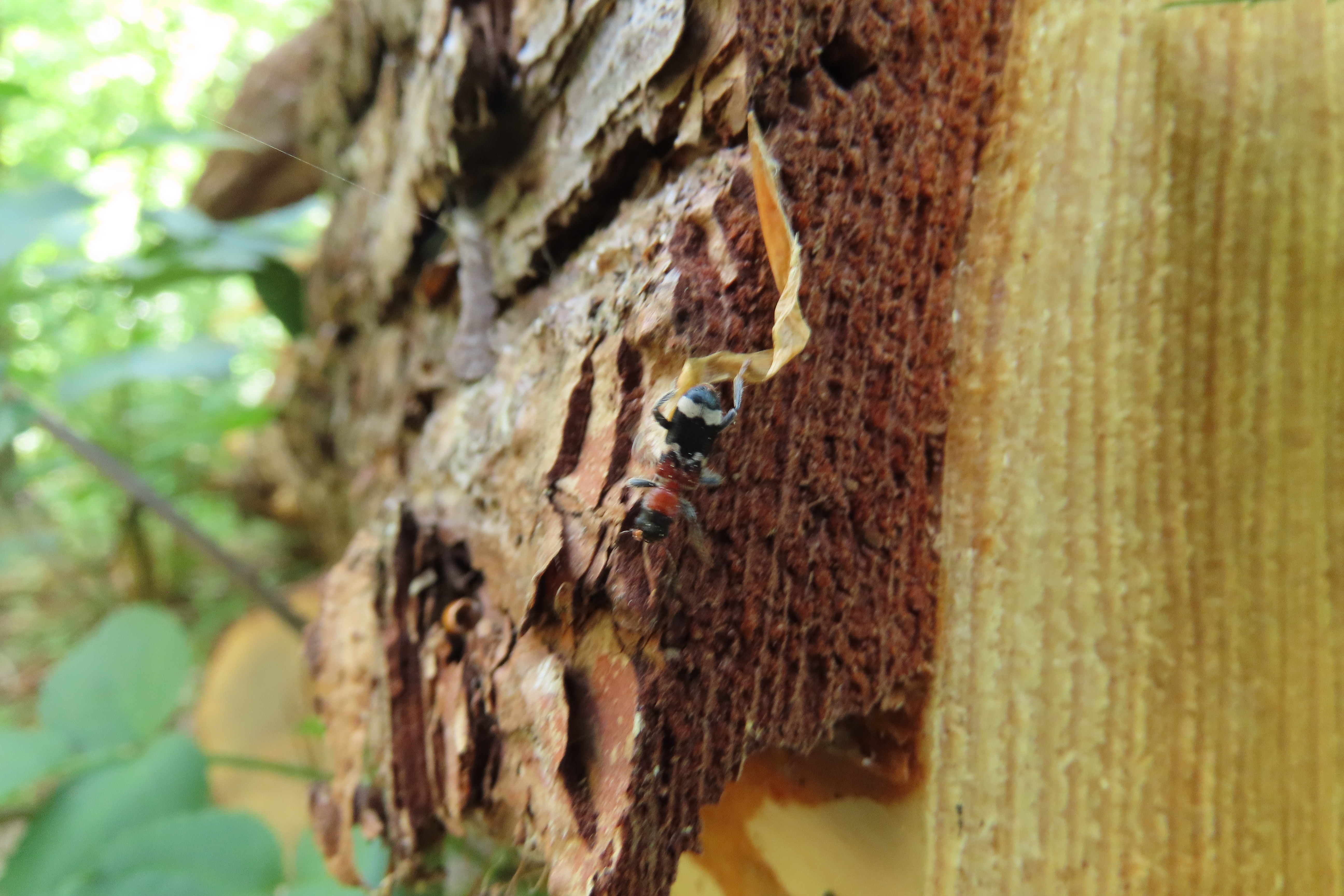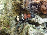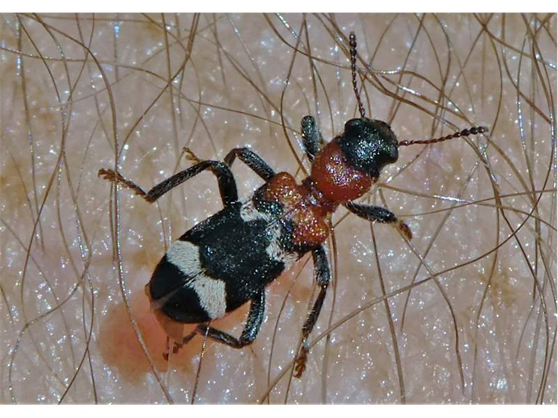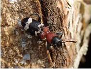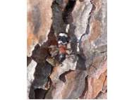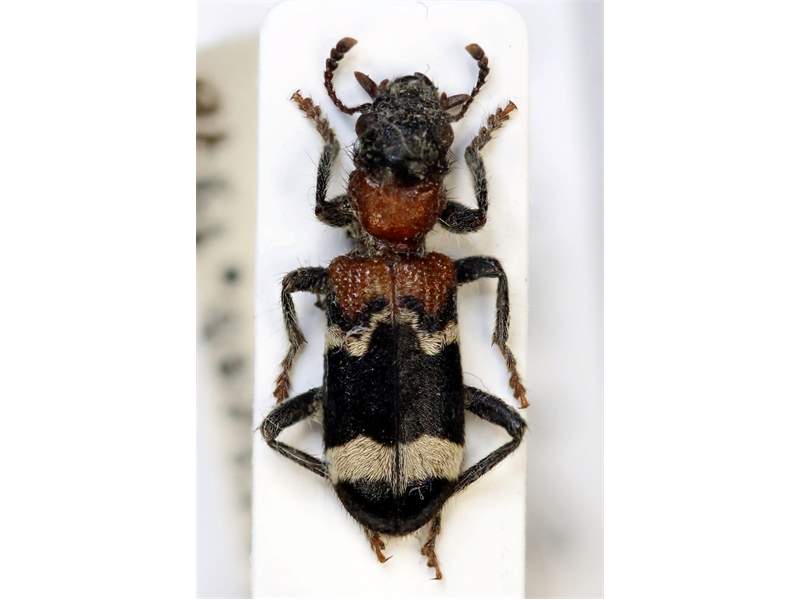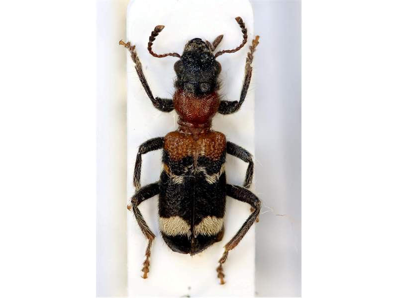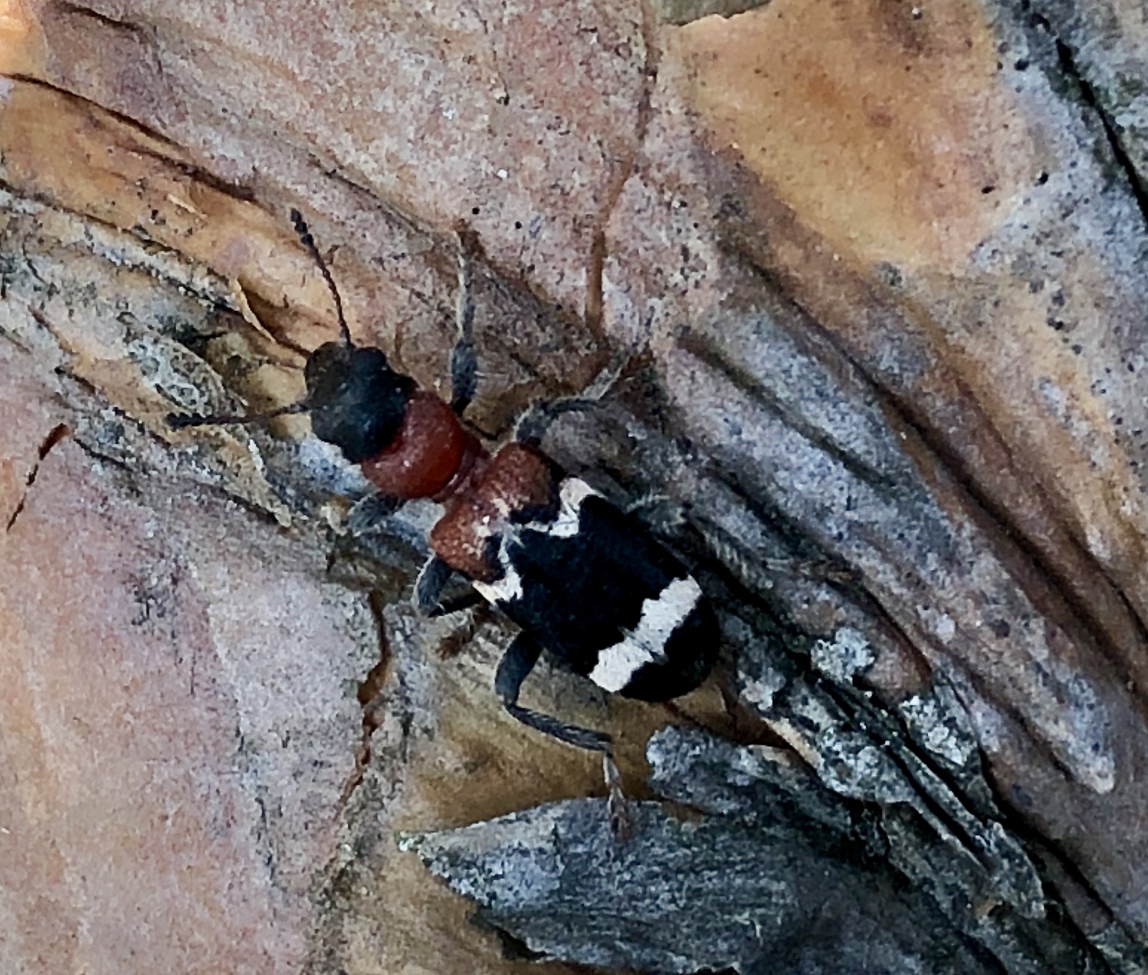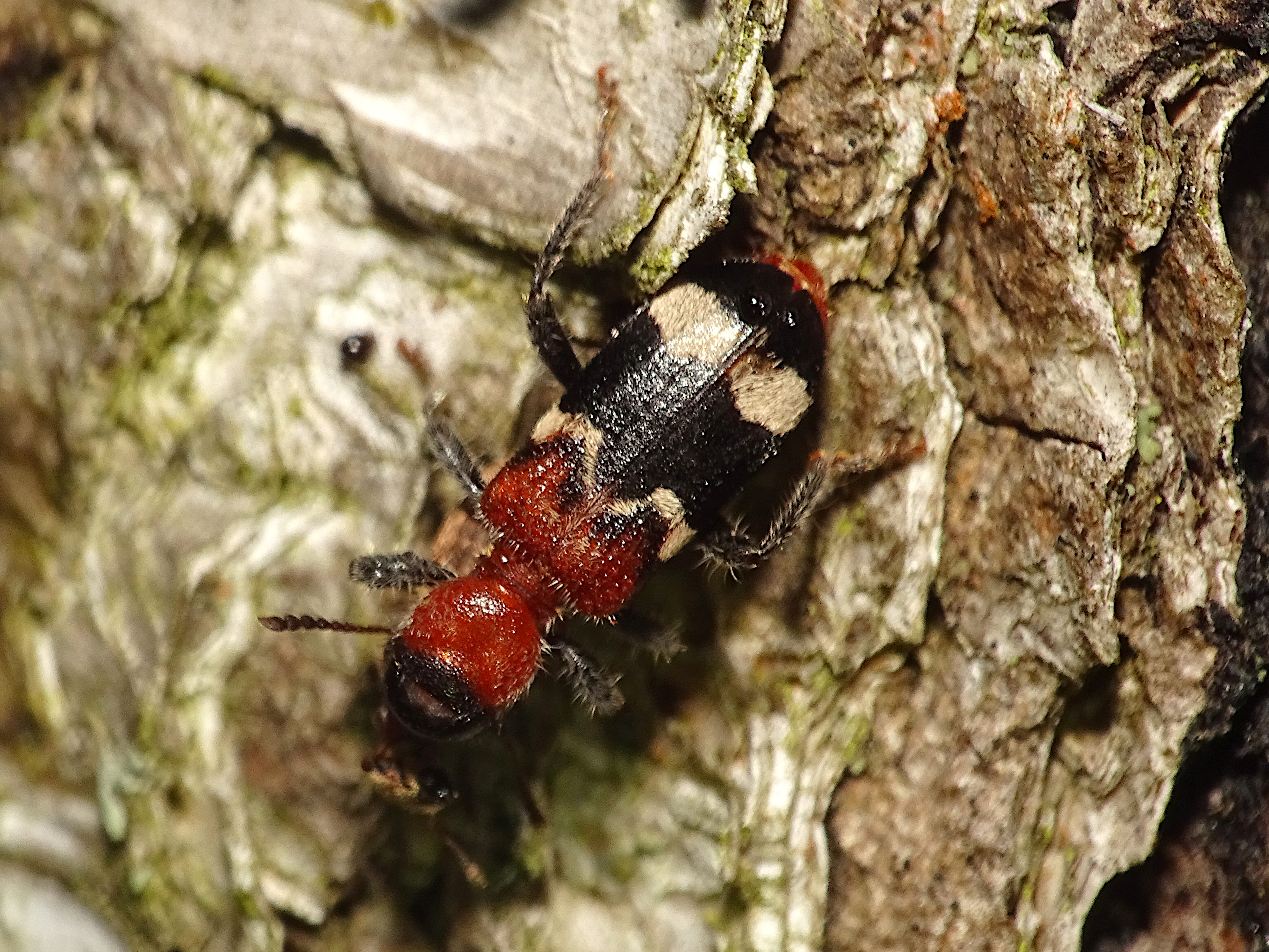Gemeiner Ameisenbuntkäfer auf Kiefernrinde bei Brischko, Juli 2015