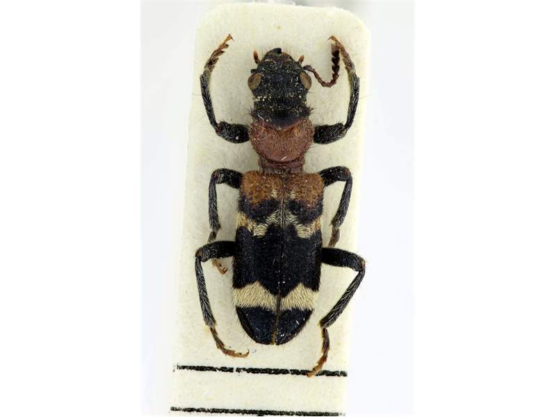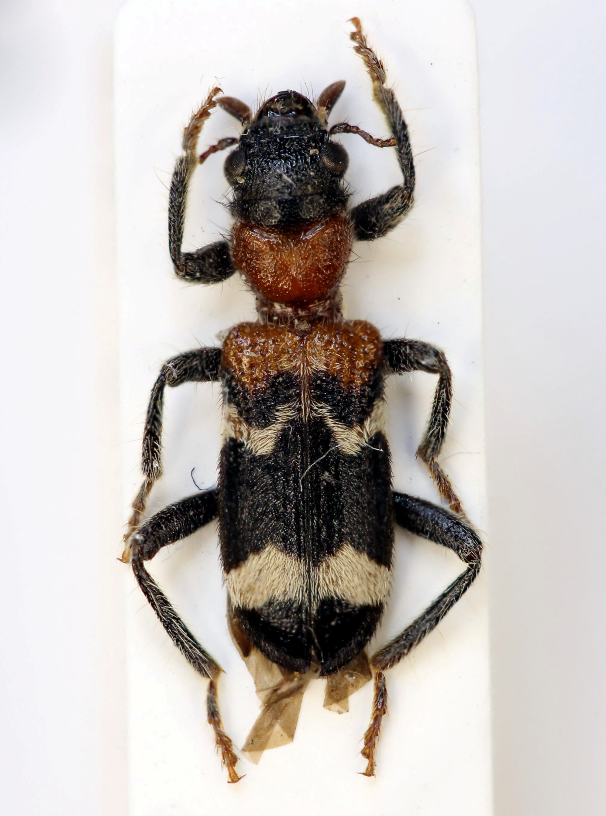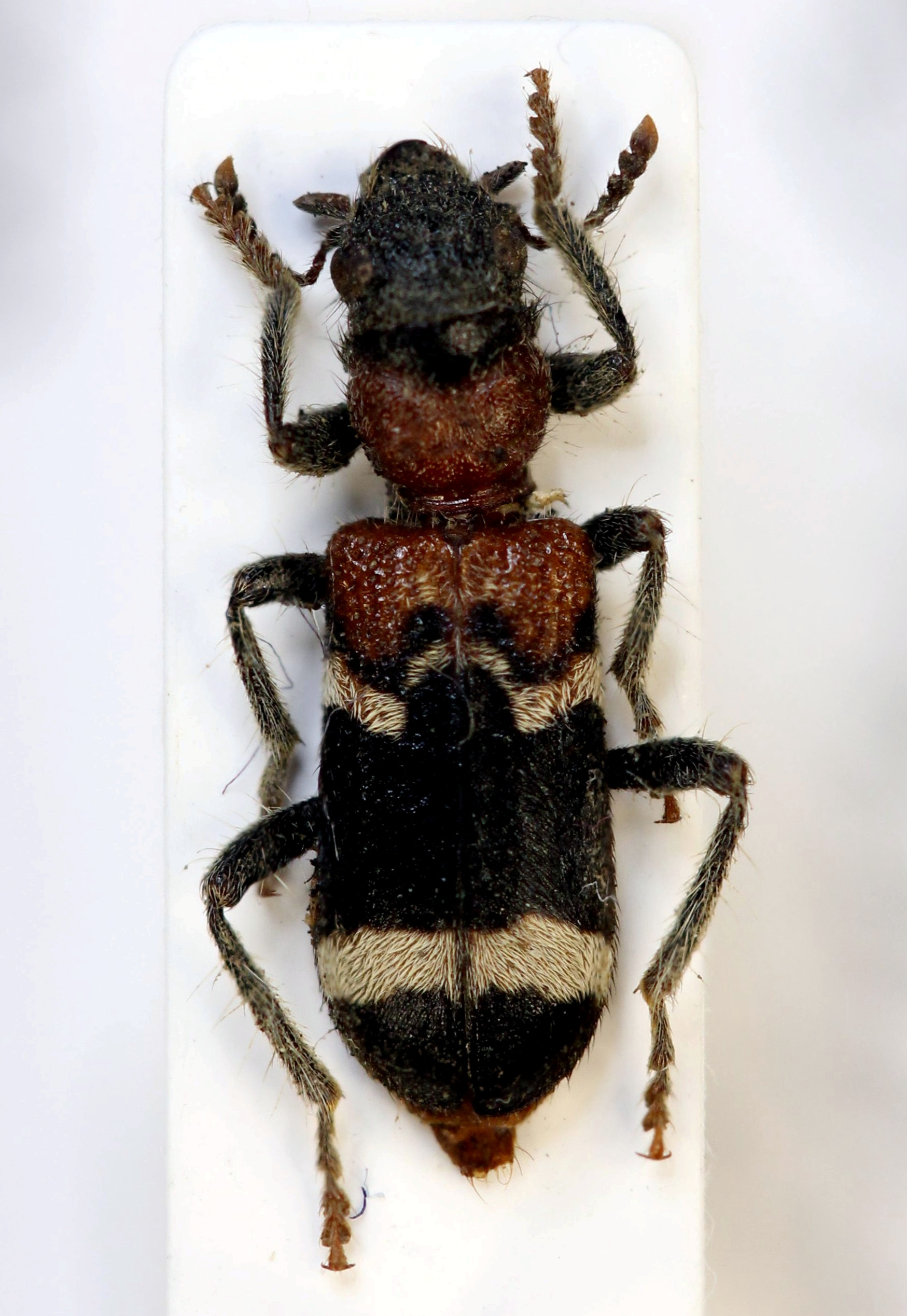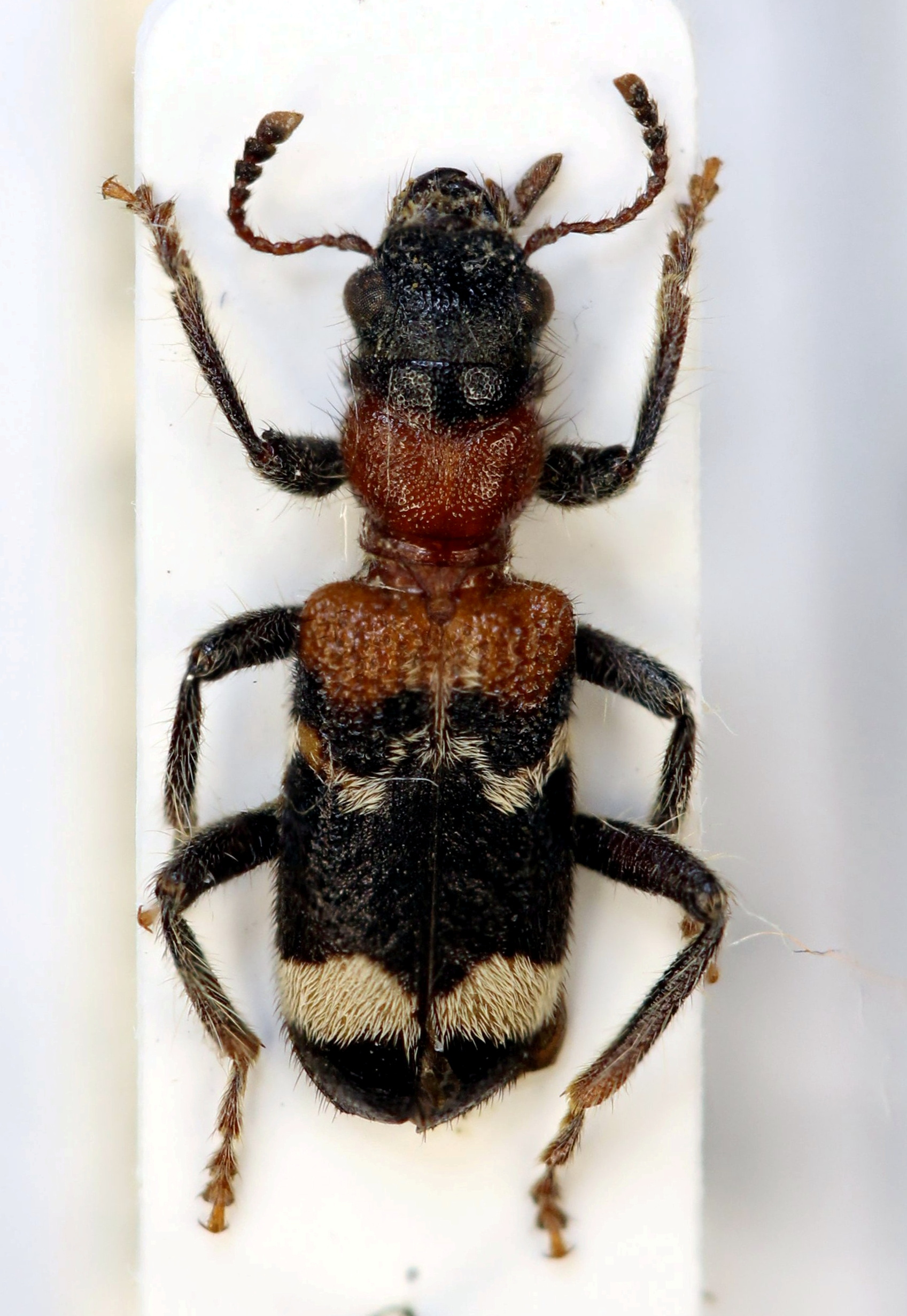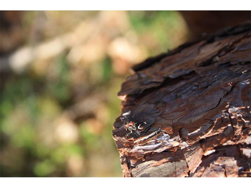 Gemeiner Ameisenbuntkäfer auf Kiefernrinde bei Brischko, Juli 2015