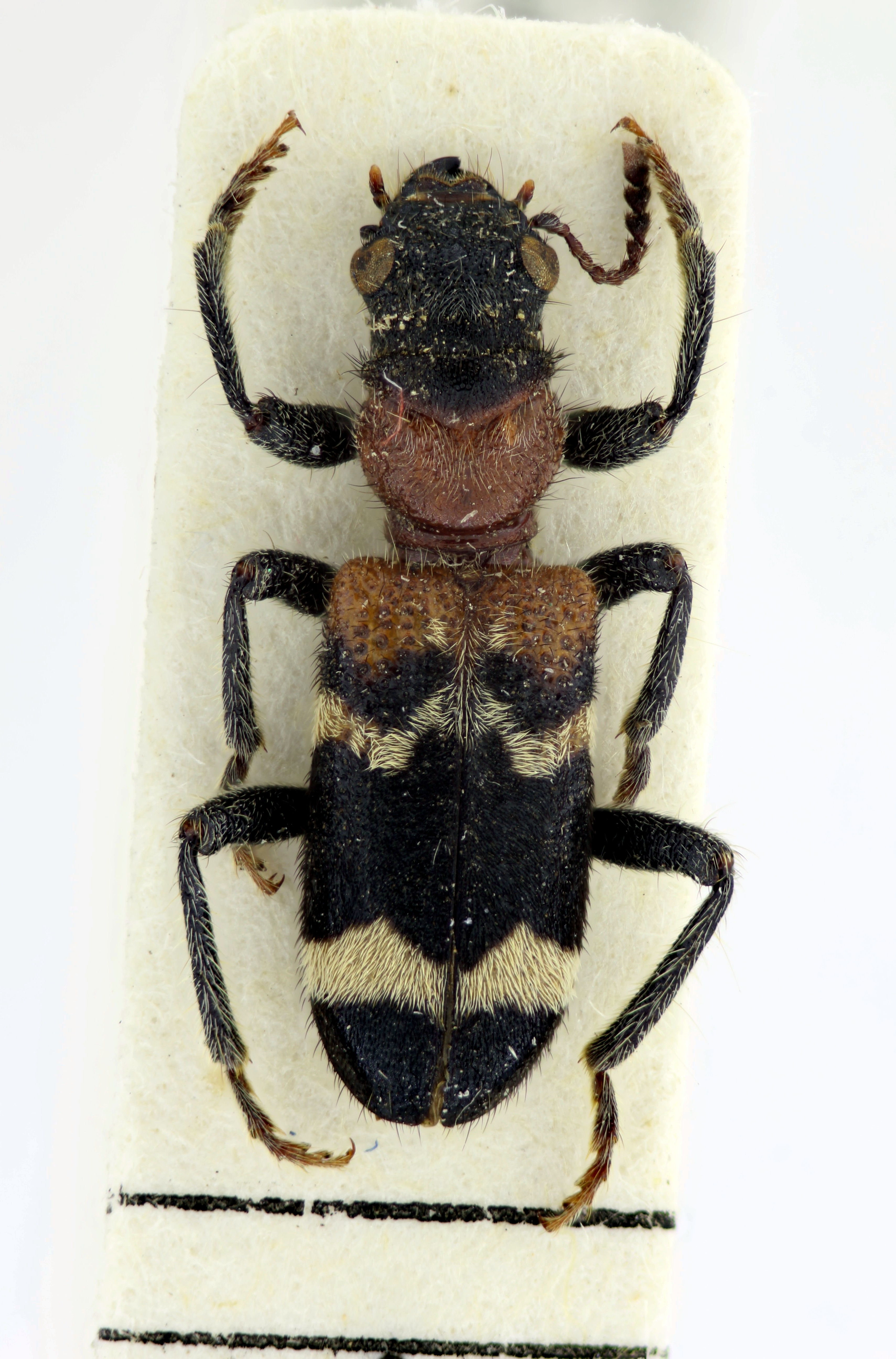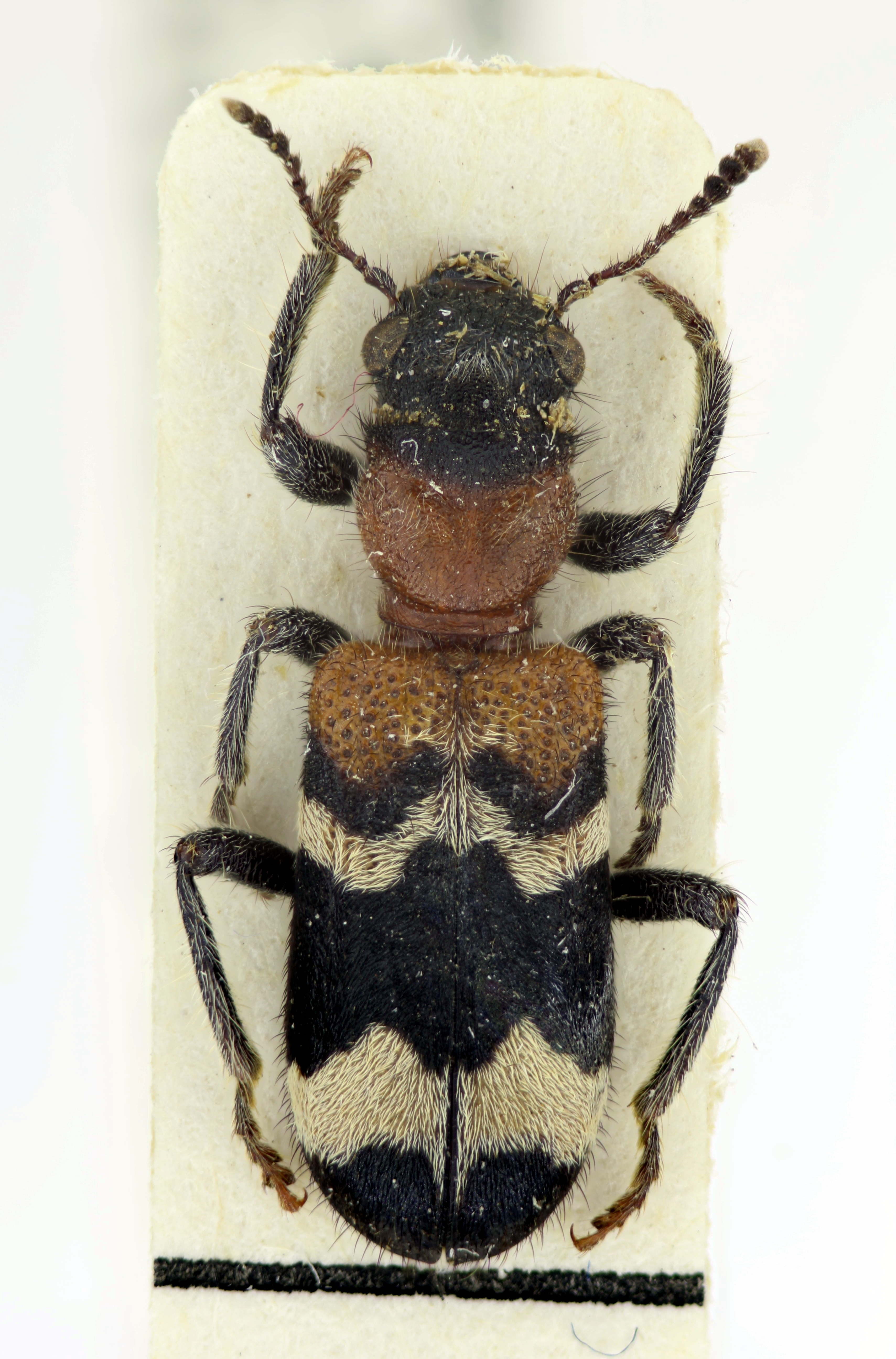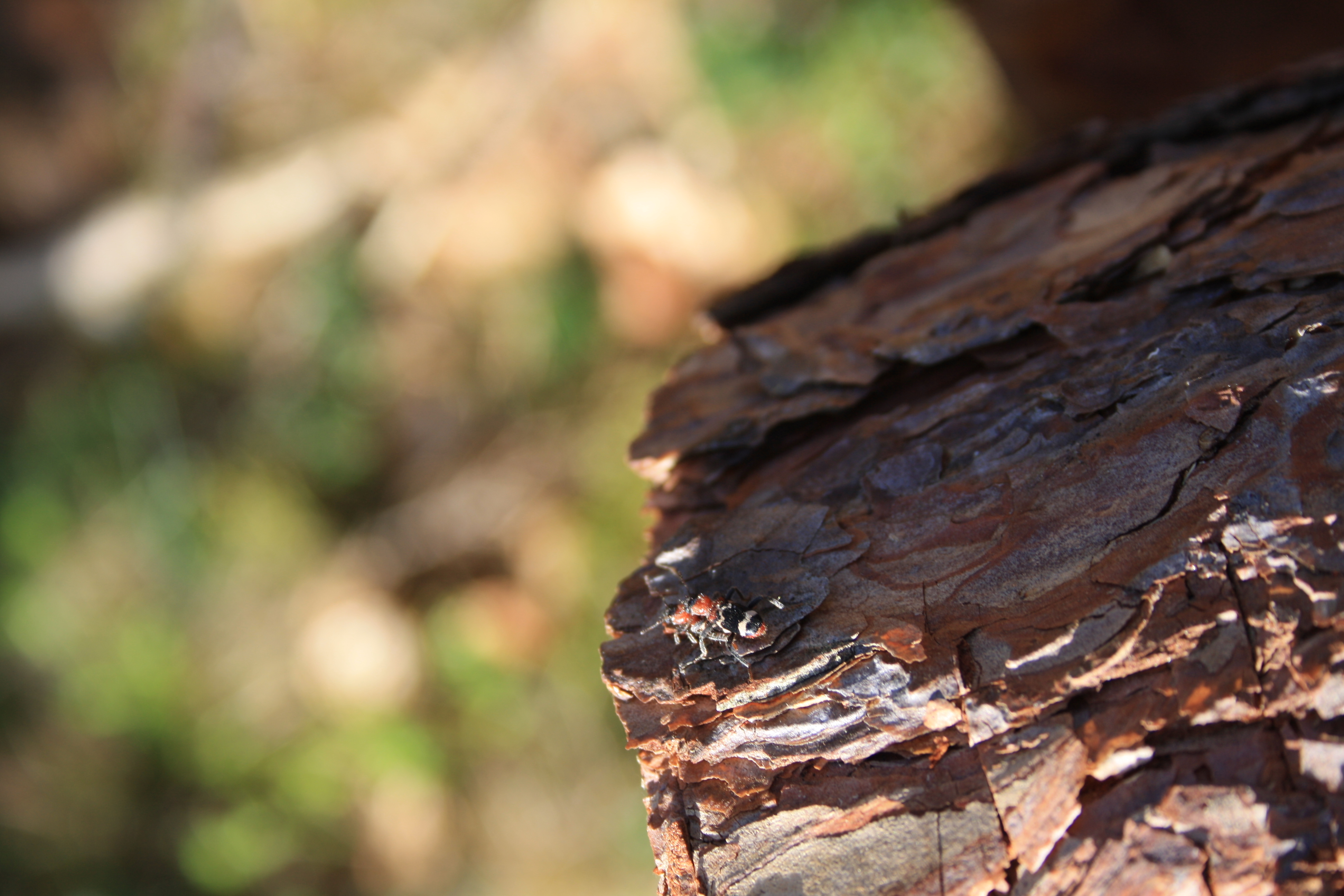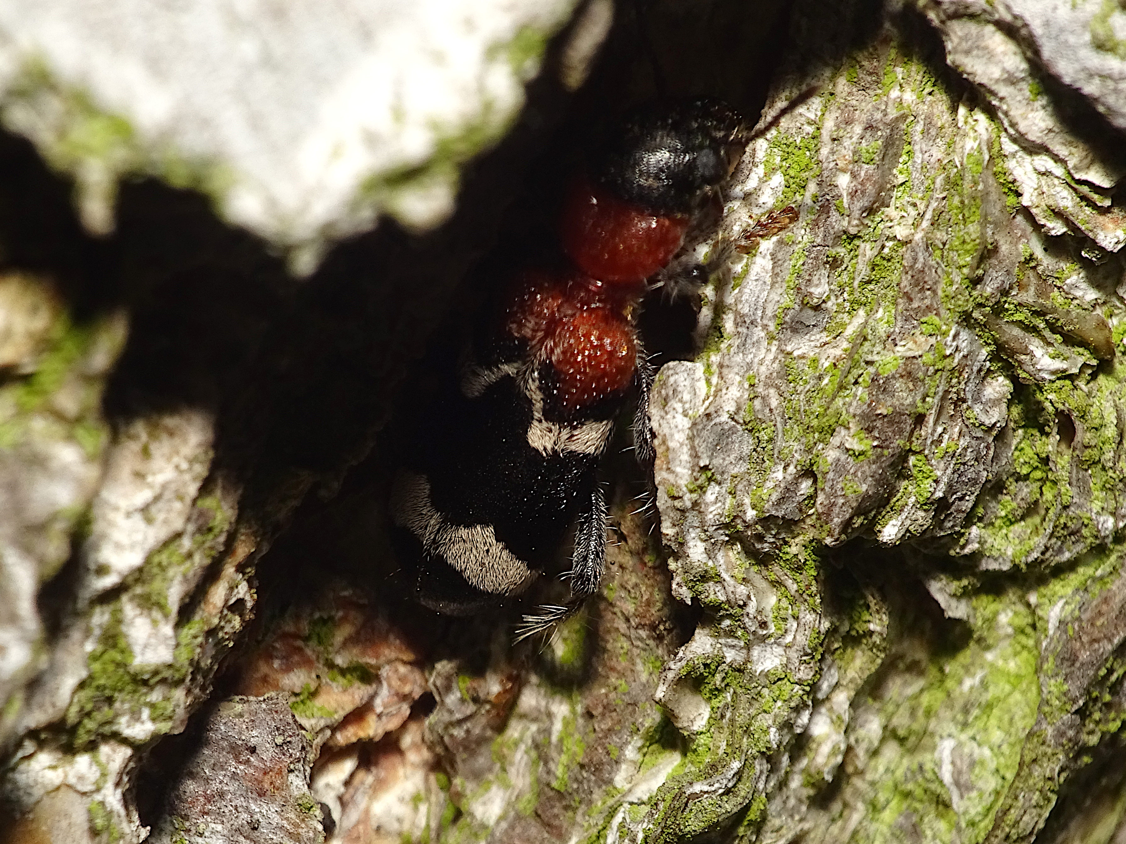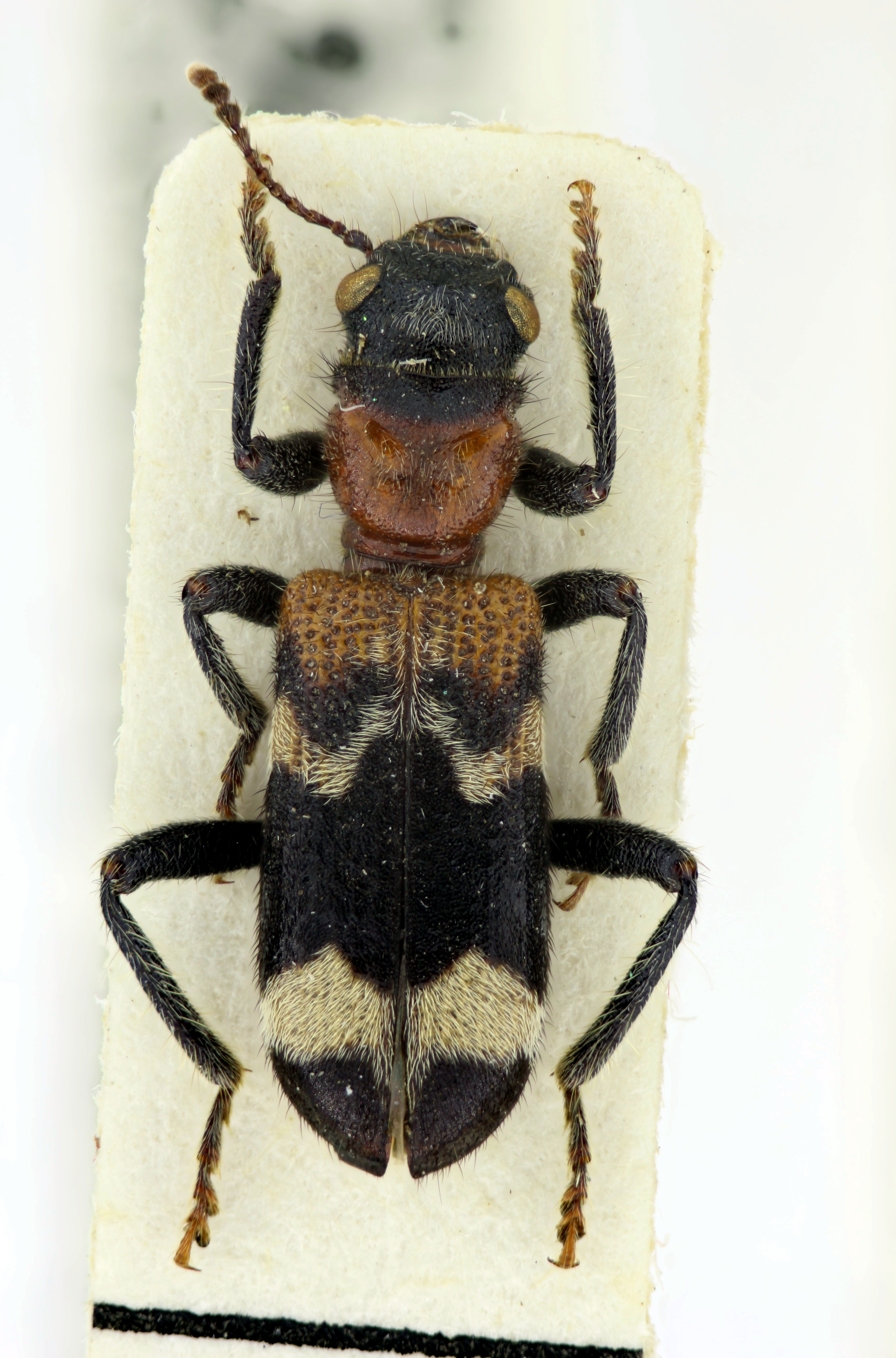 Gemeiner Ameisenbuntkäfer auf Kiefernrinde bei Brischko, Juli 2015
