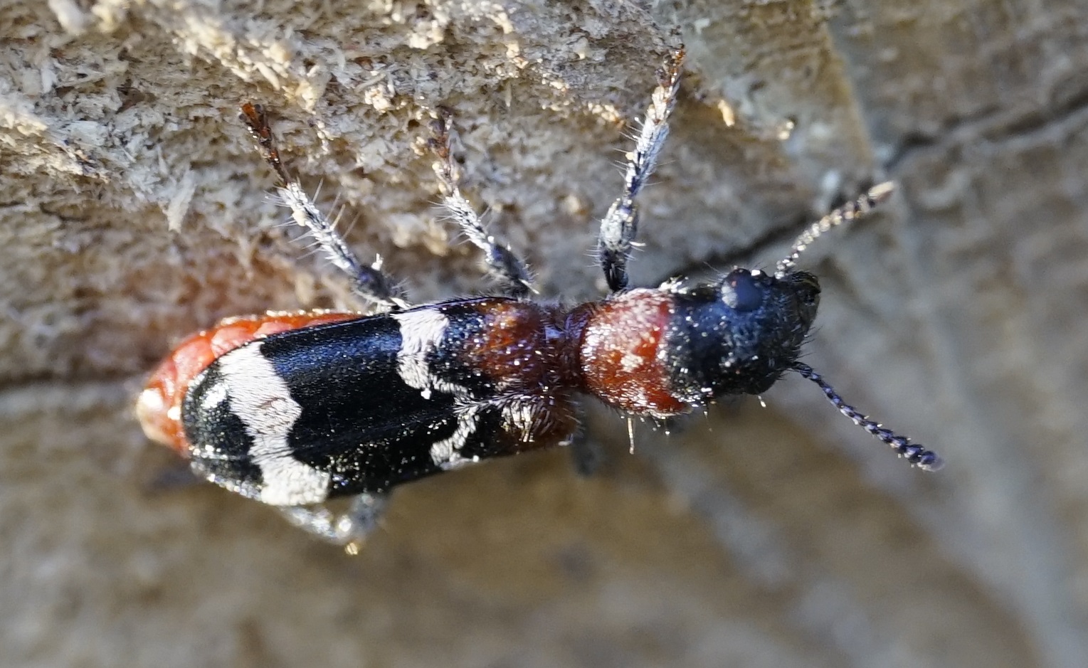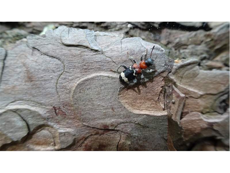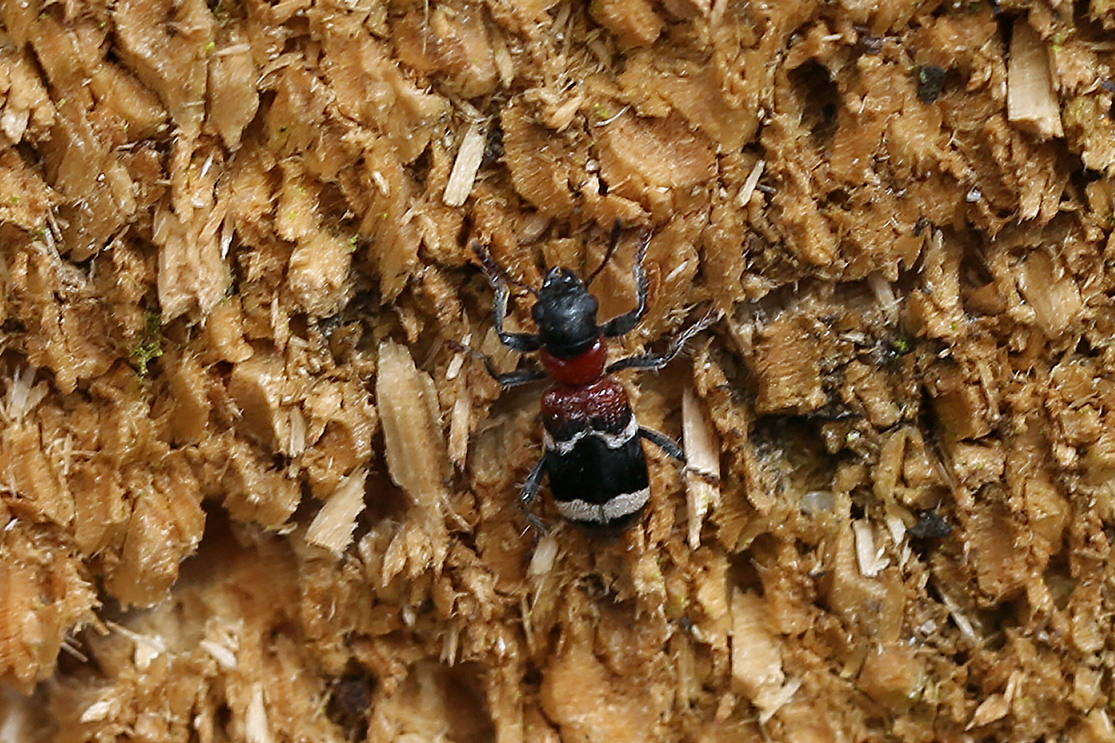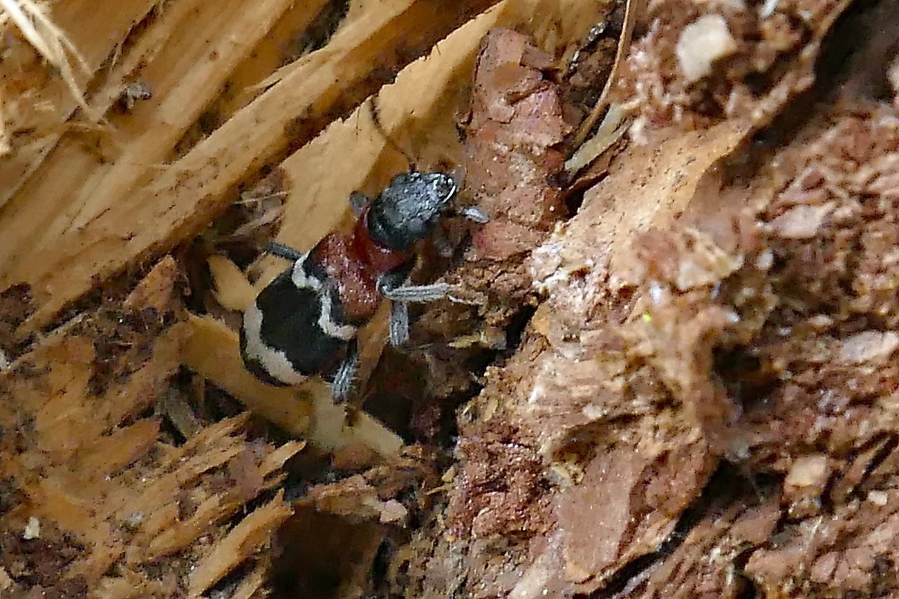 Gemeiner Ameisenbuntkäfer (Thanasimus formicarius) im NSG "Moorwald am Pechfluß bei Medingen", 16.04.2020