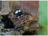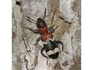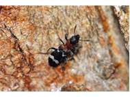 Gemeiner Ameisenbuntkäfer (Thanasimus formicarius (Linnaeus, 1758)) auf Kiefernstamm in Dresden Klotzsche