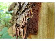 Aus kurzen Holzstämmen unter der Rinde hervorgeklopft Unteres Osterzgebirge, Dippser Heide, 15. April 1976