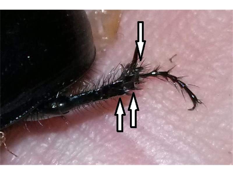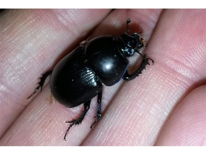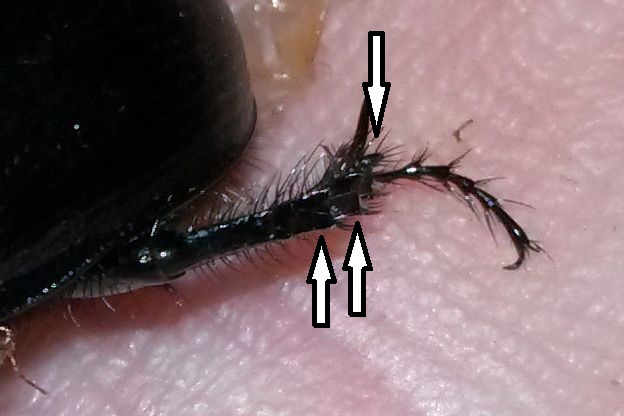 Geotrupes spiniger auf der Außenseite zusätzlich zur Hinterkante mit zwei vollständigen Querleisten. Flügeldecken wie bei