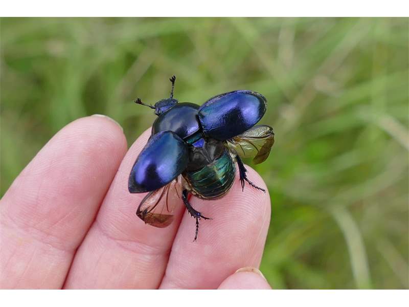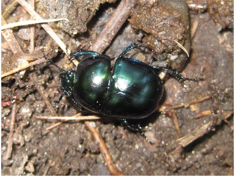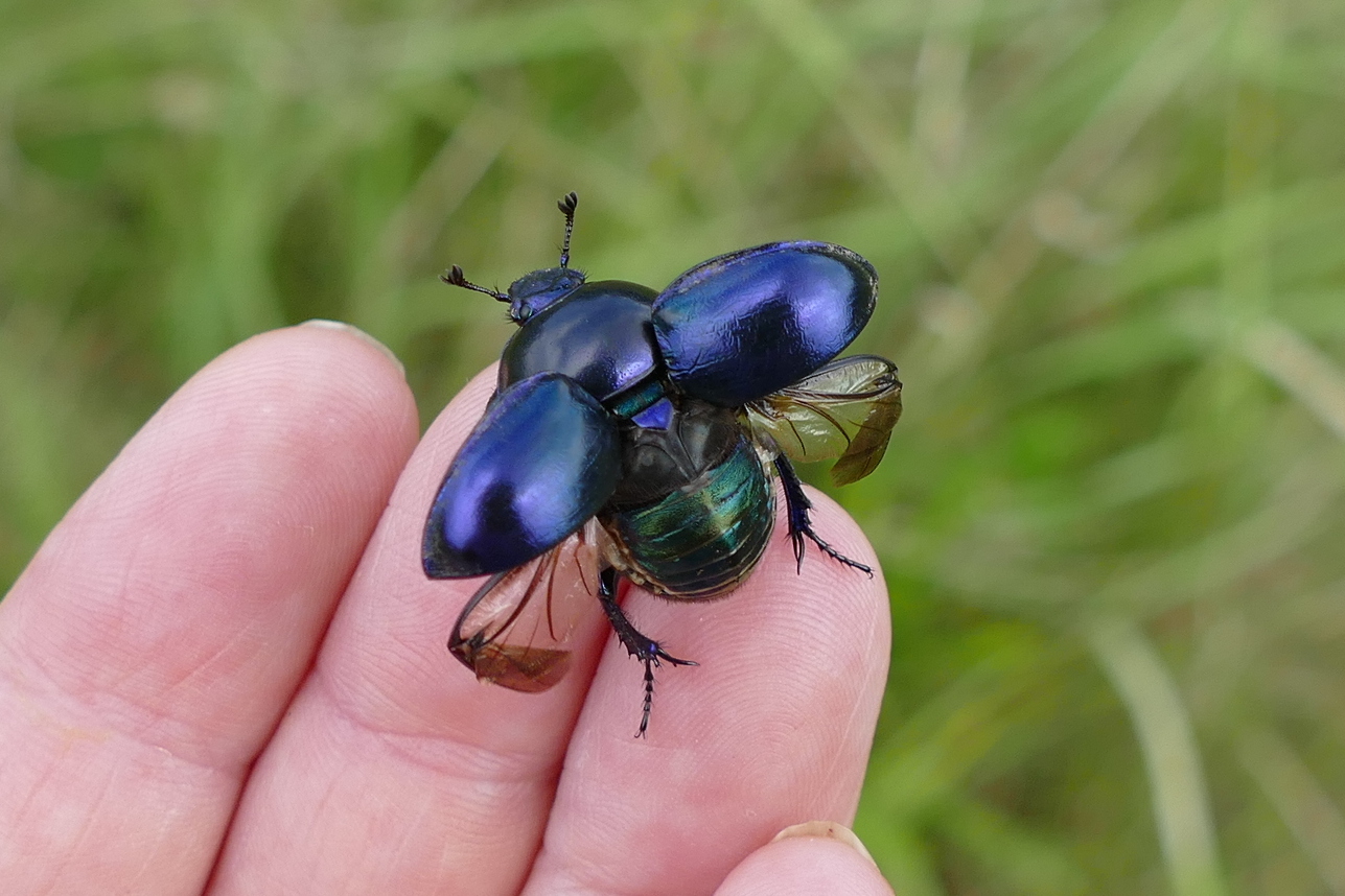 Ähnliche Art: Der Waldmistkäfer (Anoplotrupes stercorosus) oberseits schwarzblau, Basis des Halsschildes vollständig gerandet.