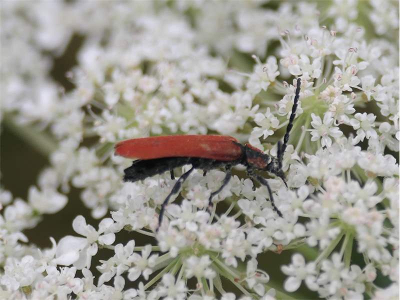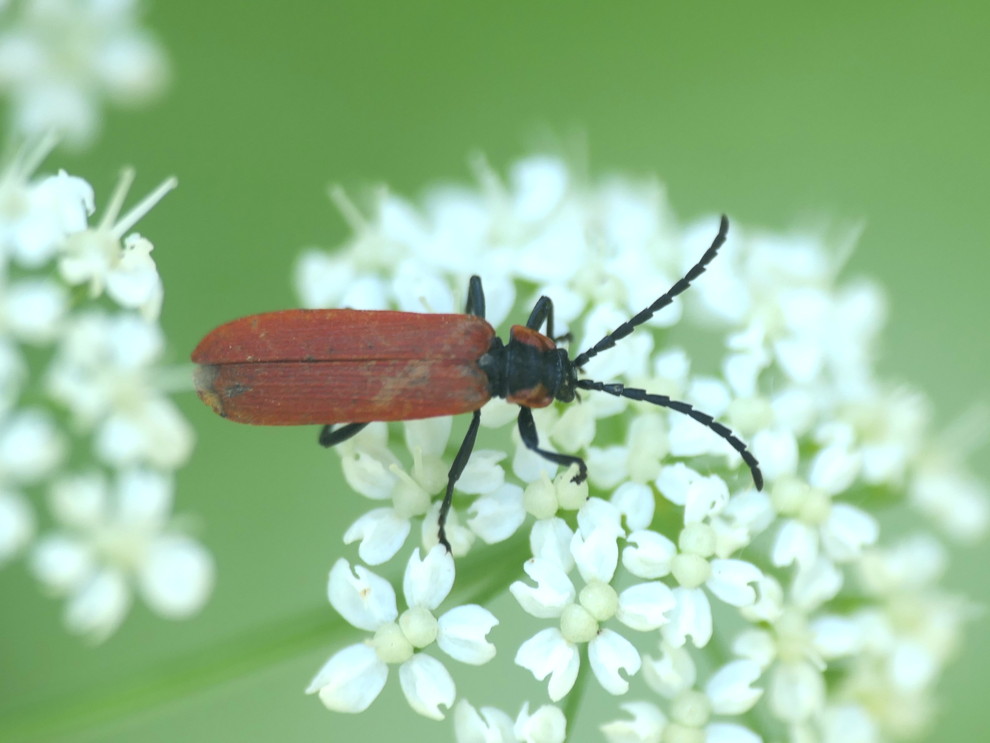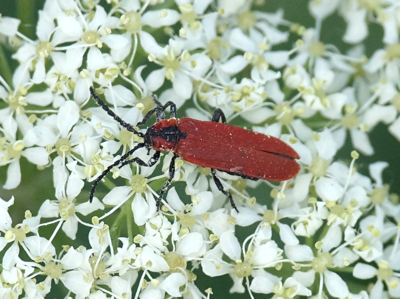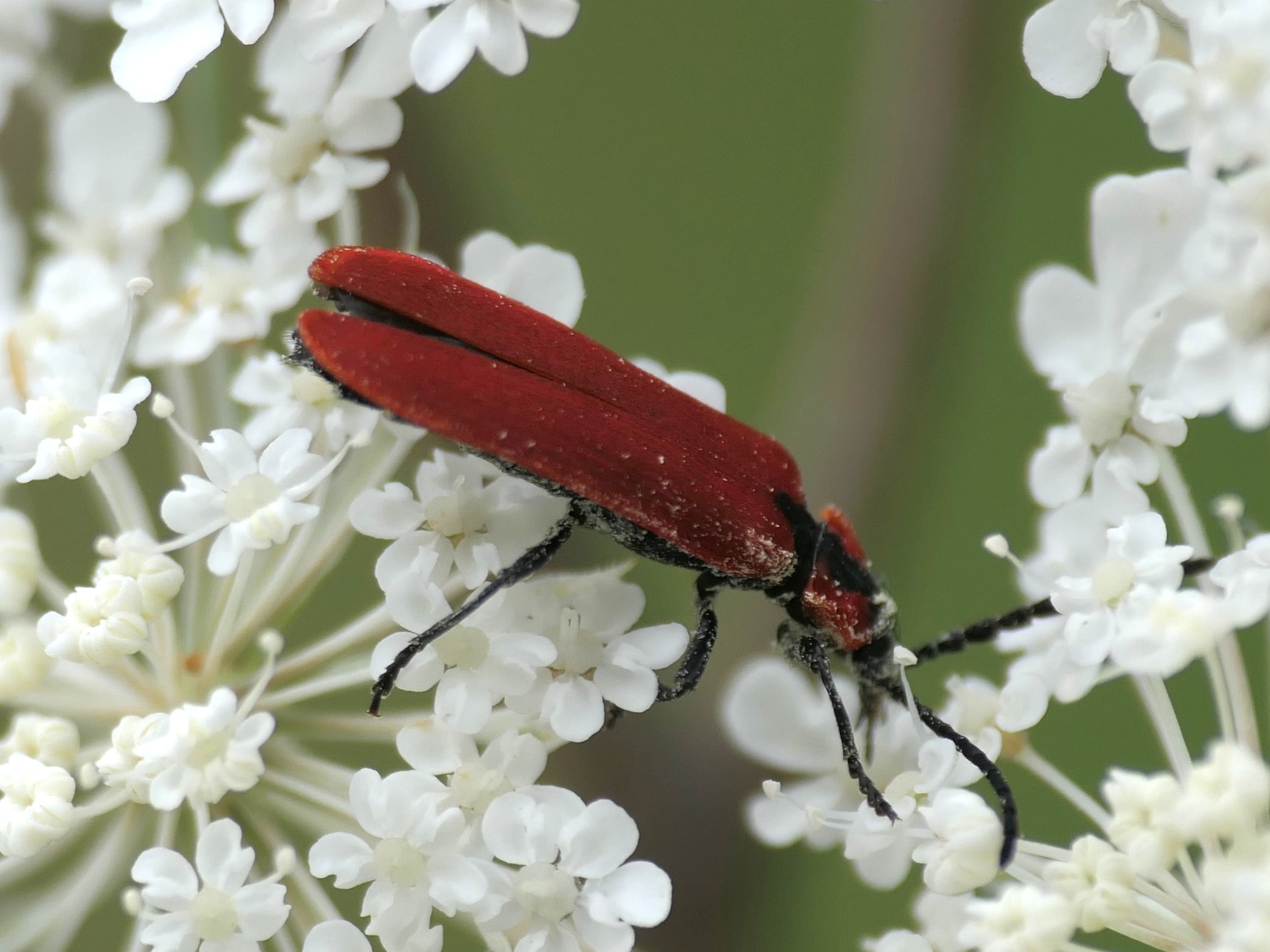 Rüssel-Rotdeckenkäfer (Lygistopterus sanguineus (Linnaeus, 1758)), Burgstädt , Herrenhaide, am Bahndamm, Juni 2019