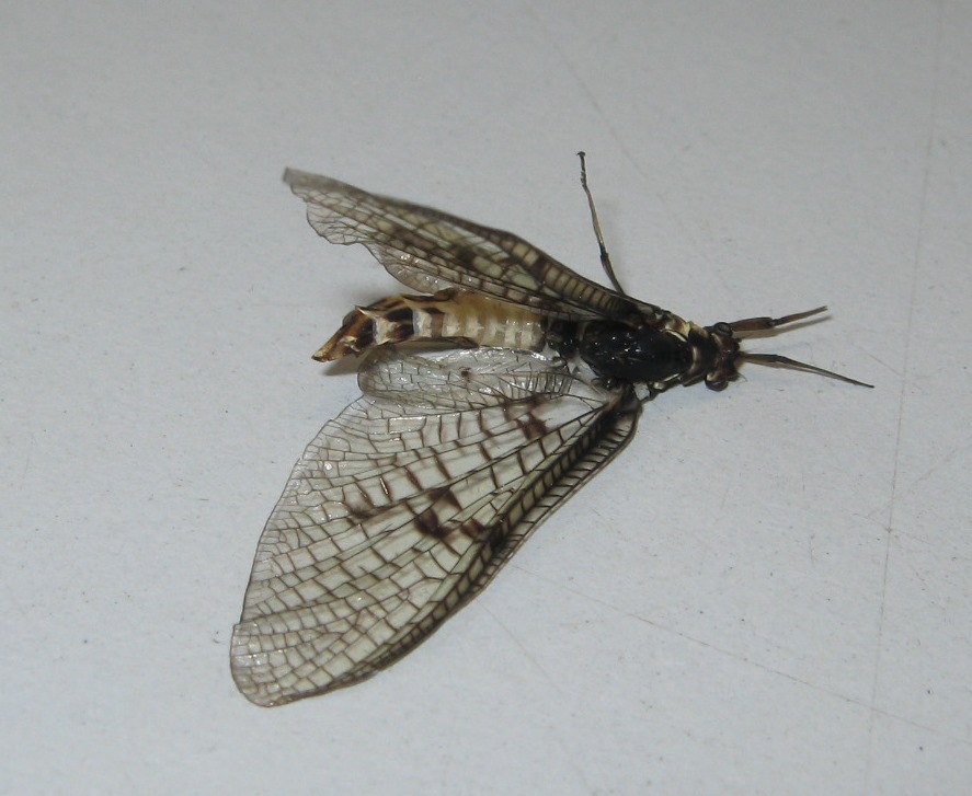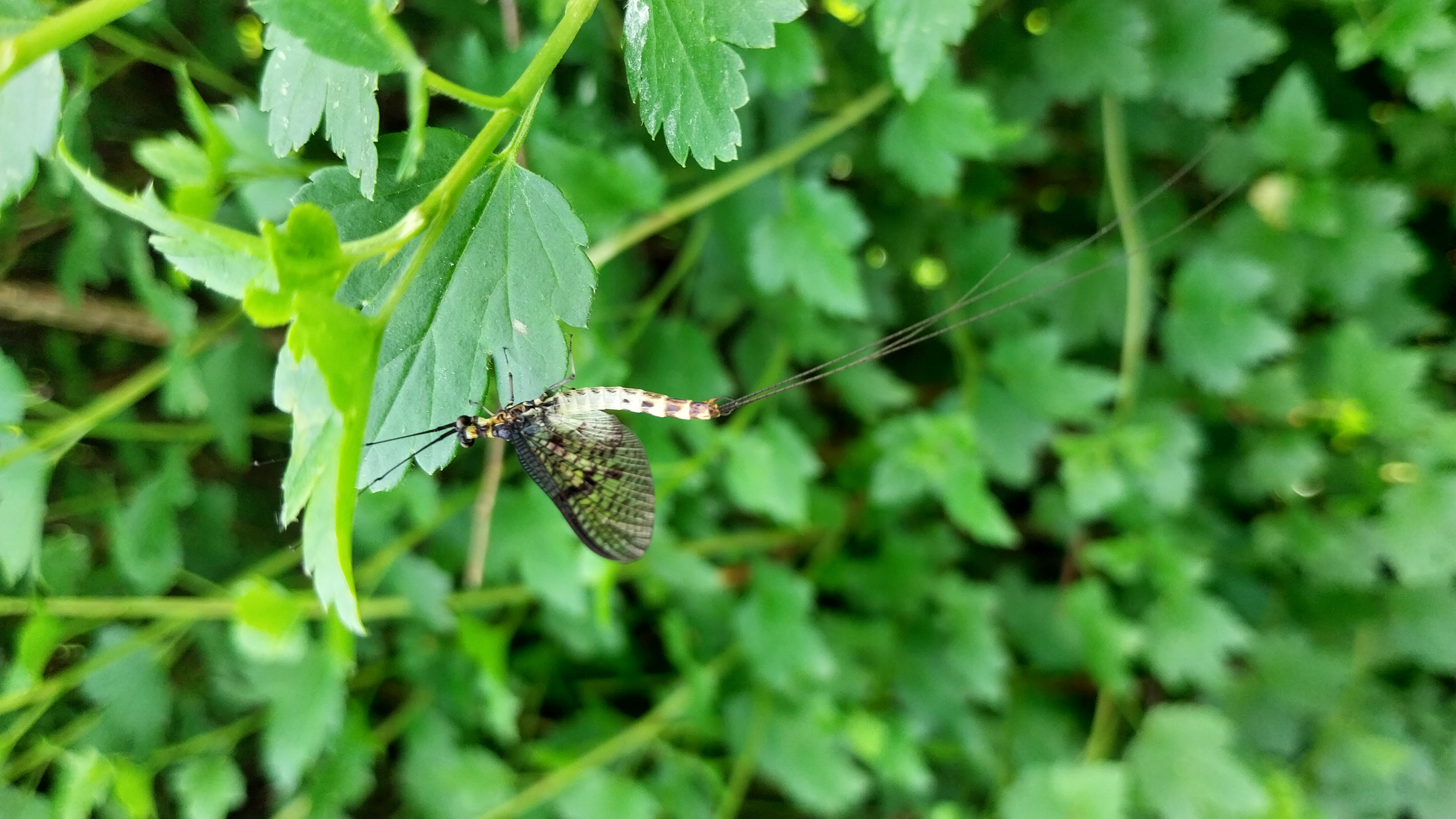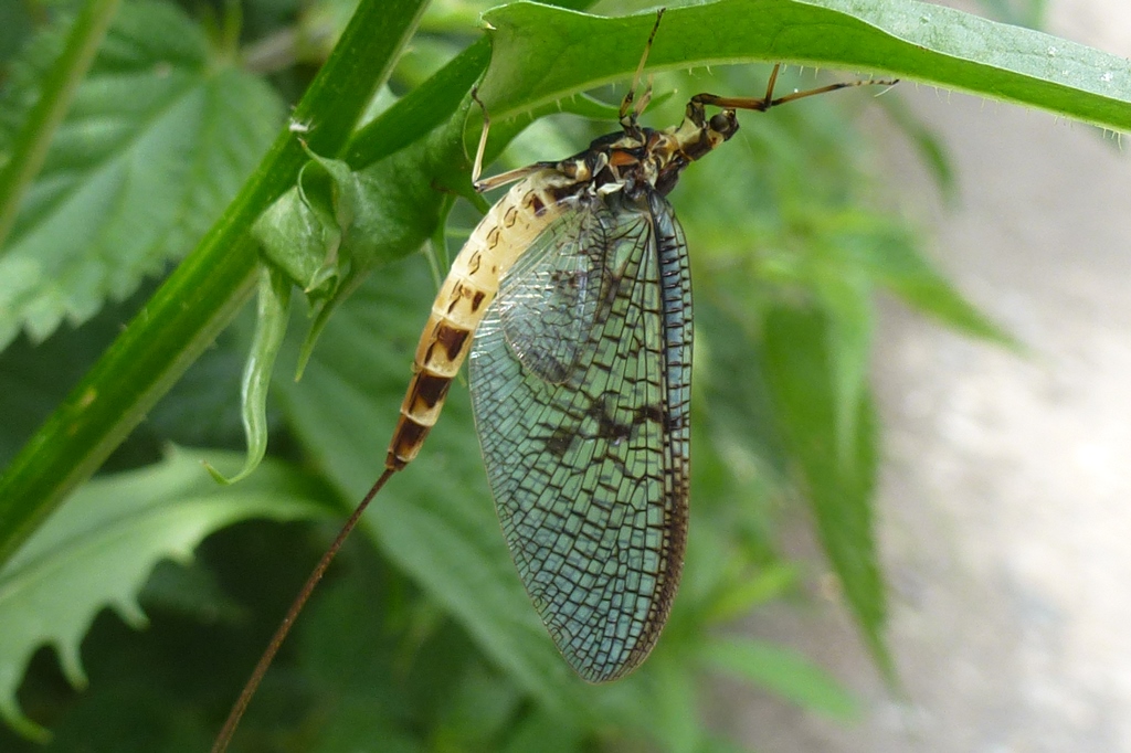 Ephemera danica Müller, 1764, Große Eintagsfliege, FO Brand-Erbisdorf OT Linda, Lochmühle, Anfang Juli 2019 (© Lutz Böttger)( Bild vergrößern)
