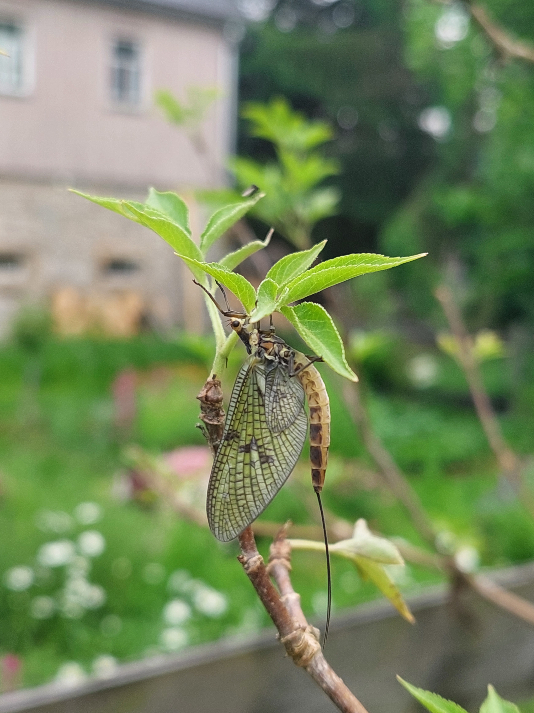 Ephemera danica Müller, 1764, Große Eintagsfliege, FO Brand-Erbisdorf OT Linda, Lochmühle, Anfang Juli 2019