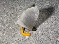 Ein Weibchen auf der Neißebrücke in Görlitz im Juli 2023. Irritiert vom Kunstlicht und dem polarisierenden Licht des Asphalts geben die Tiere hier ihre Eipakete ab, die so nicht nicht ins Wasser gelangen. (© Matthias Nuß)( Bild vergrößern)