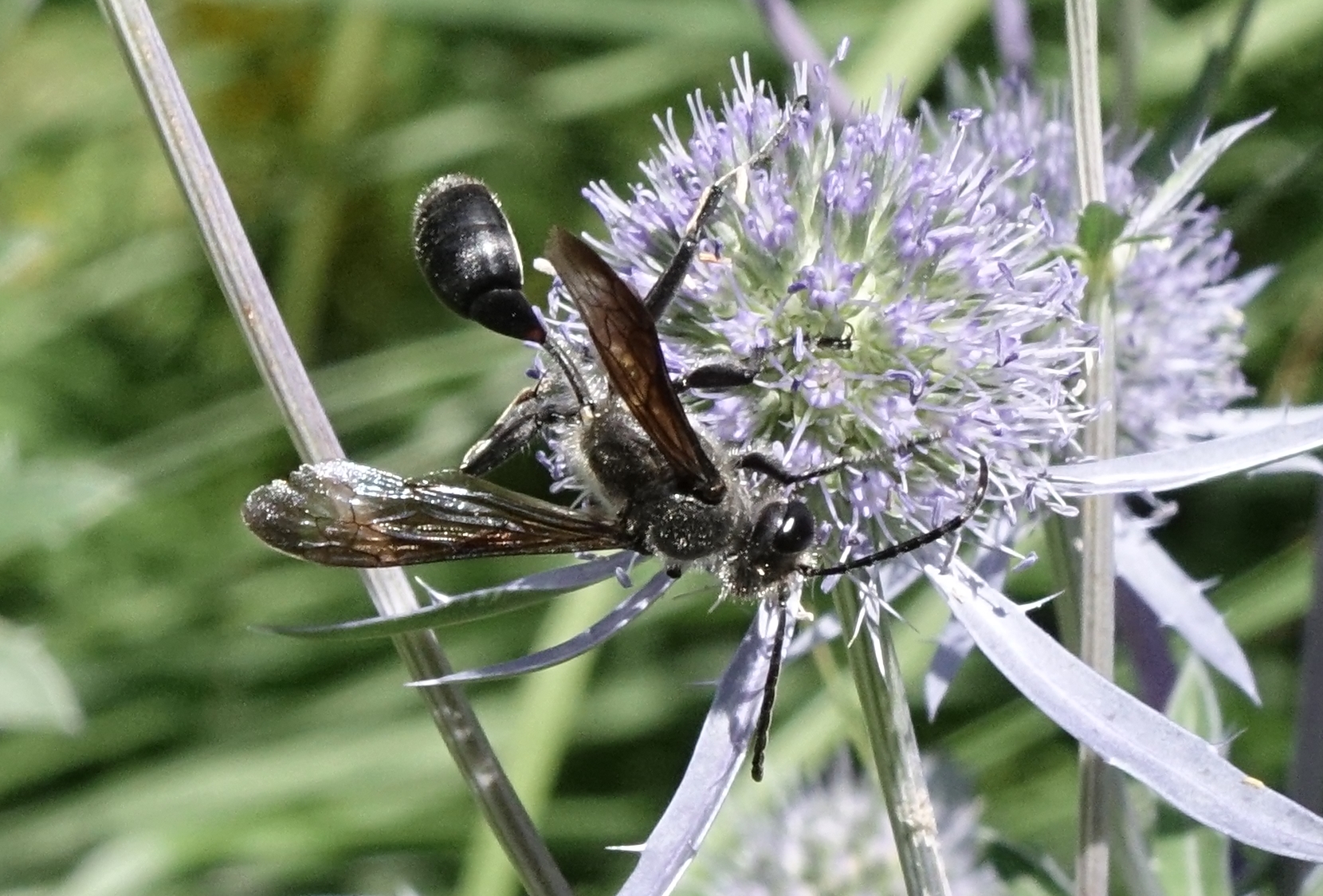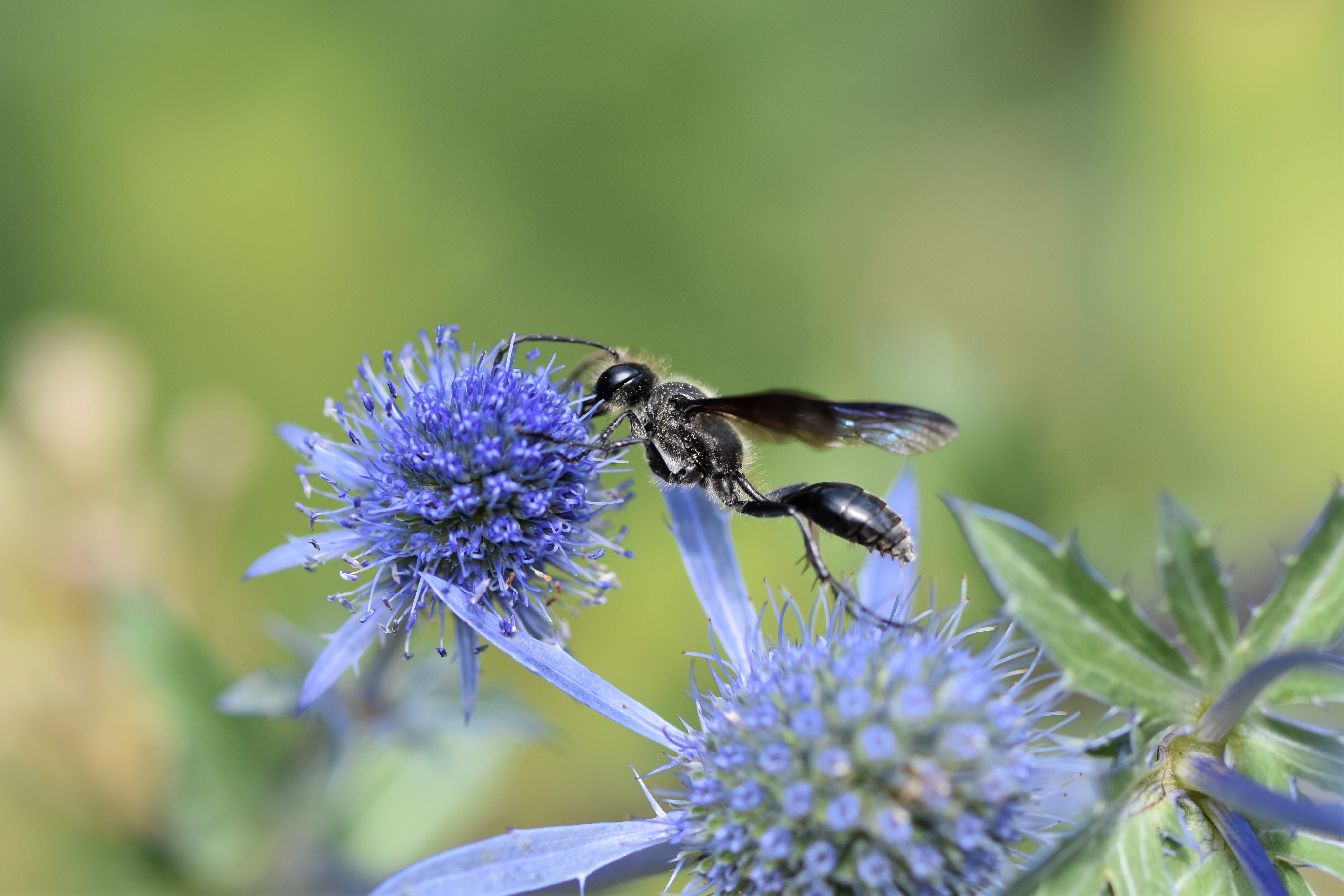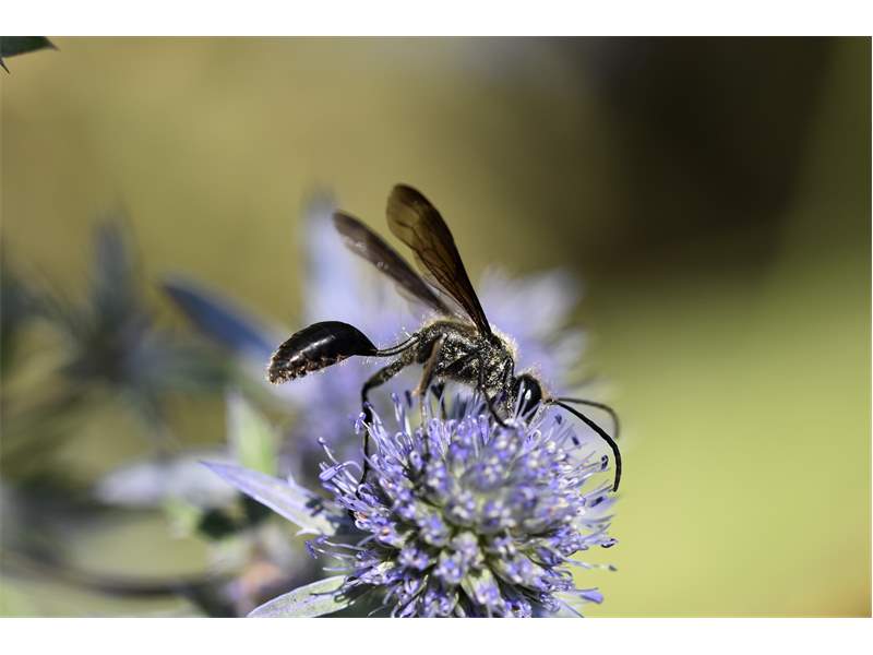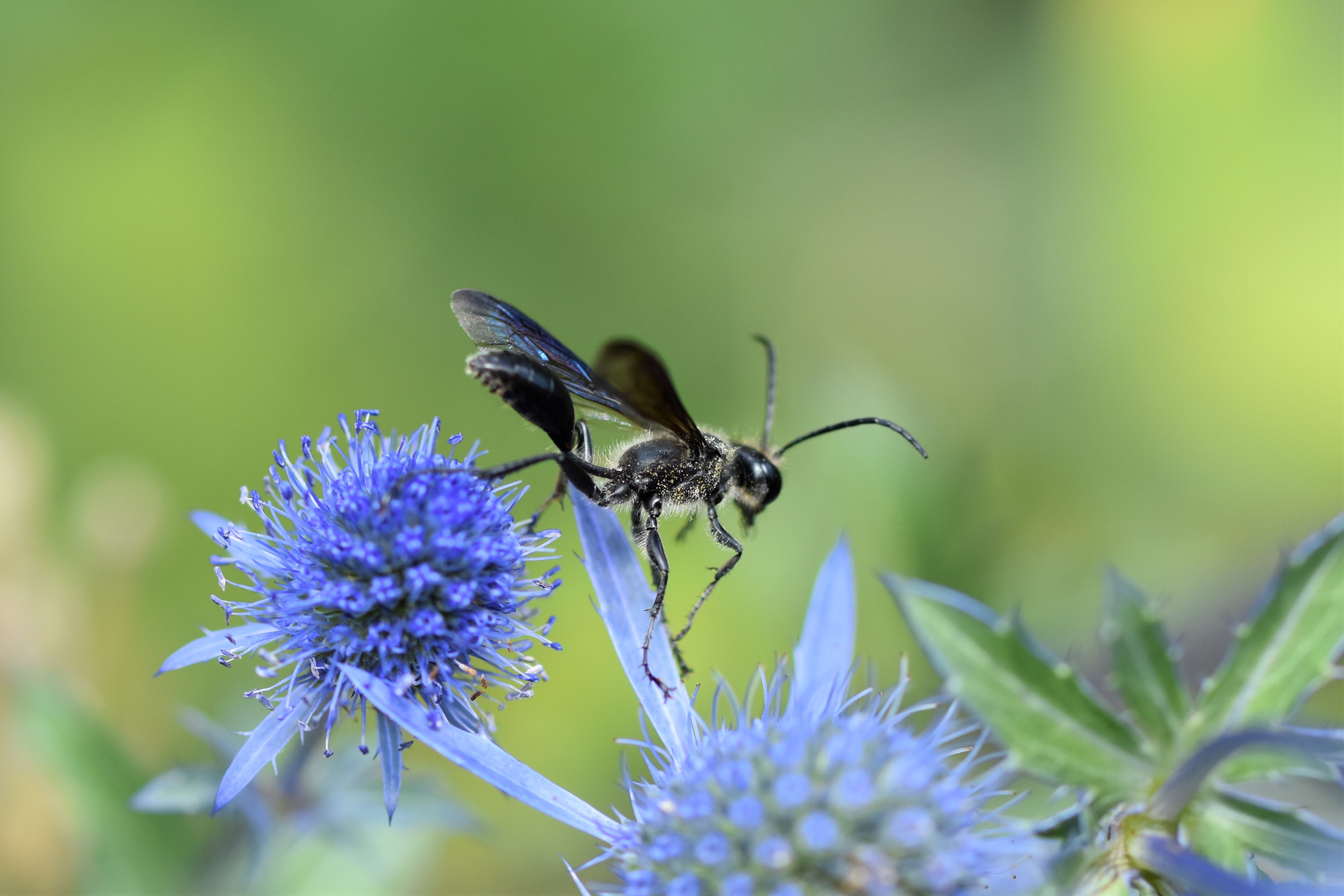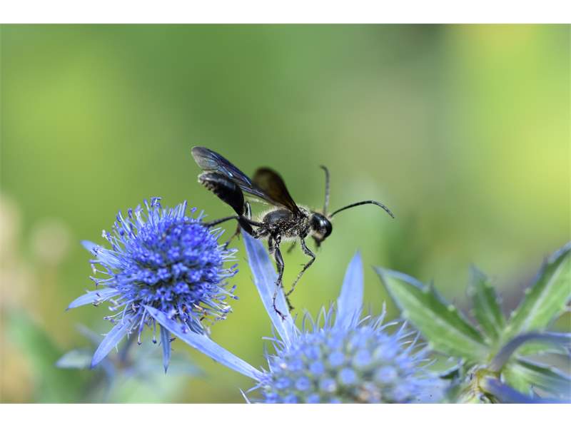Stahlblauer Grillenjäger an Eryngium planum, Stadt Chemnitz, 18.07.2020